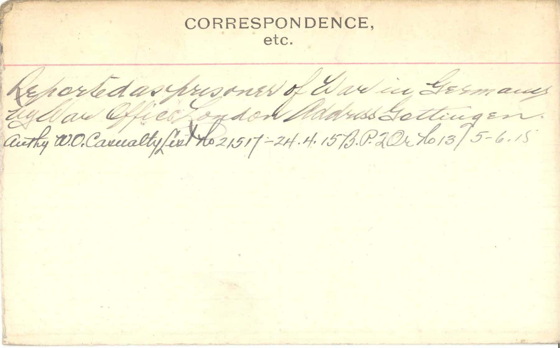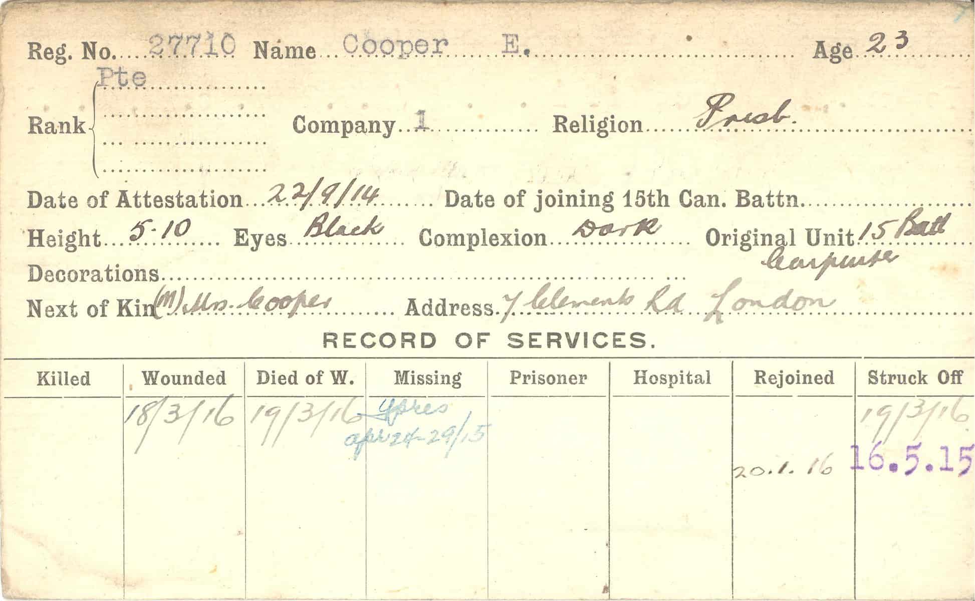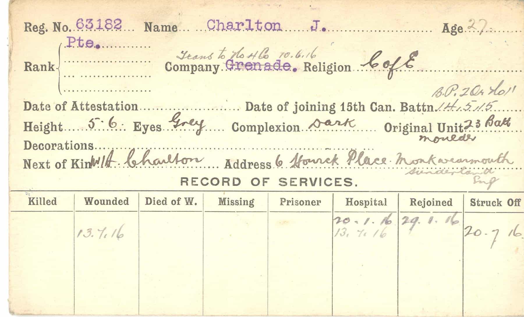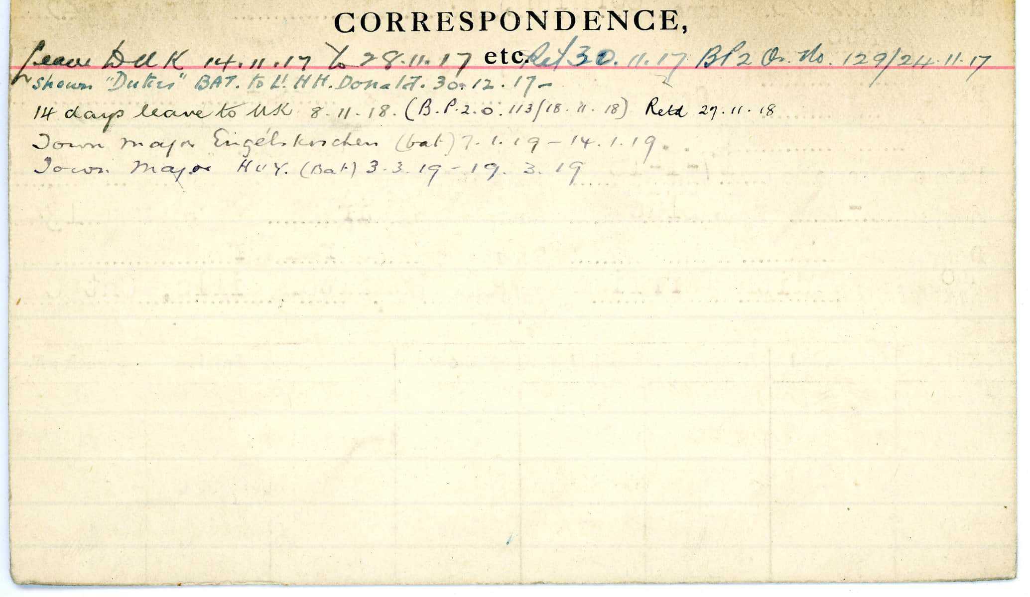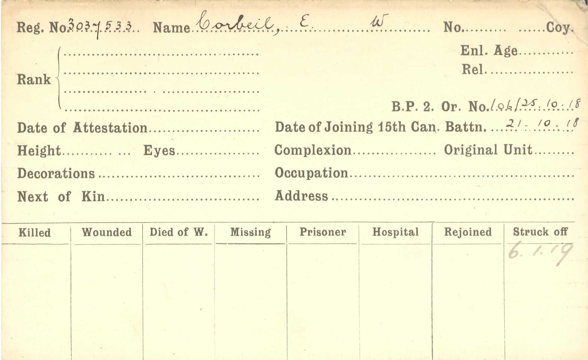 Record of Service Cards – C