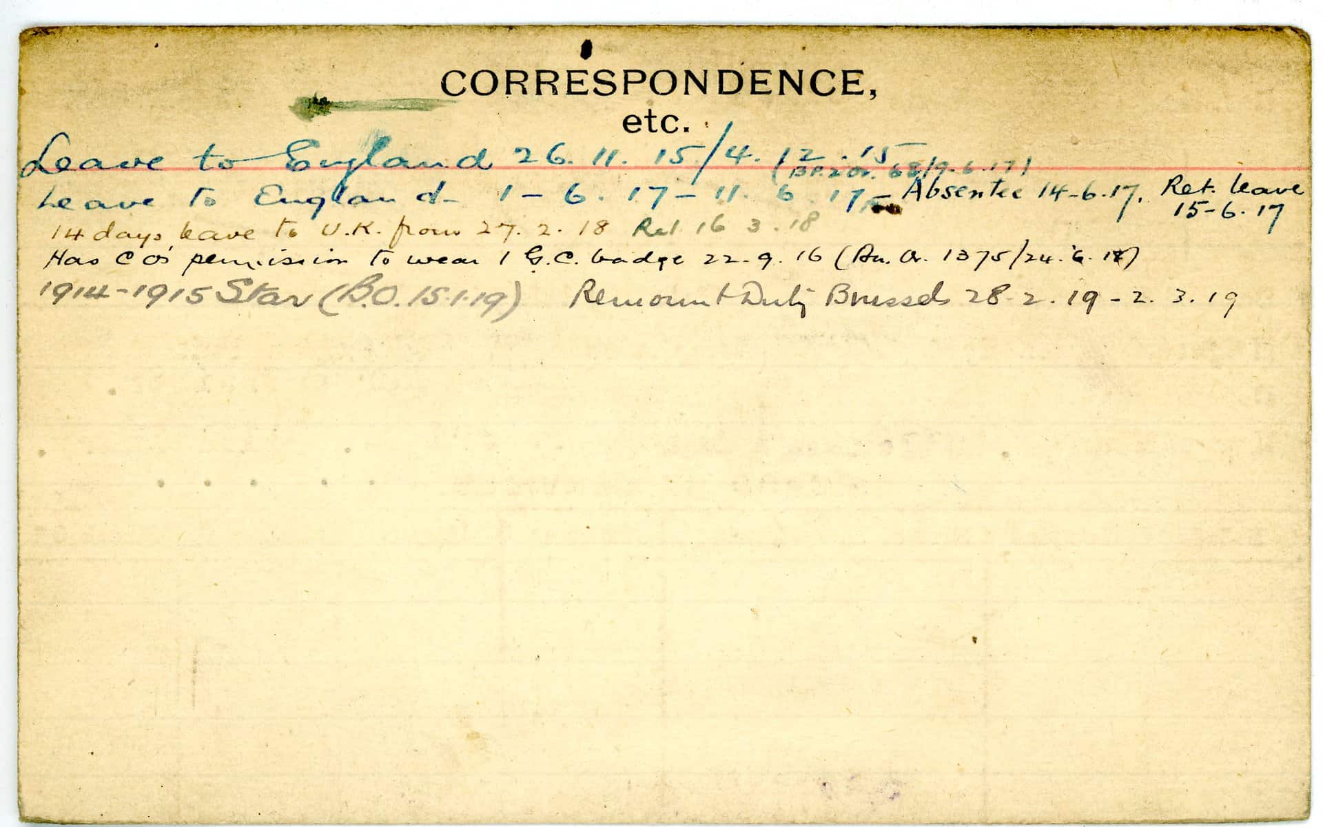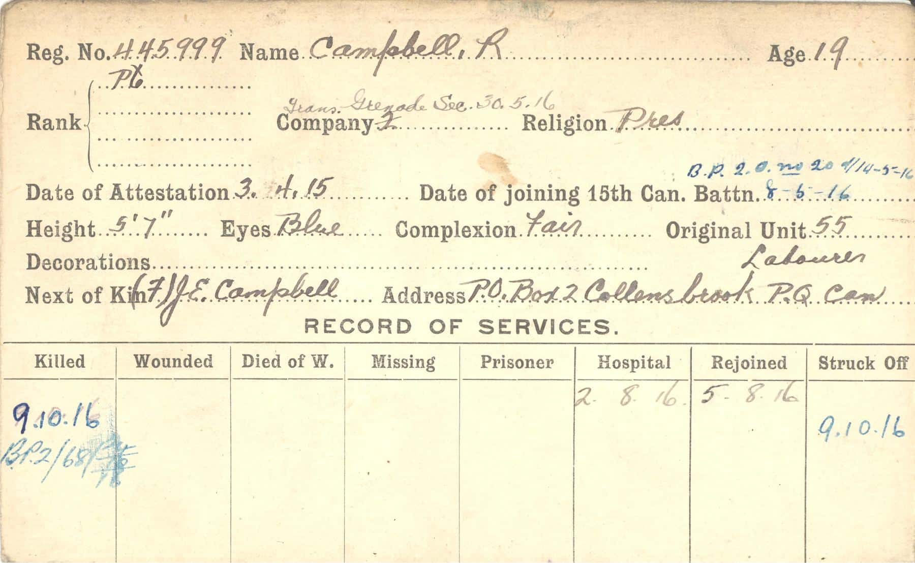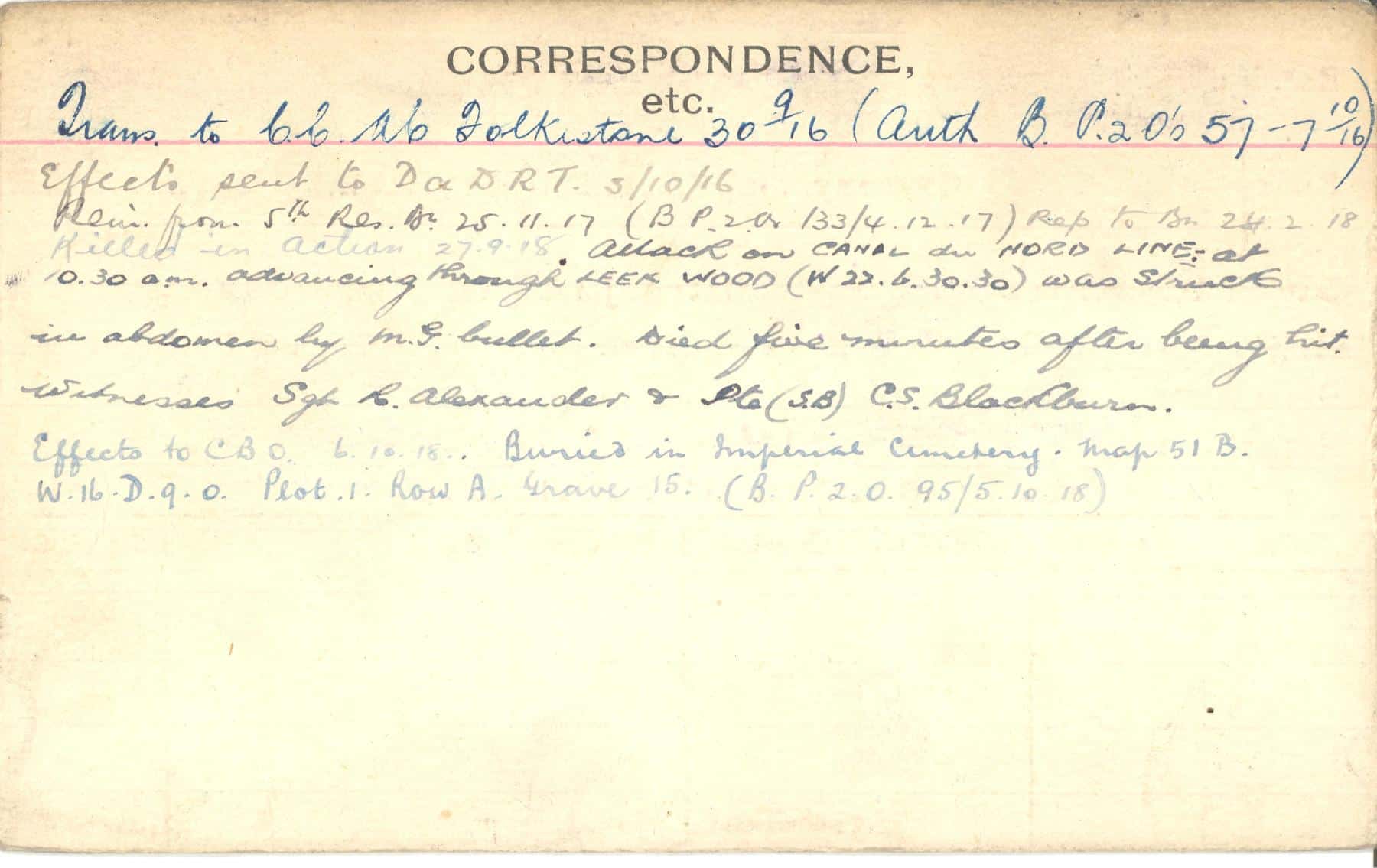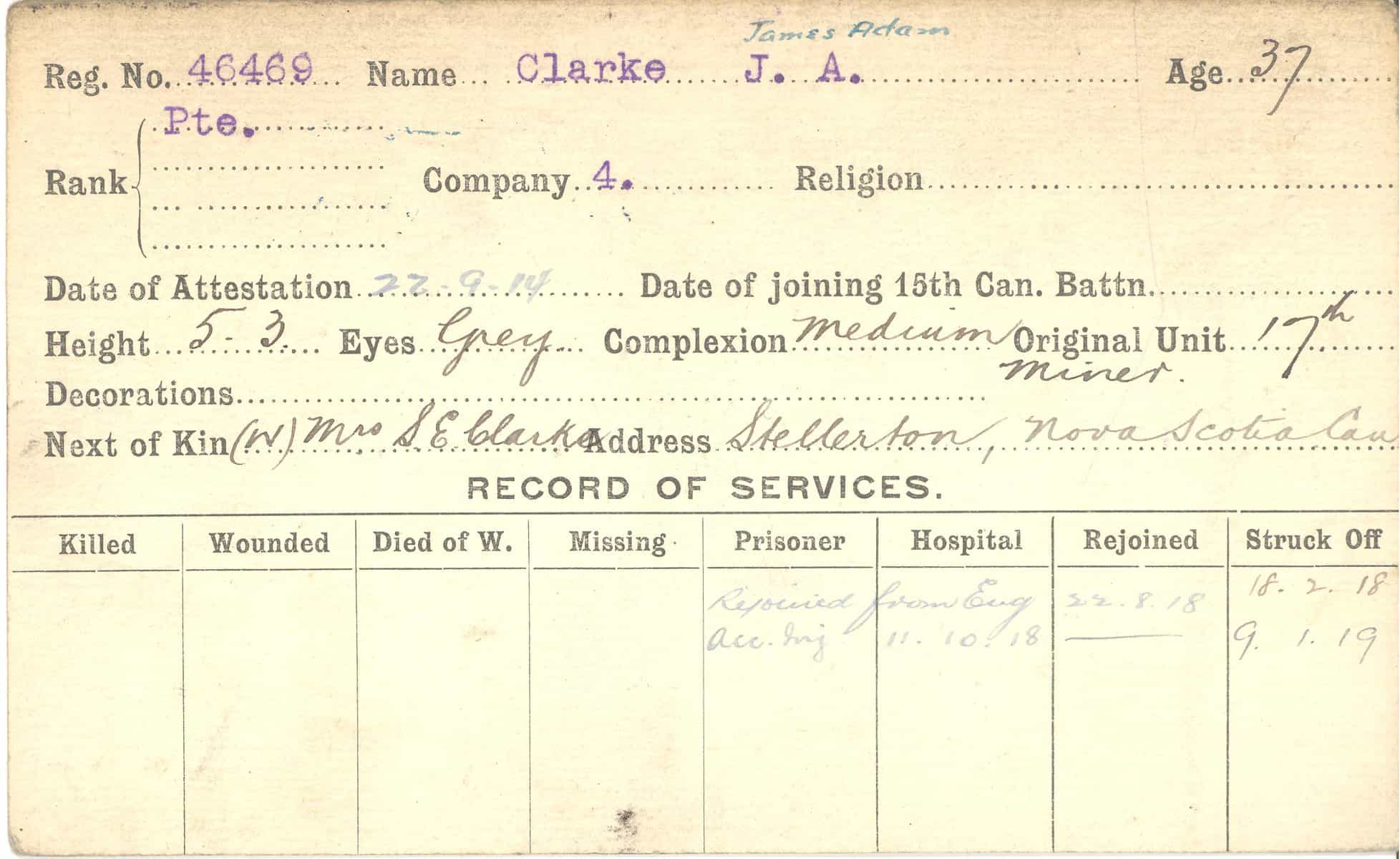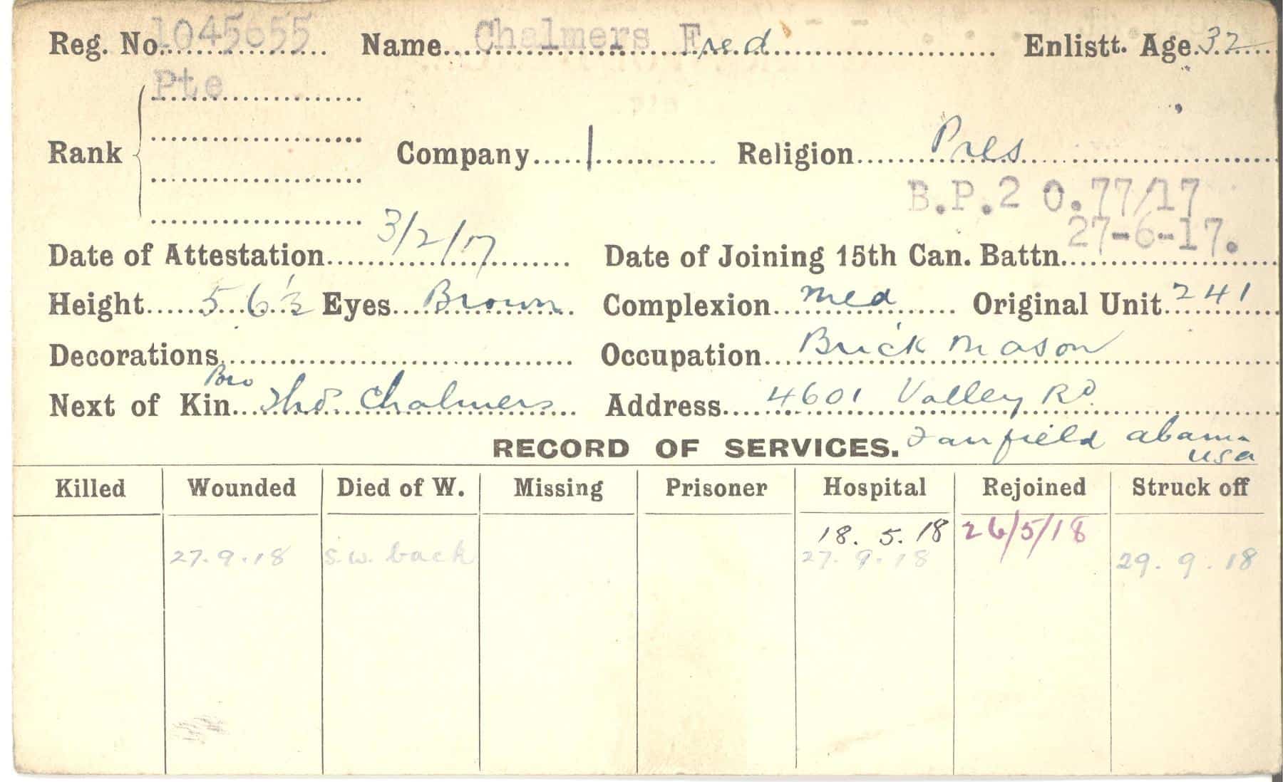 Record of Service Cards – C
