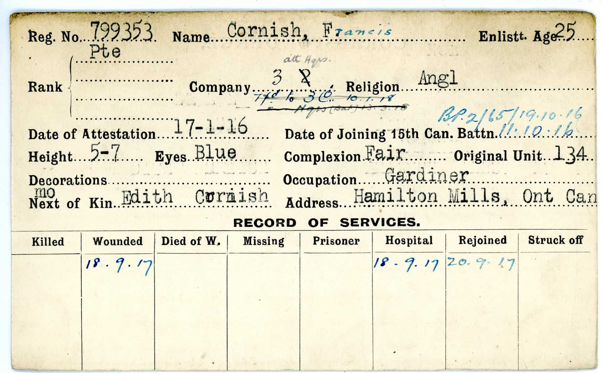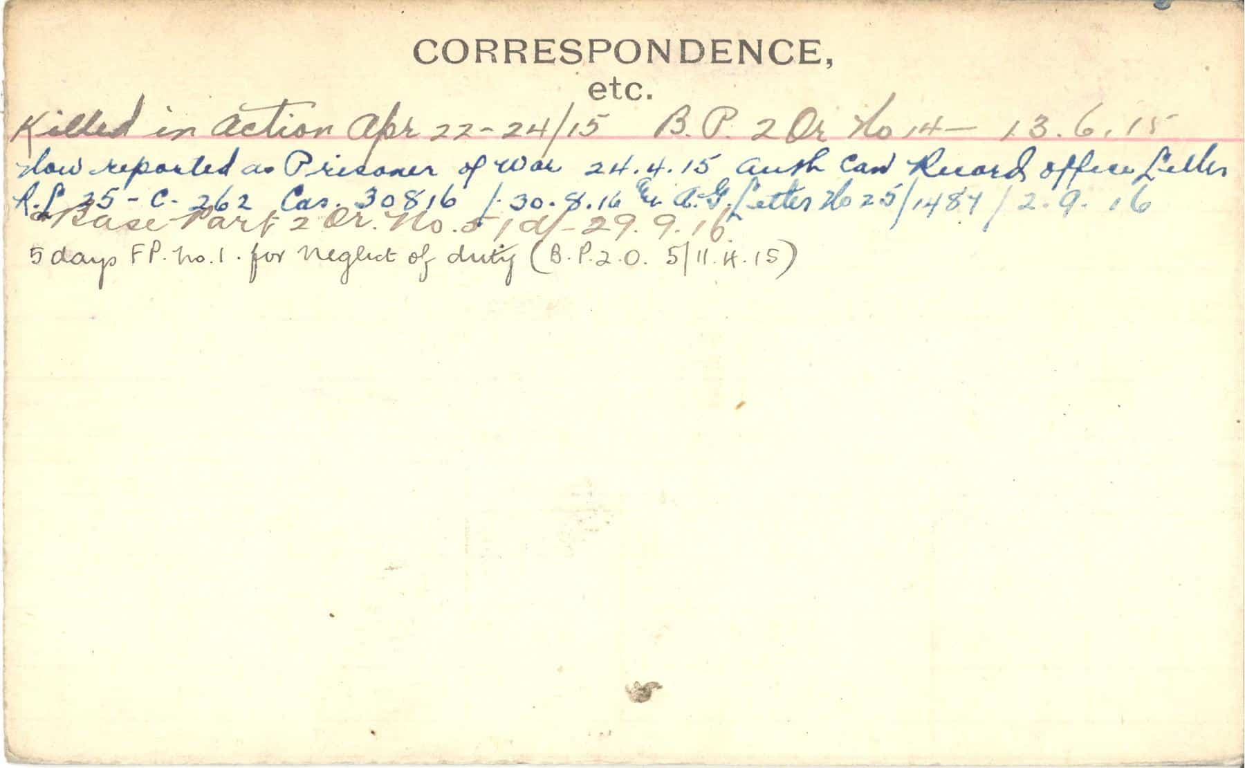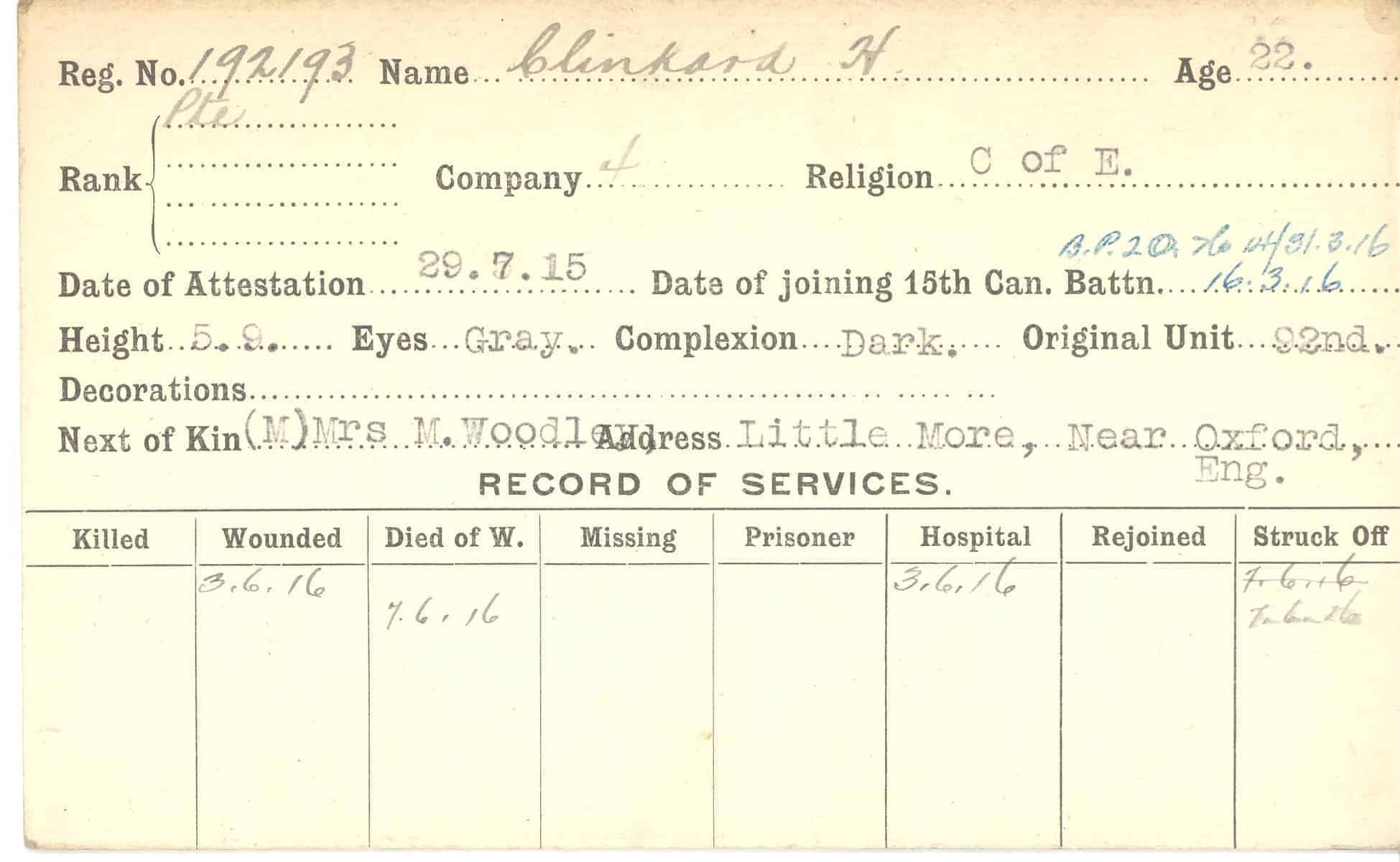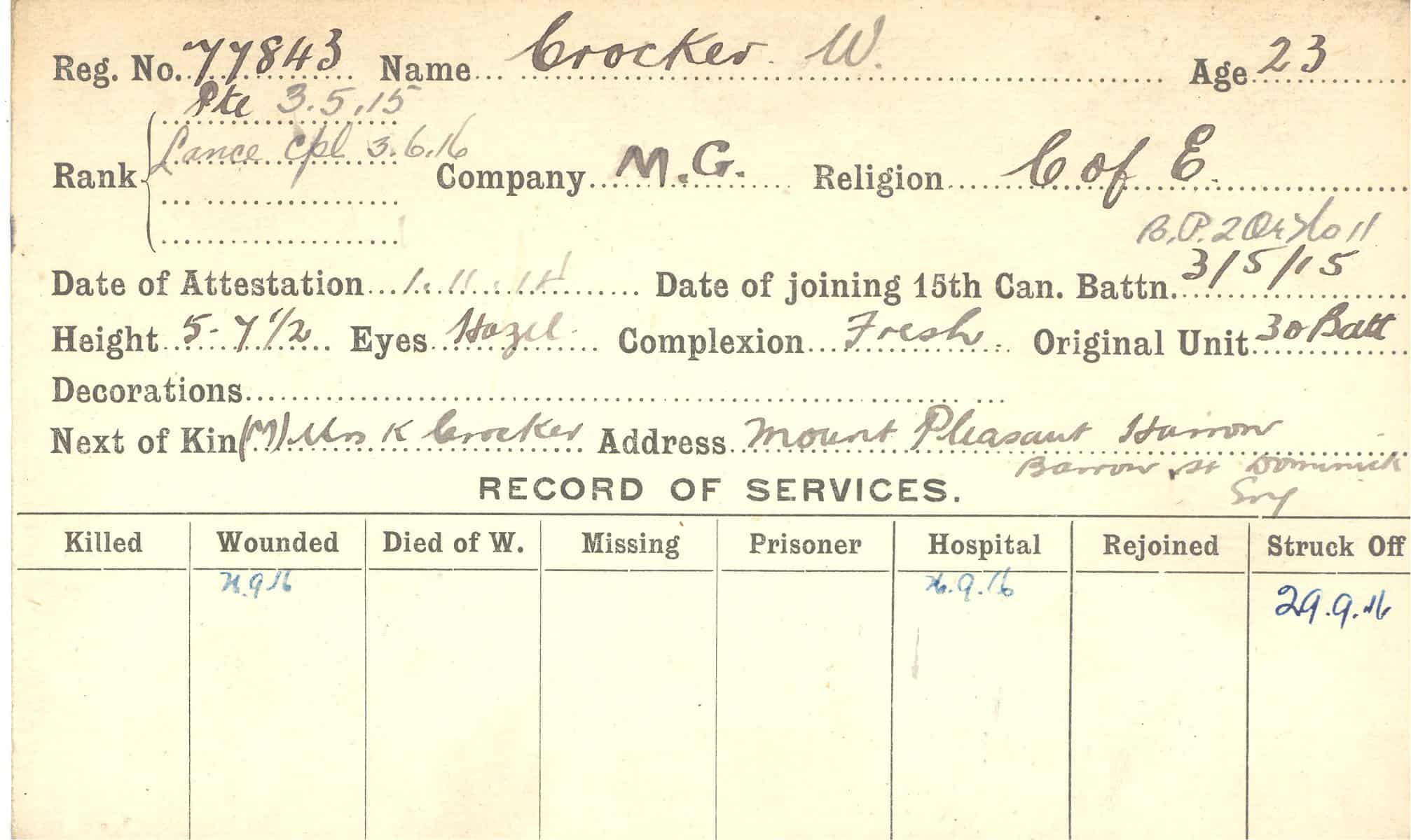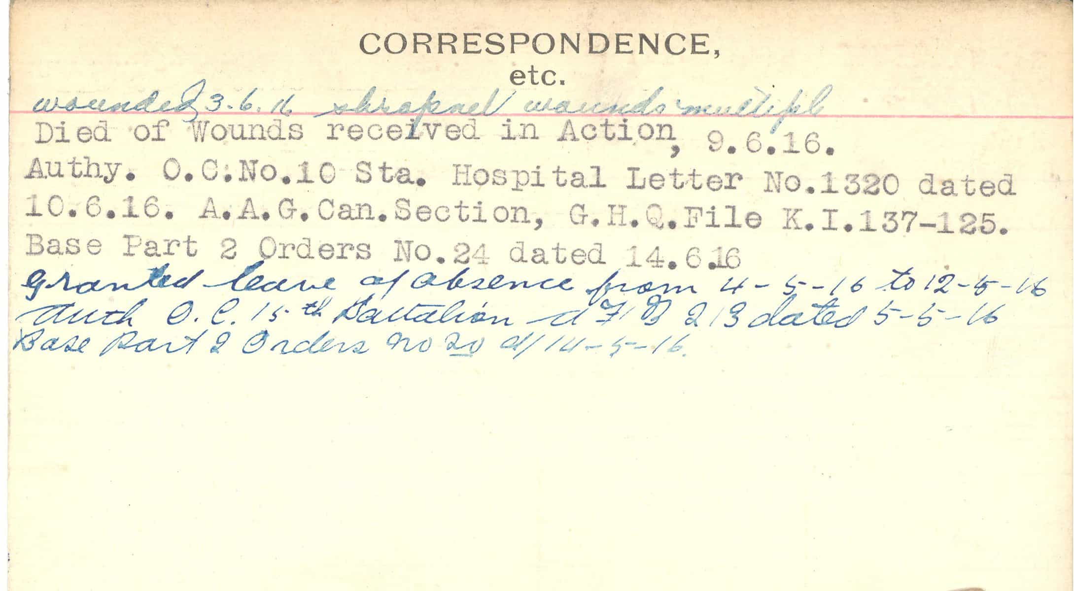 Record of Service Cards – C