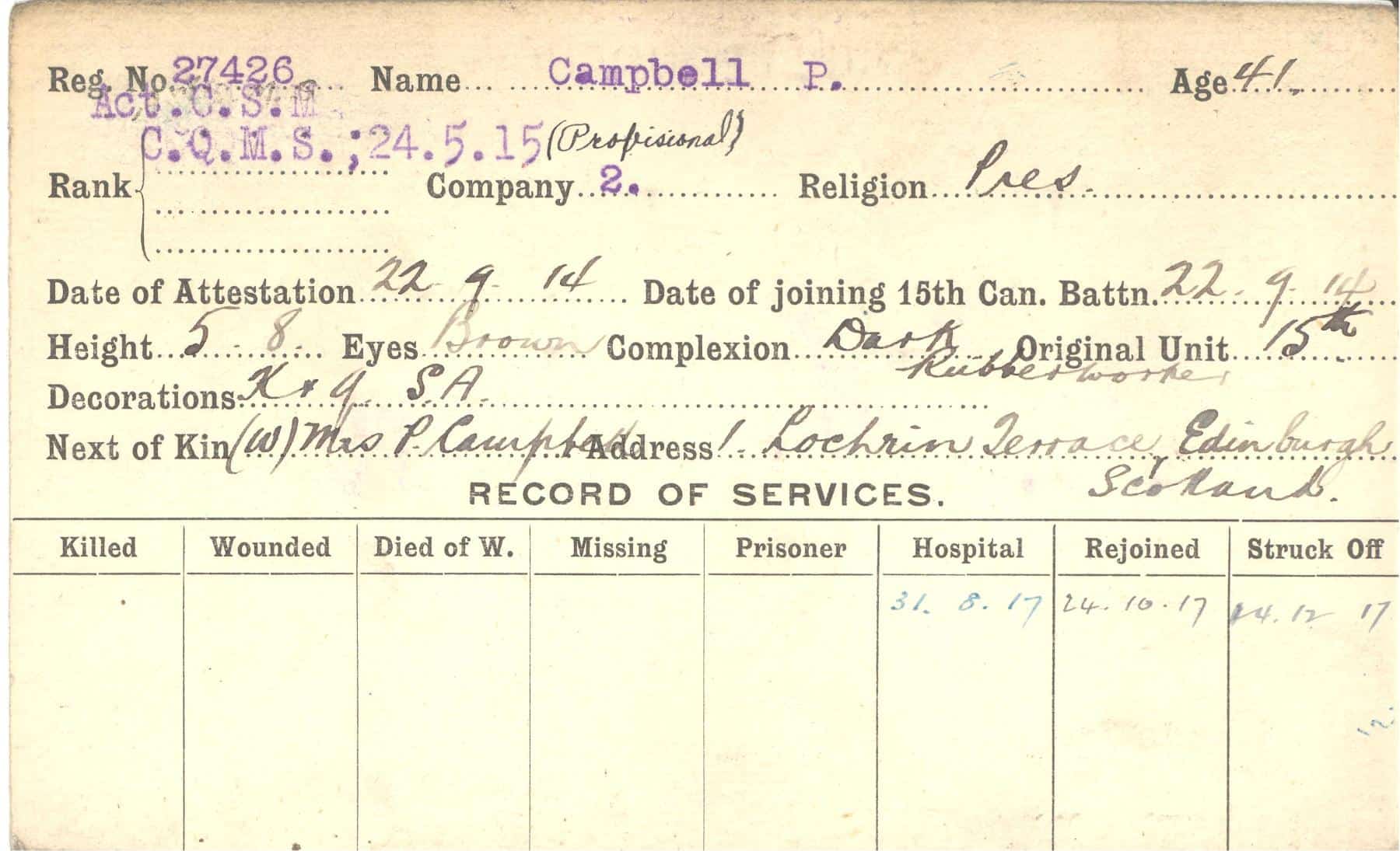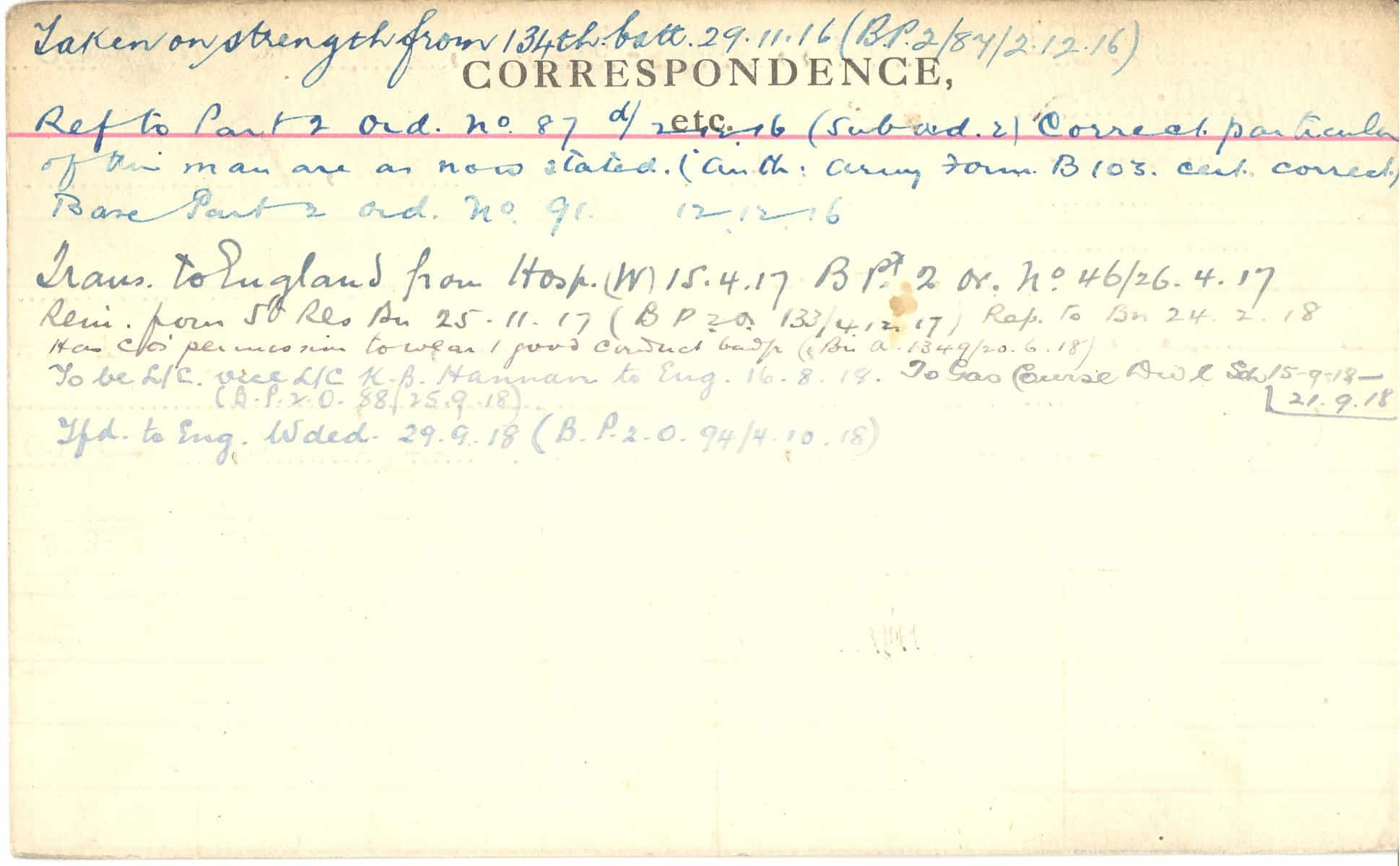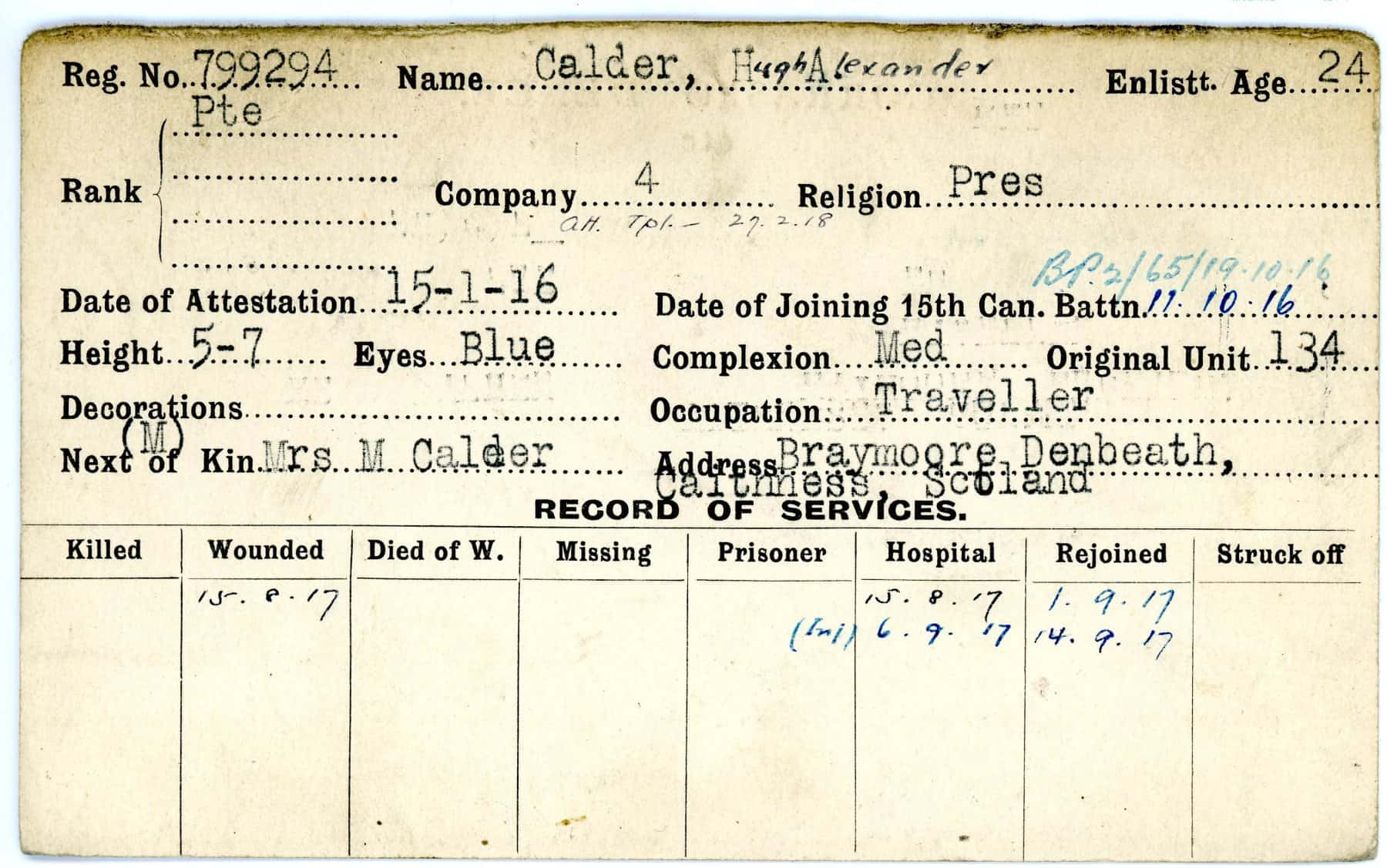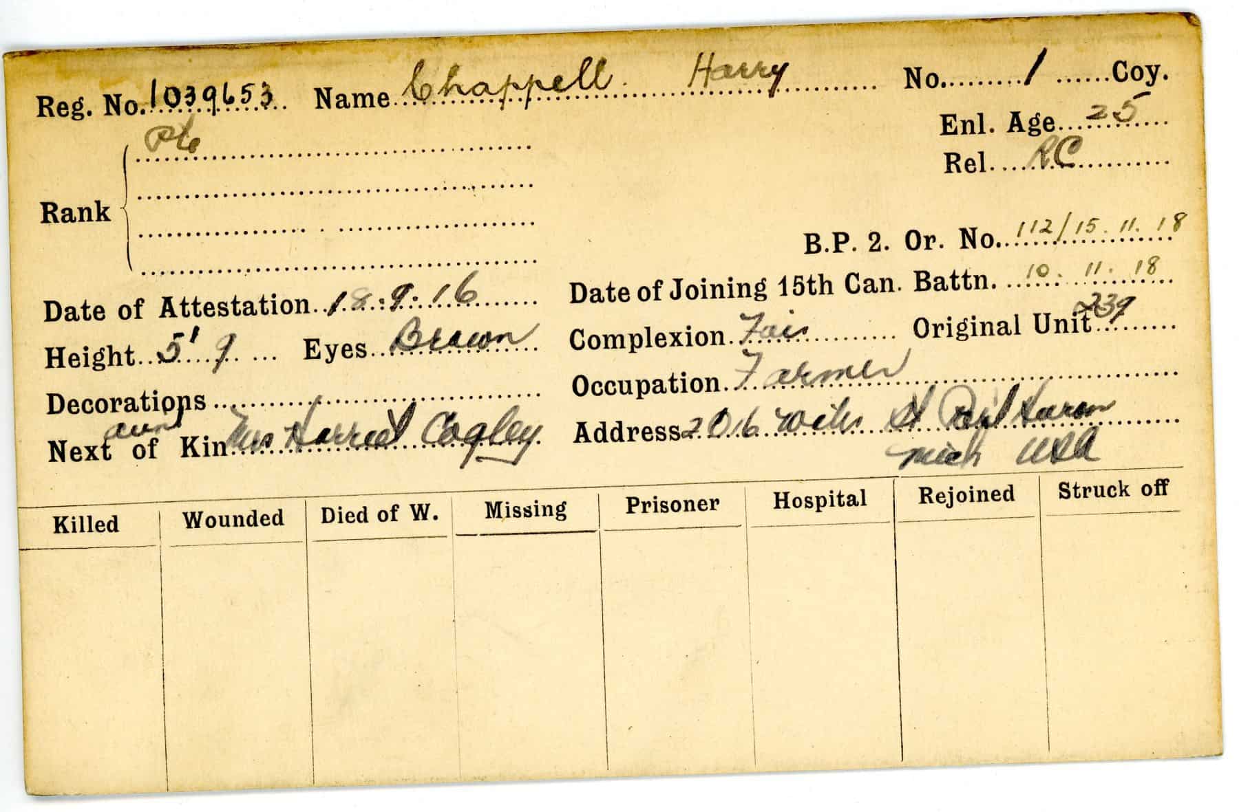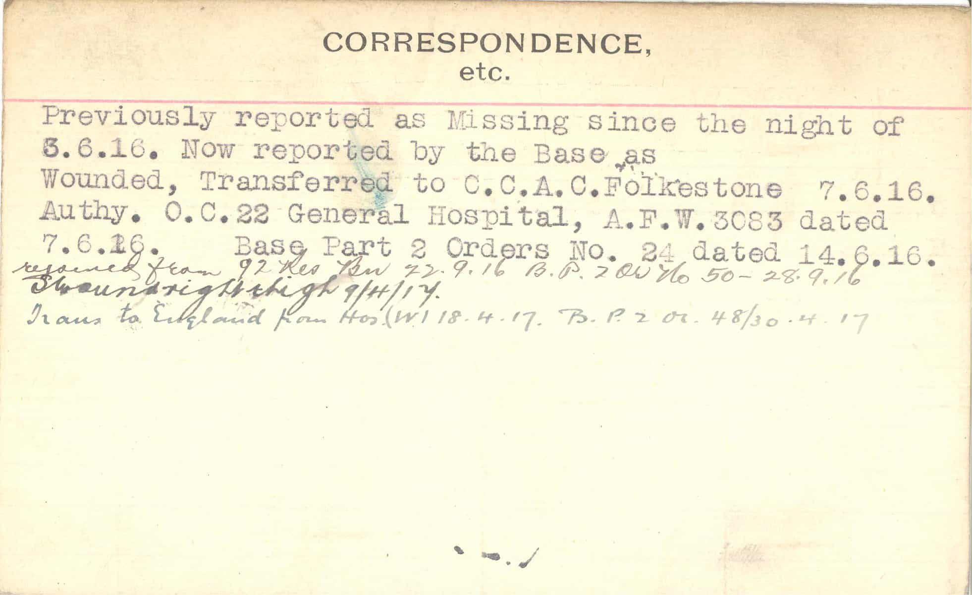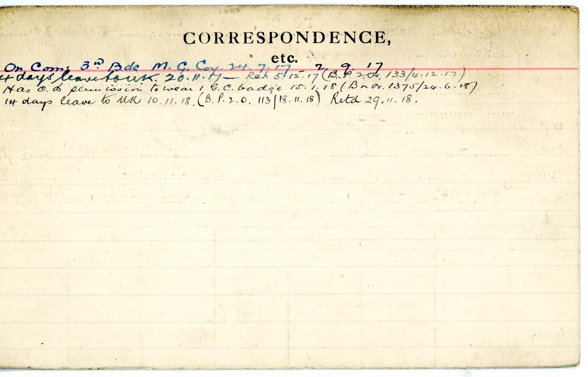 Record of Service Cards – C