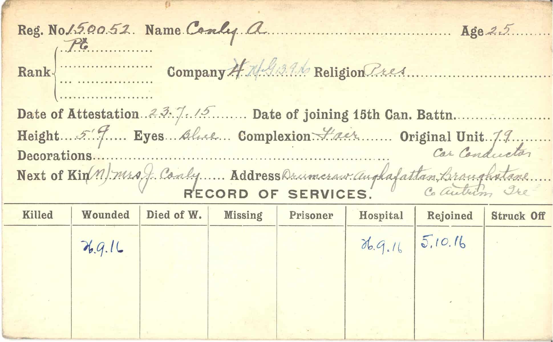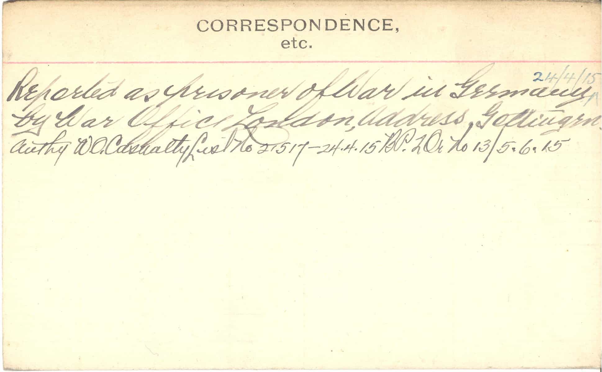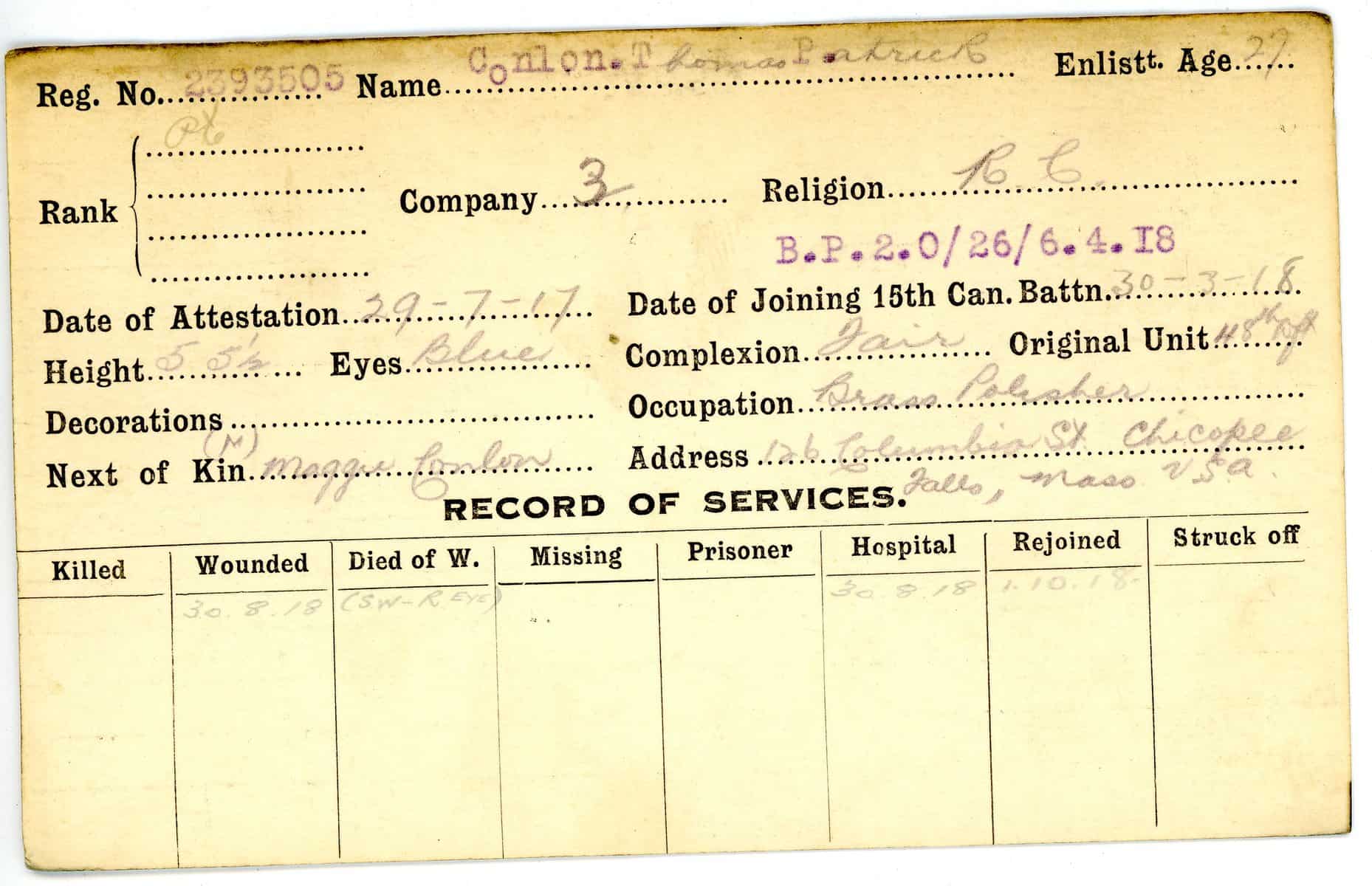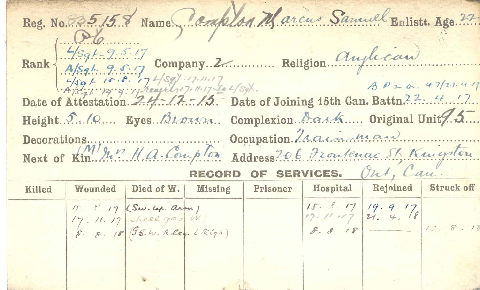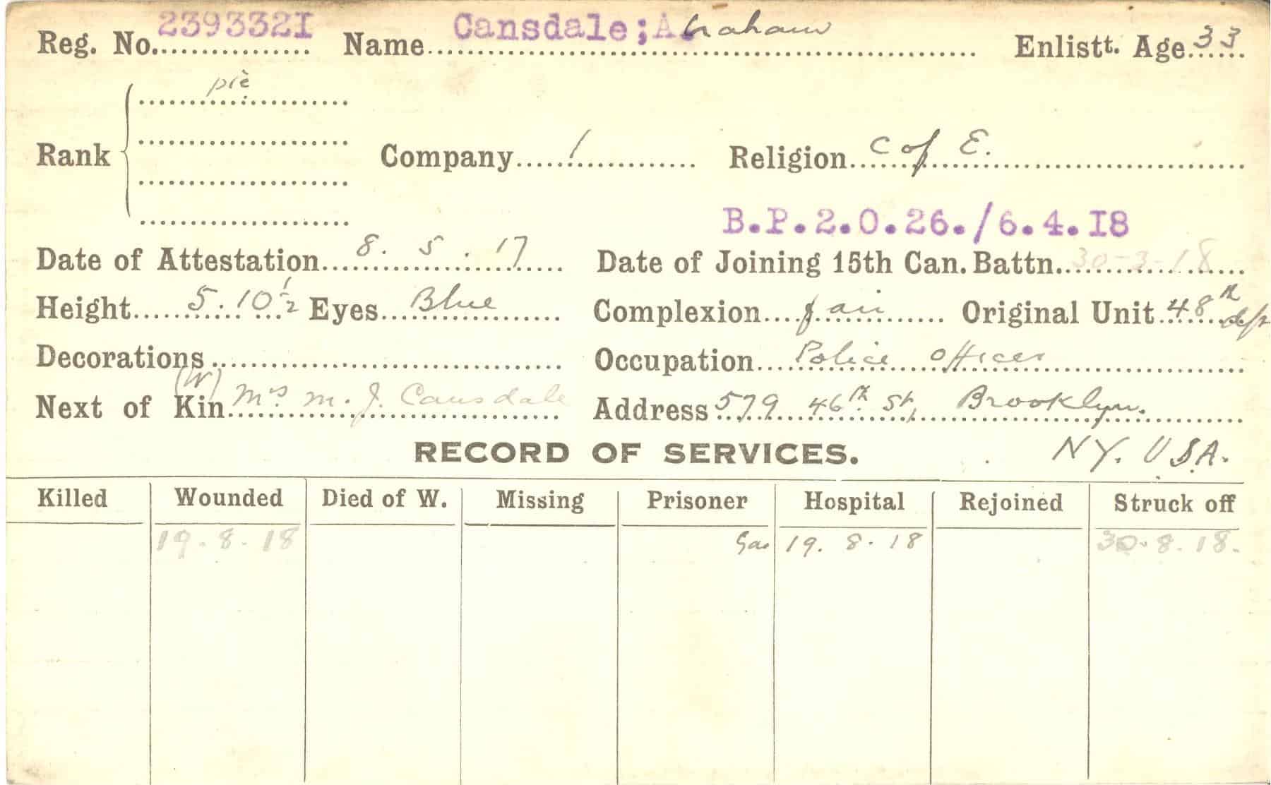 Record of Service Cards – C