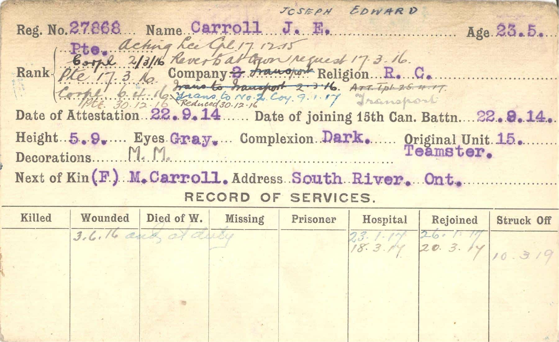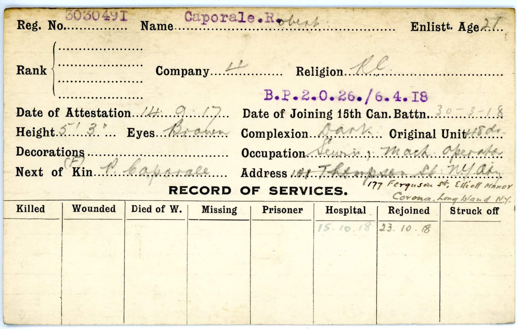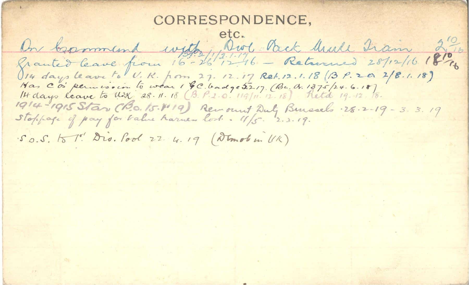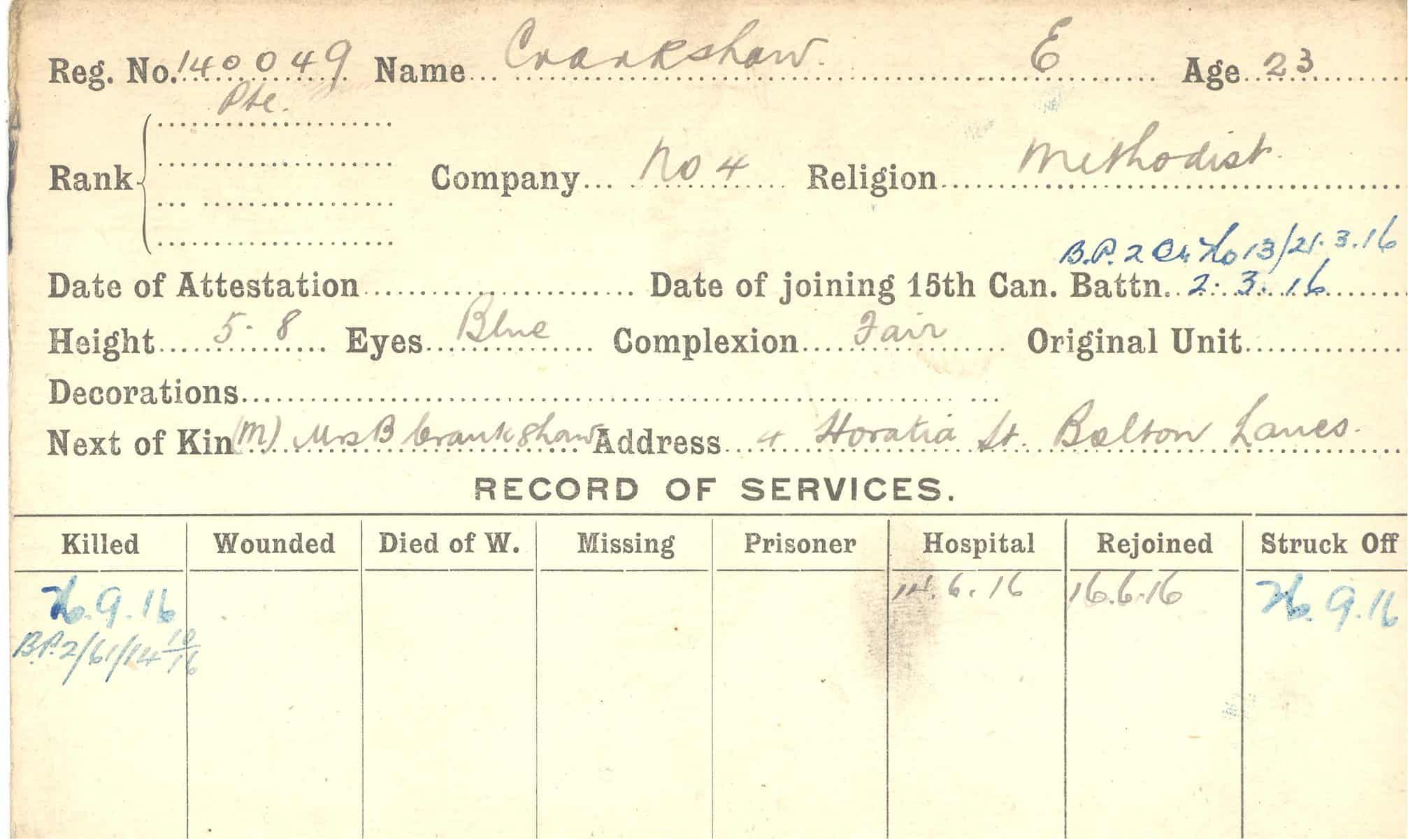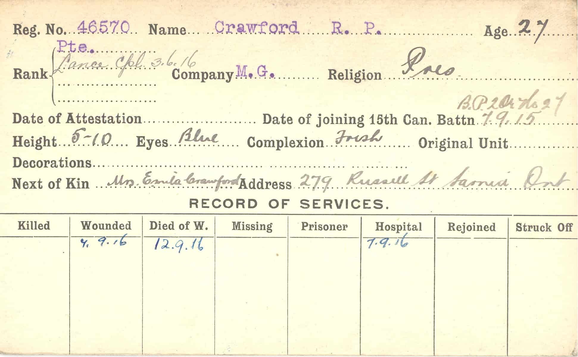 Record of Service Cards – C