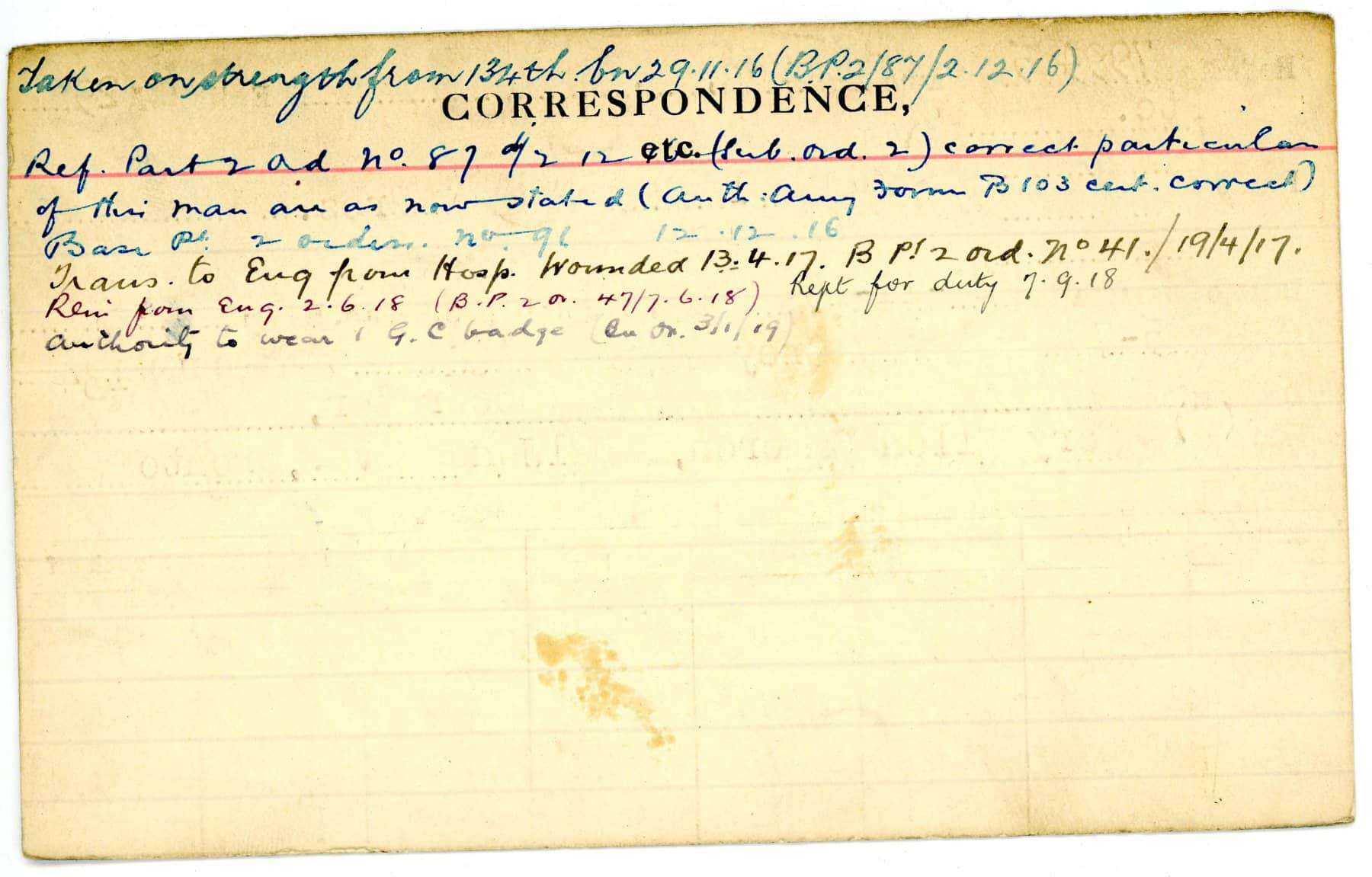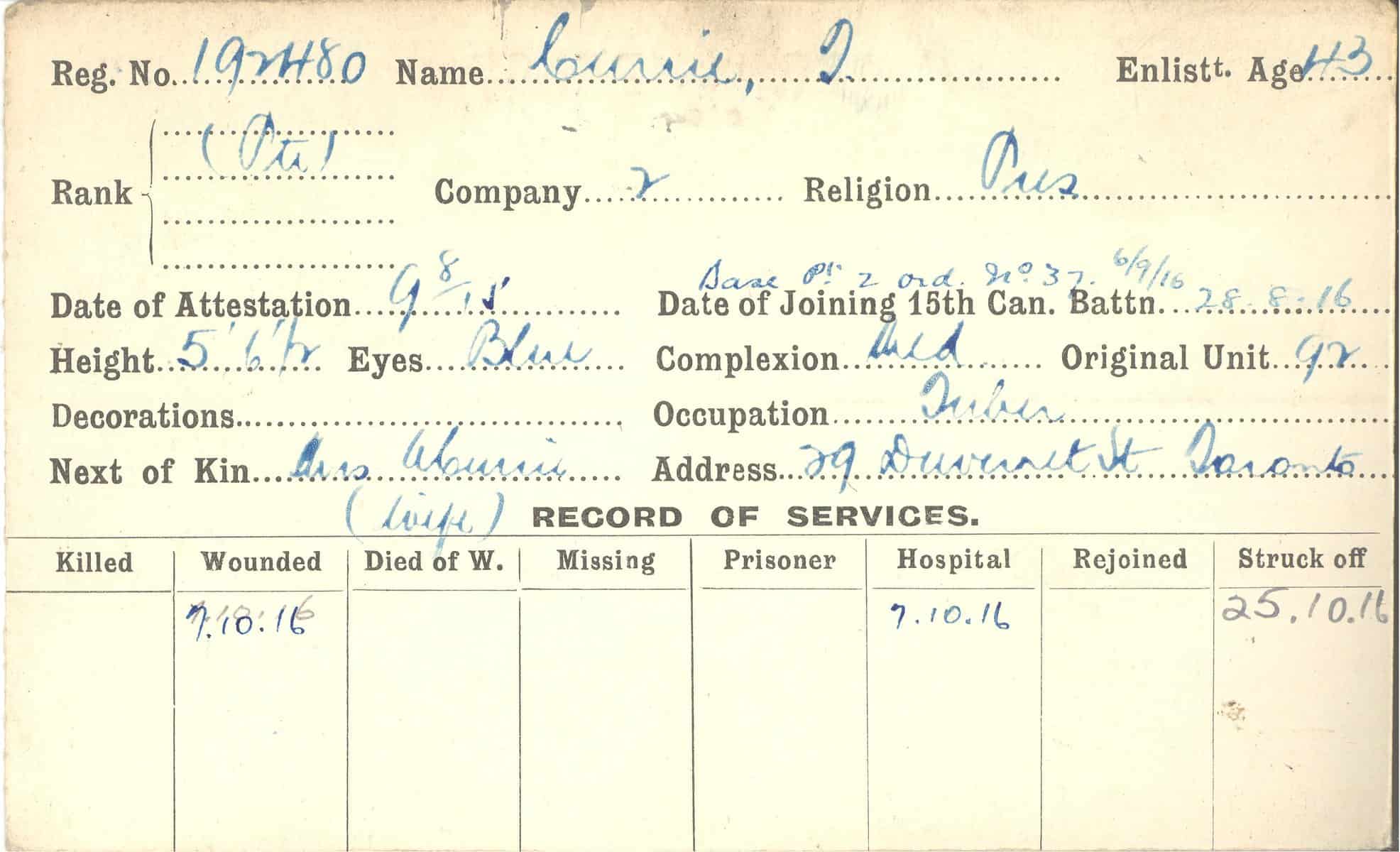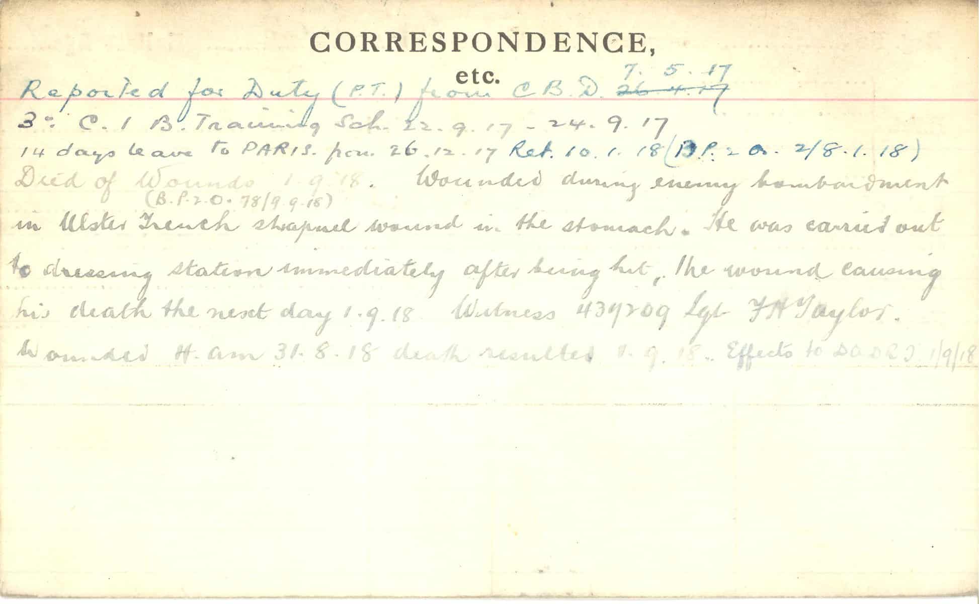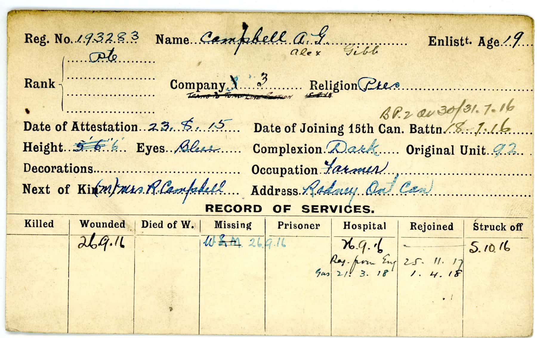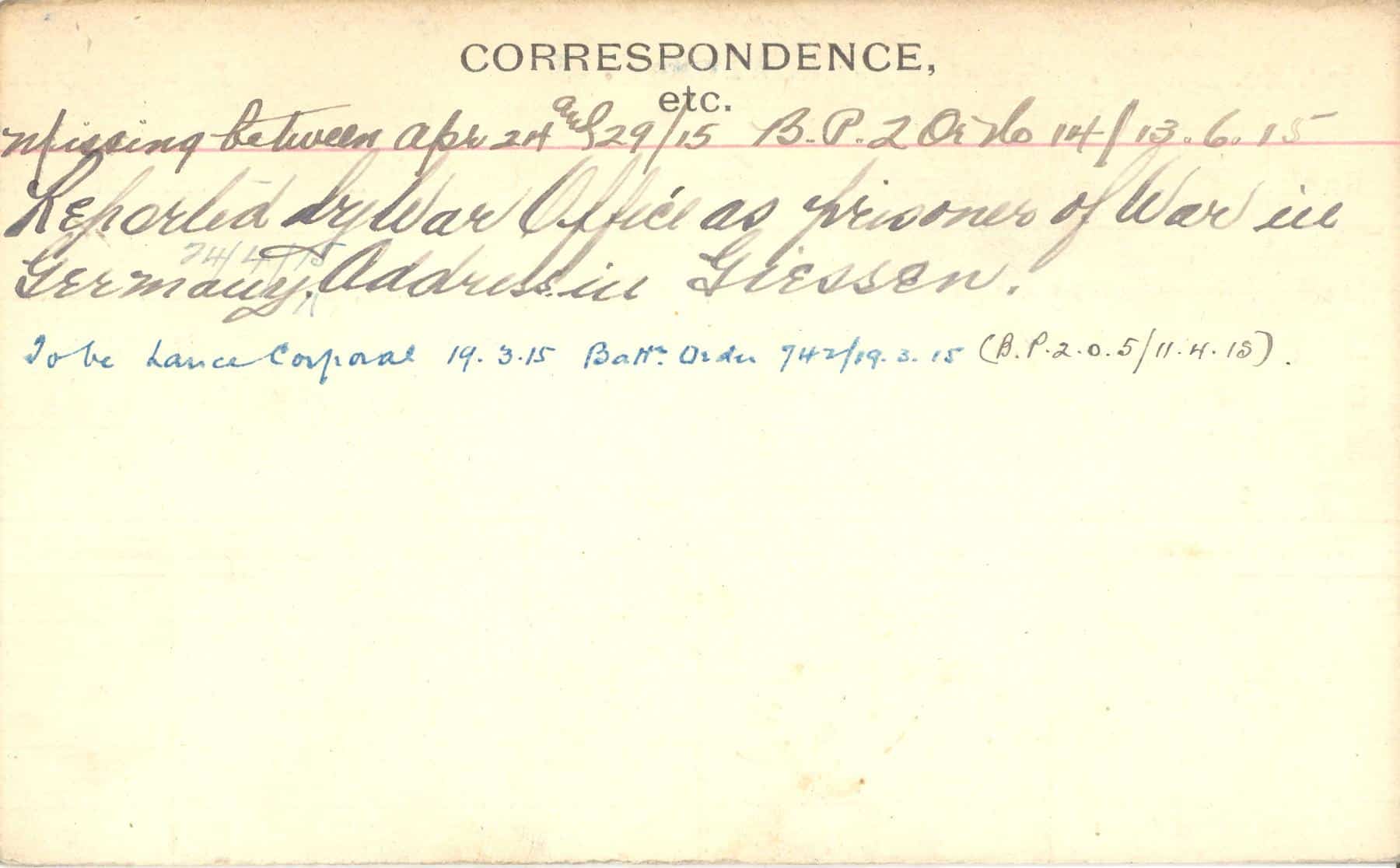 Record of Service Cards – C