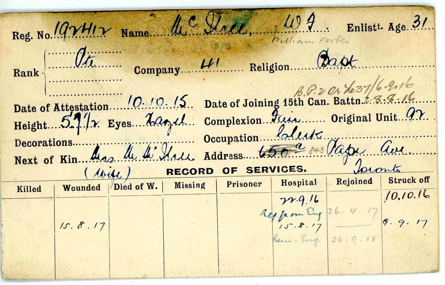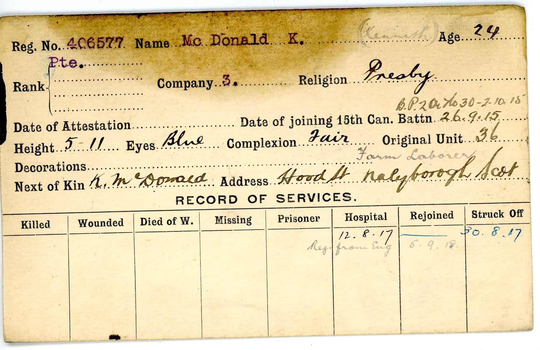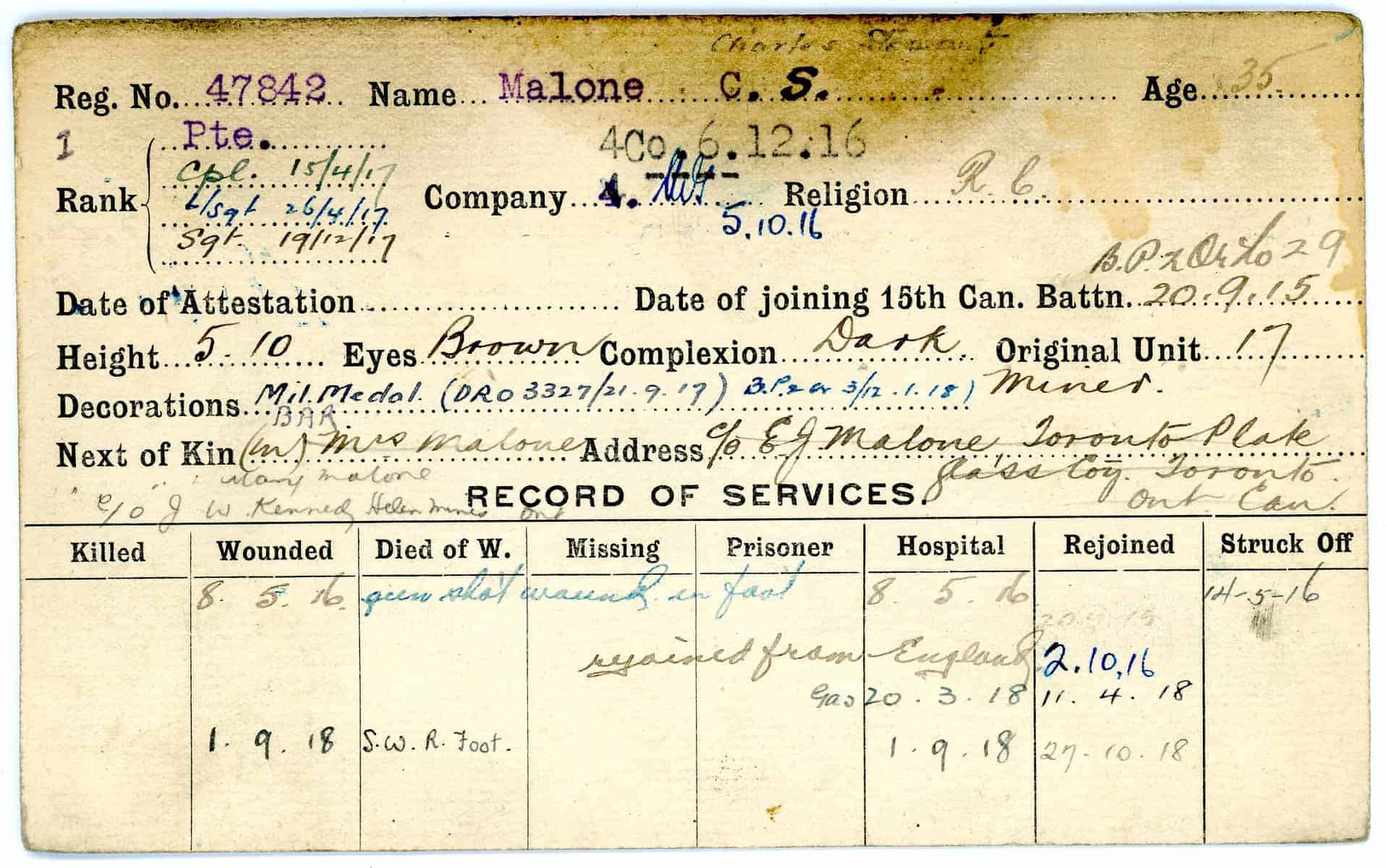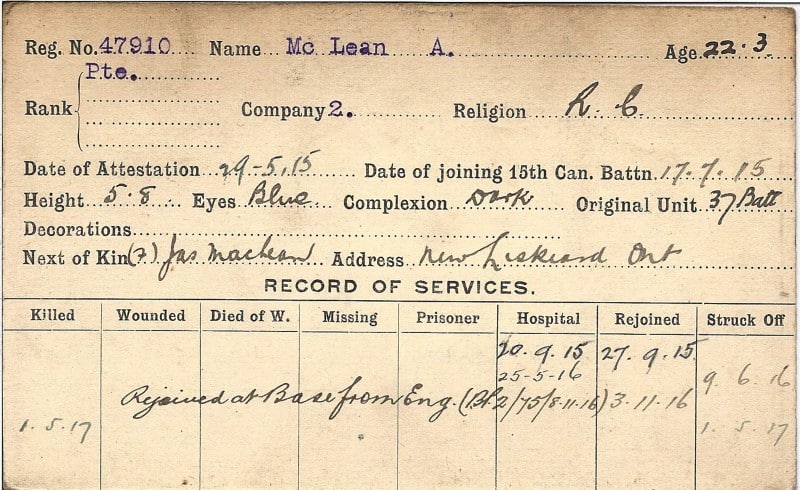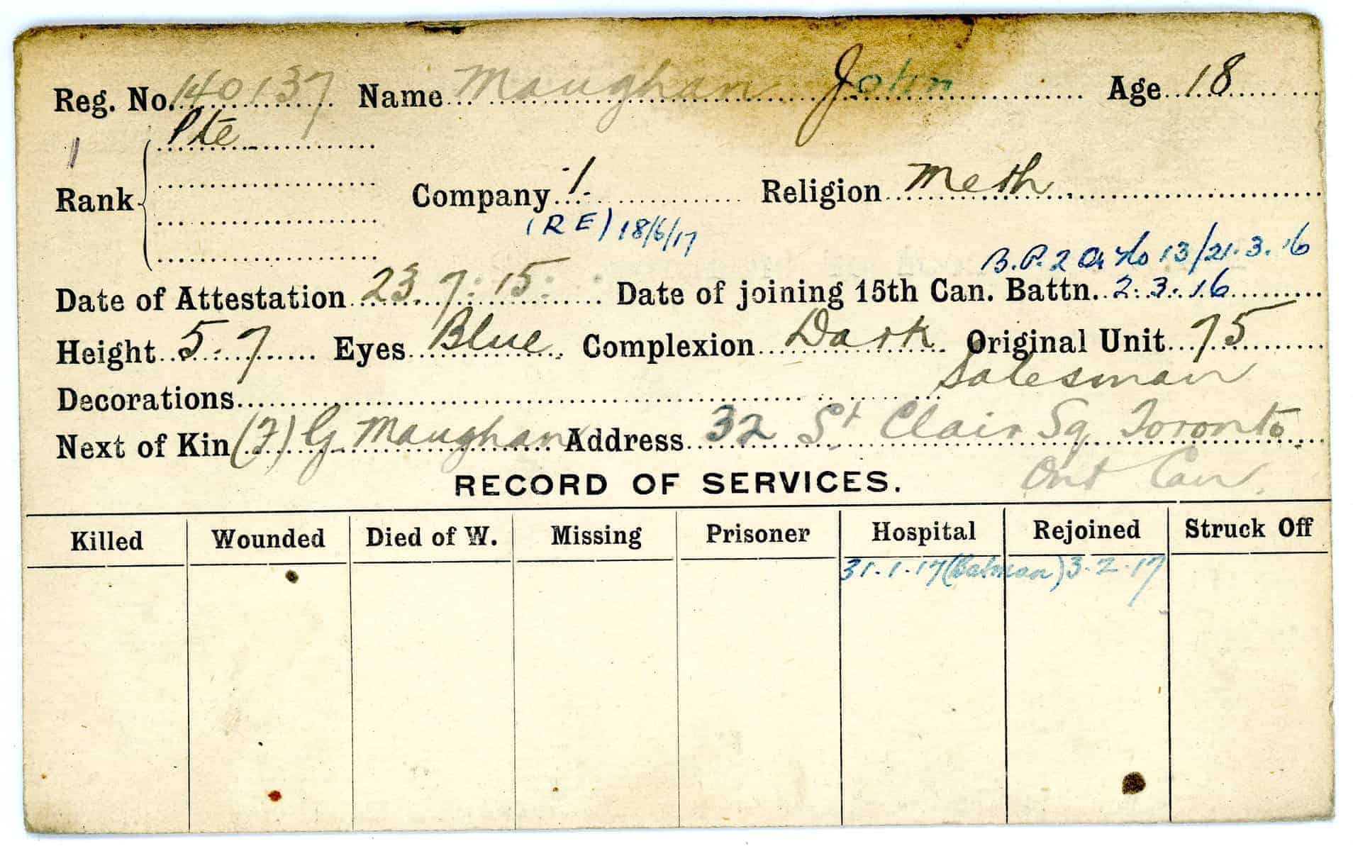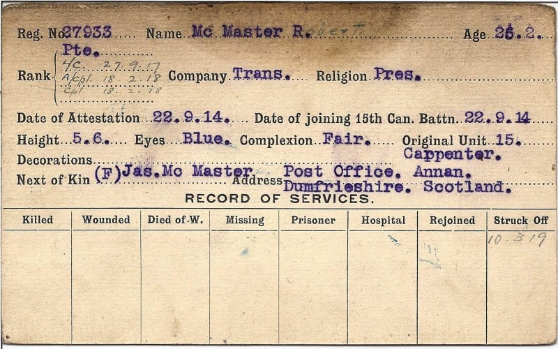 Record of Service Cards – Ma – Mc