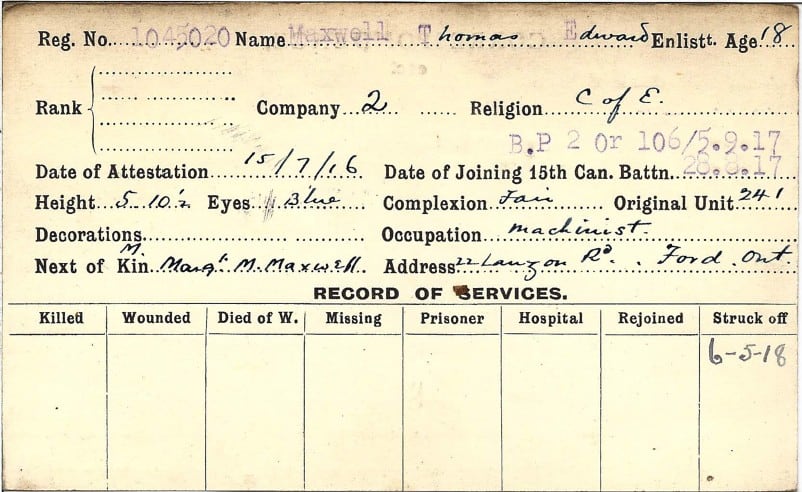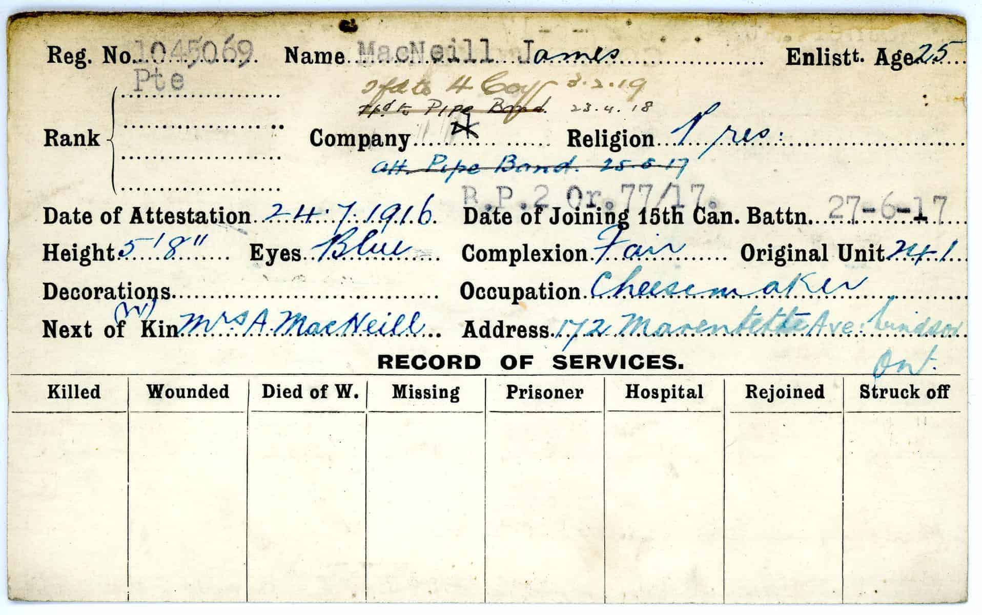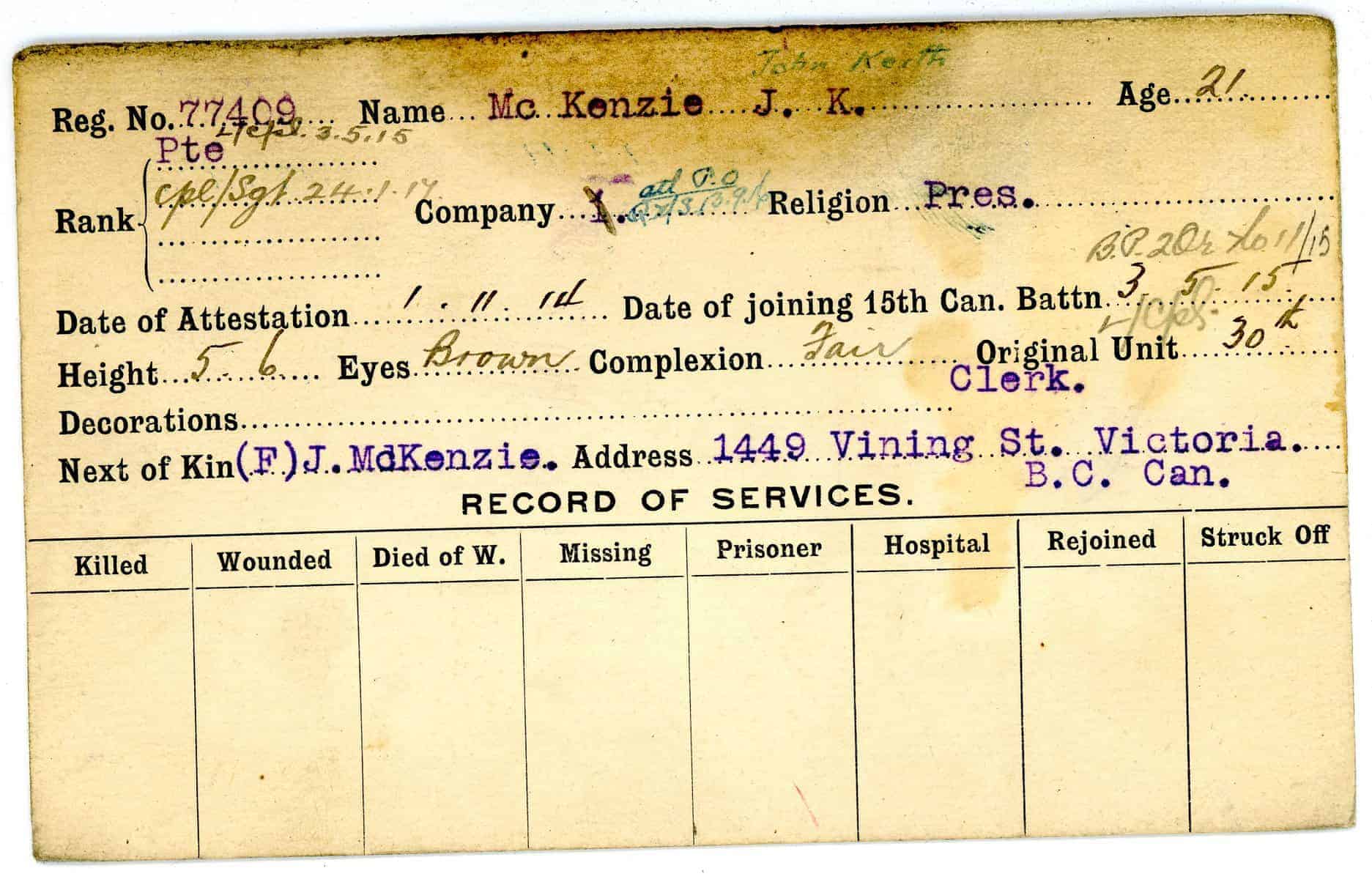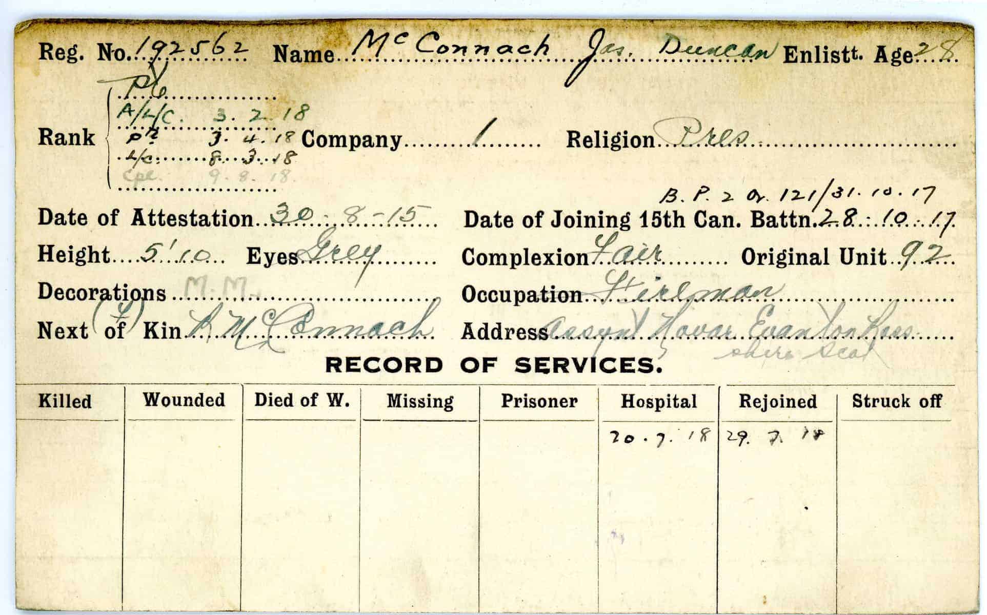 Record of Service Cards – Ma – Mc