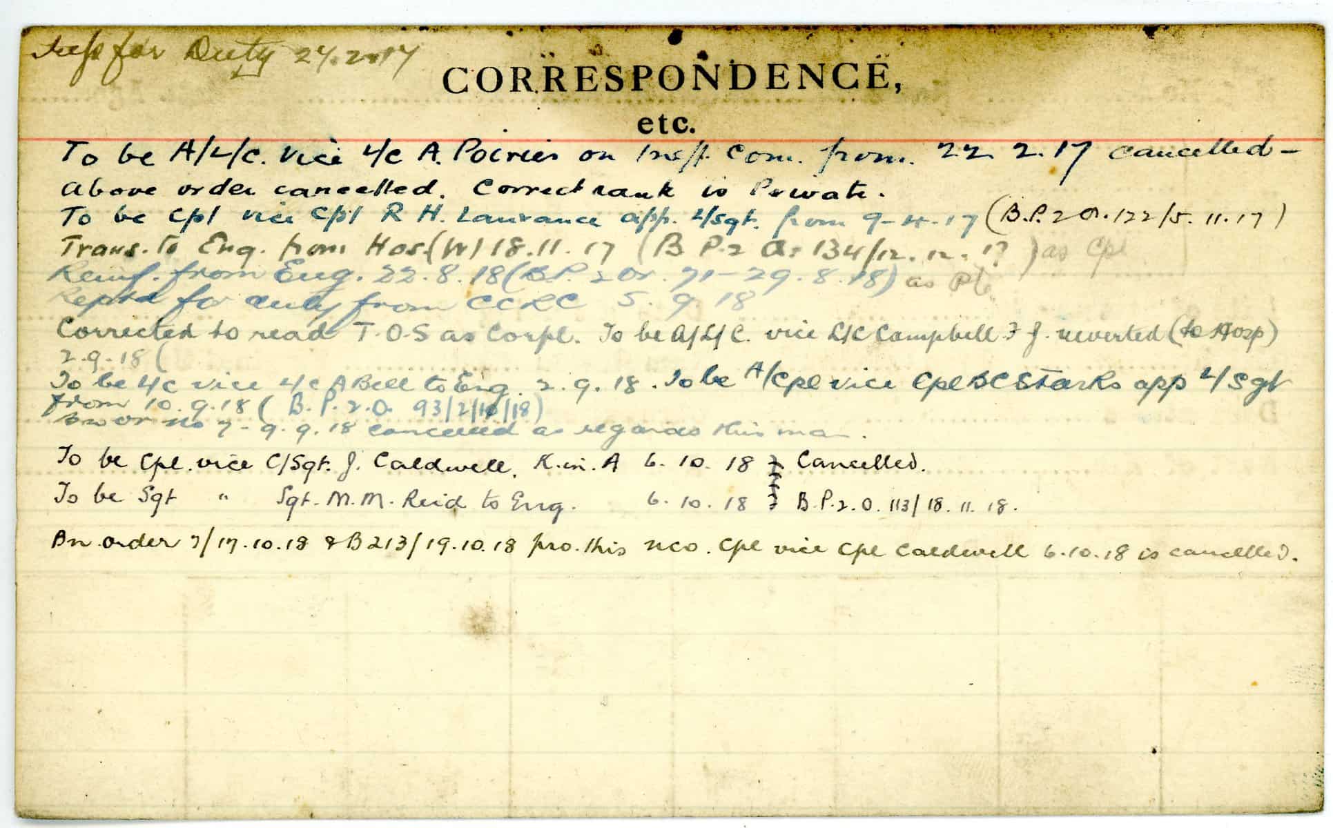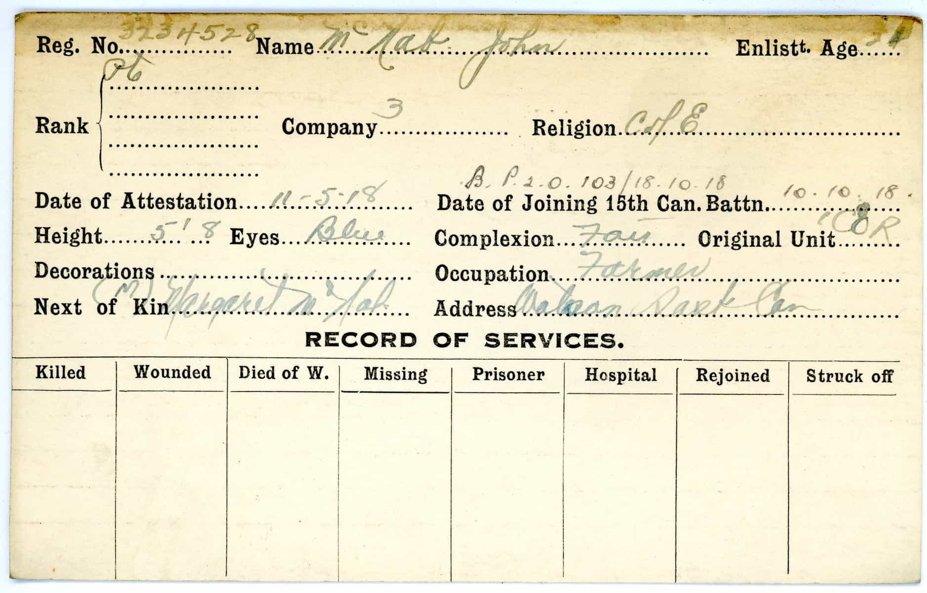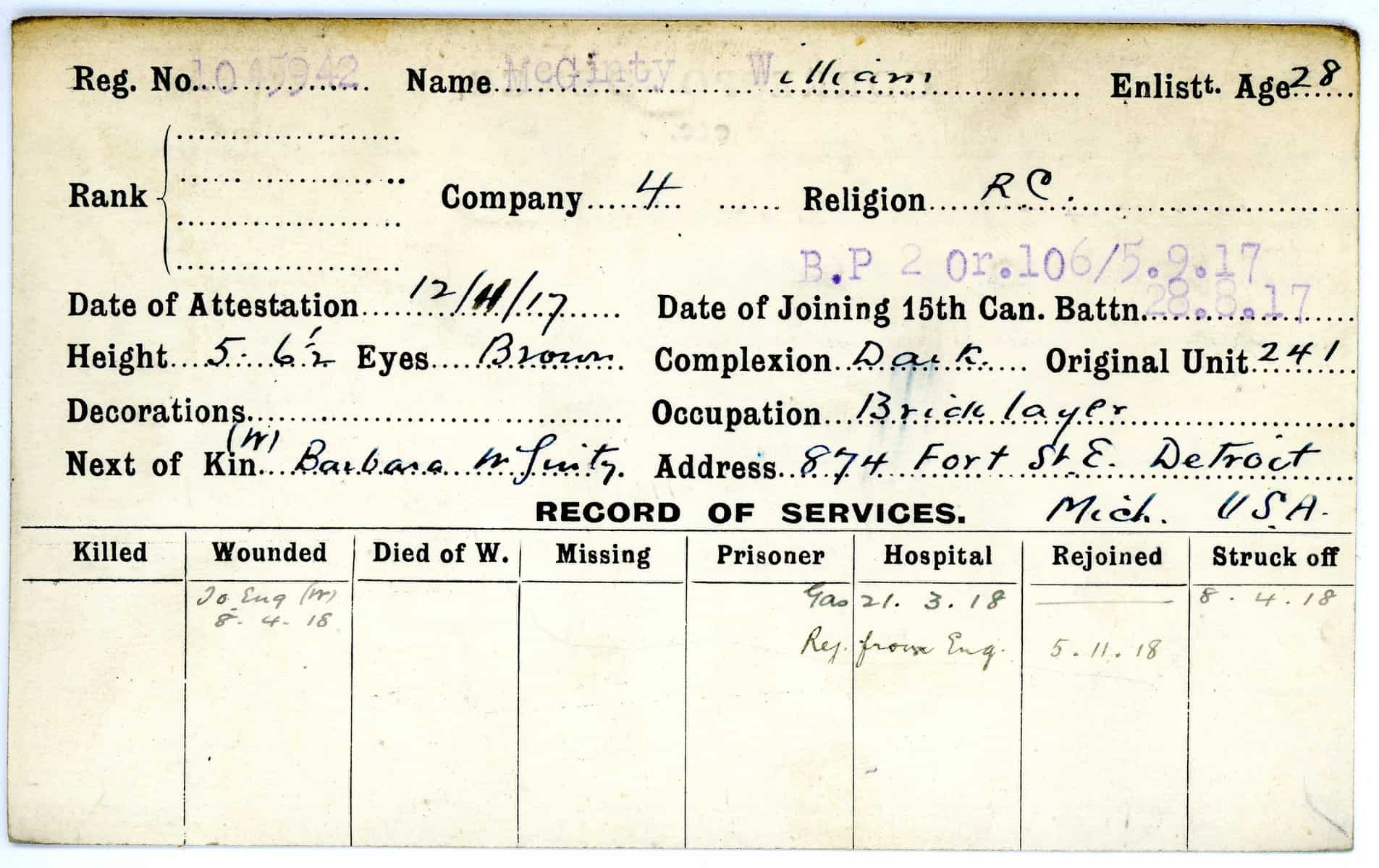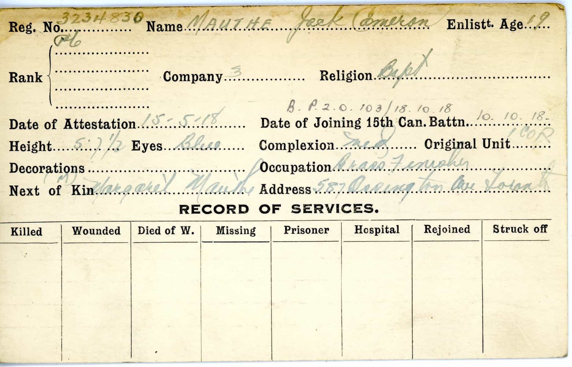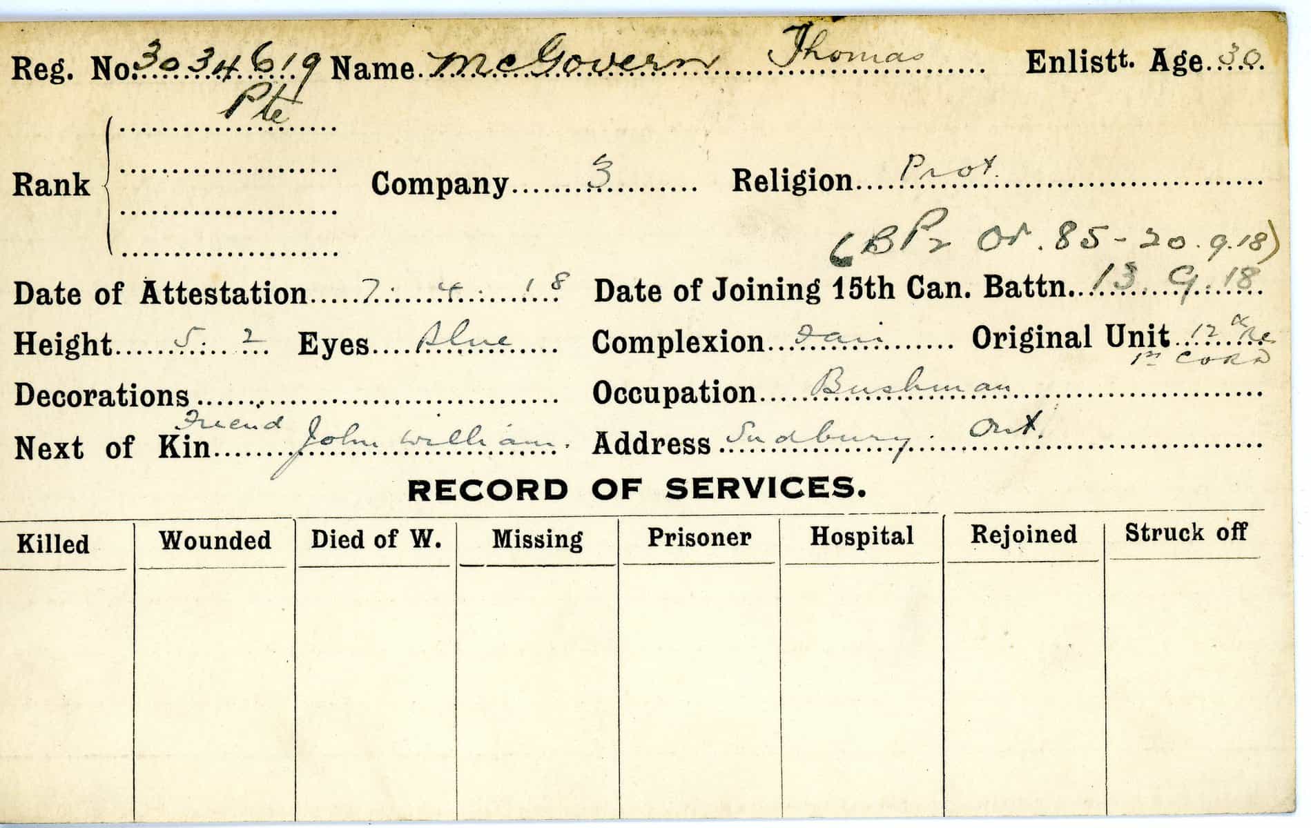 Record of Service Cards – Ma – Mc