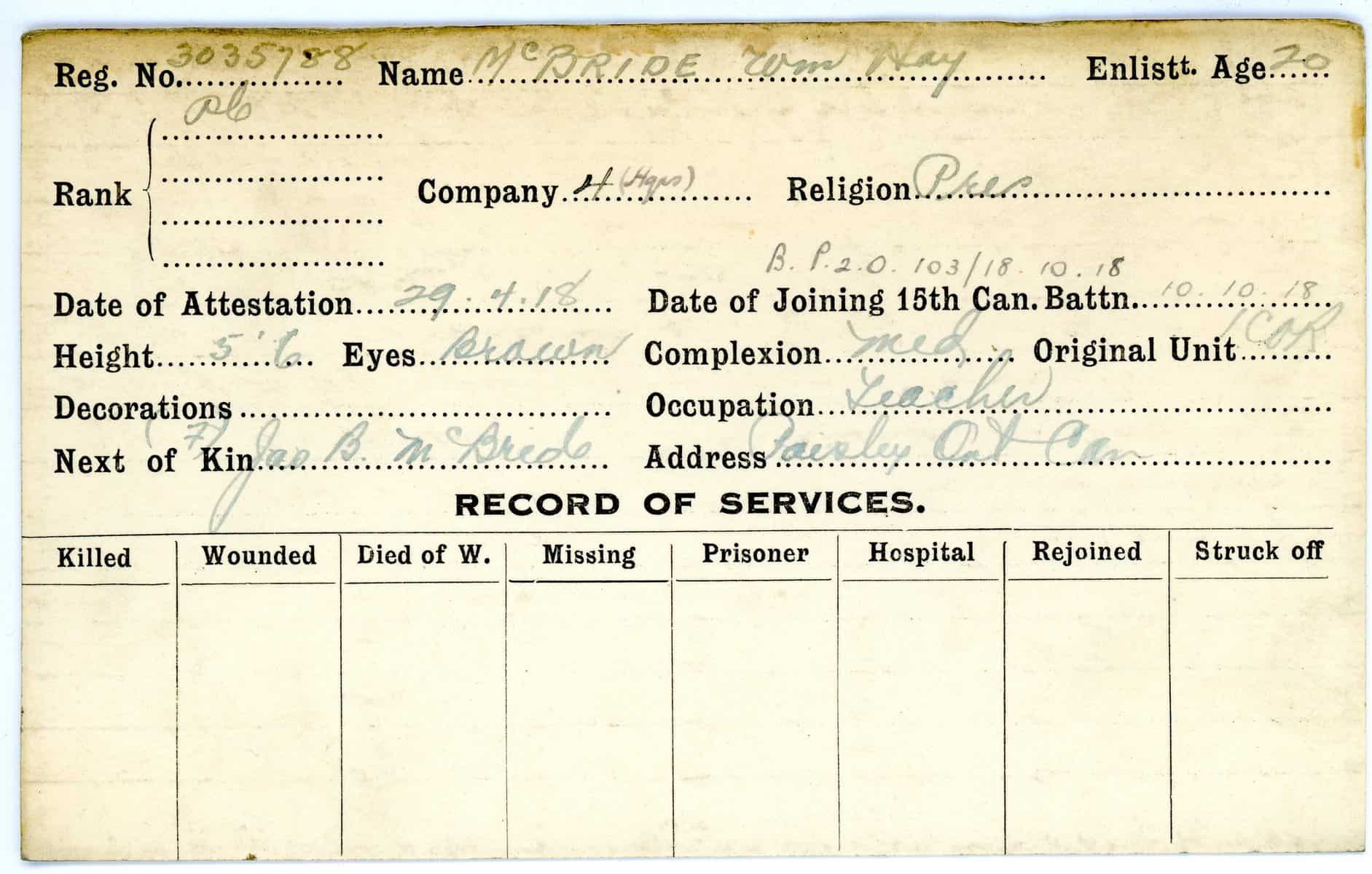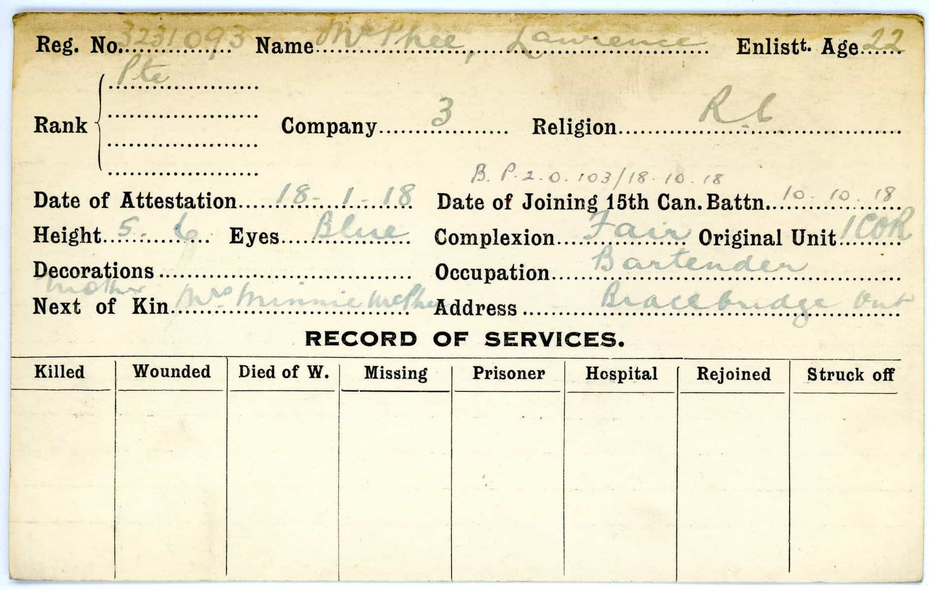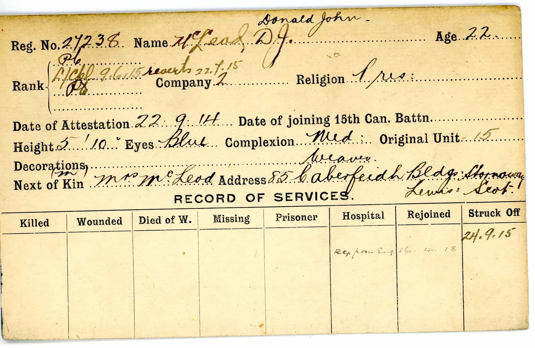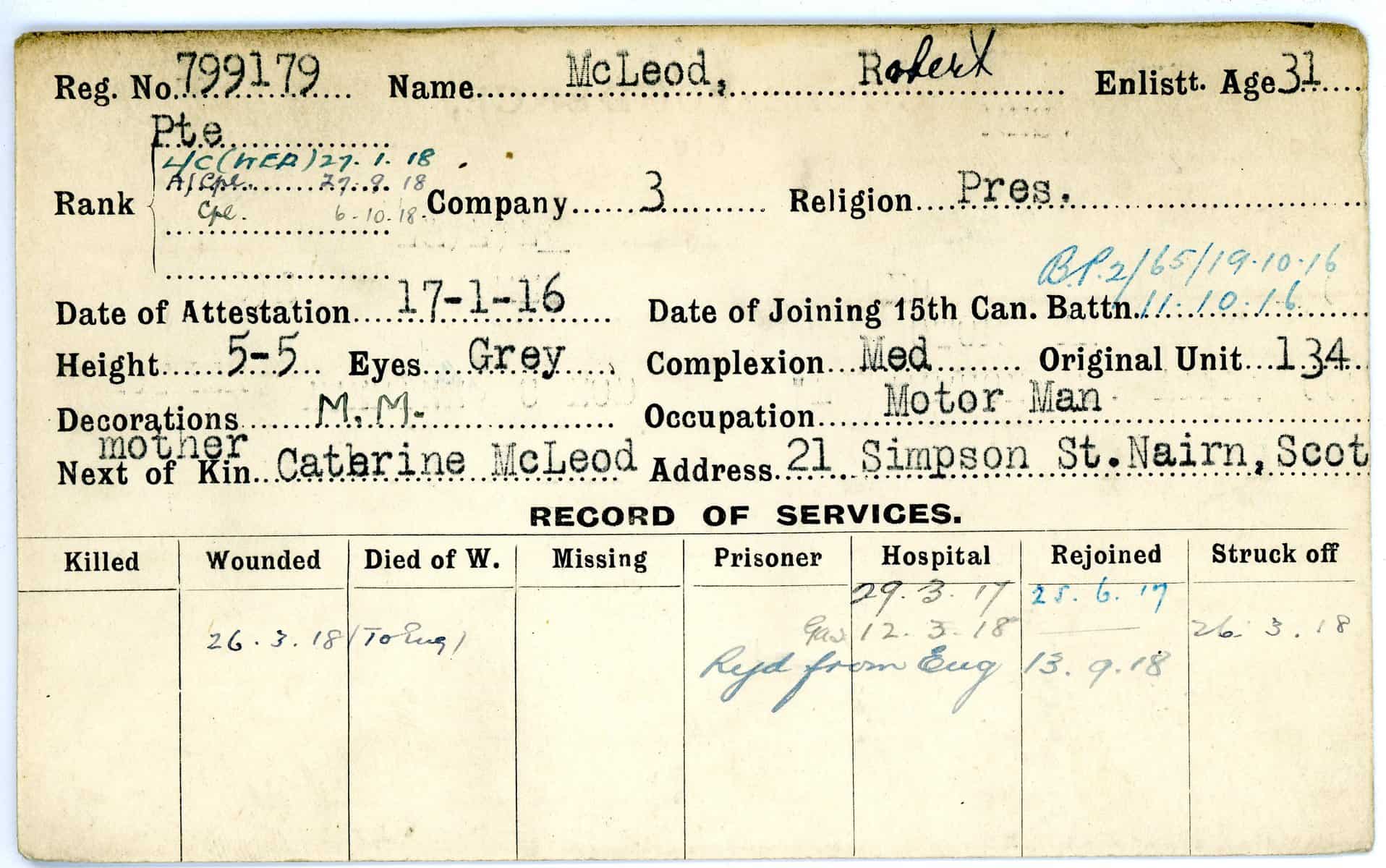 Record of Service Cards – Ma – Mc