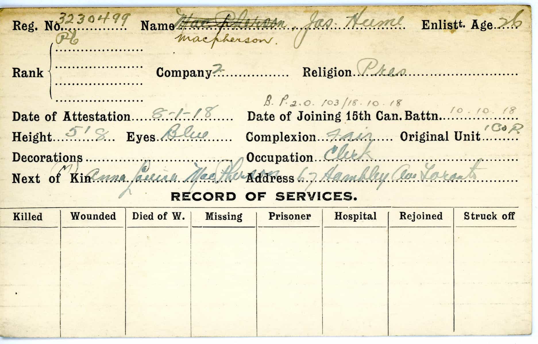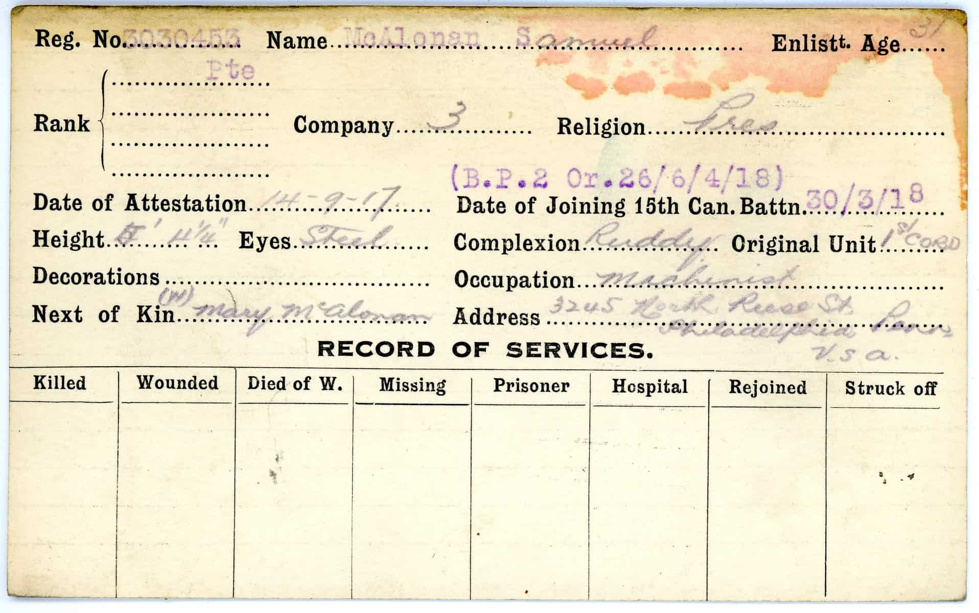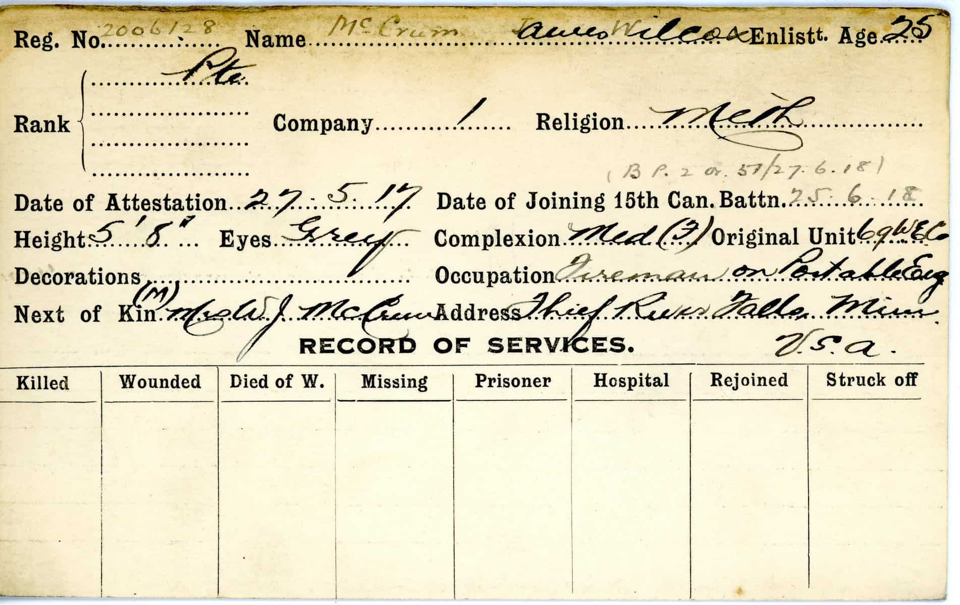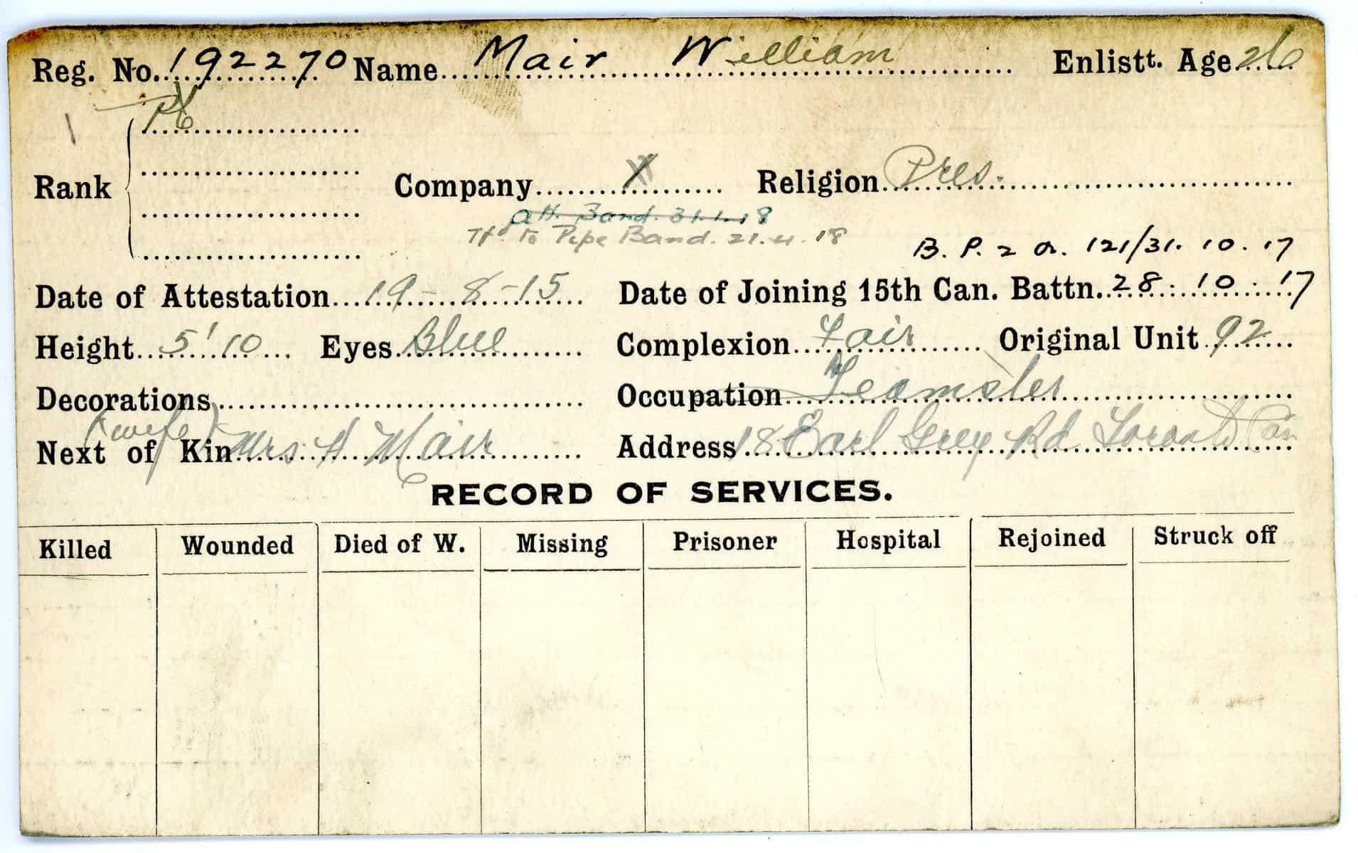 Record of Service Cards – Ma – Mc