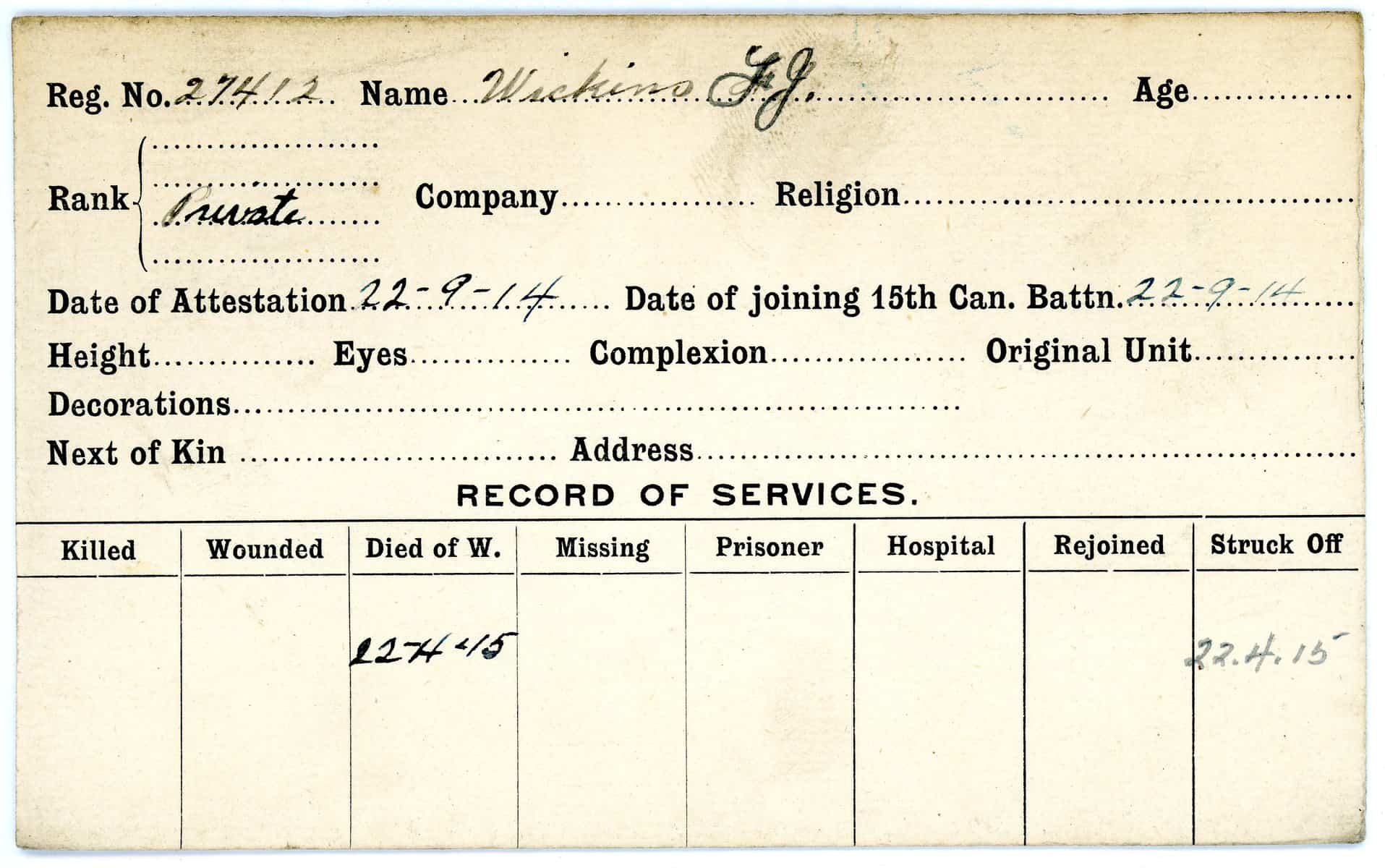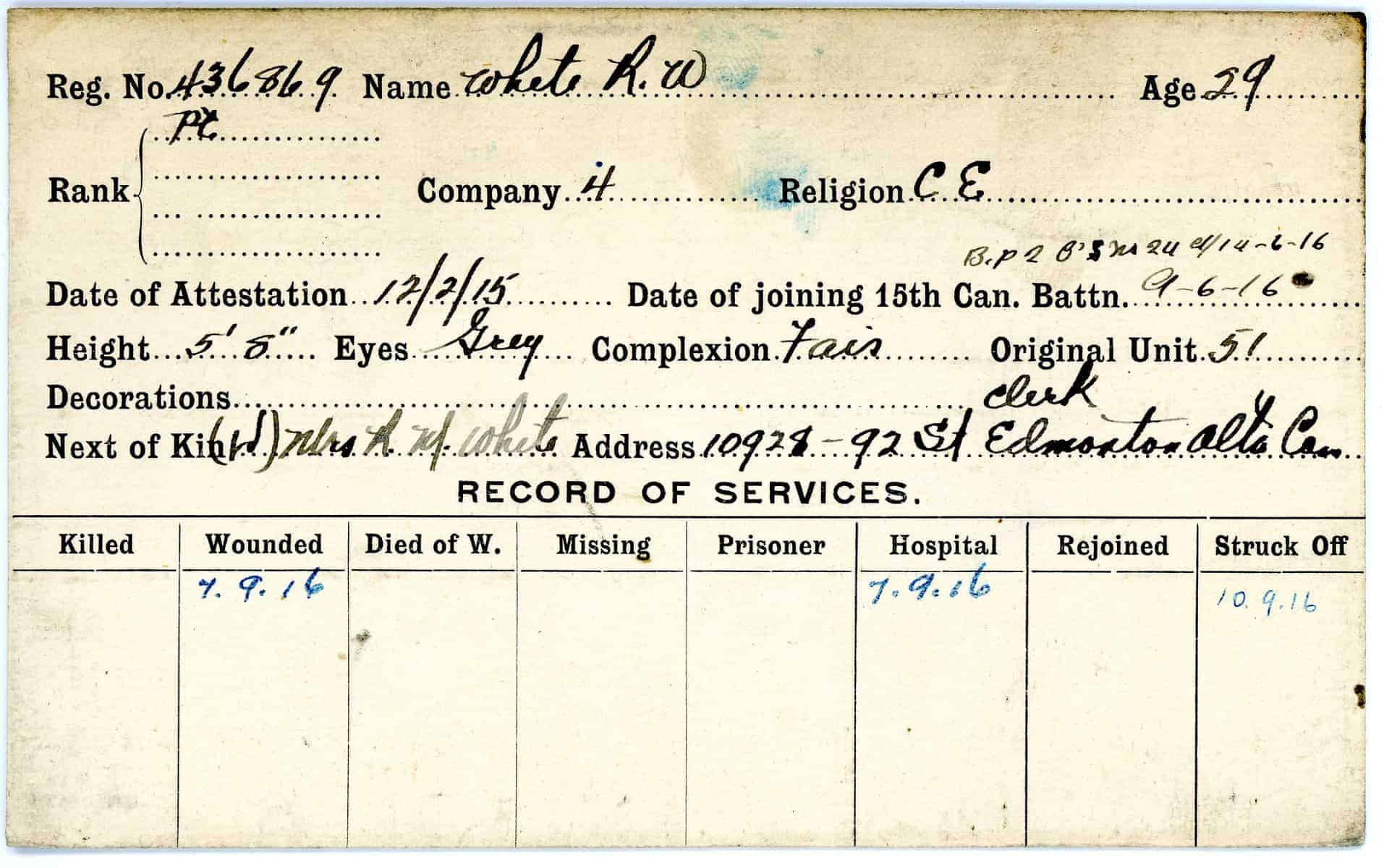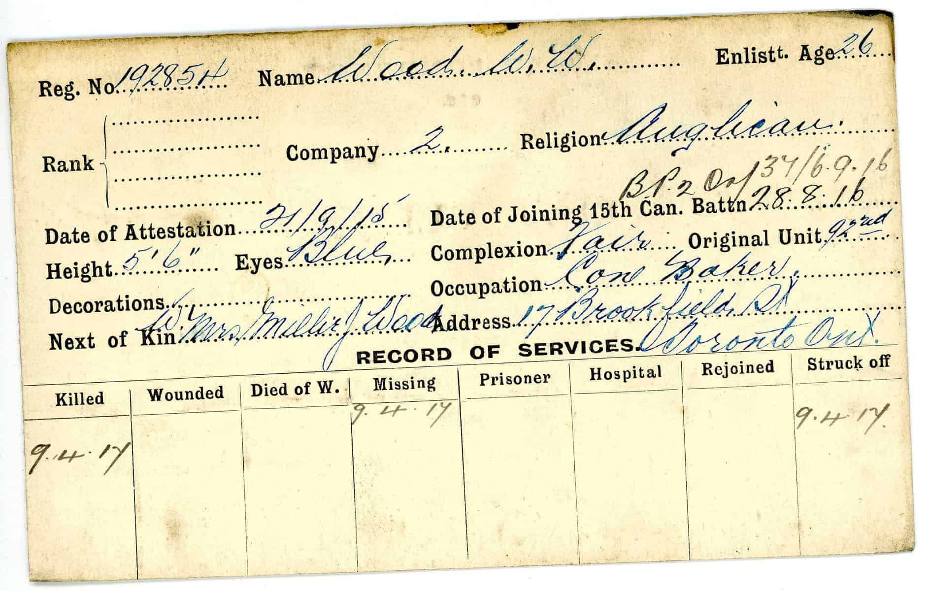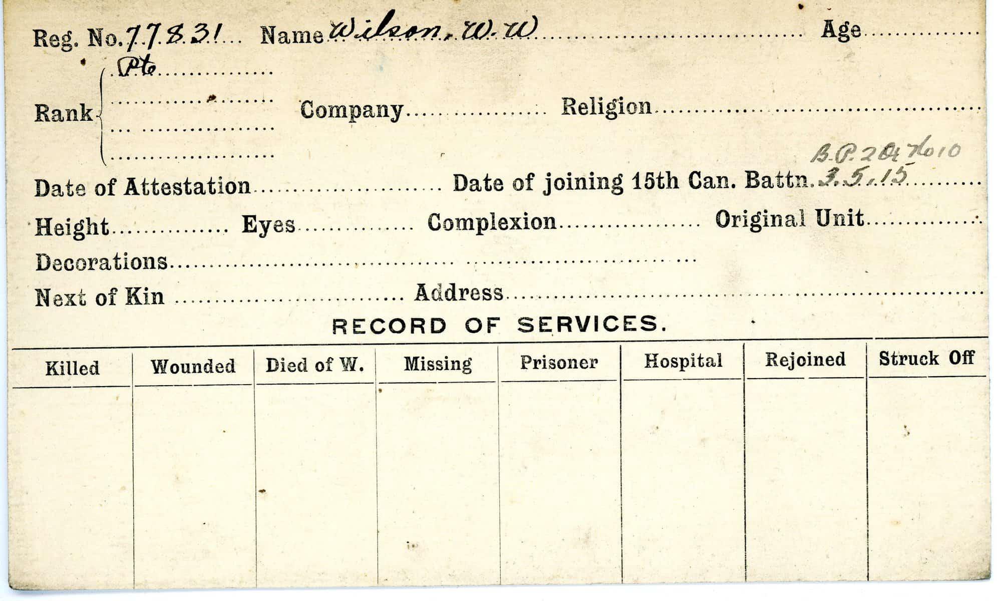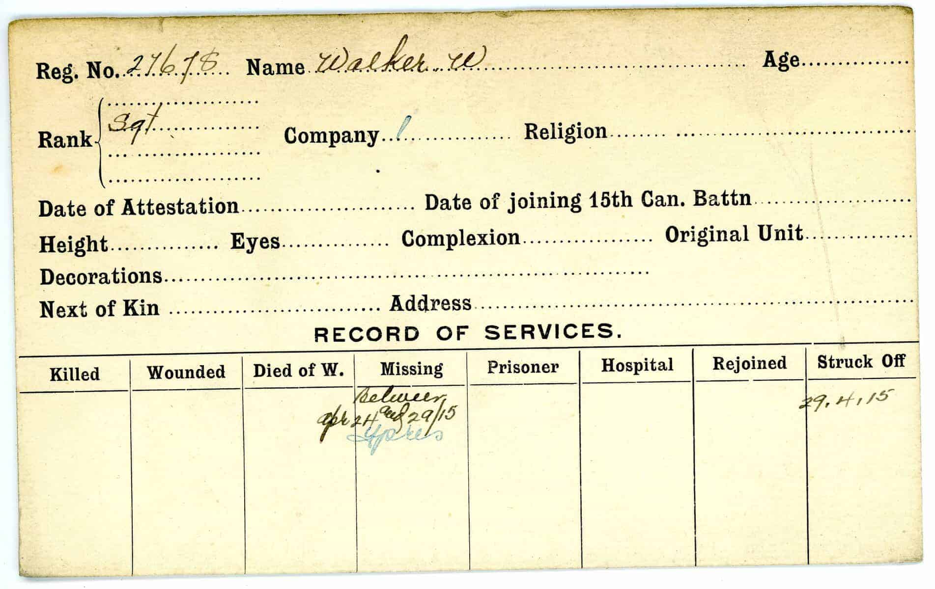 Record of Service Cards – W