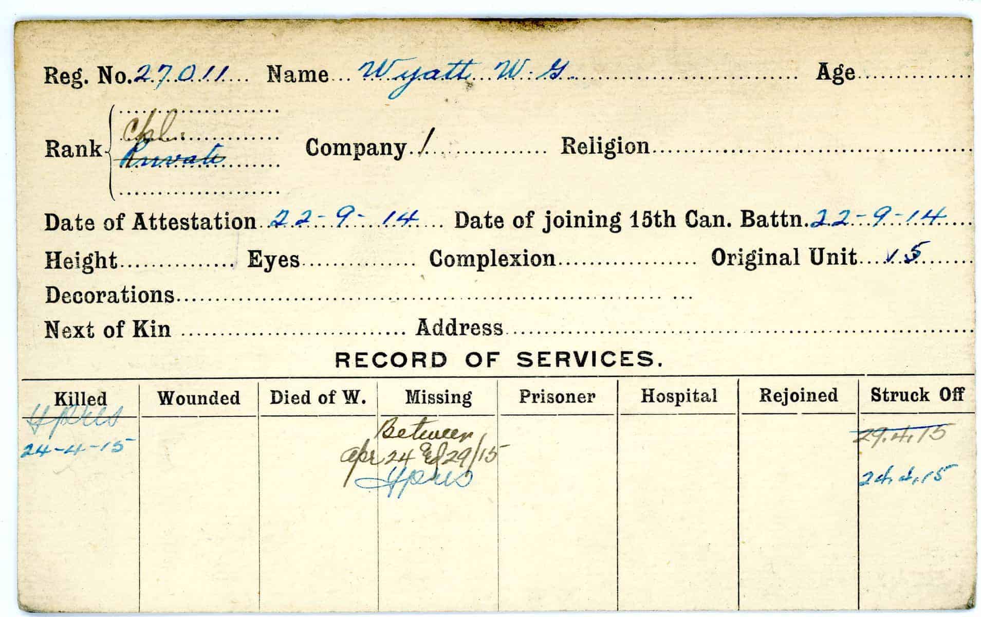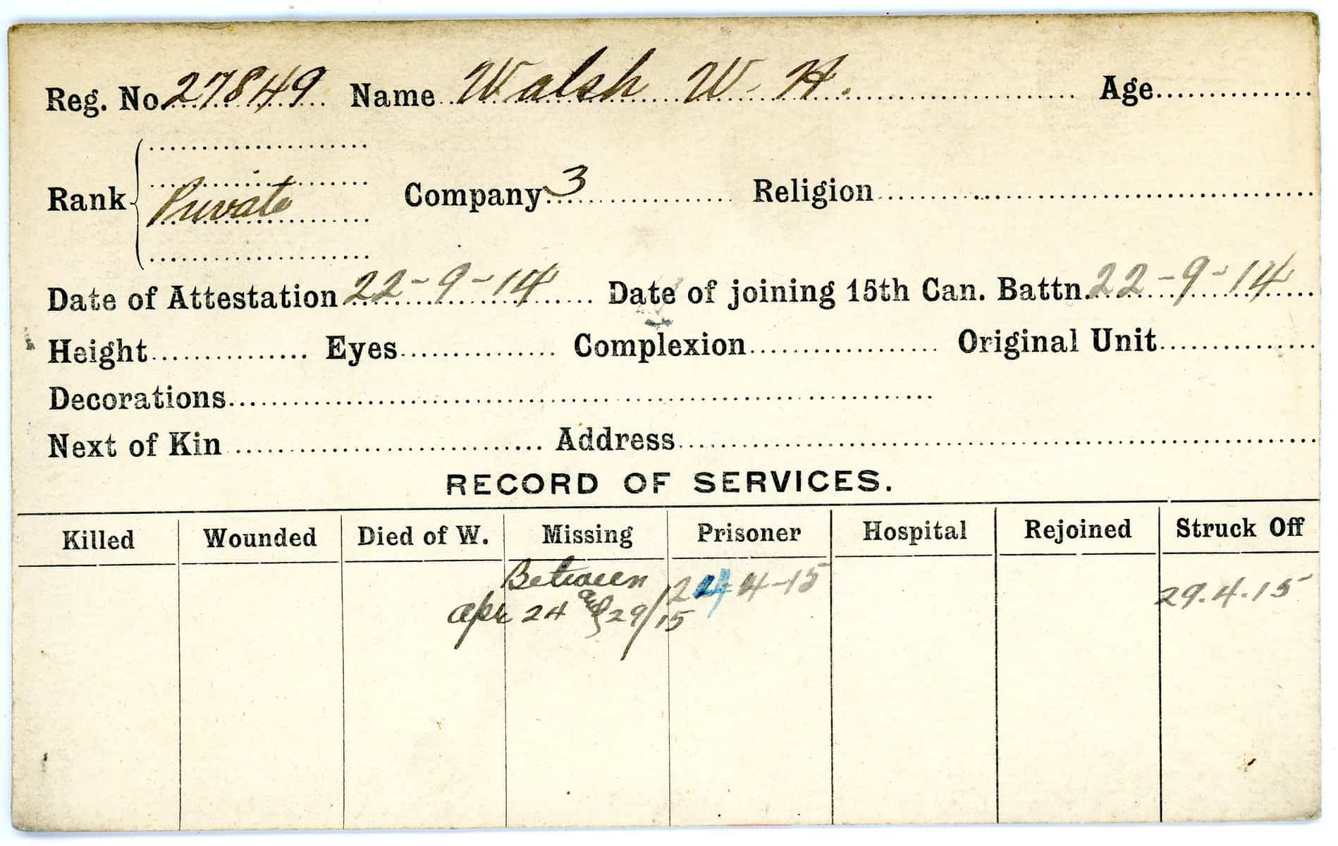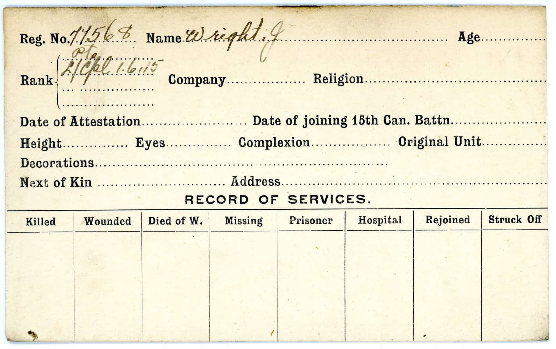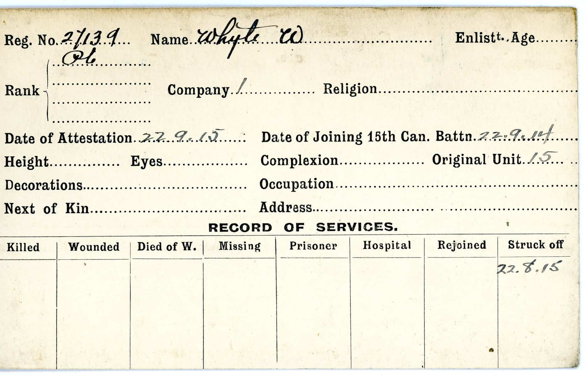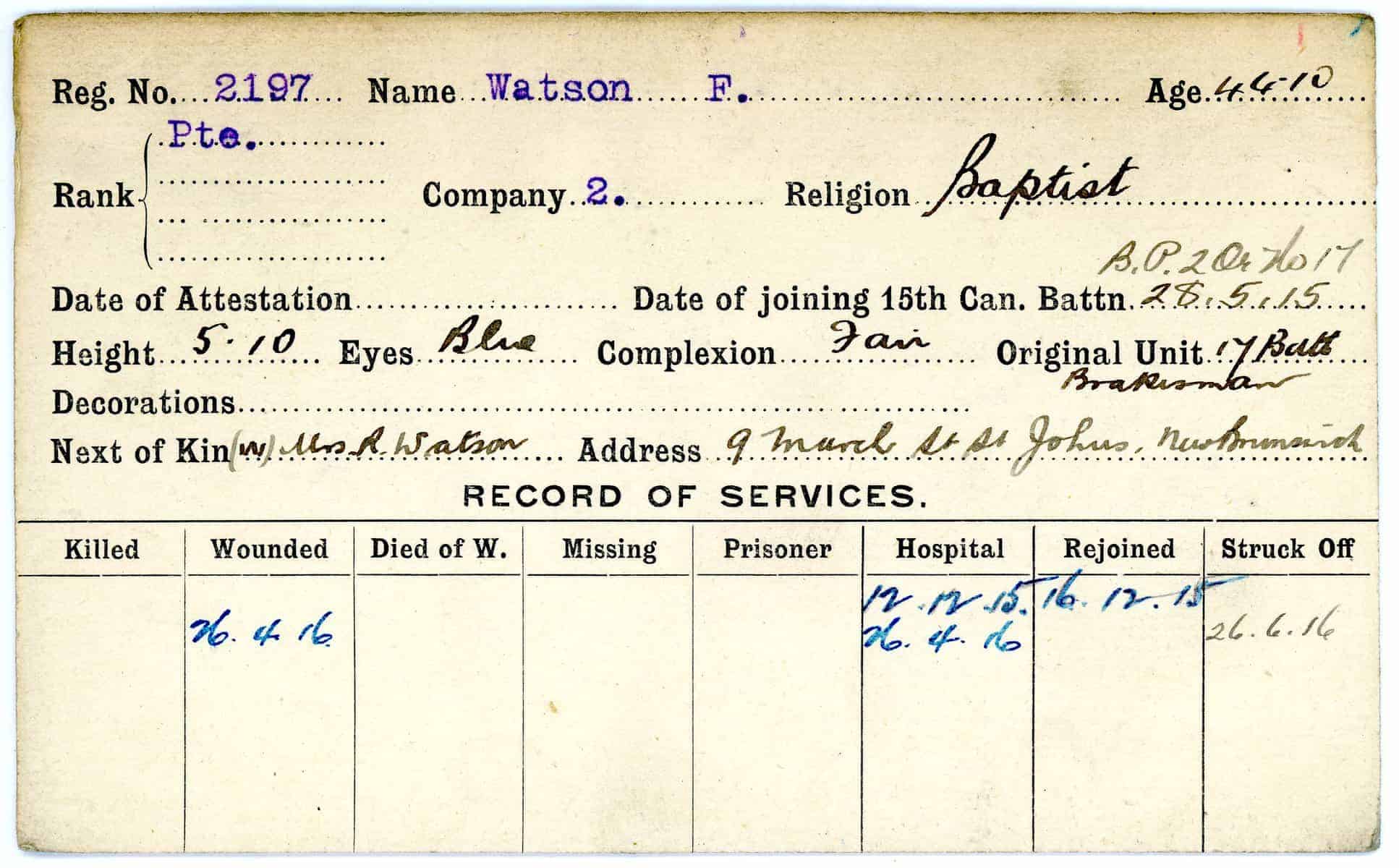 Record of Service Cards – W