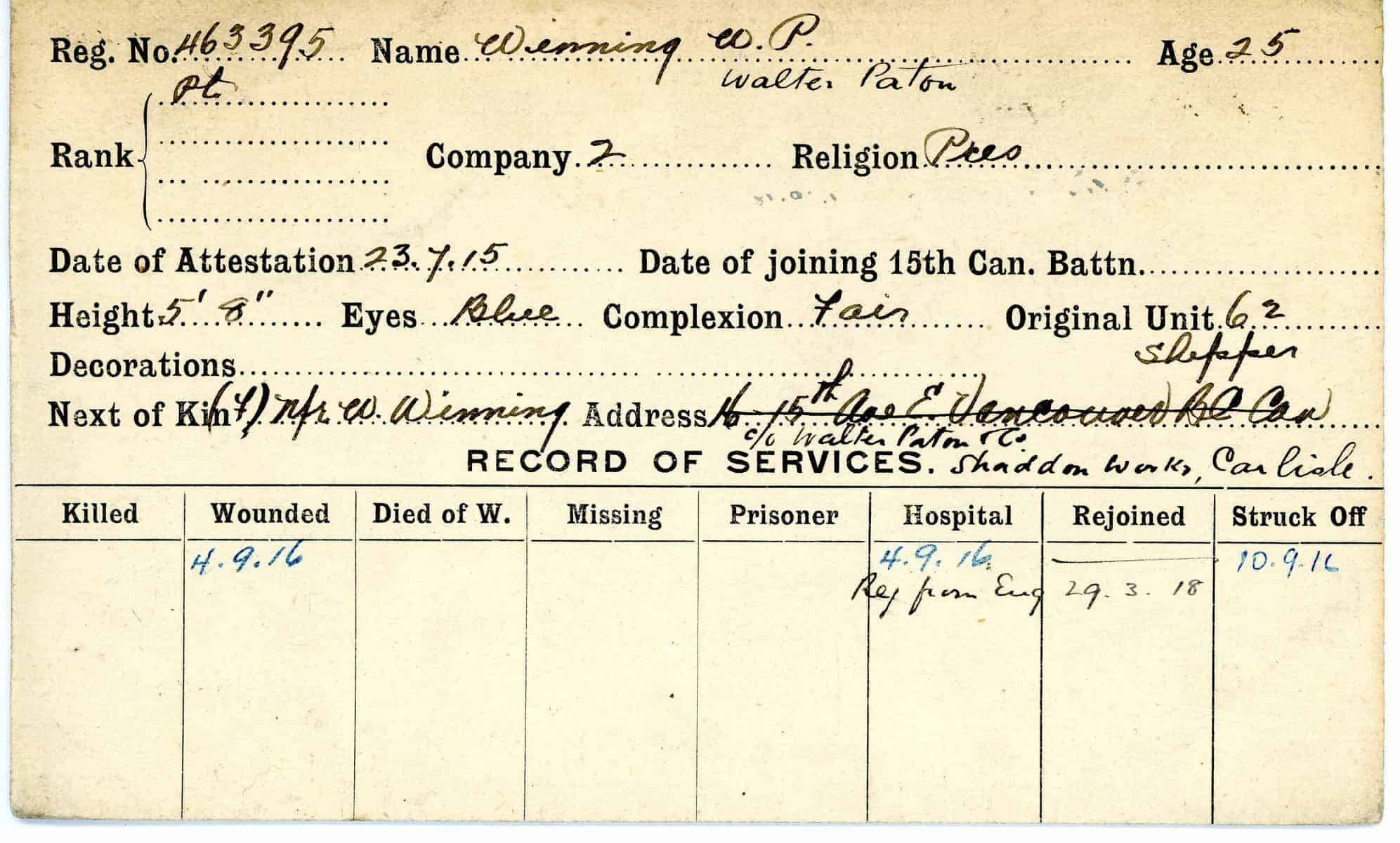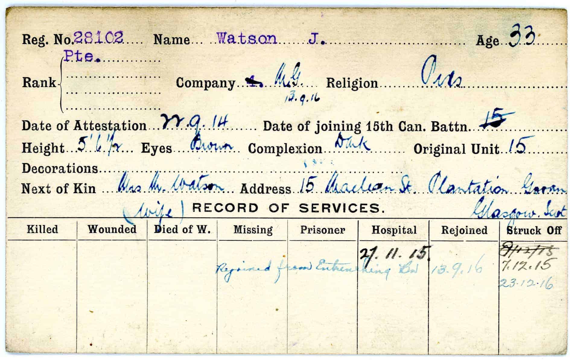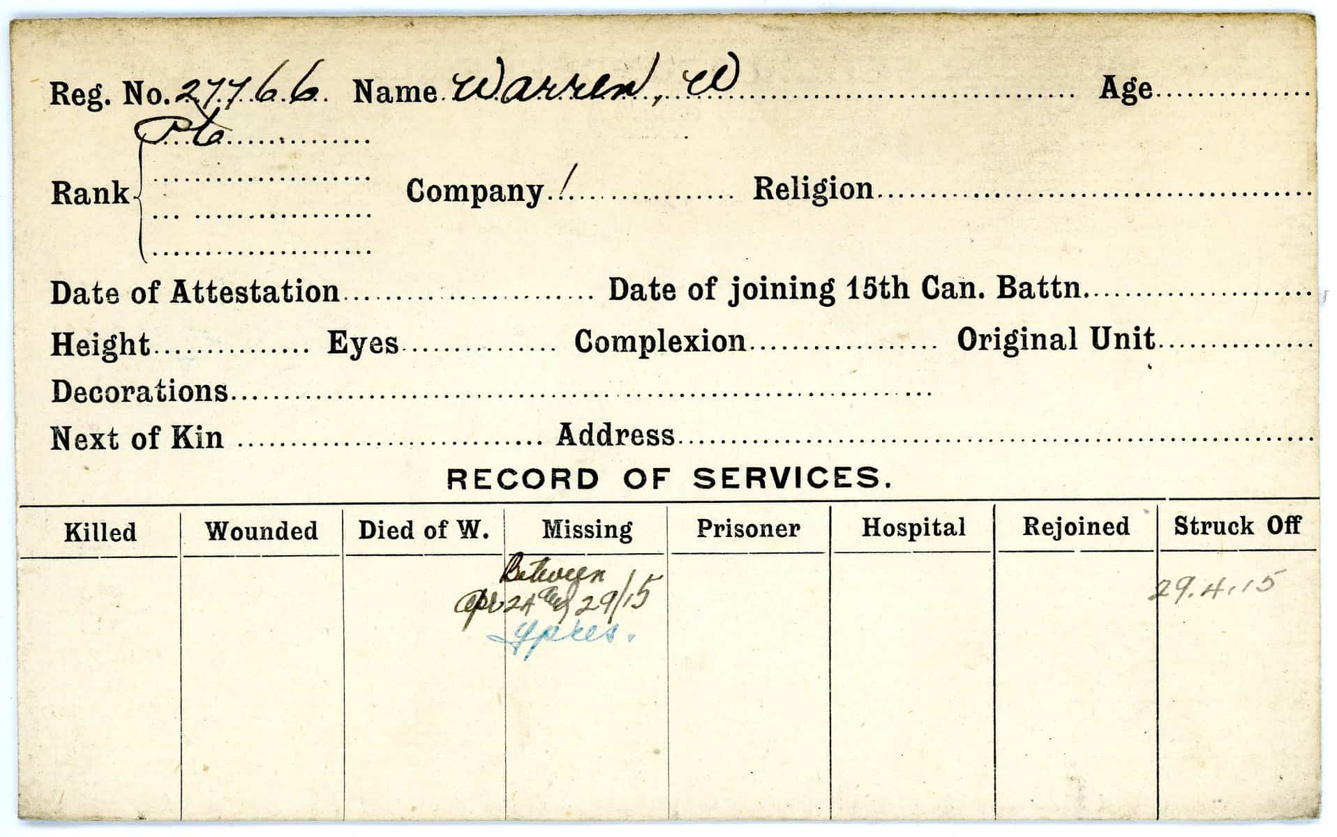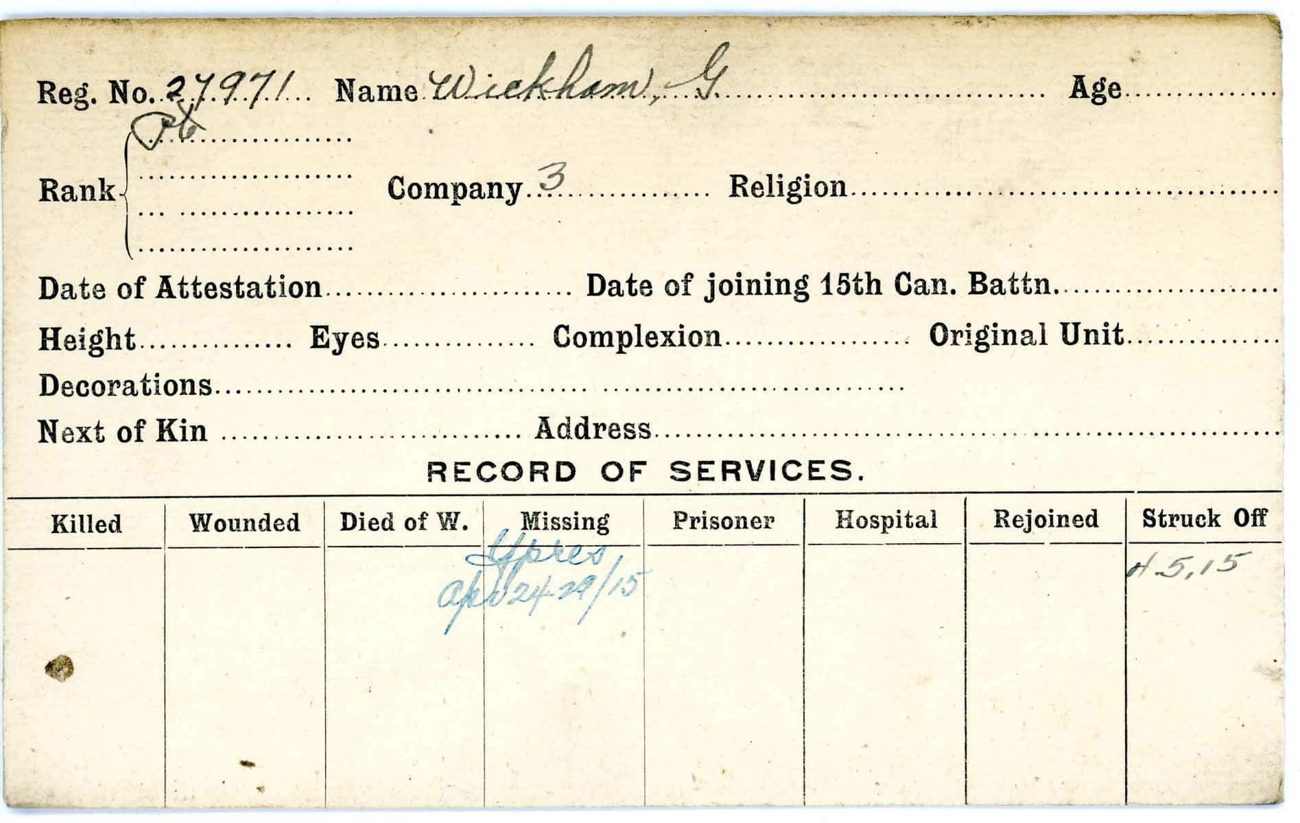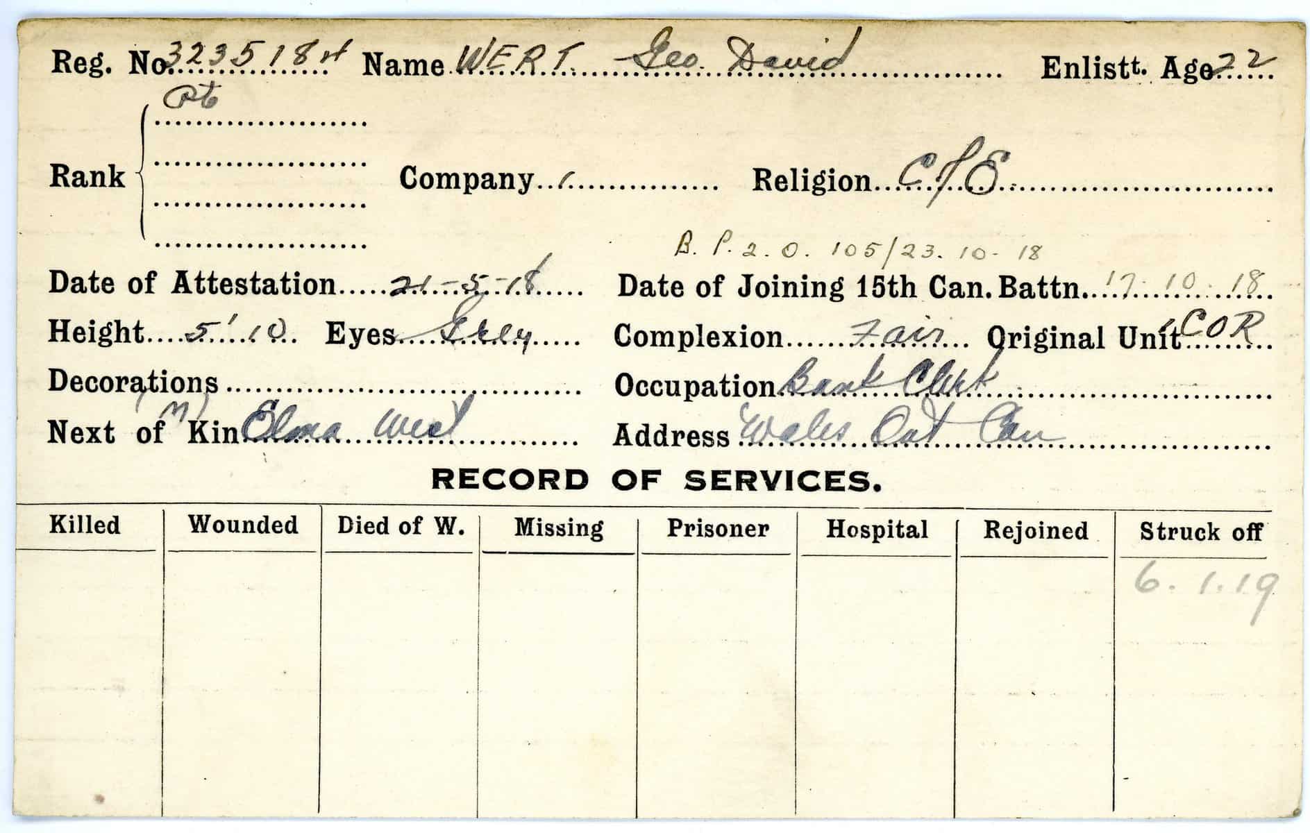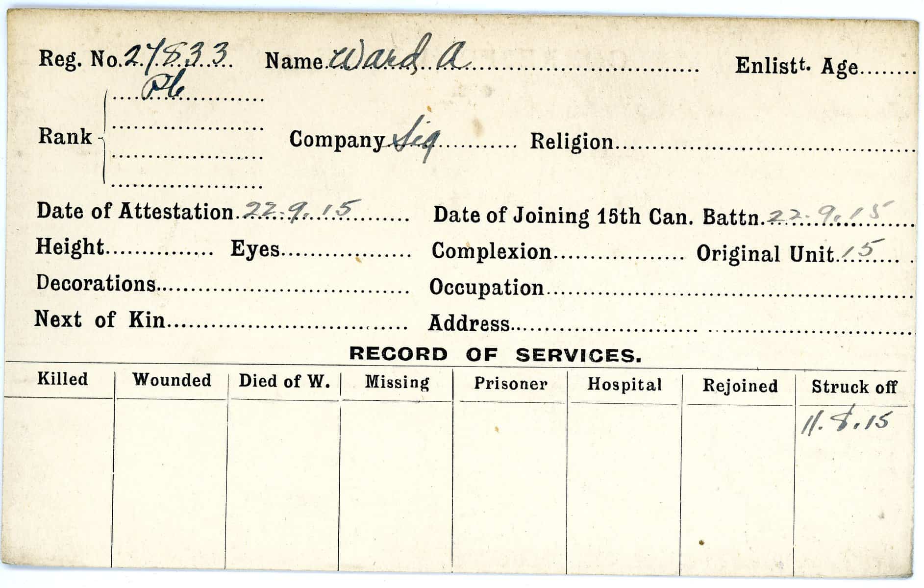 Record of Service Cards – W