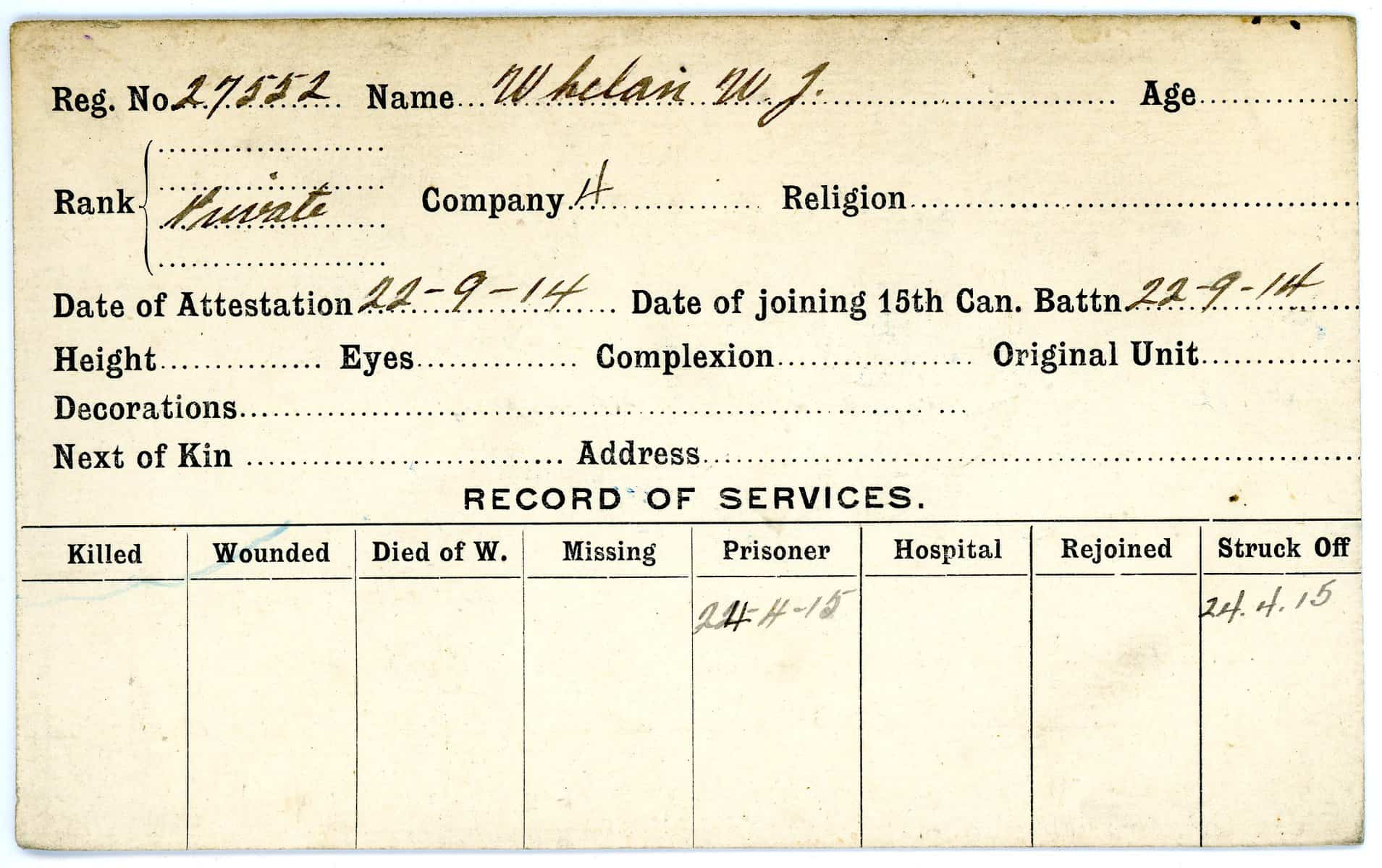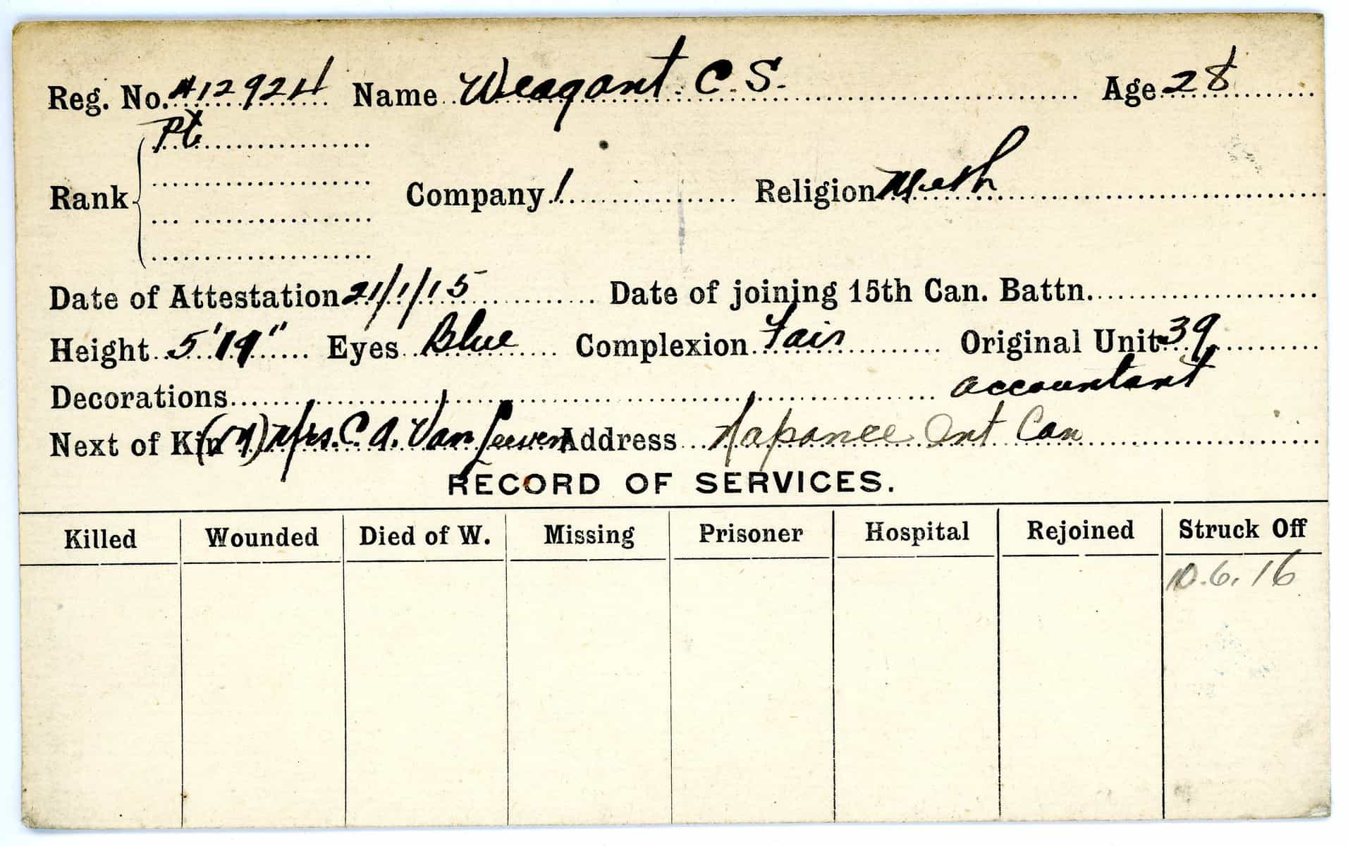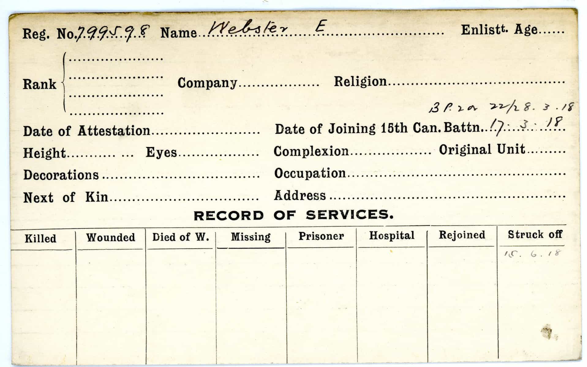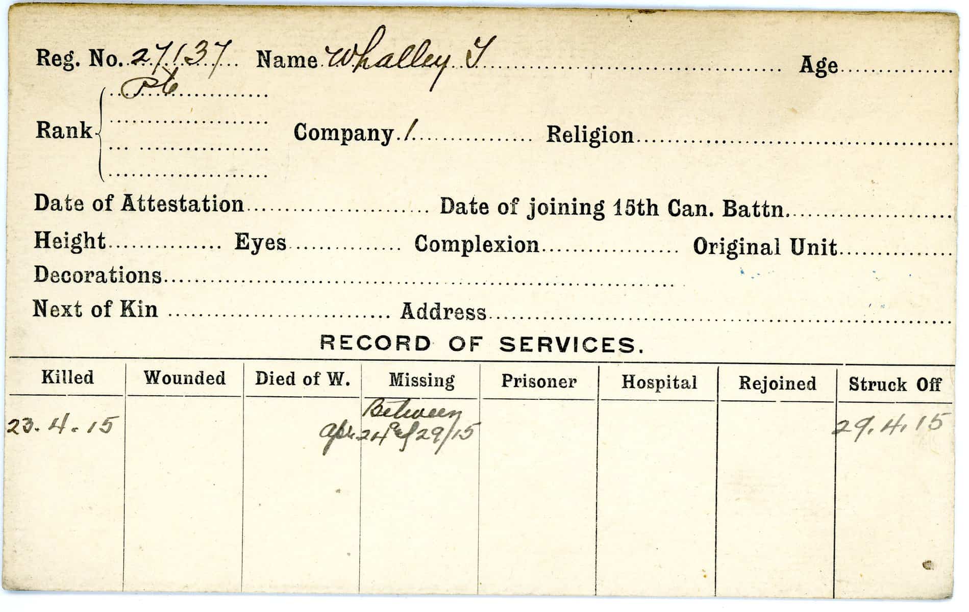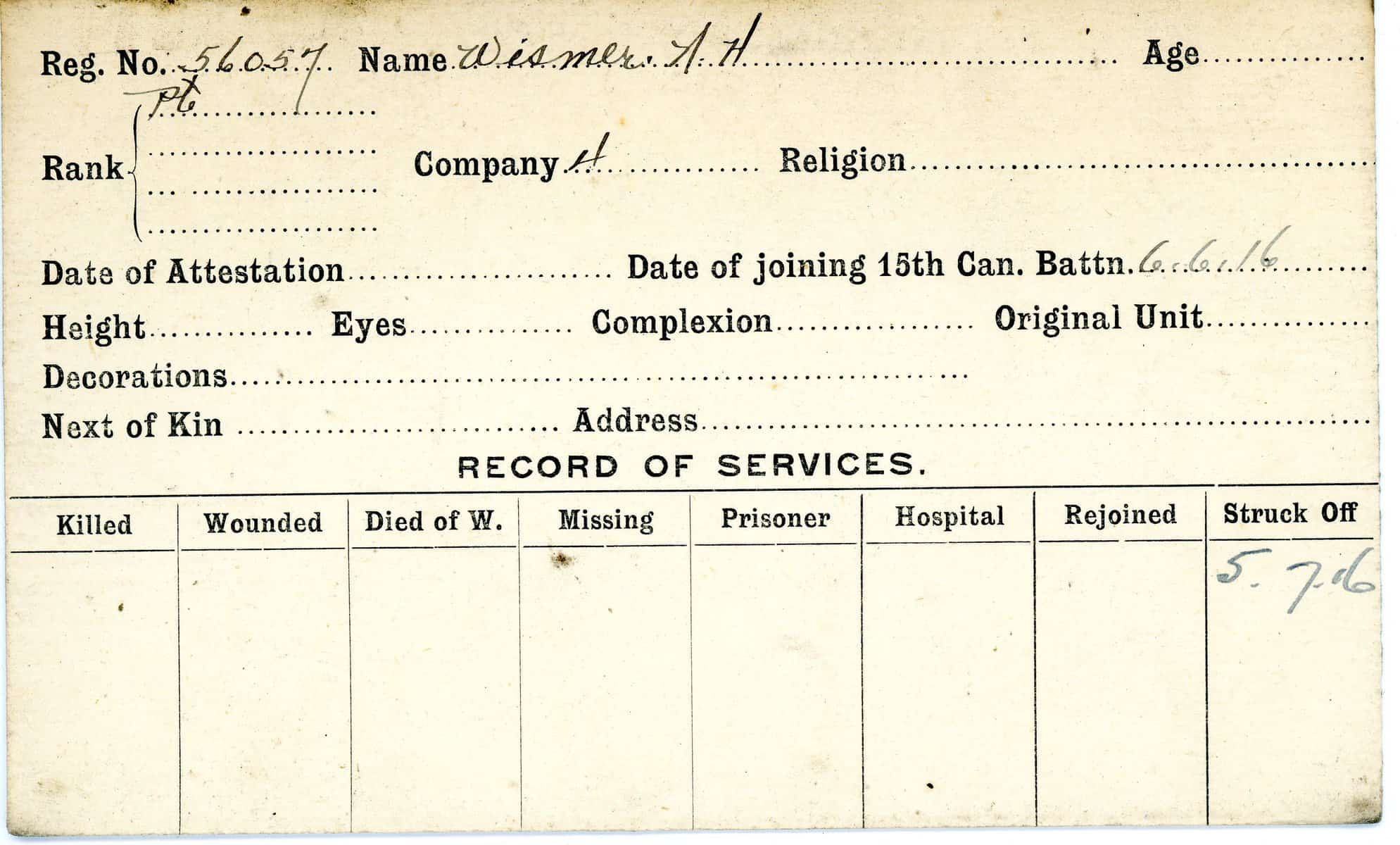 Record of Service Cards – W
