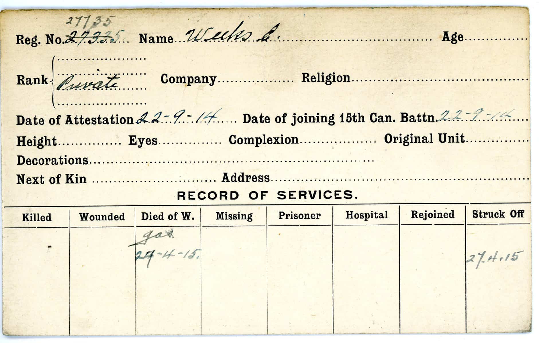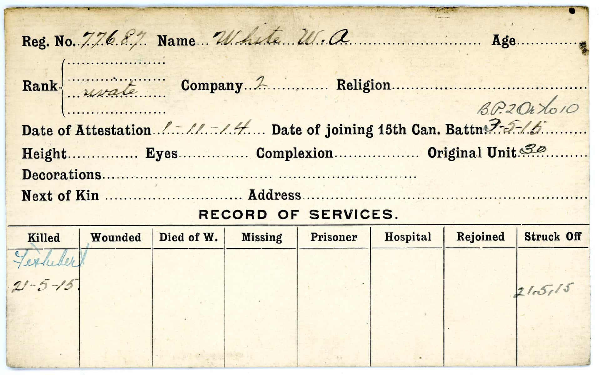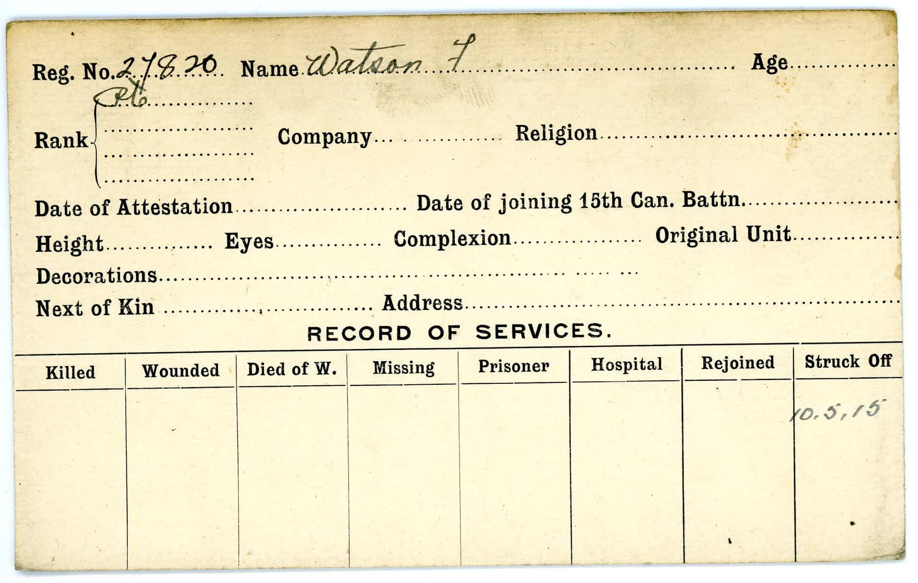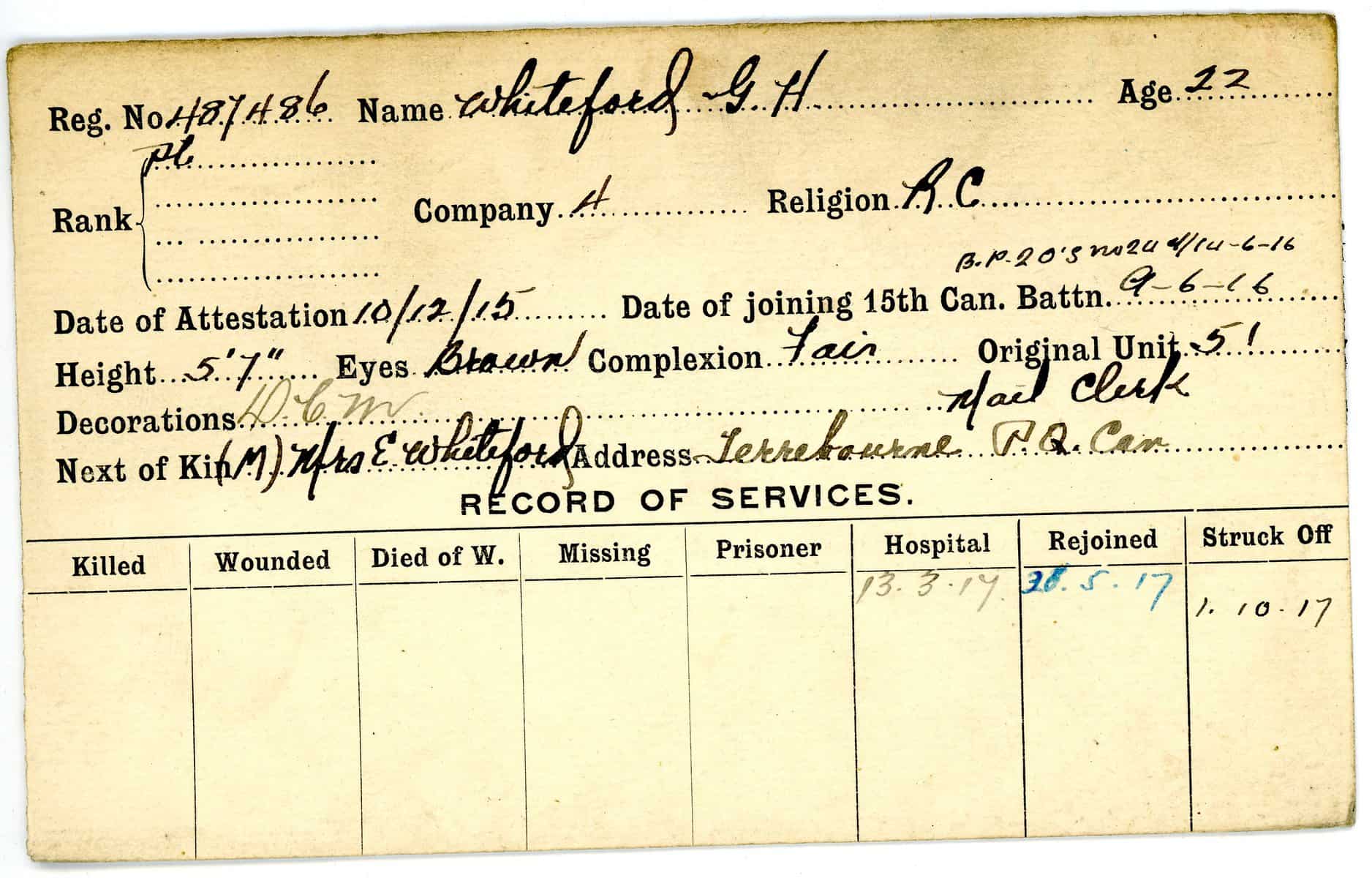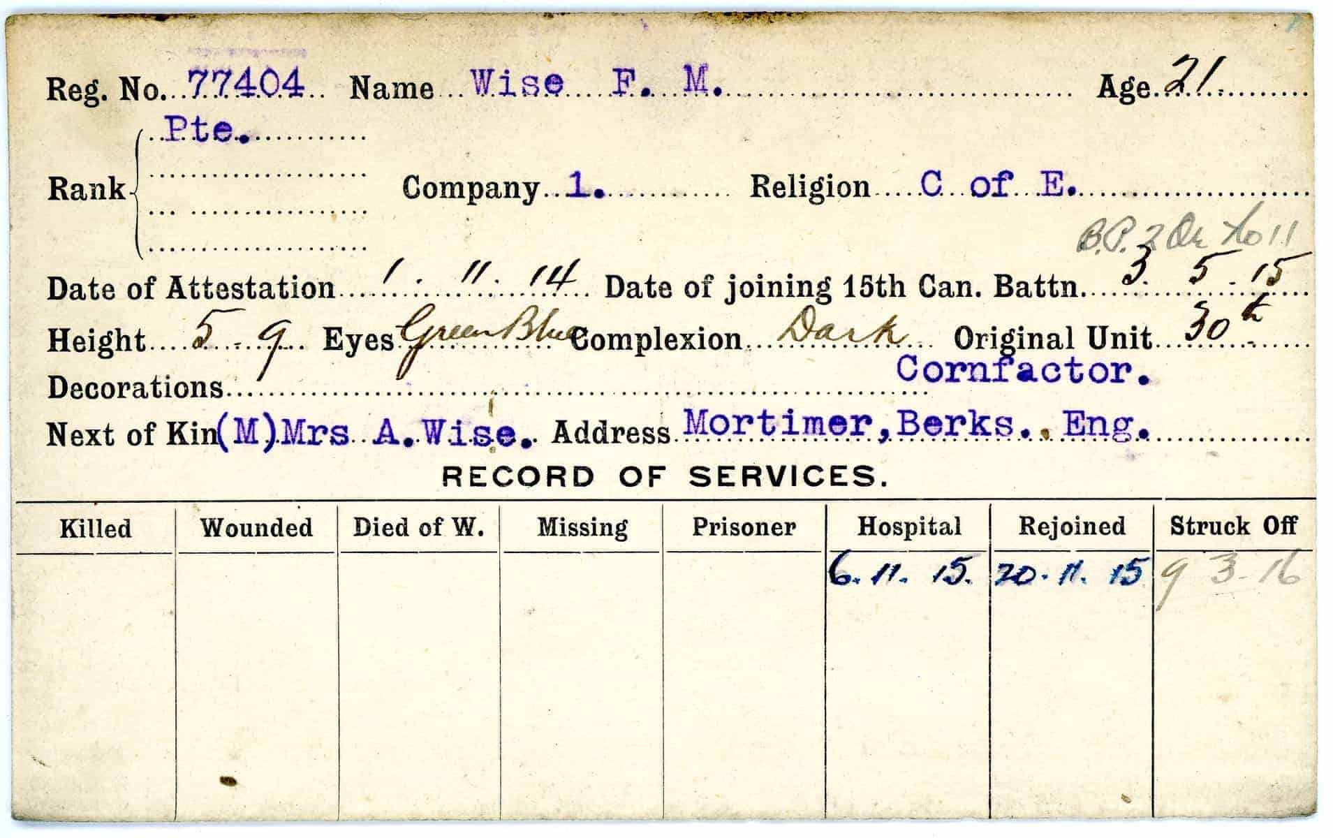 Record of Service Cards – W