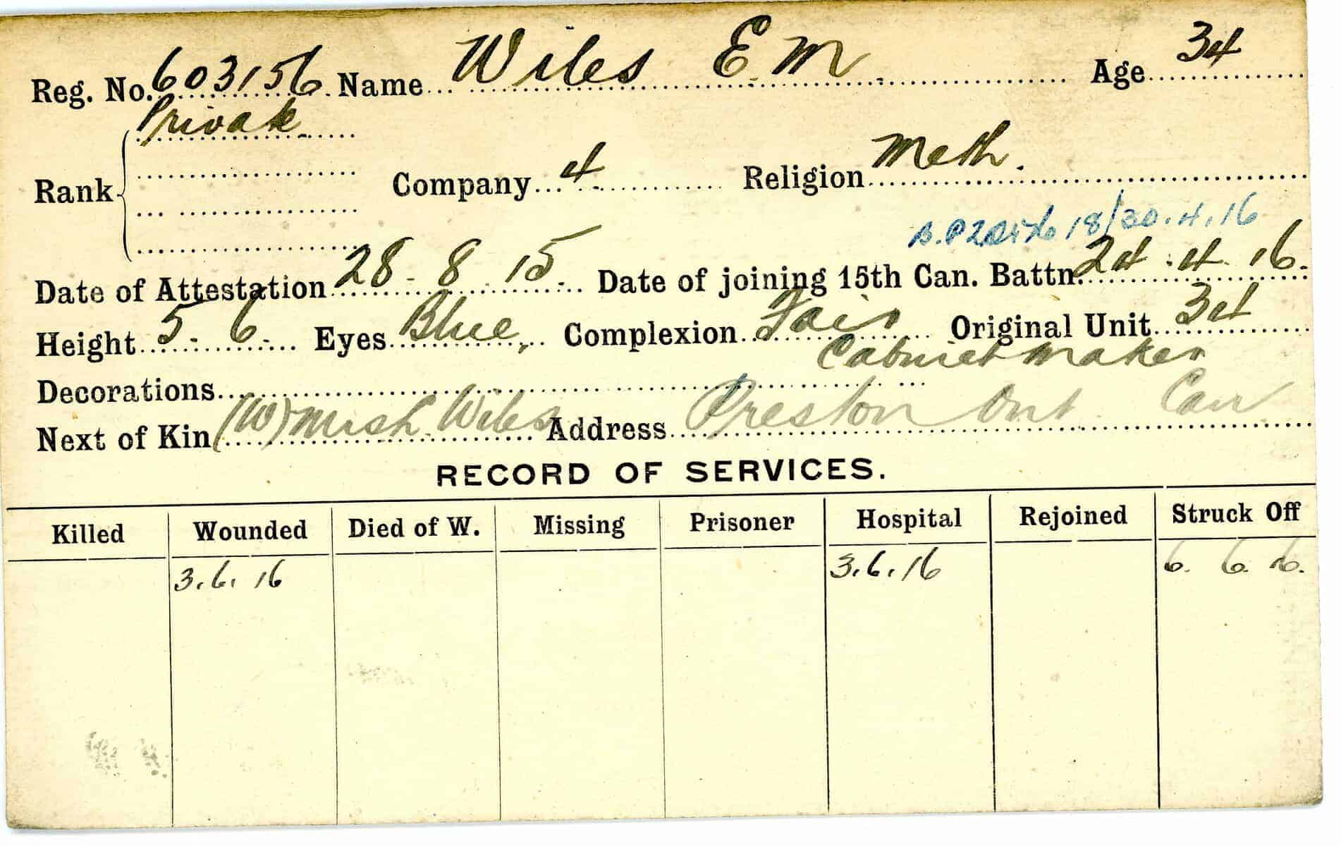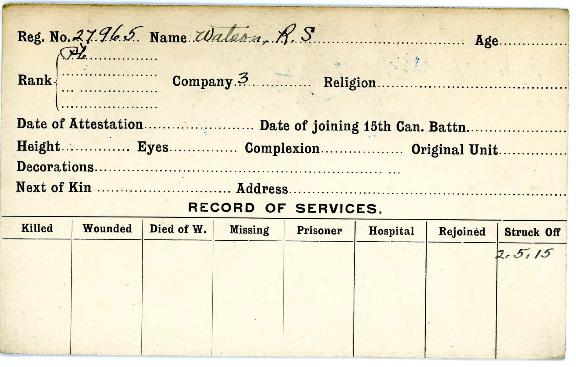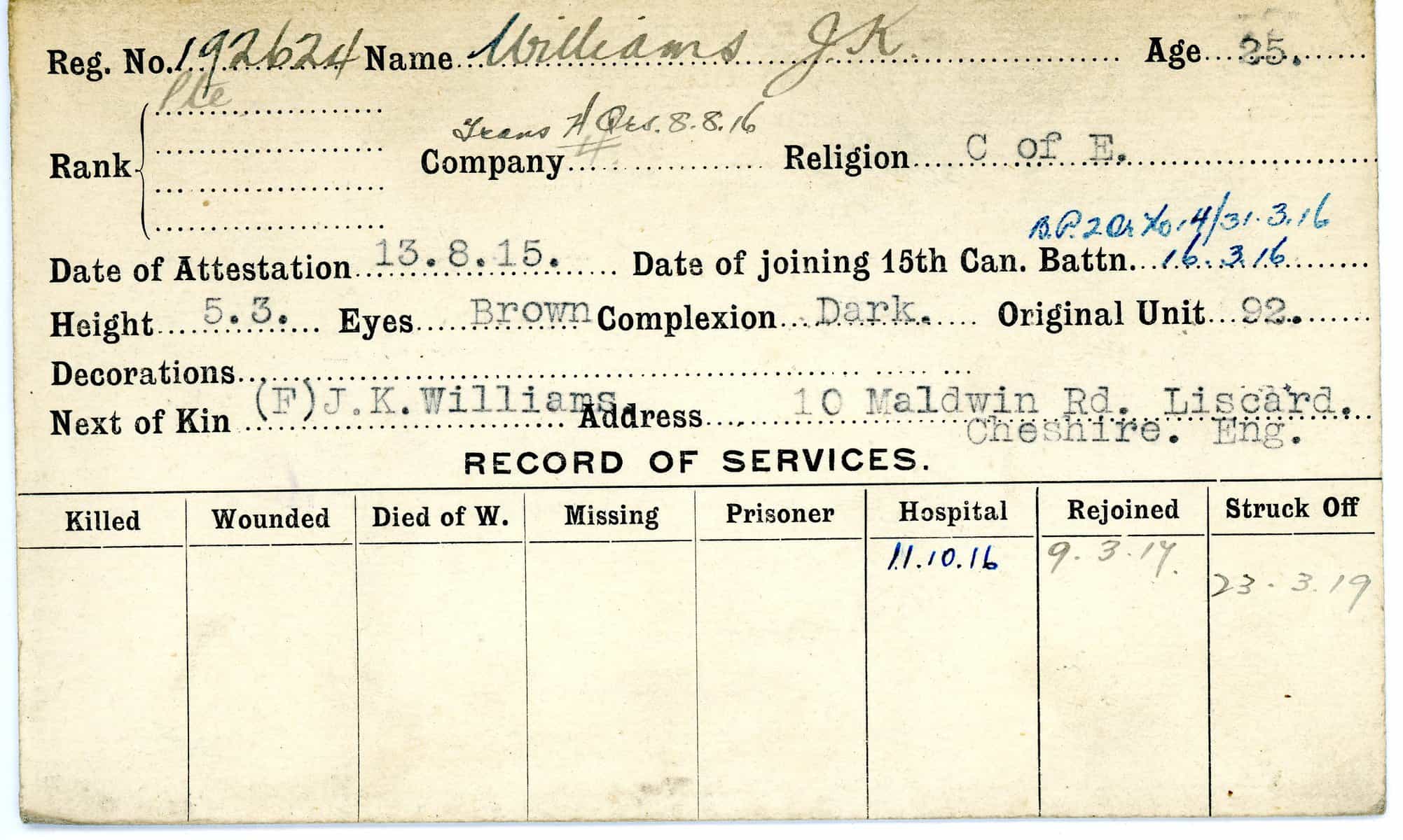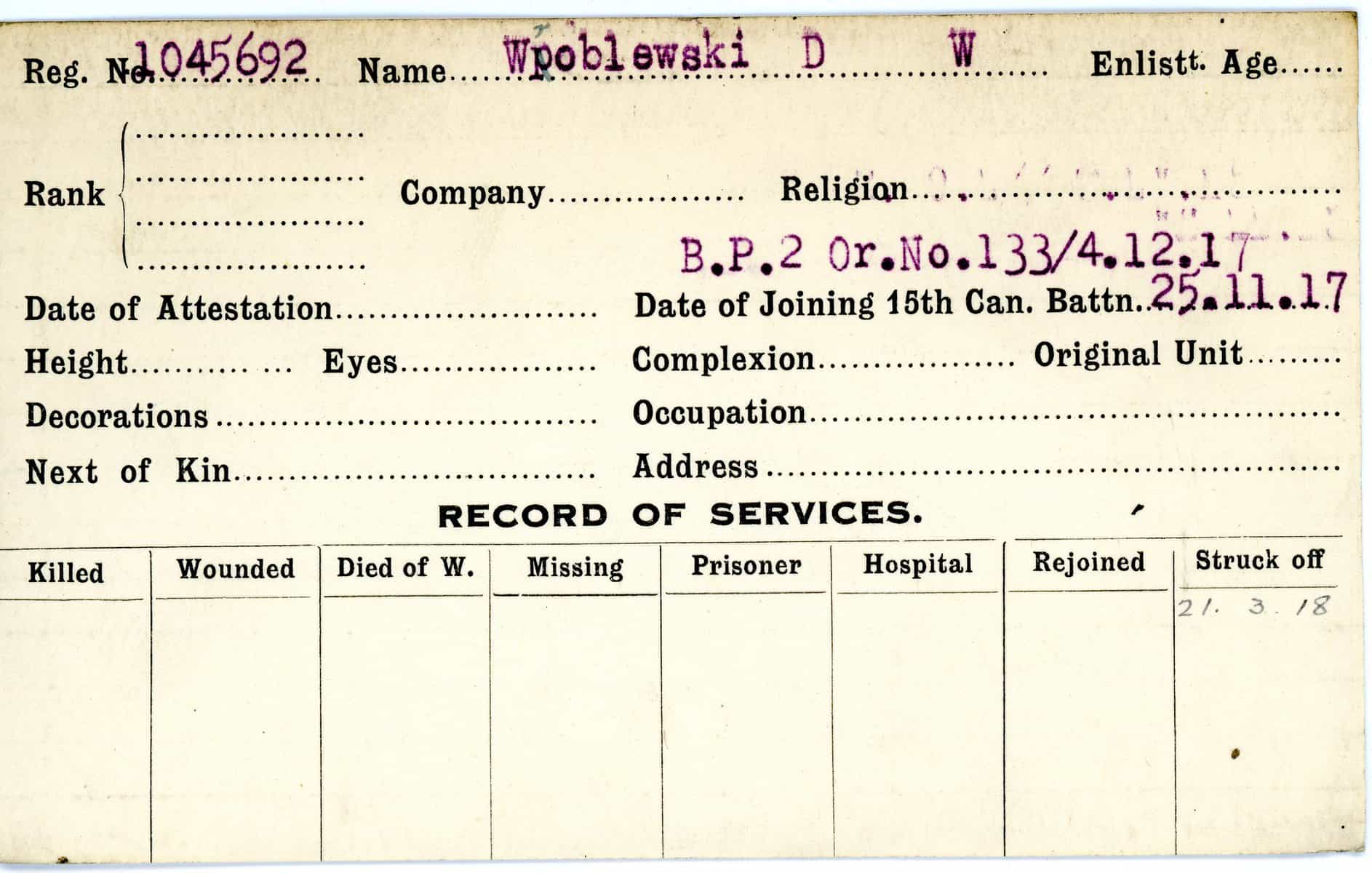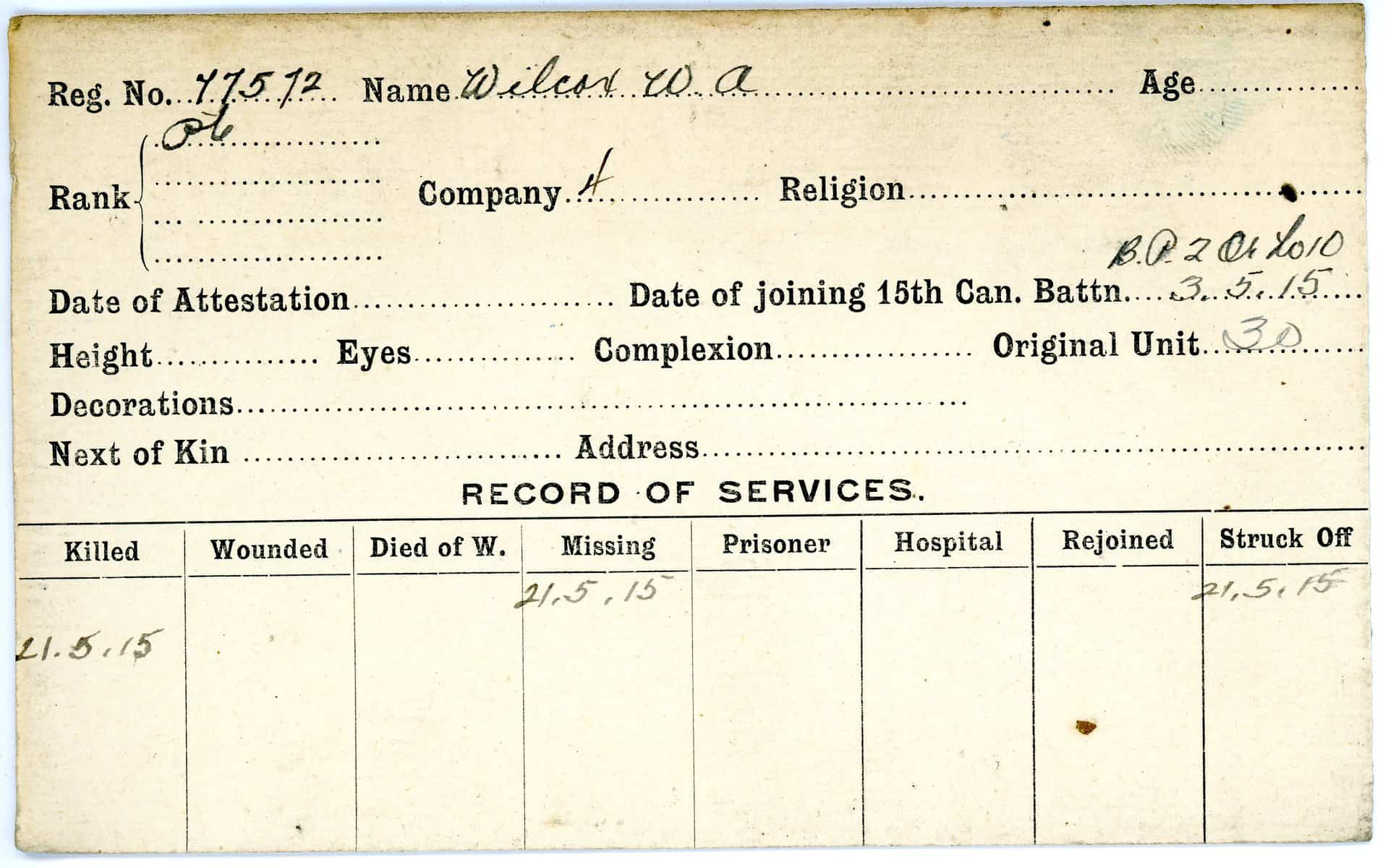 Record of Service Cards – W