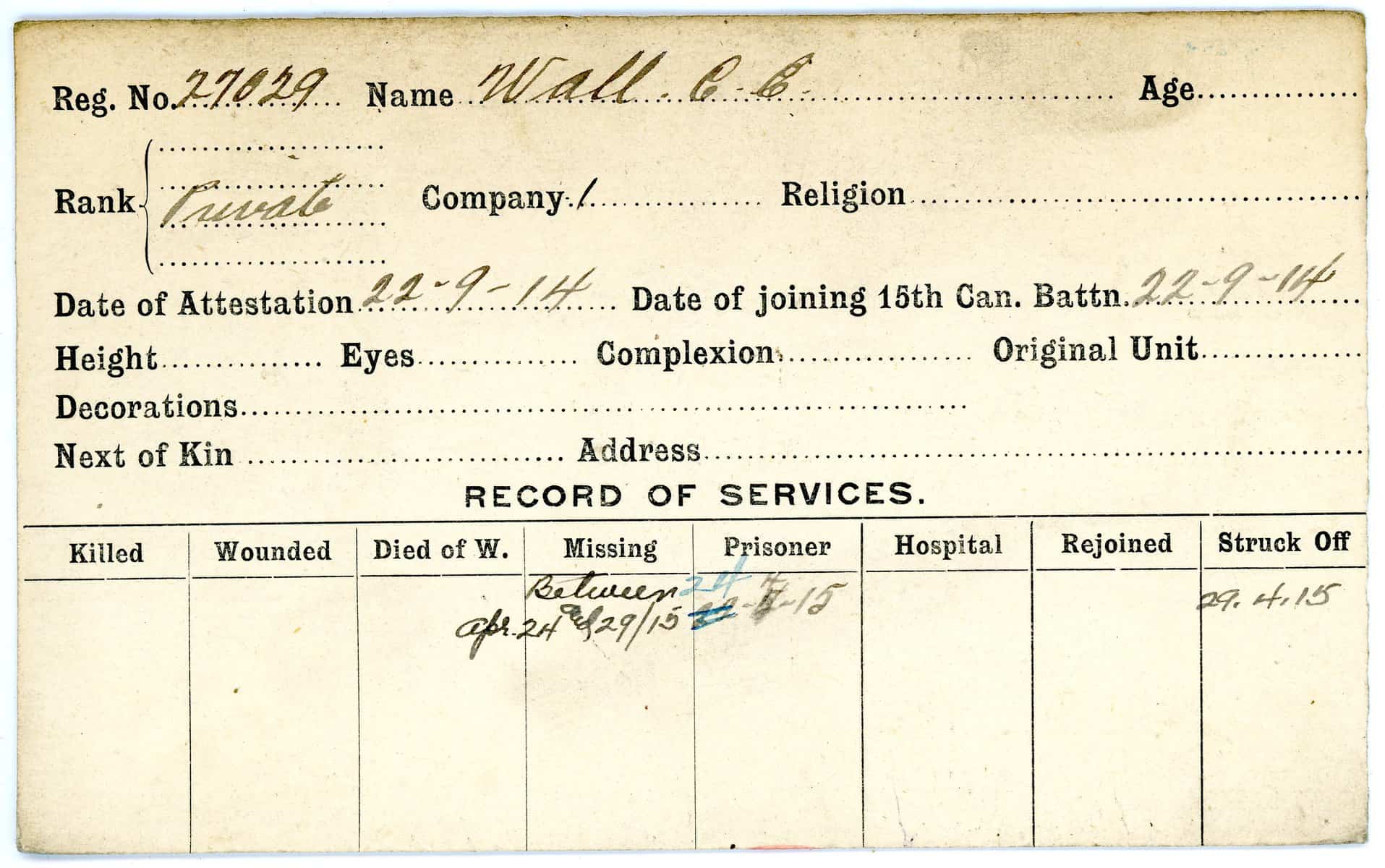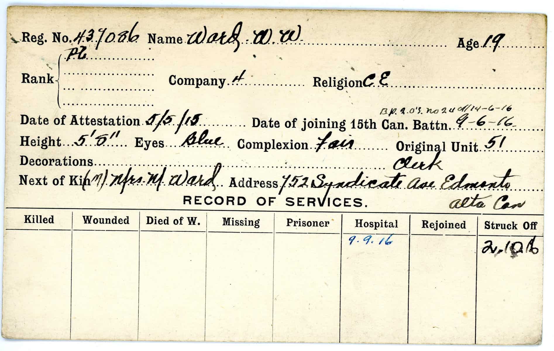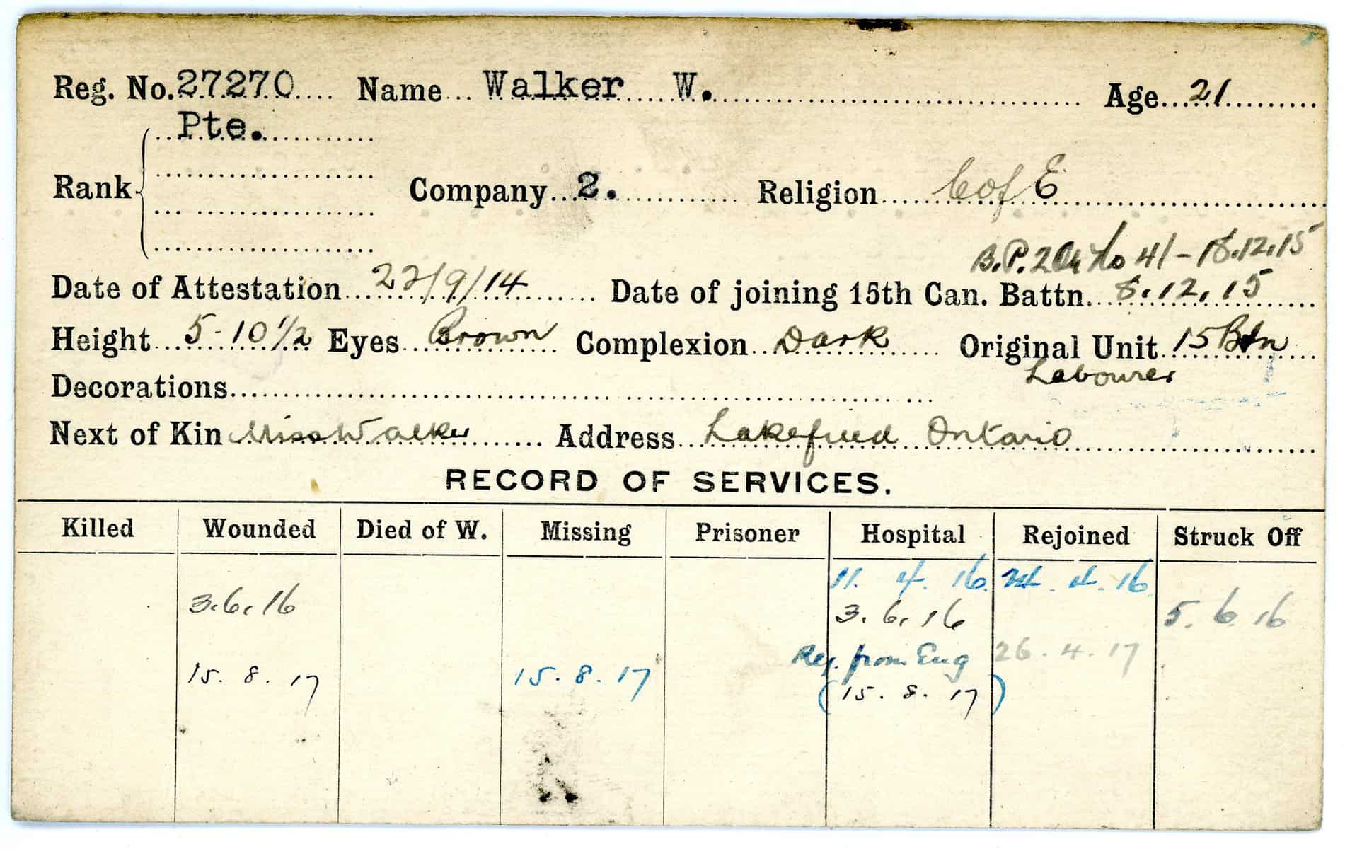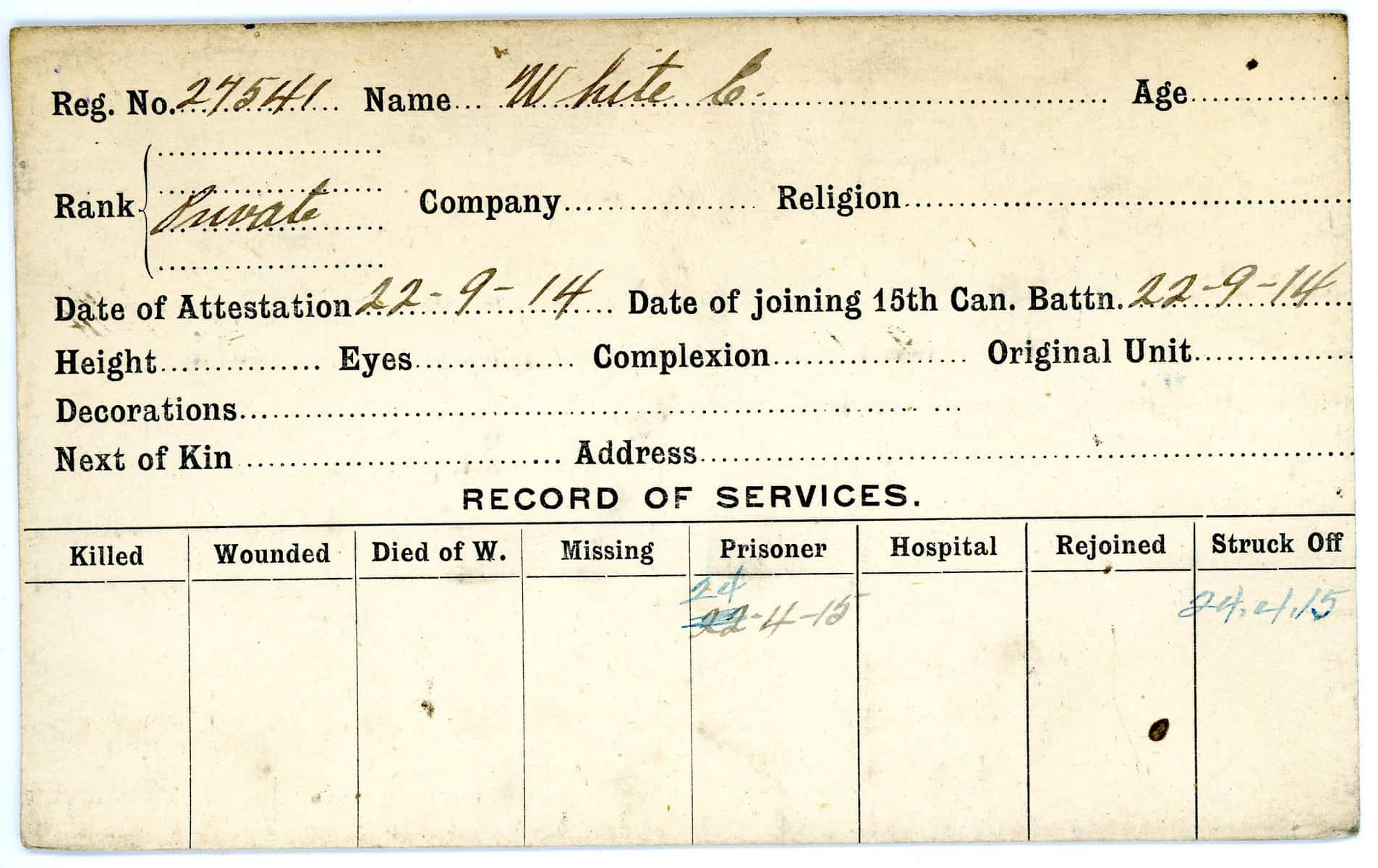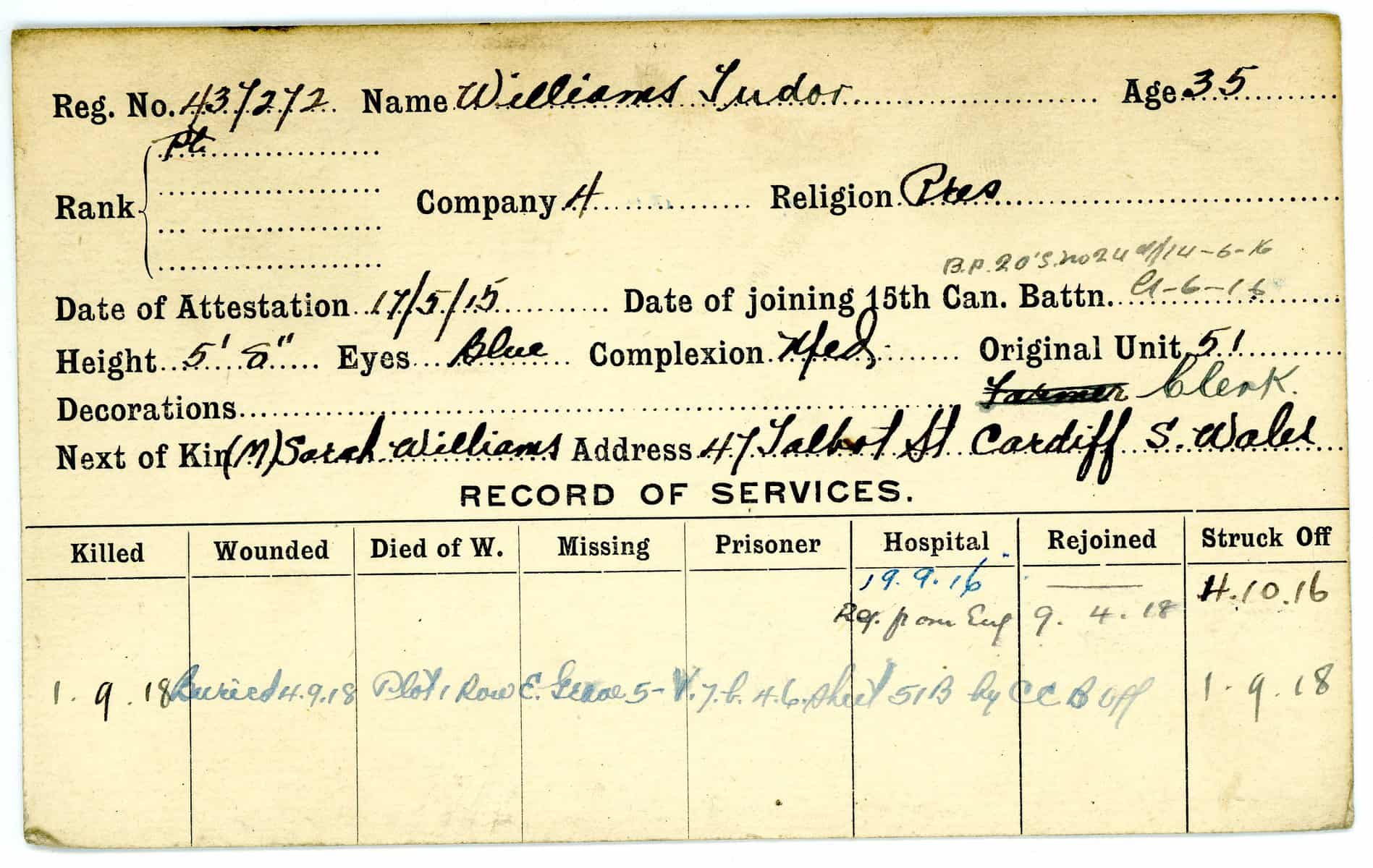 Record of Service Cards – W