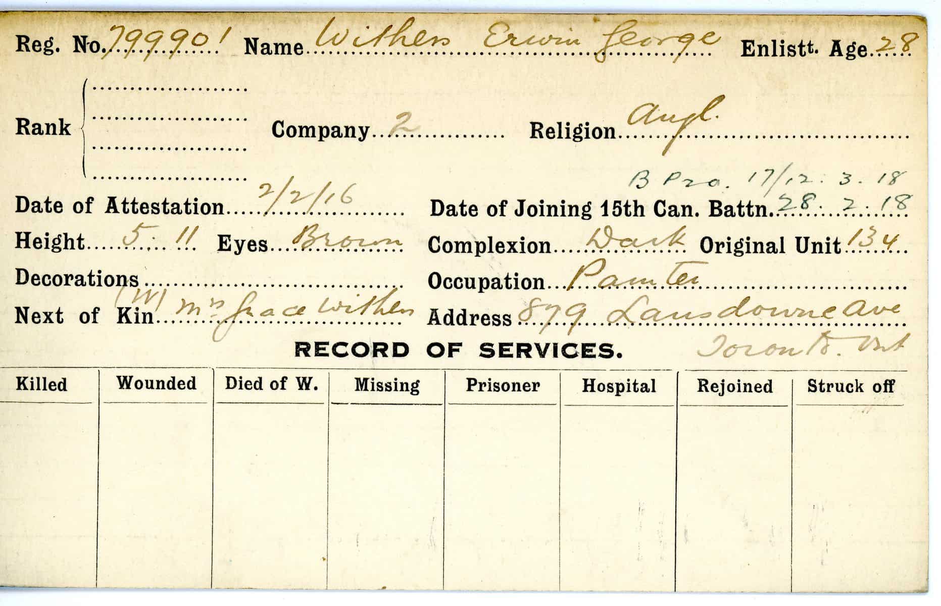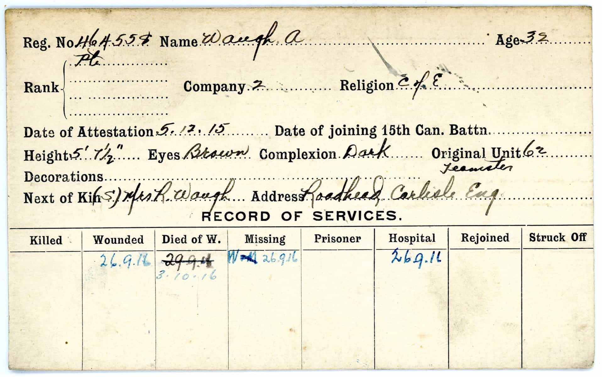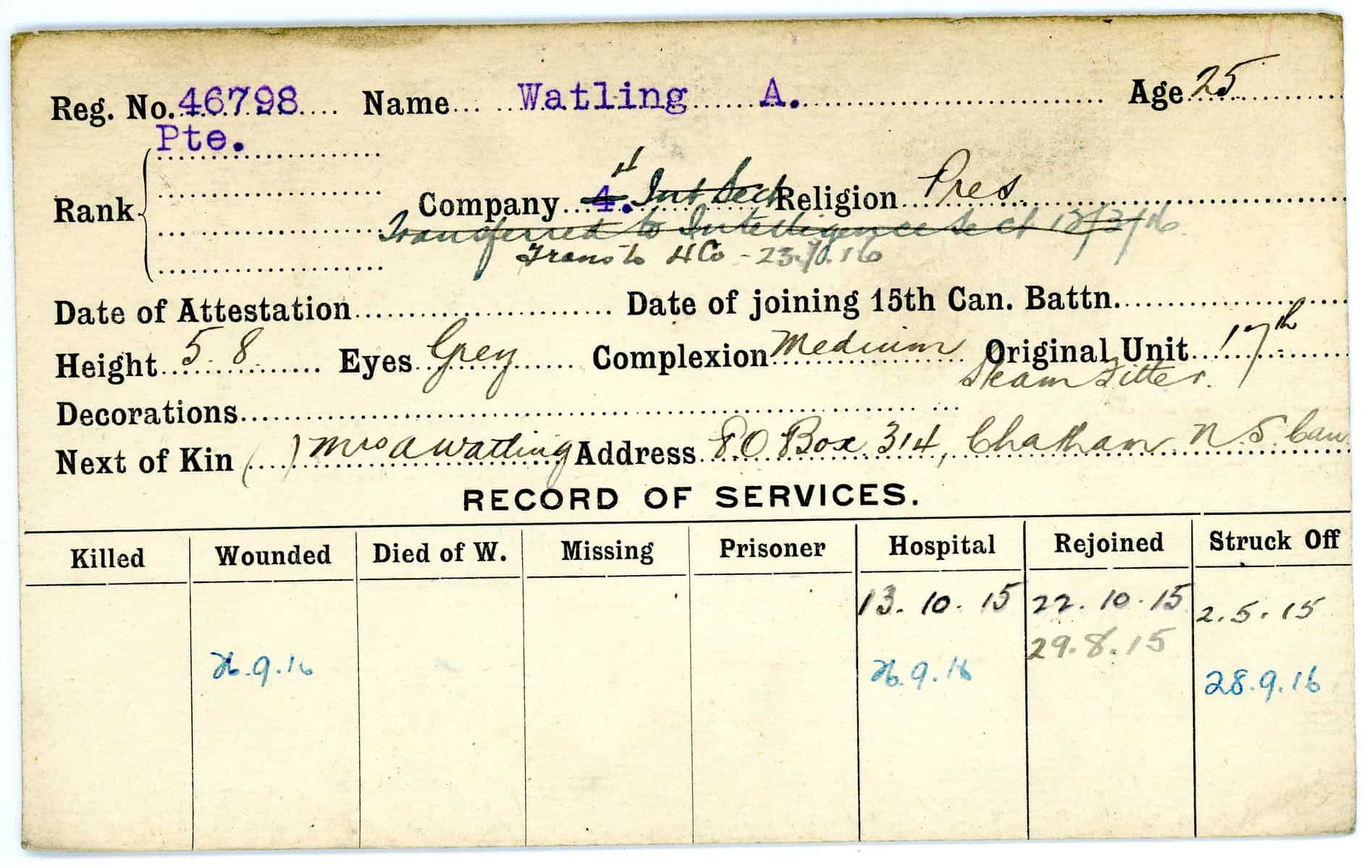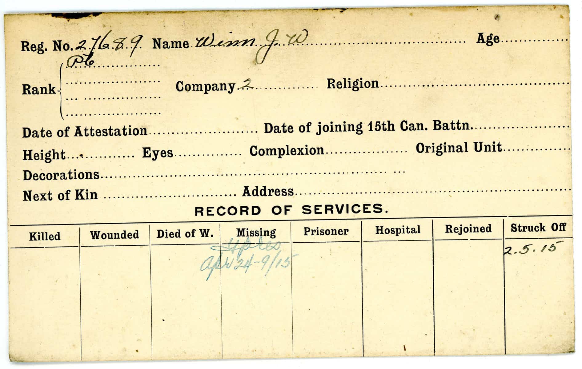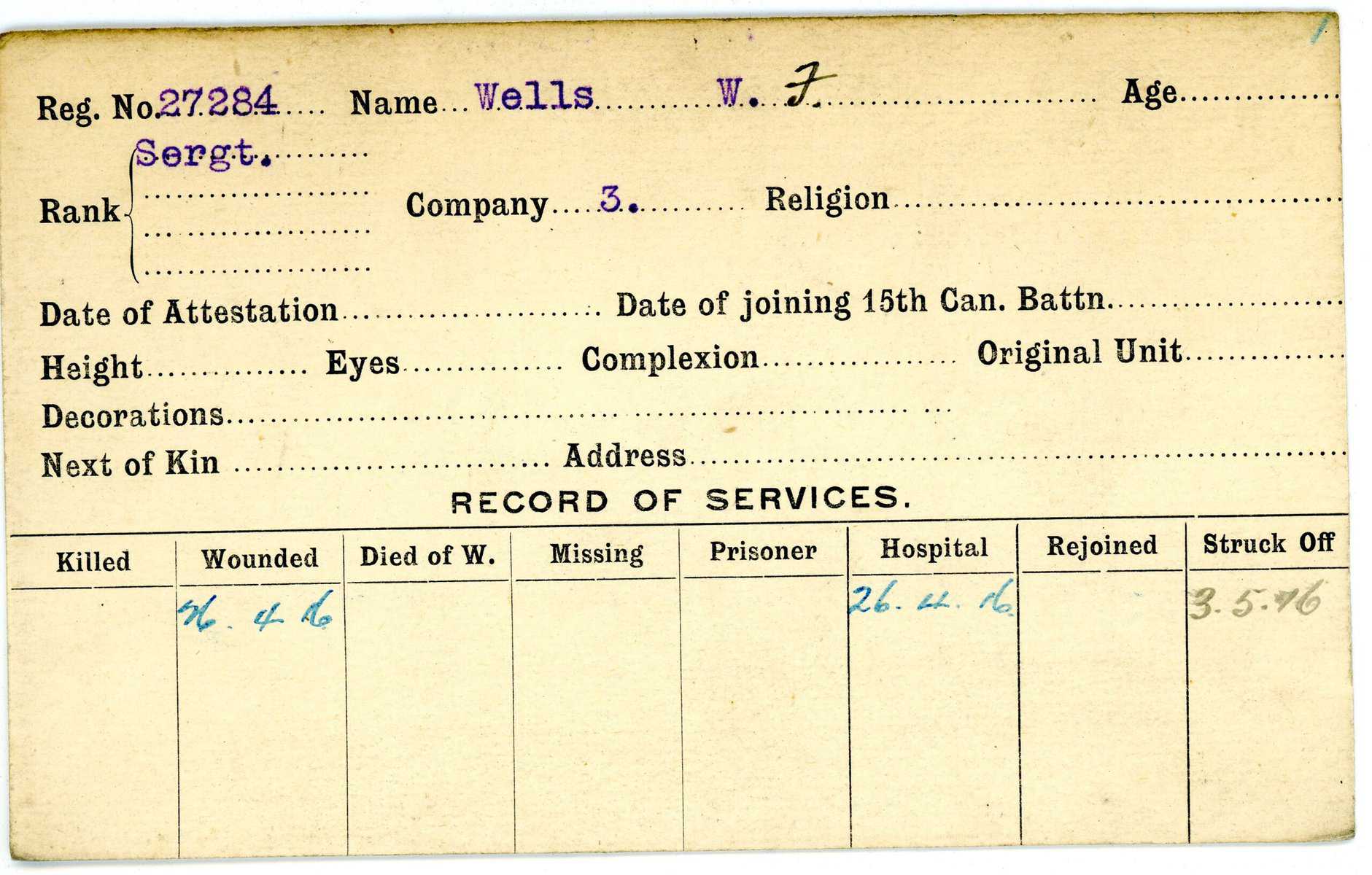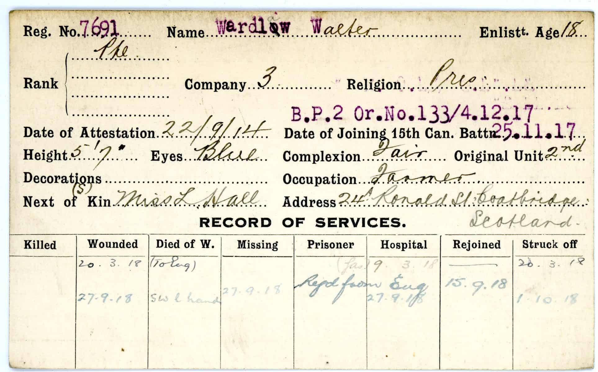 Record of Service Cards – W