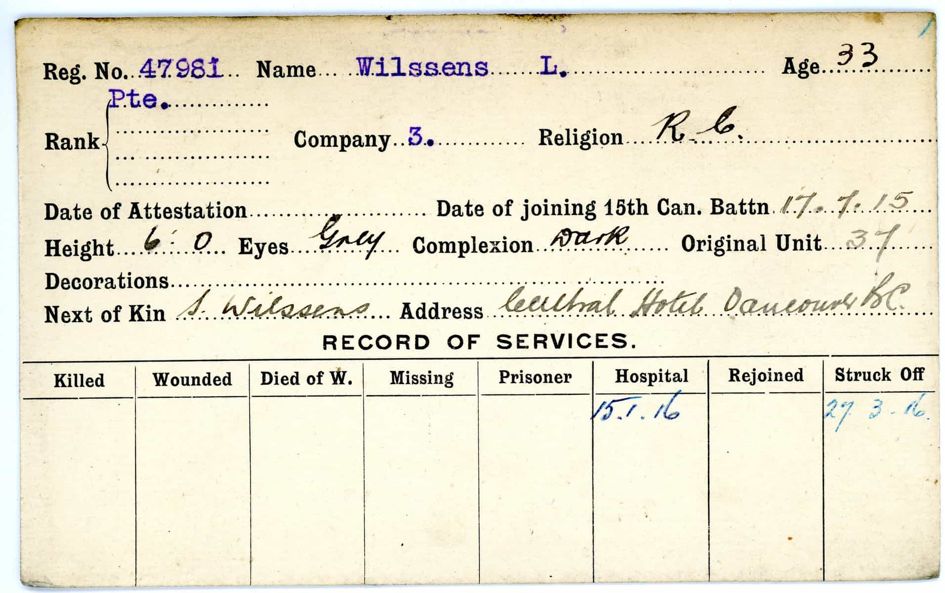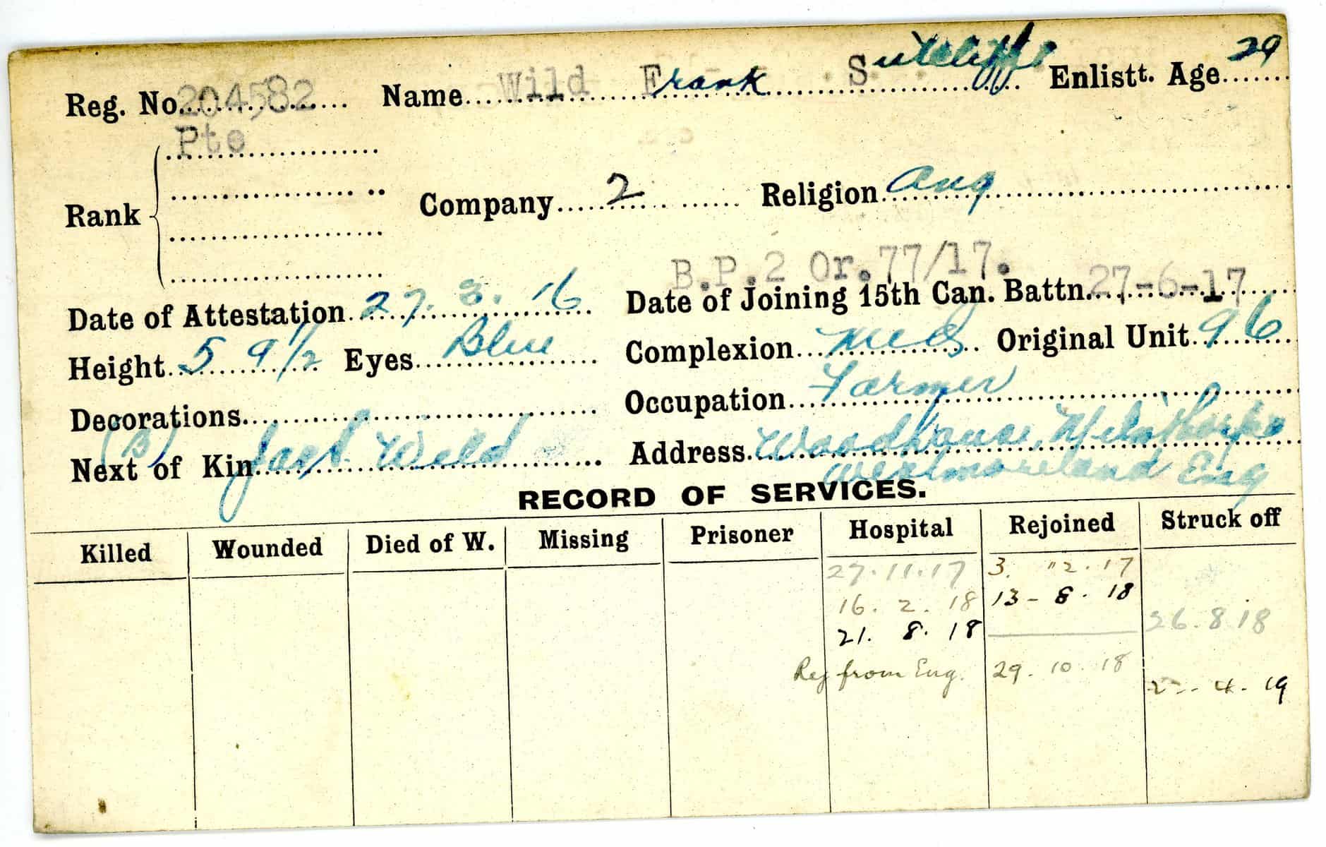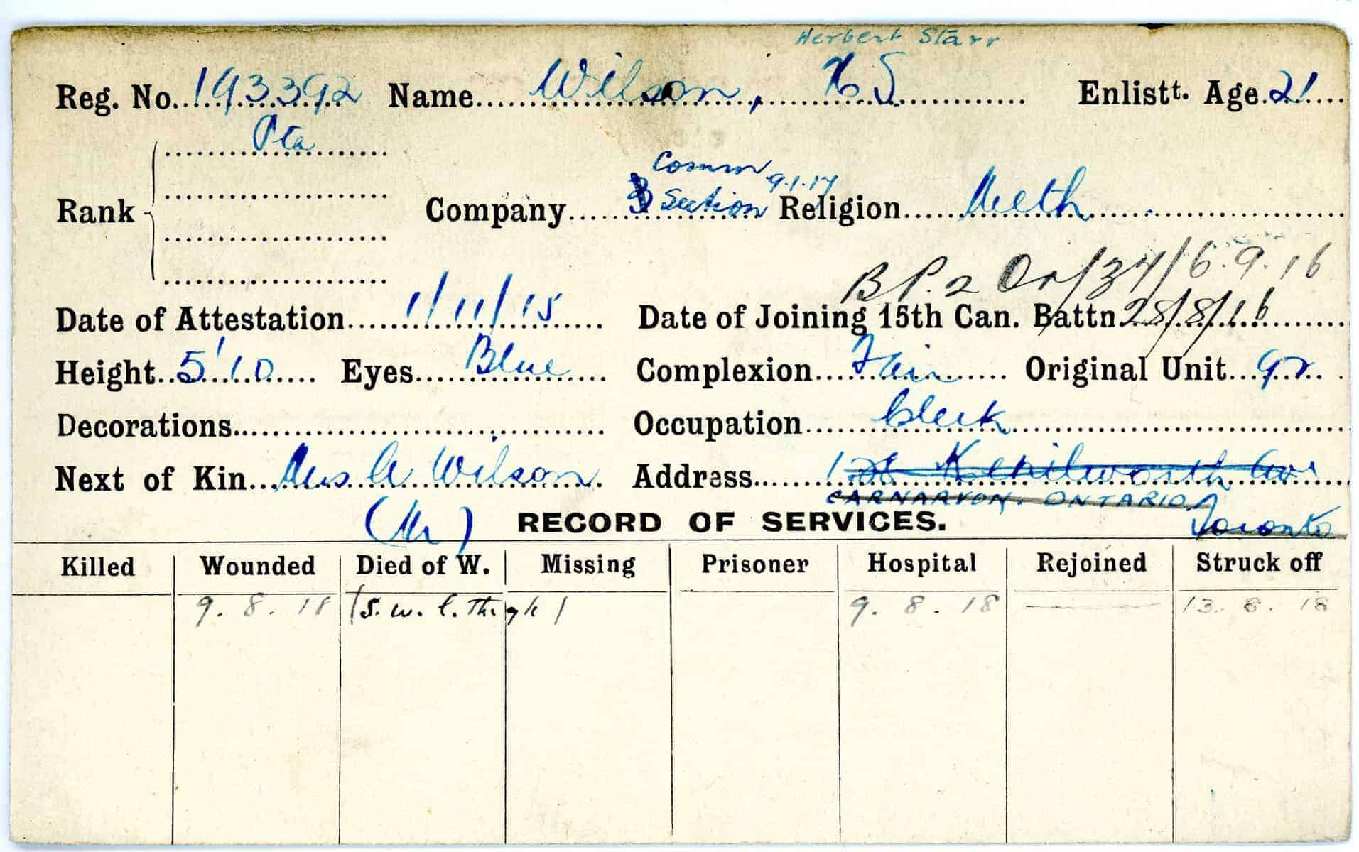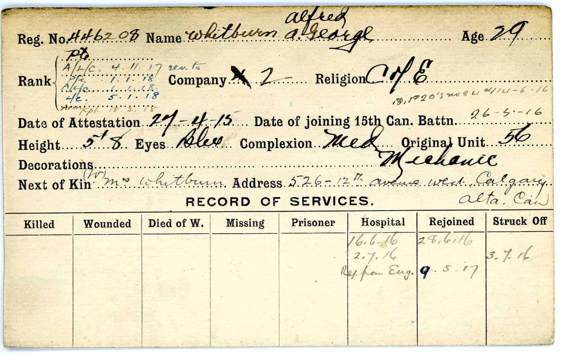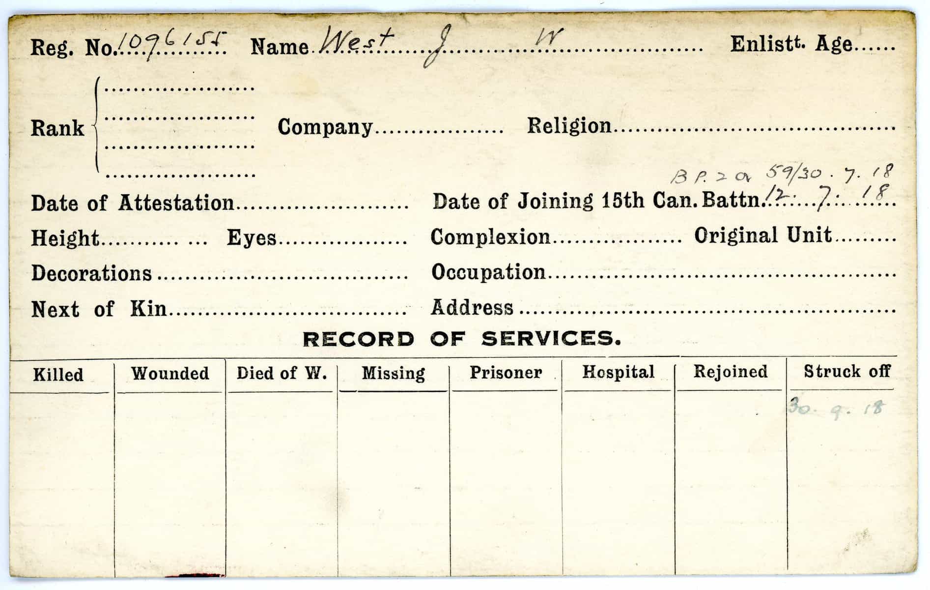 Record of Service Cards – W
