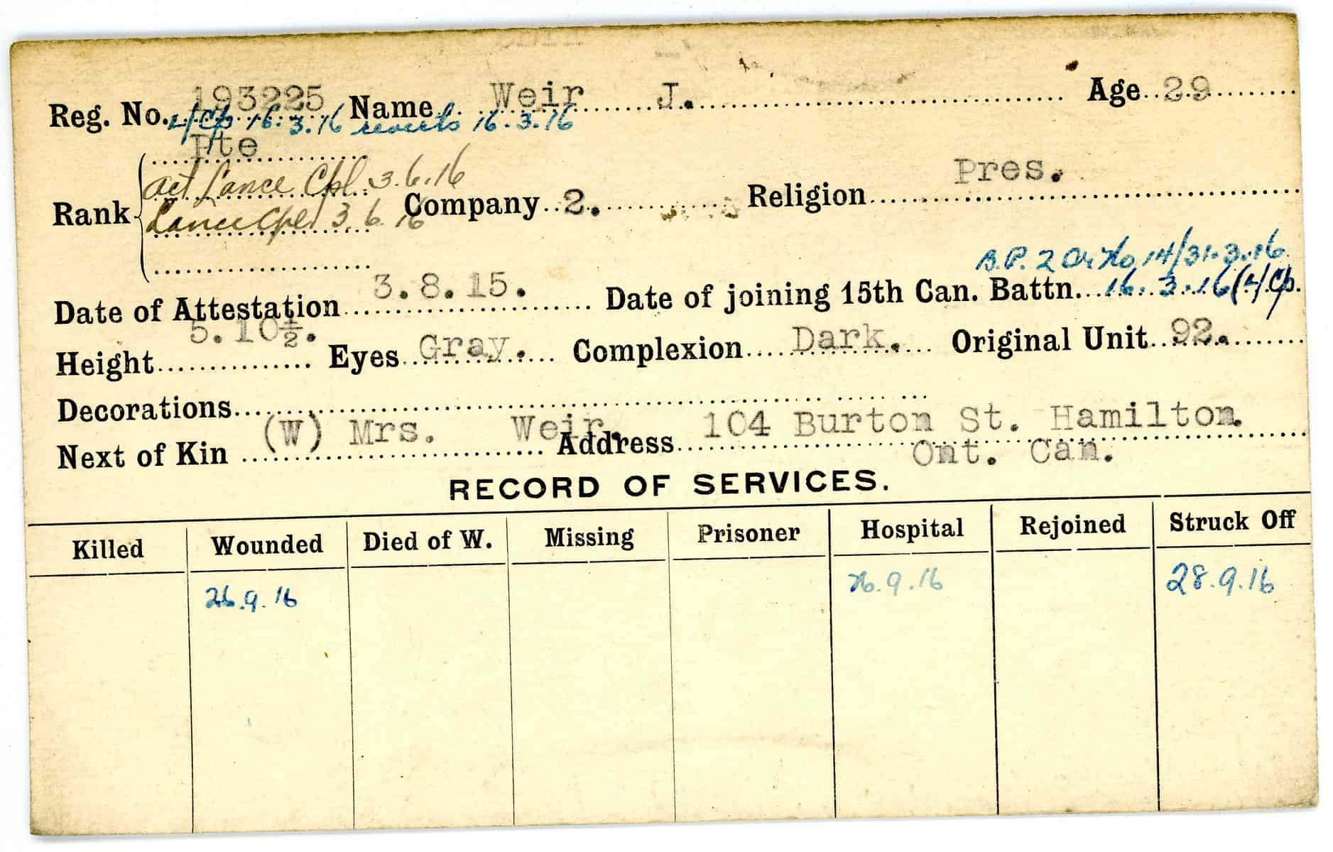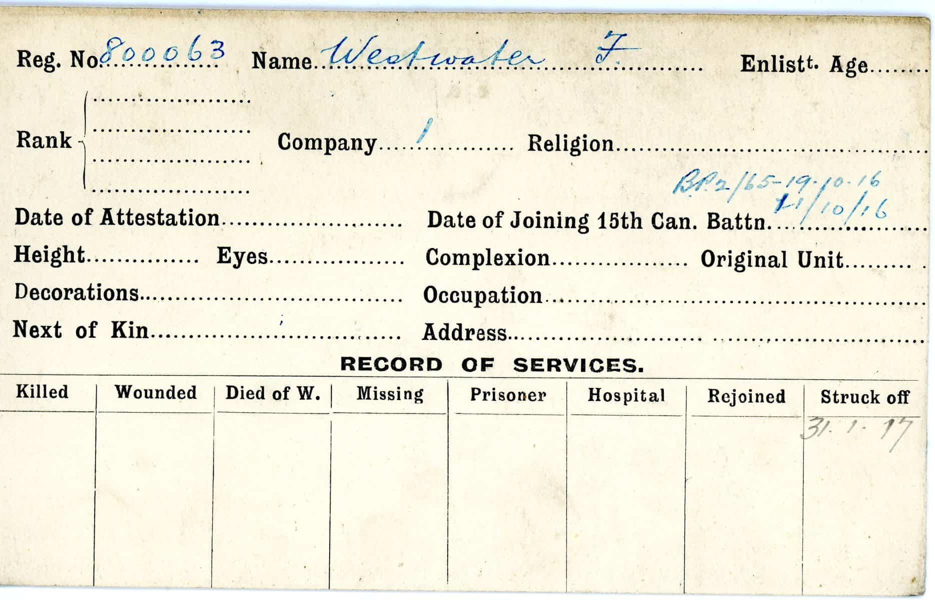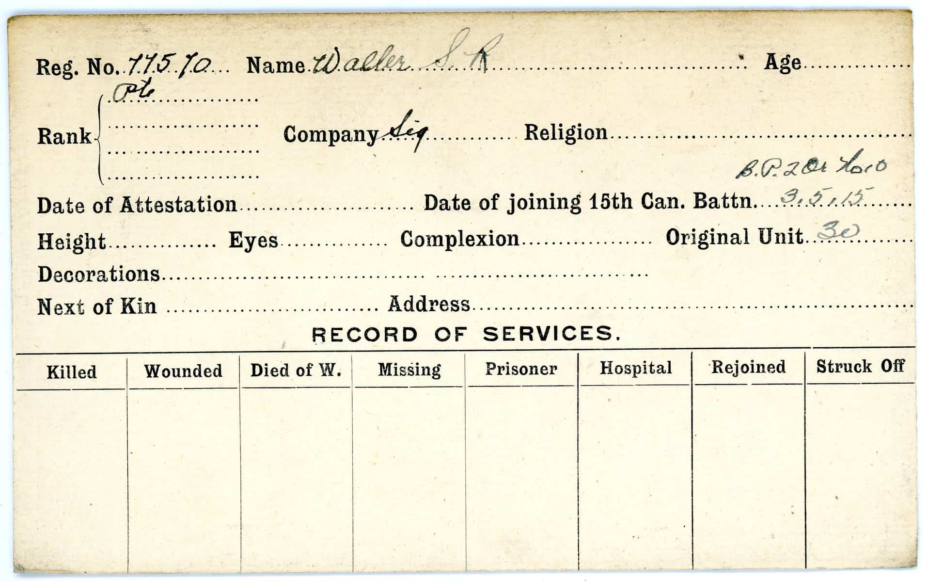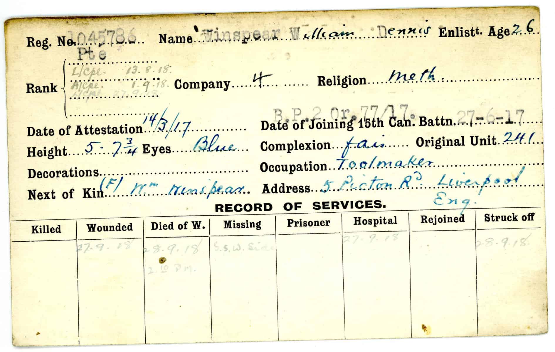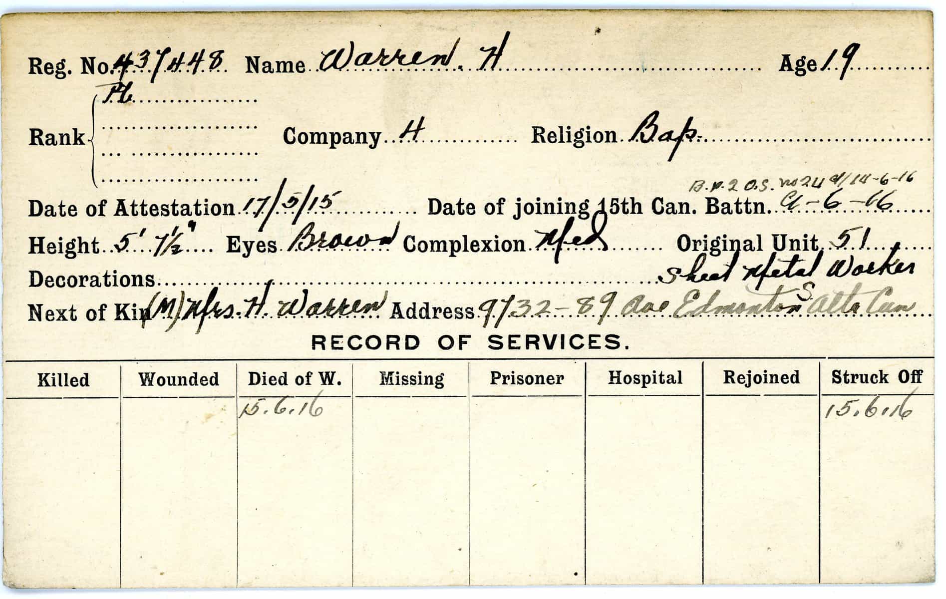Record of Service Cards – W