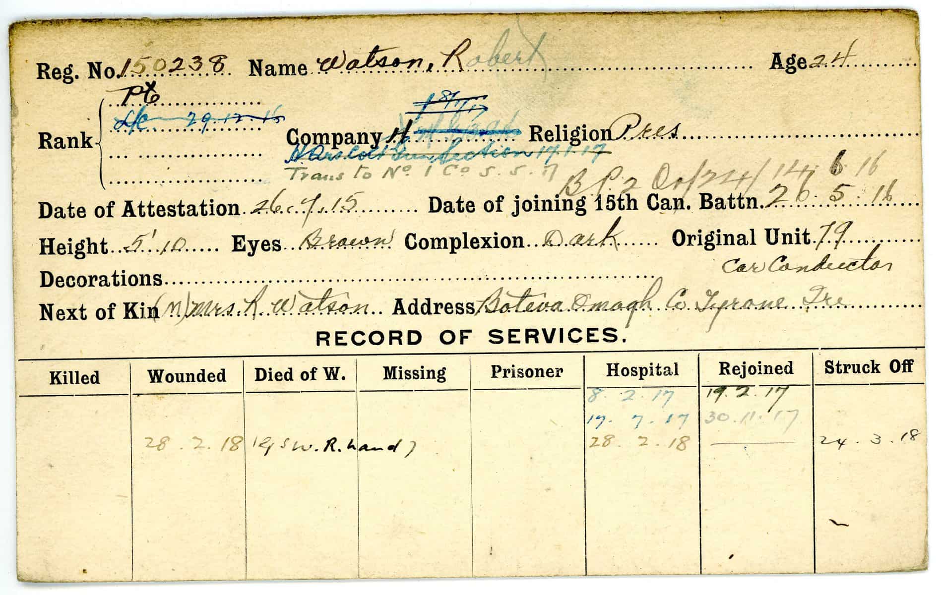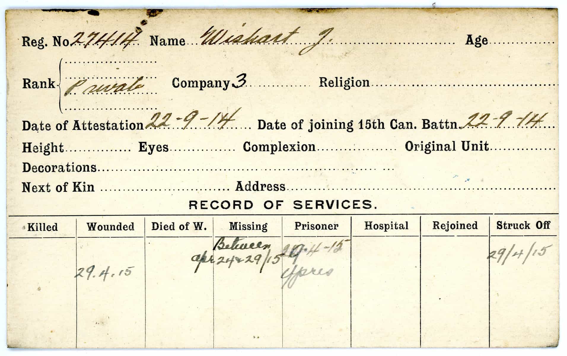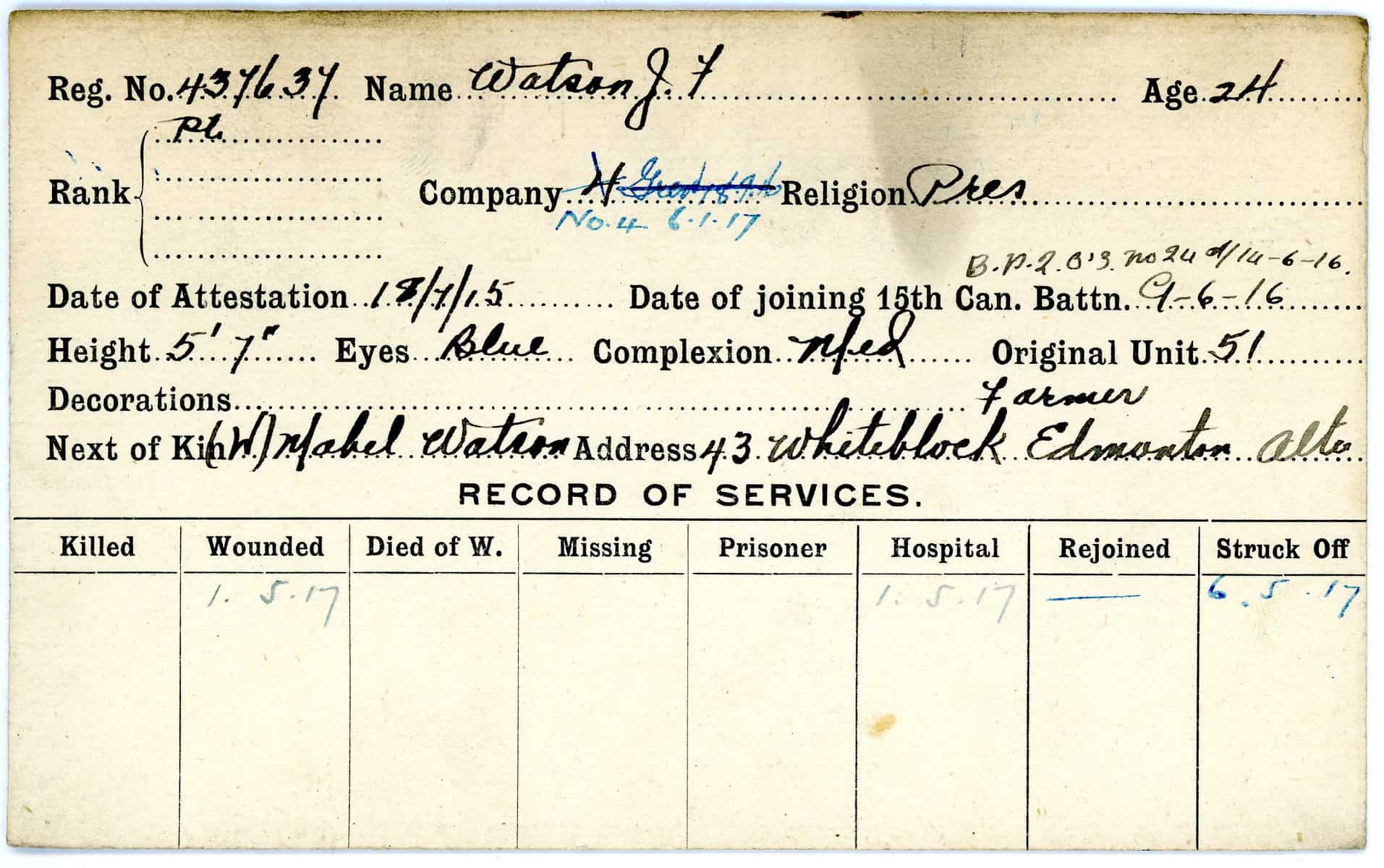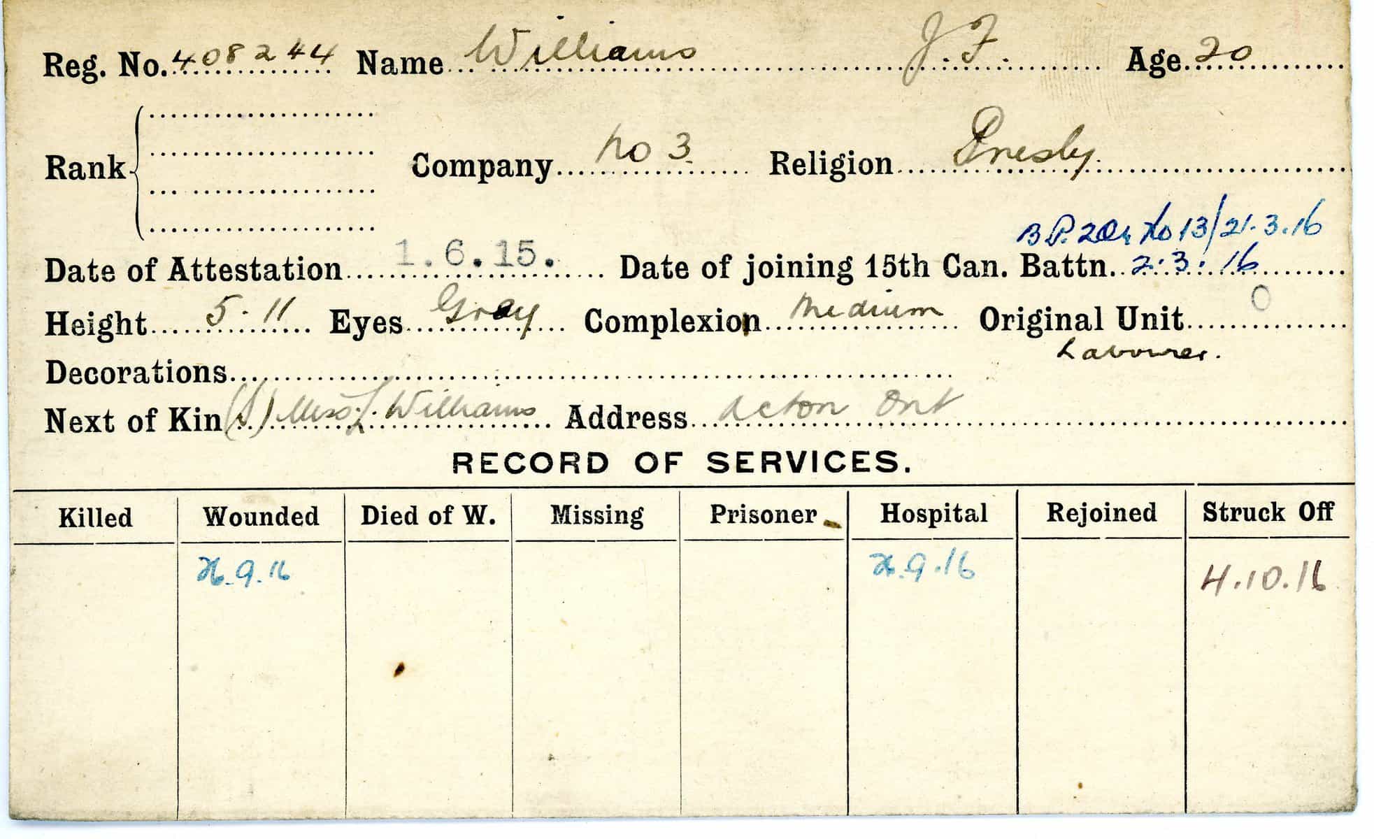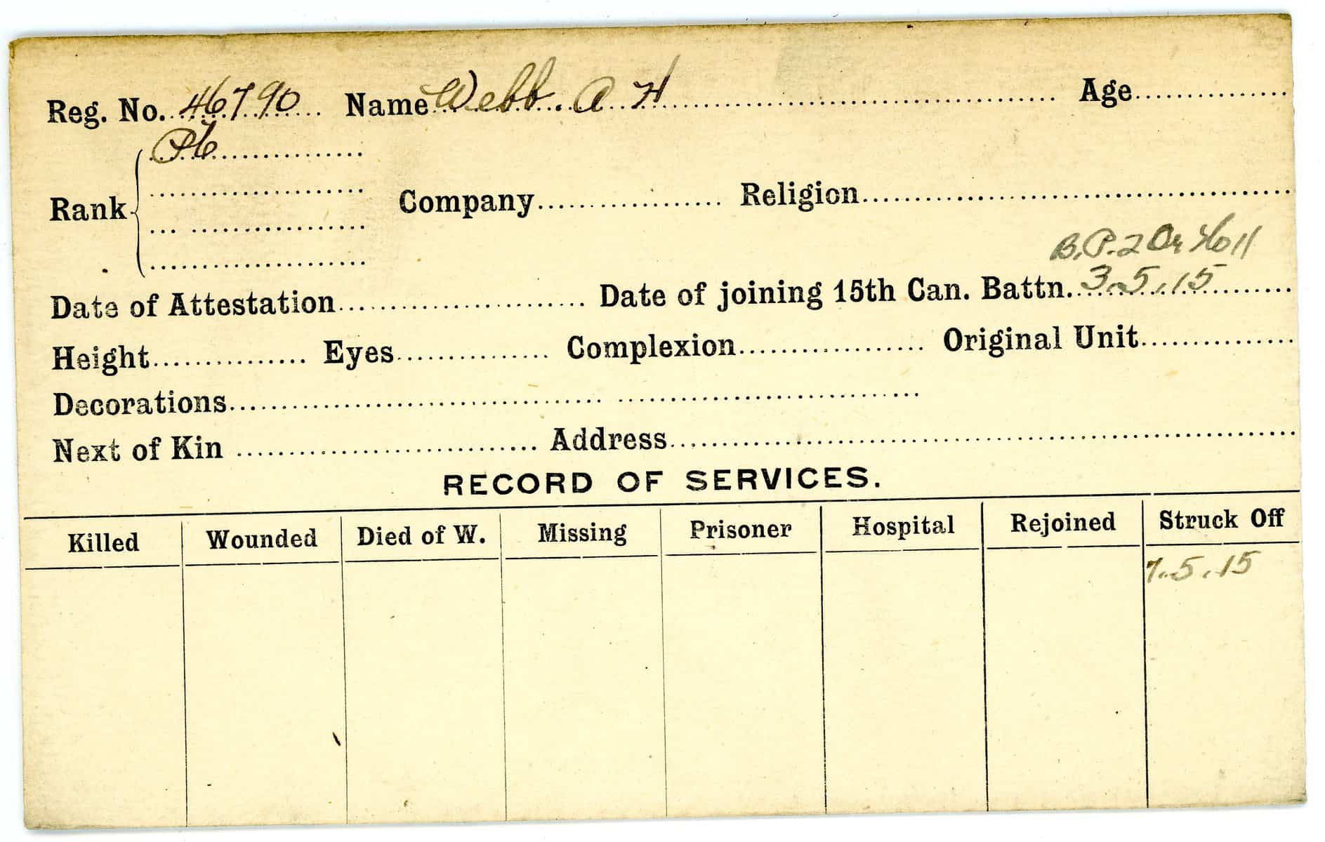 Record of Service Cards – W