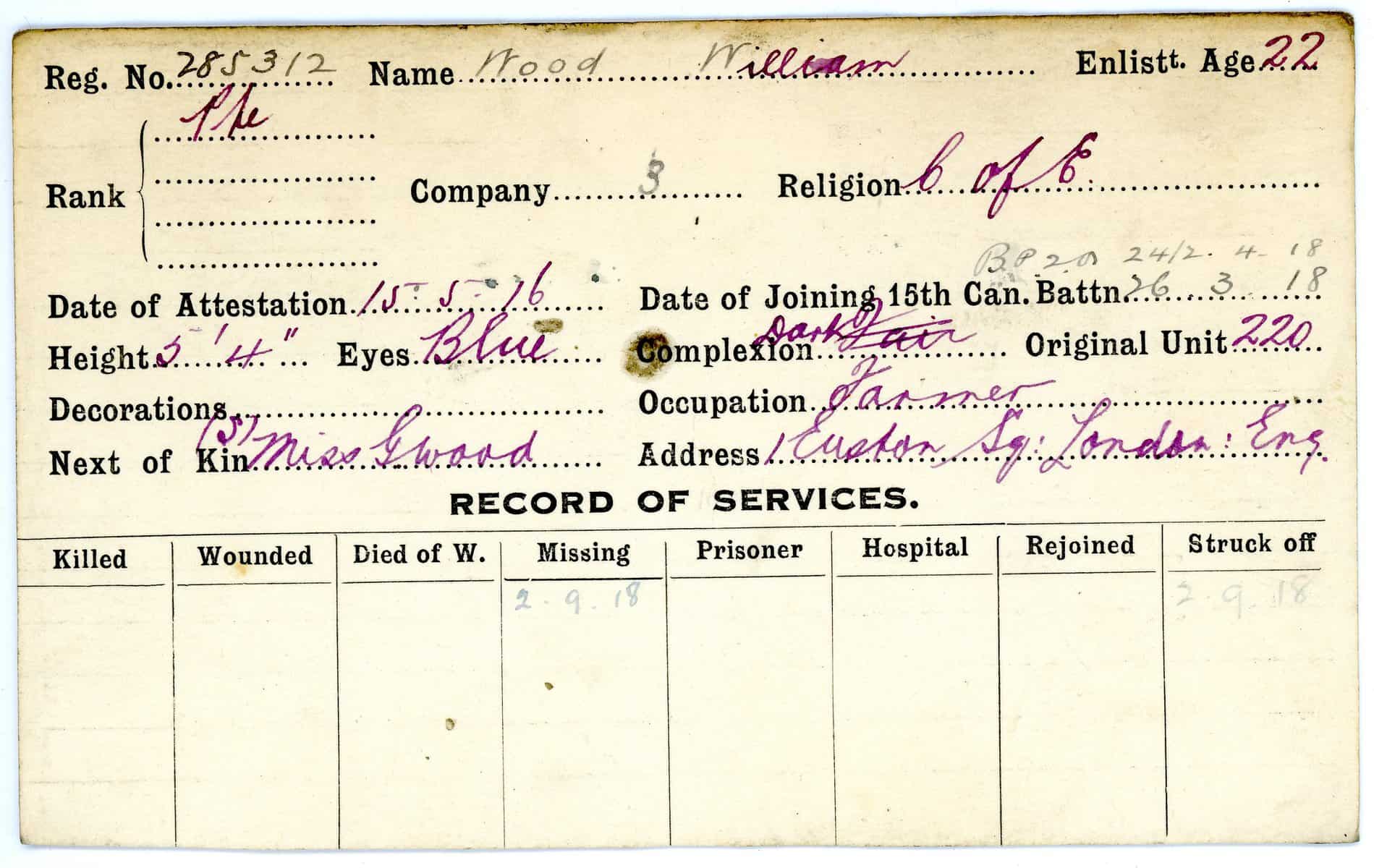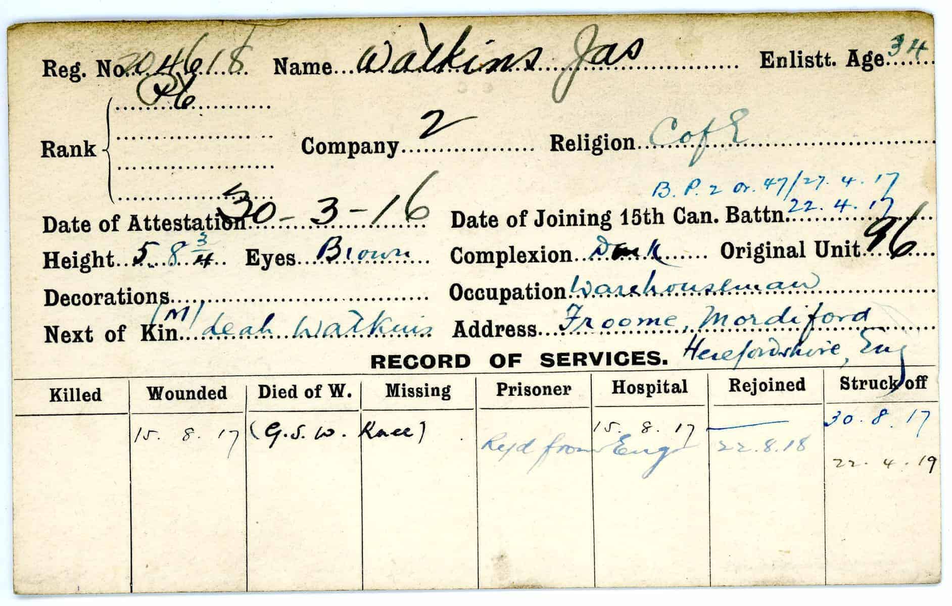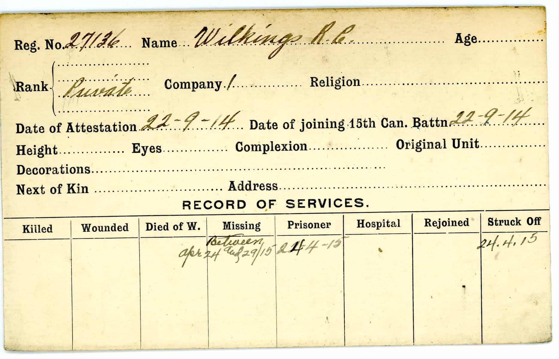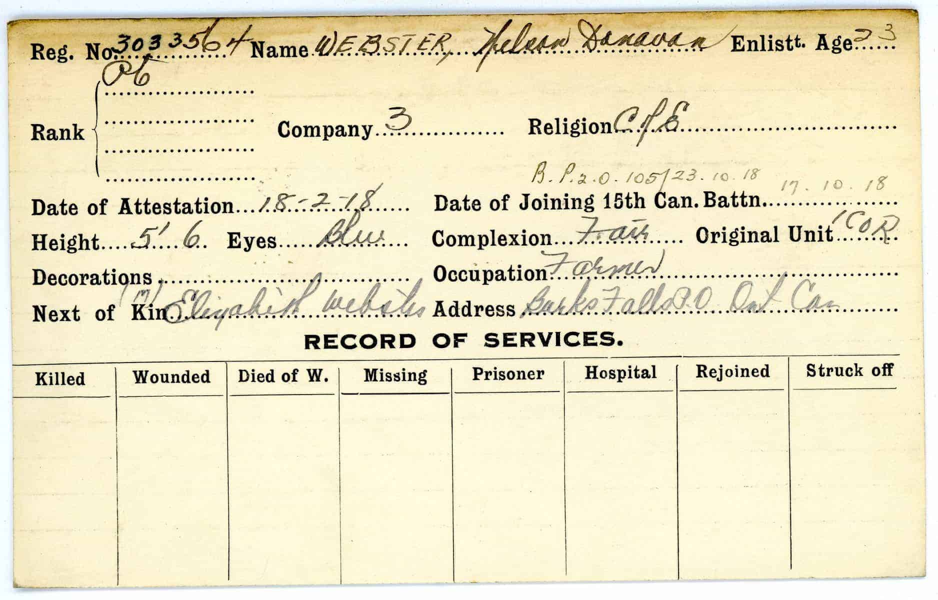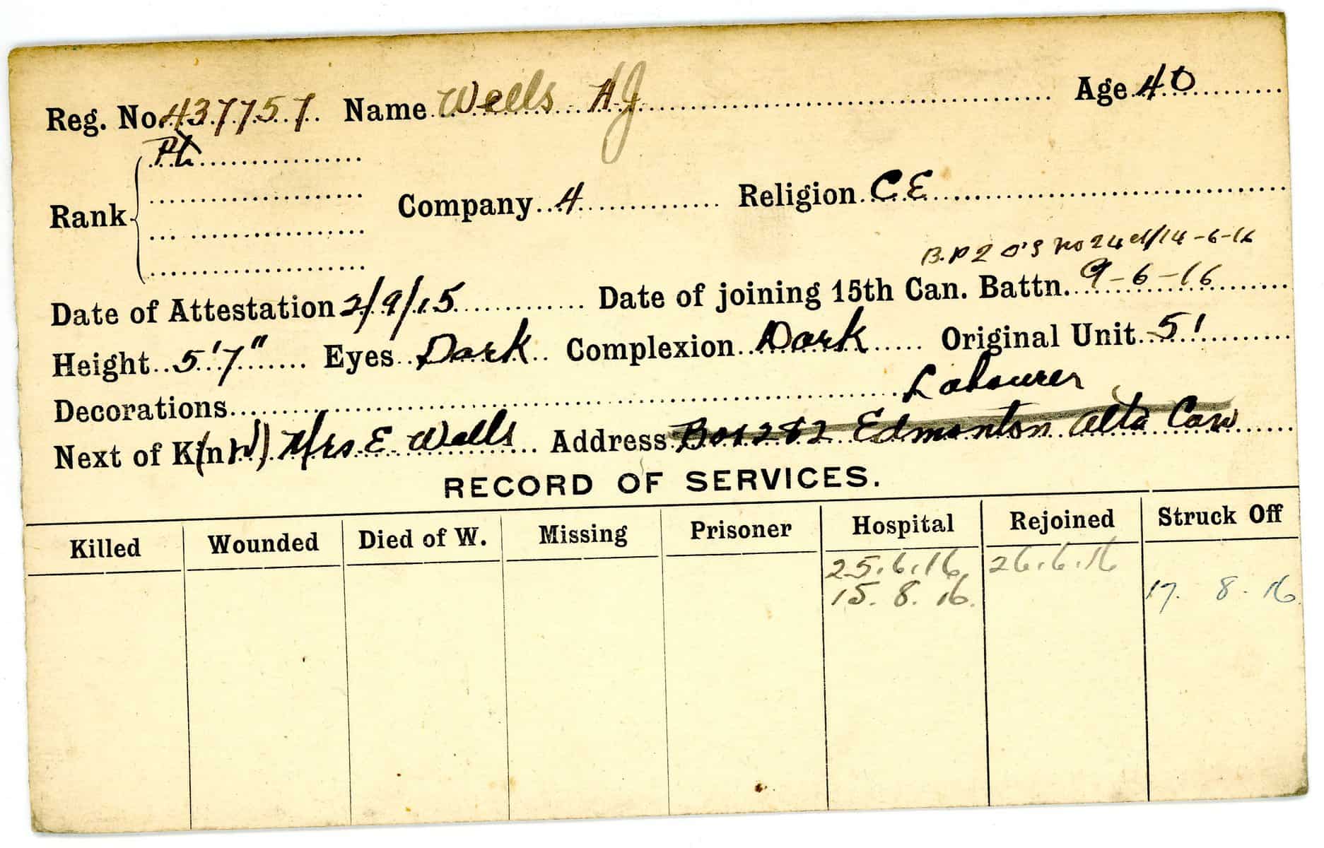 Record of Service Cards – W
