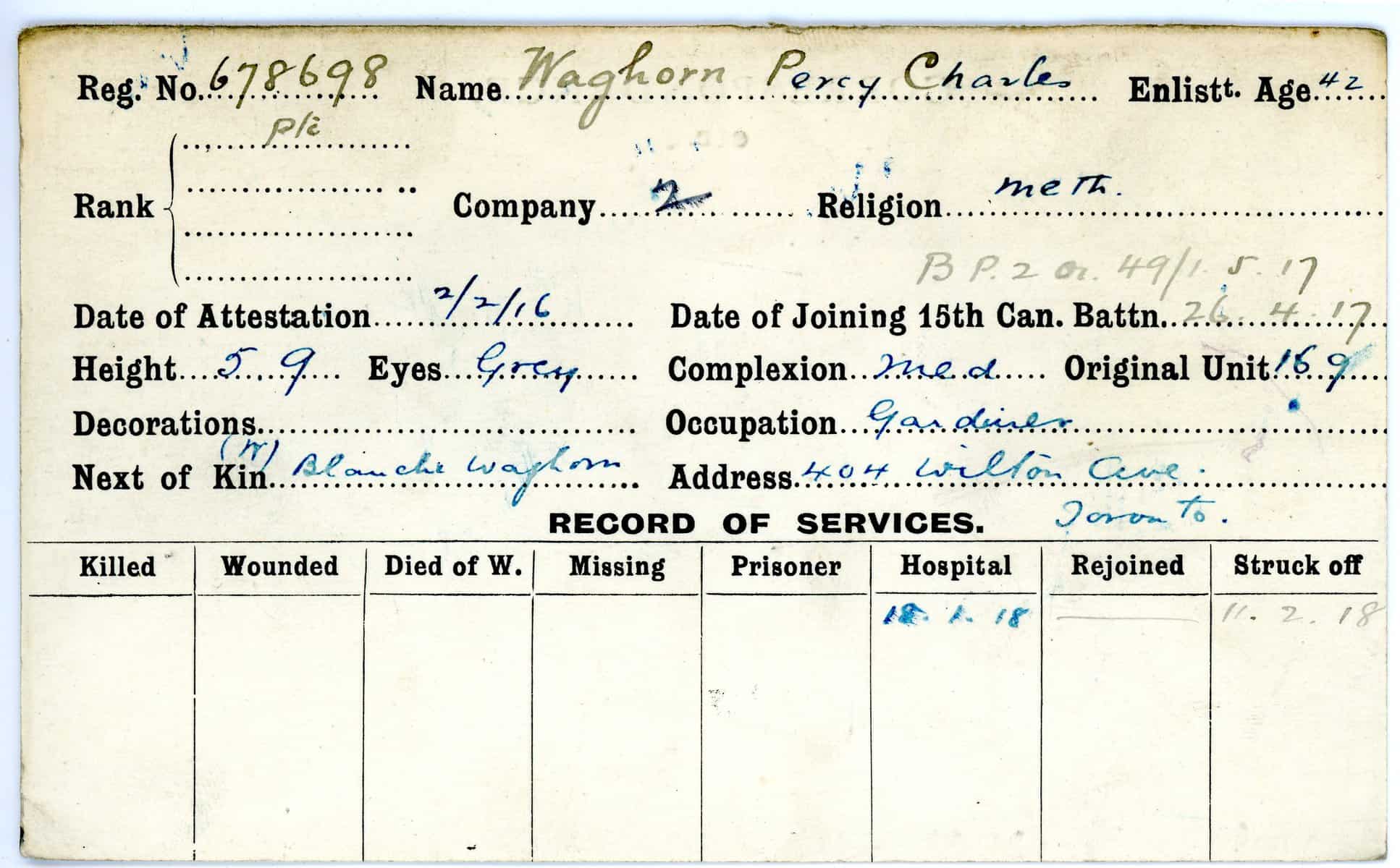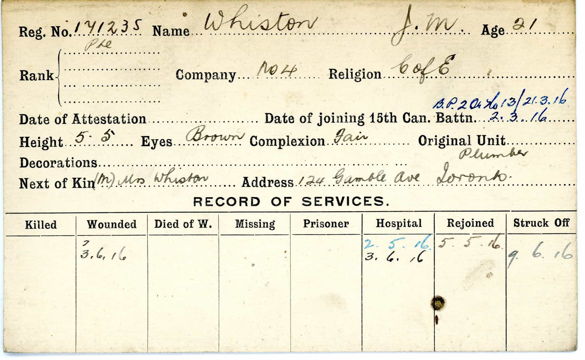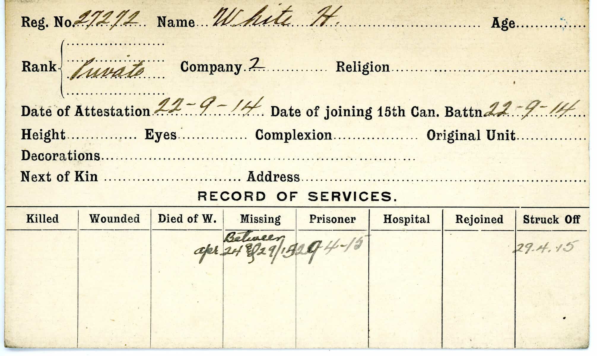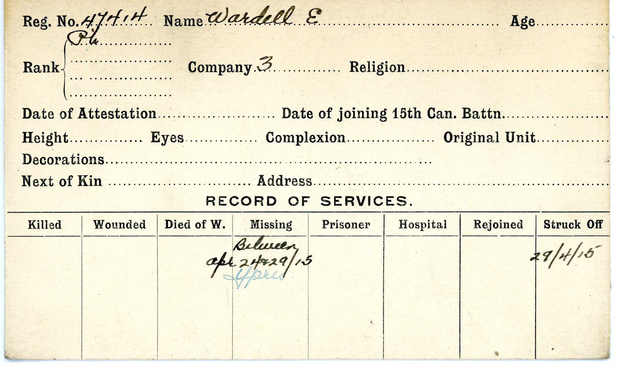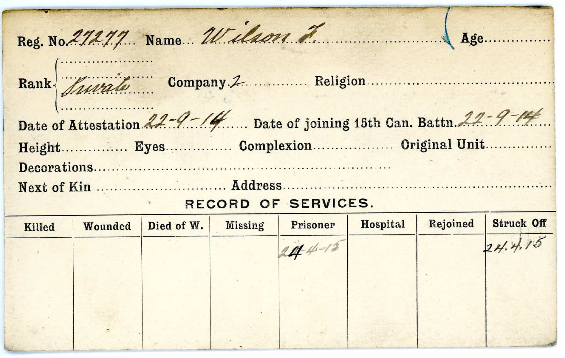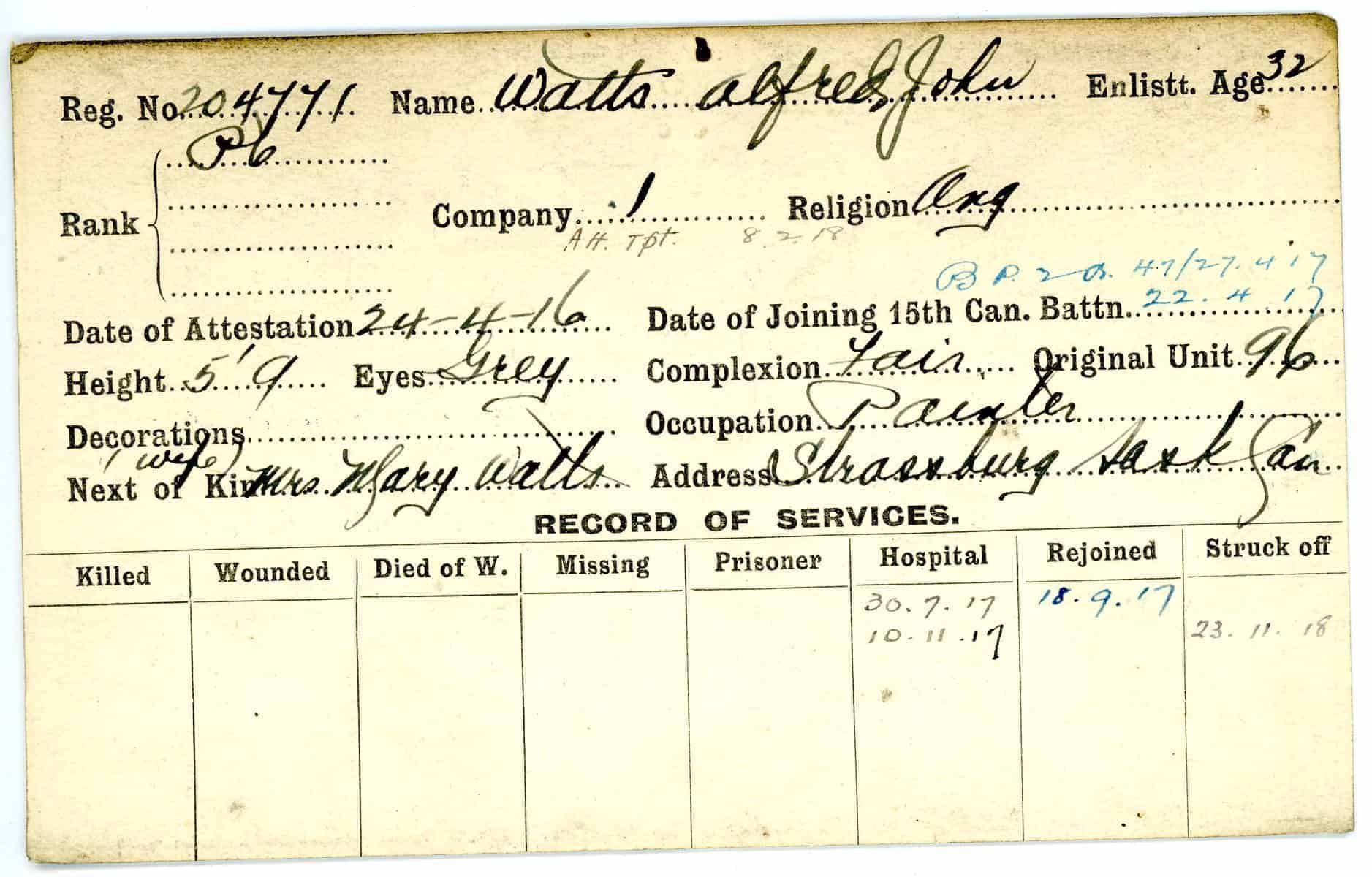 Record of Service Cards – W