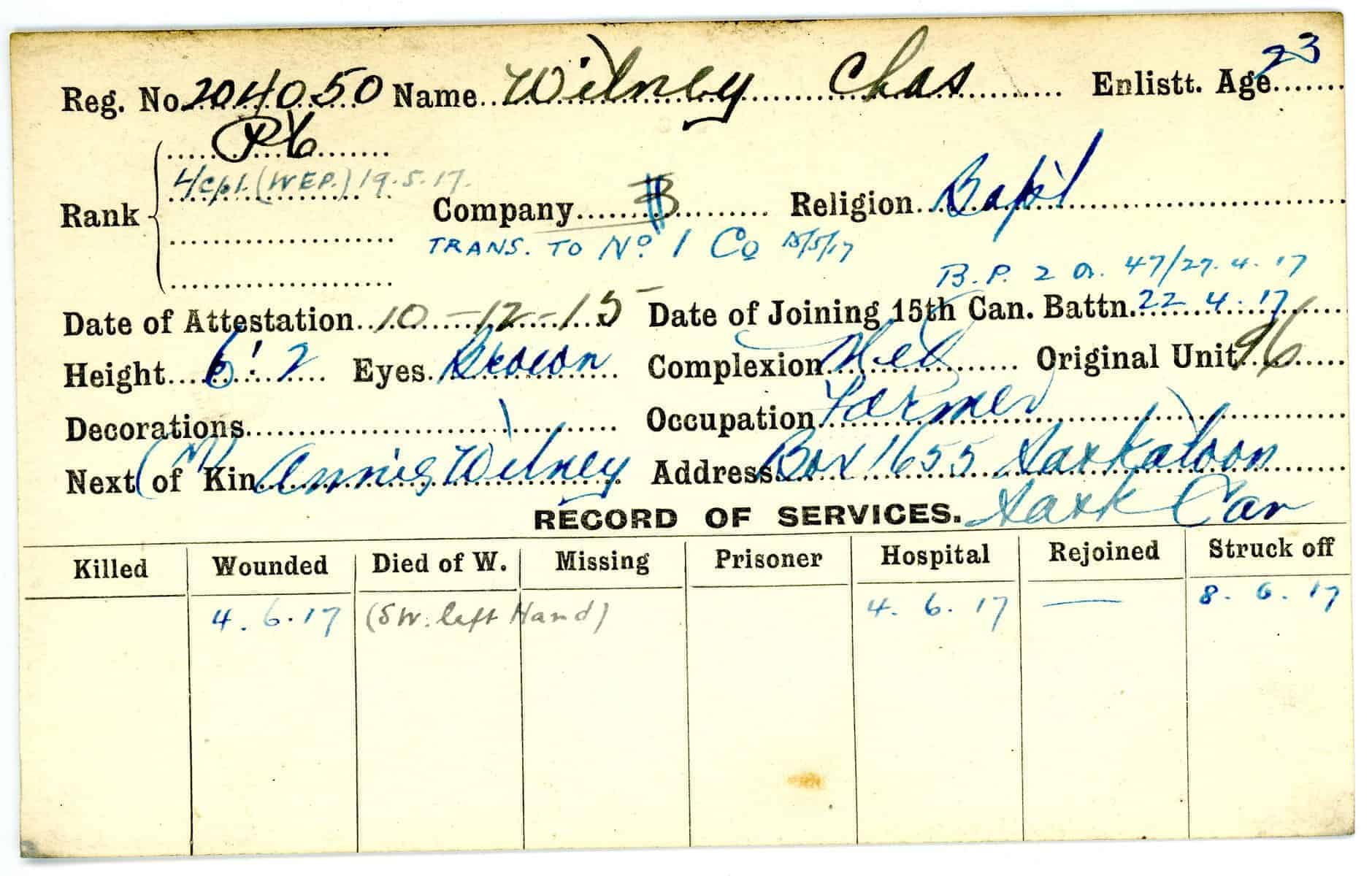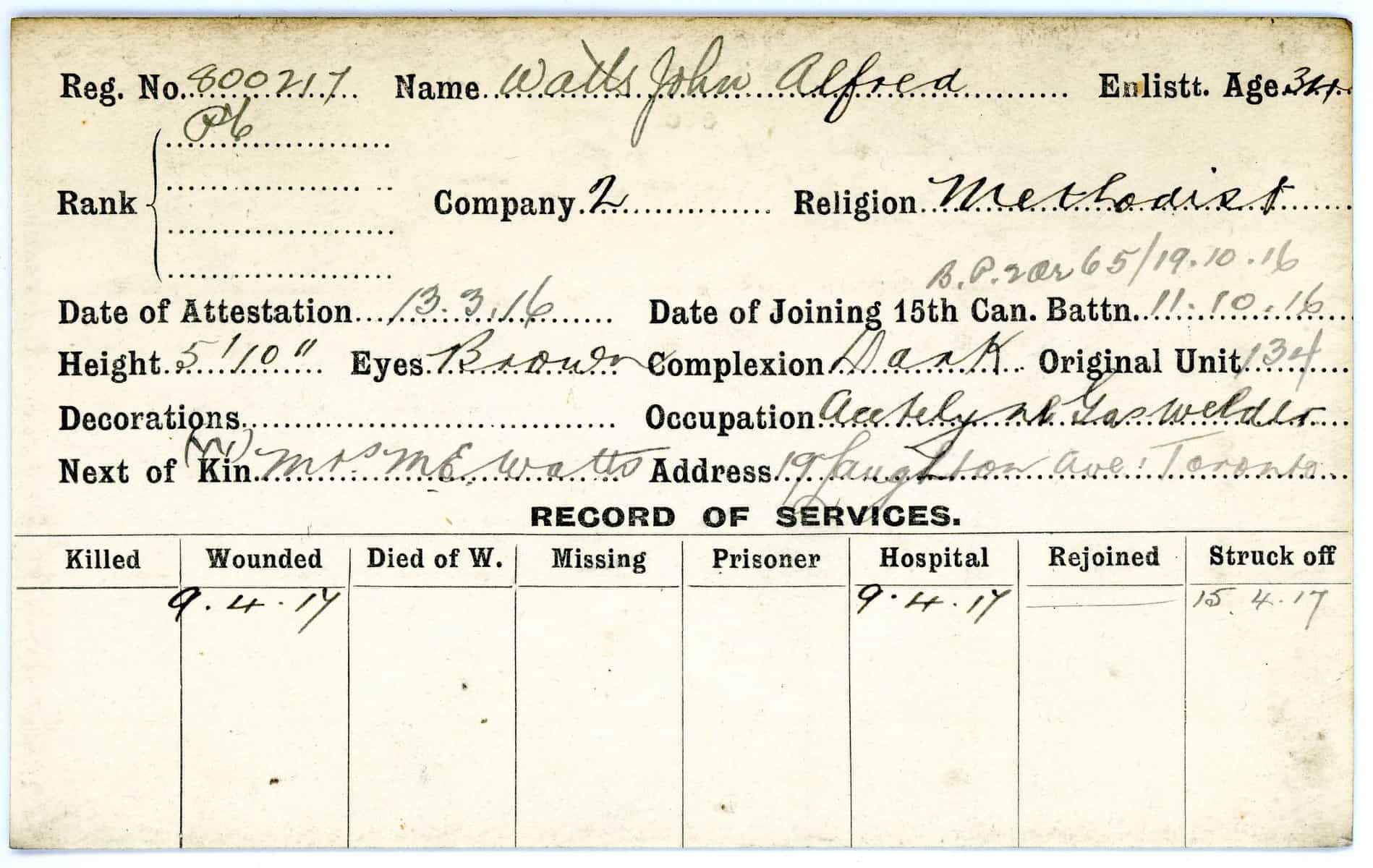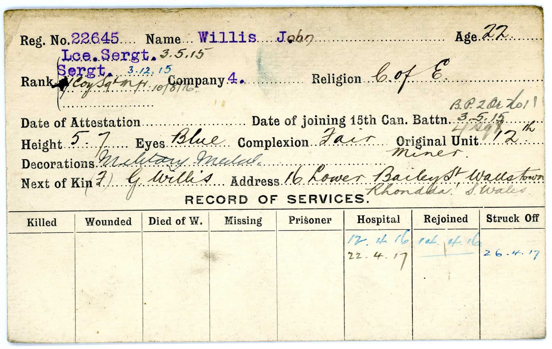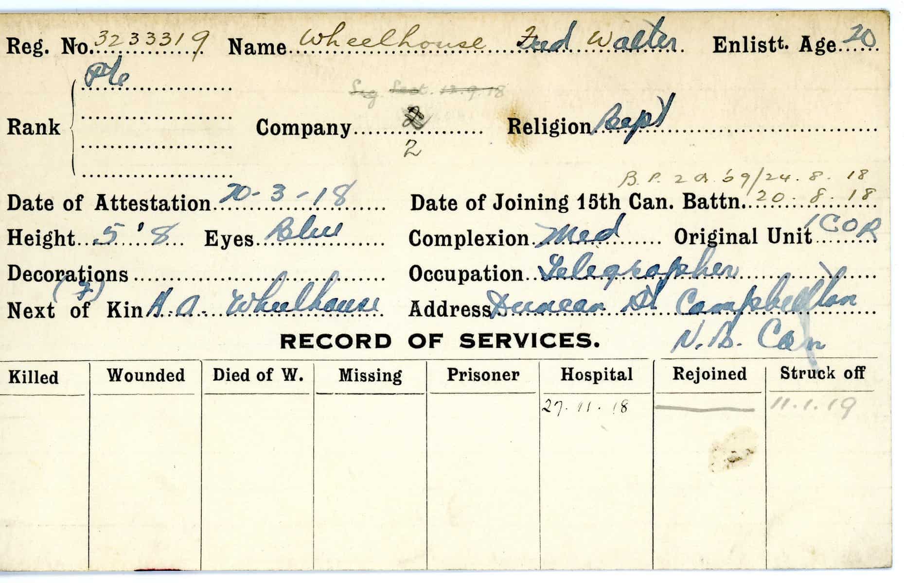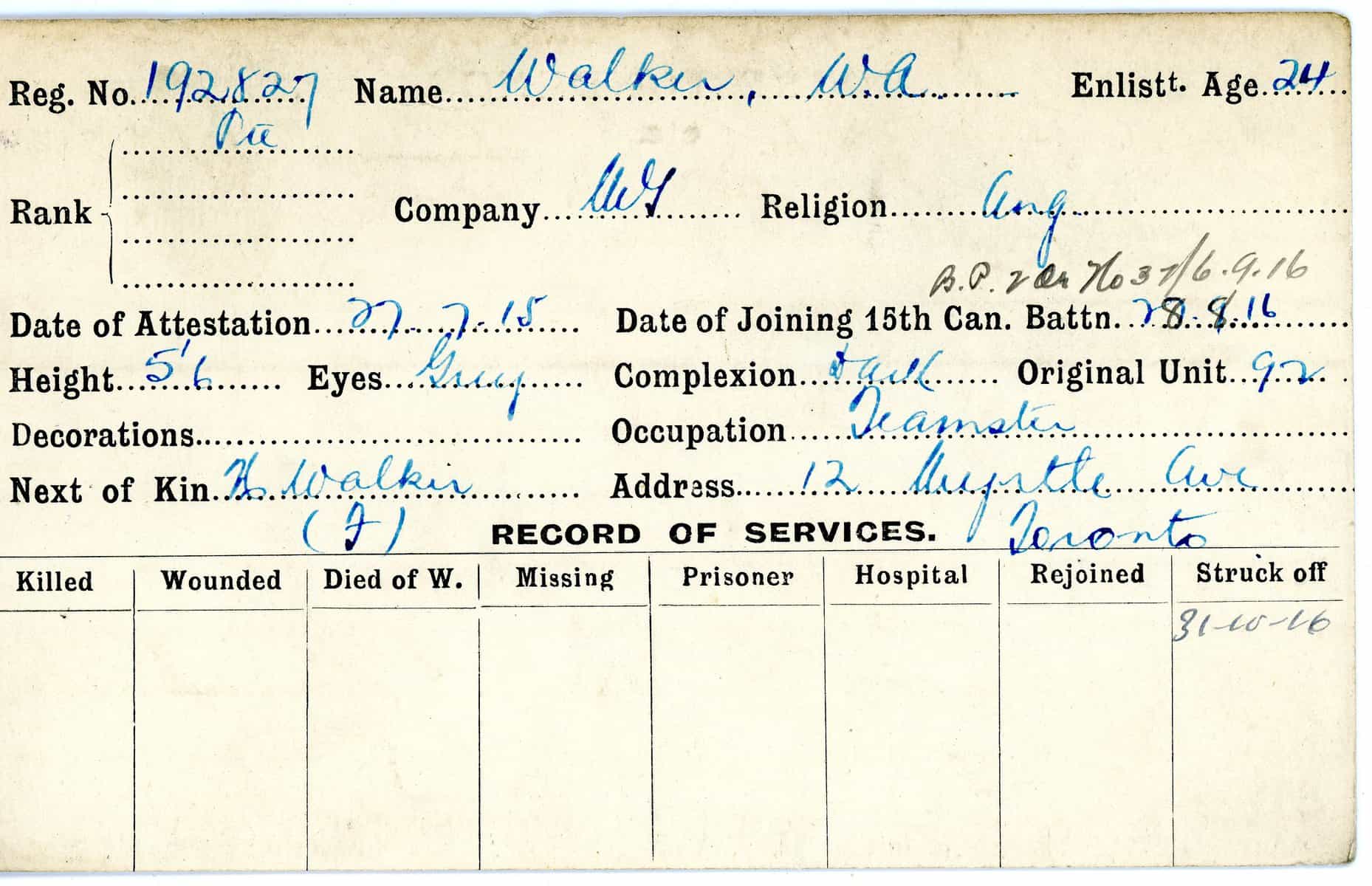 Record of Service Cards – W