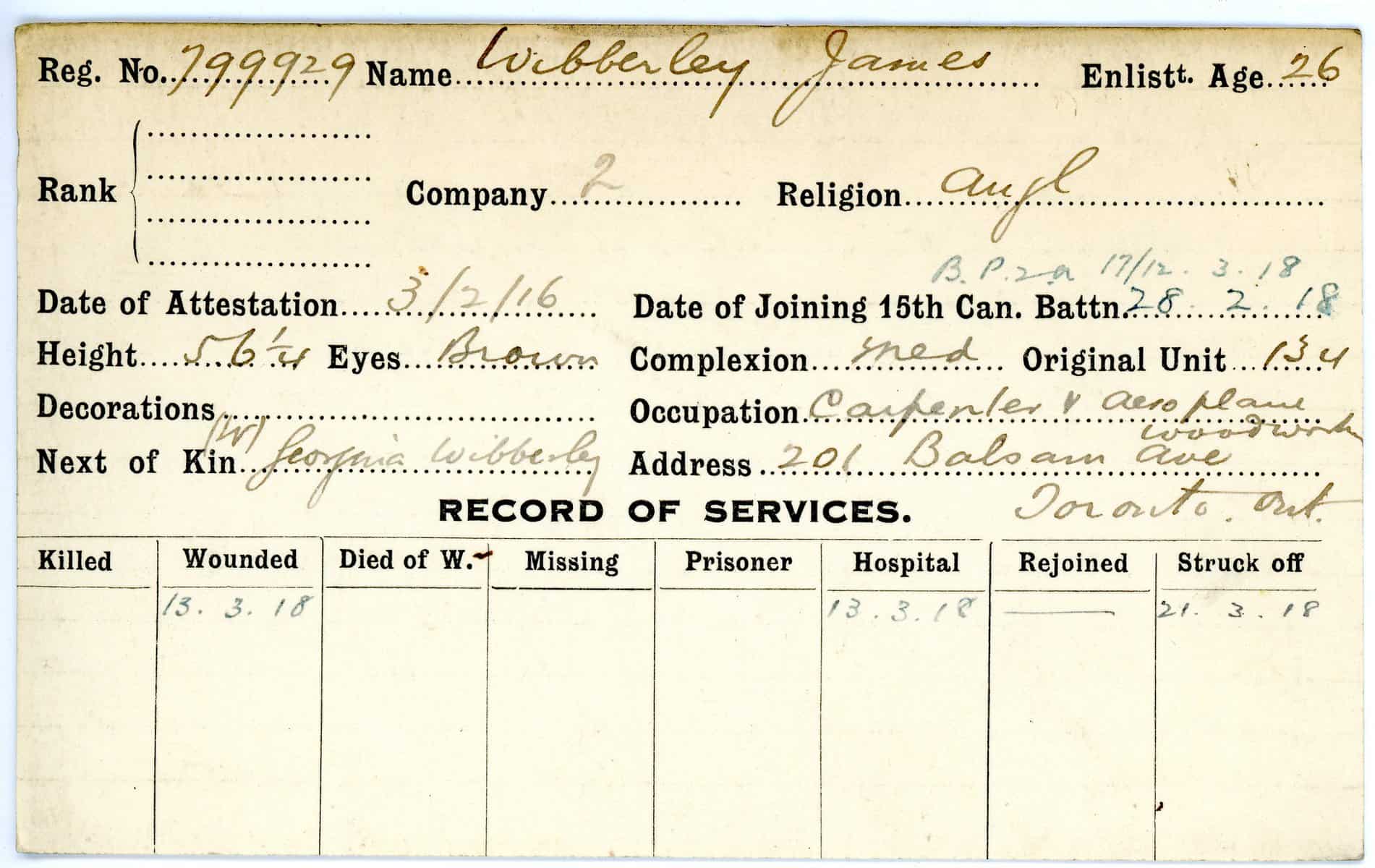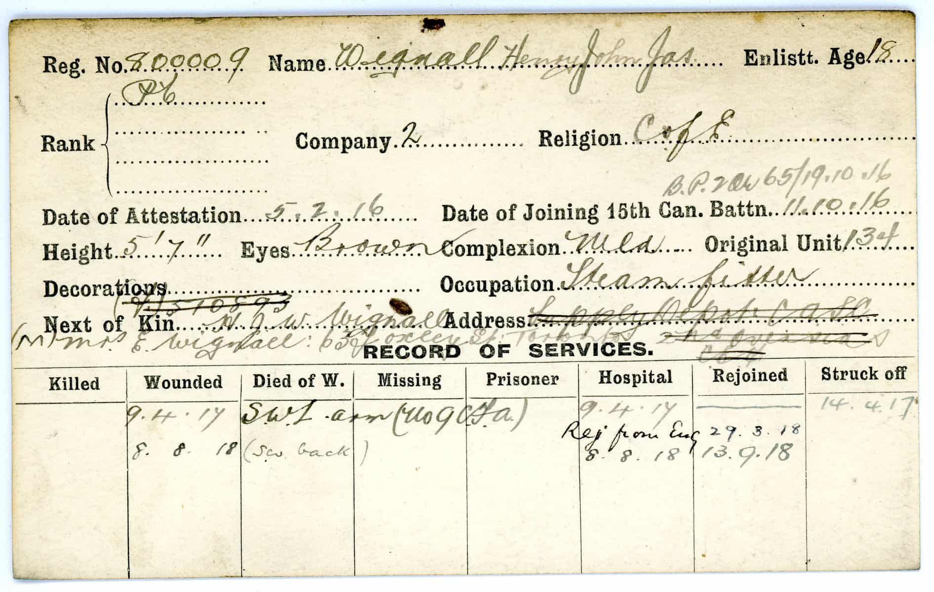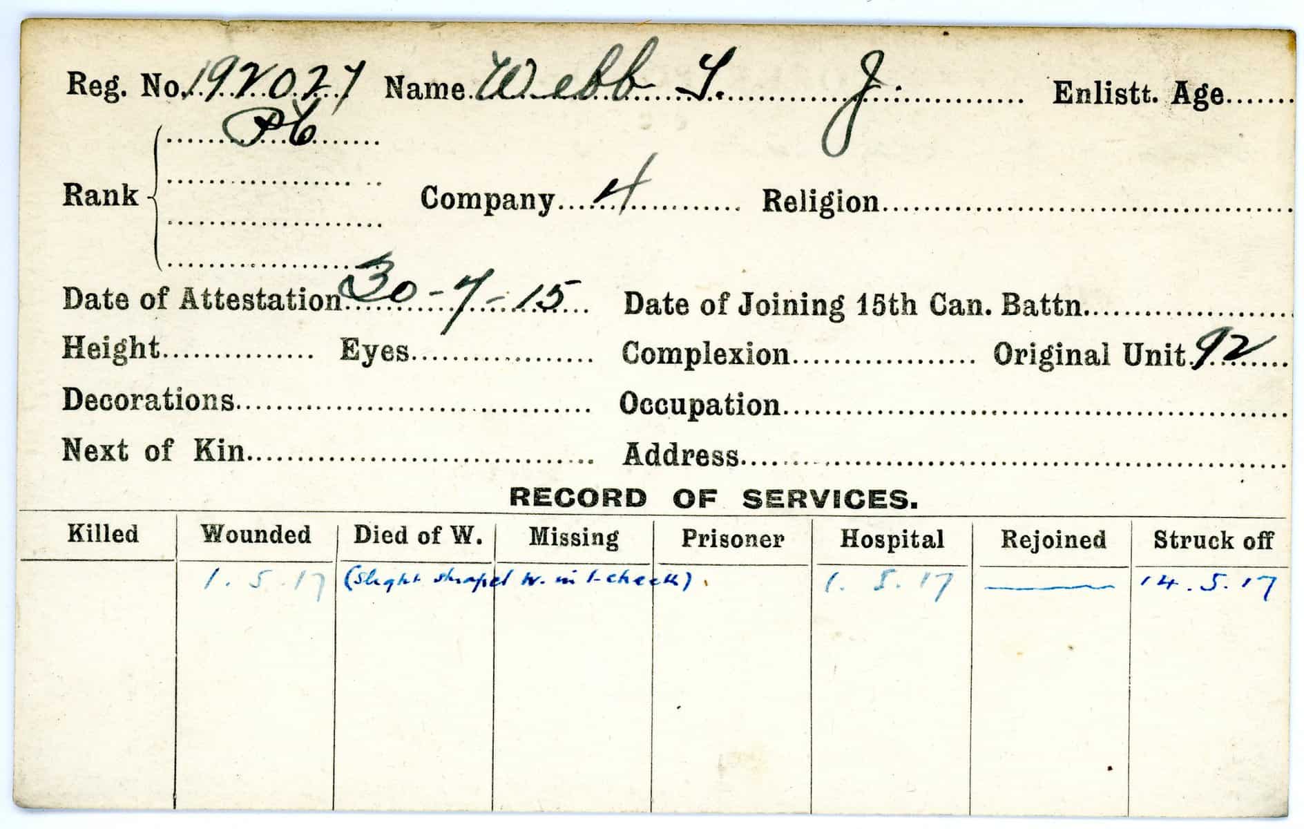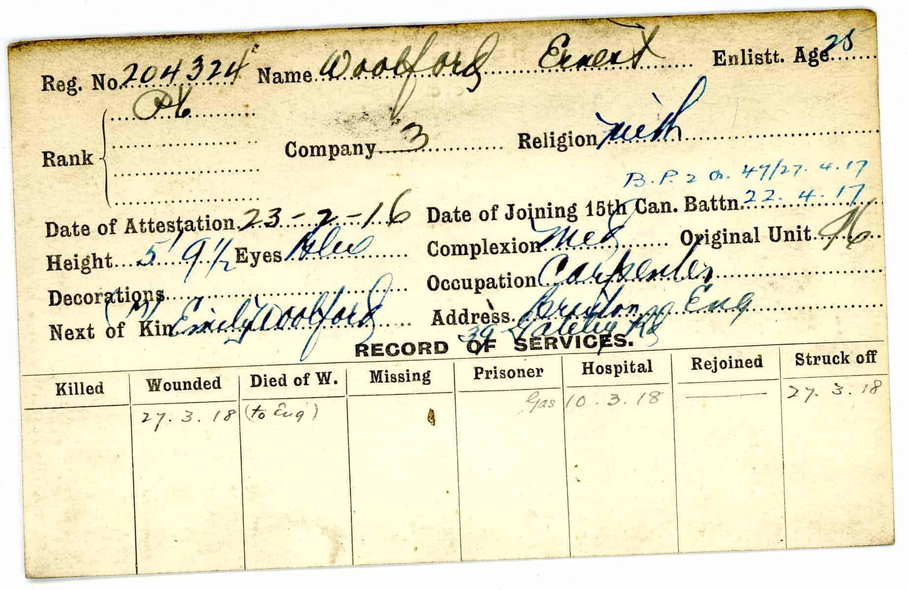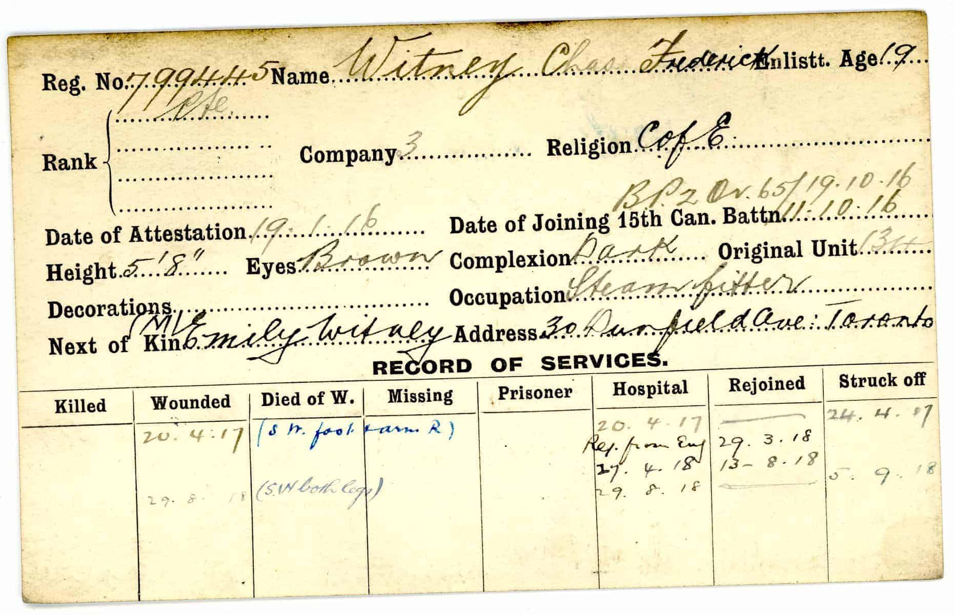 Record of Service Cards – W