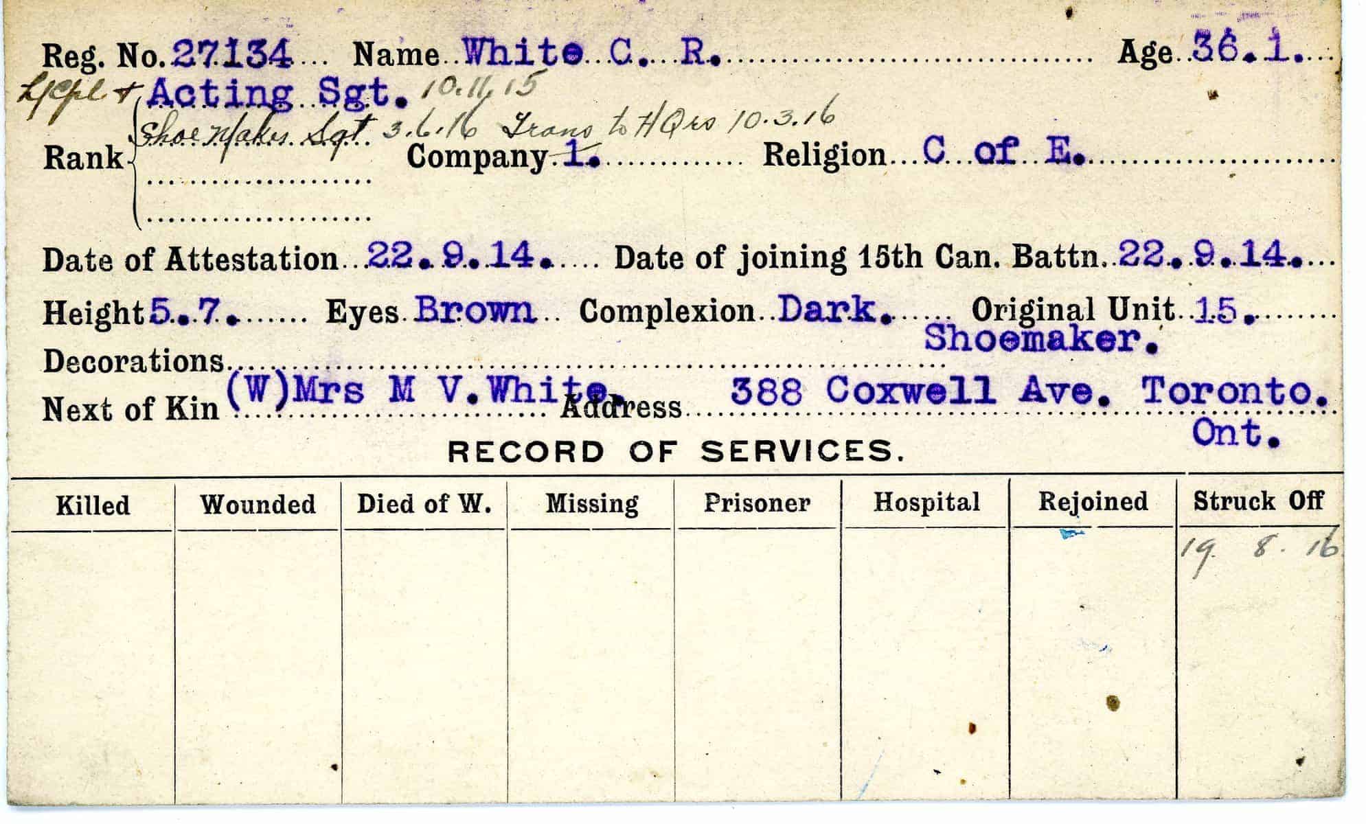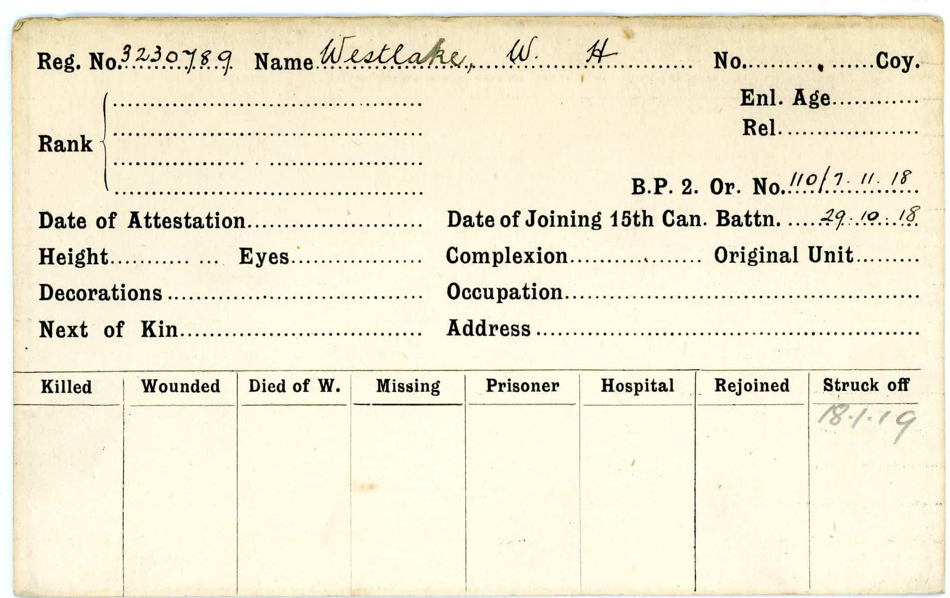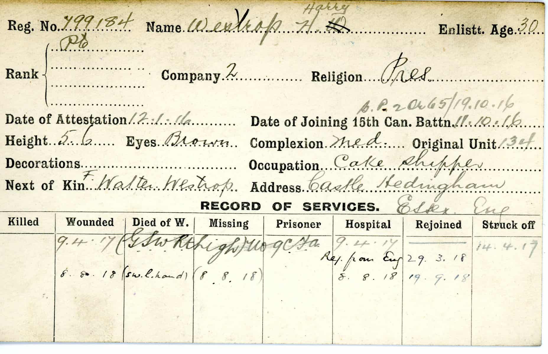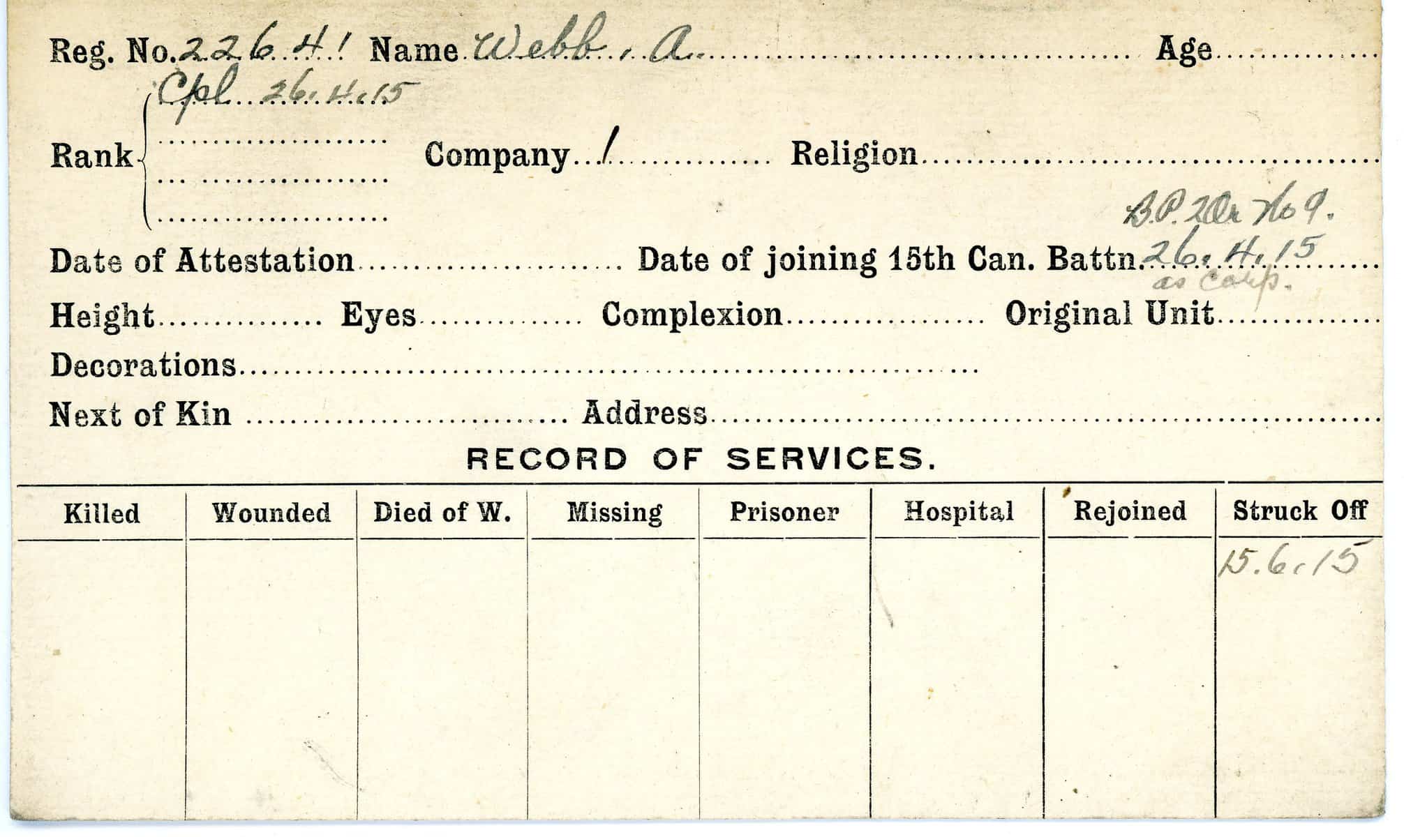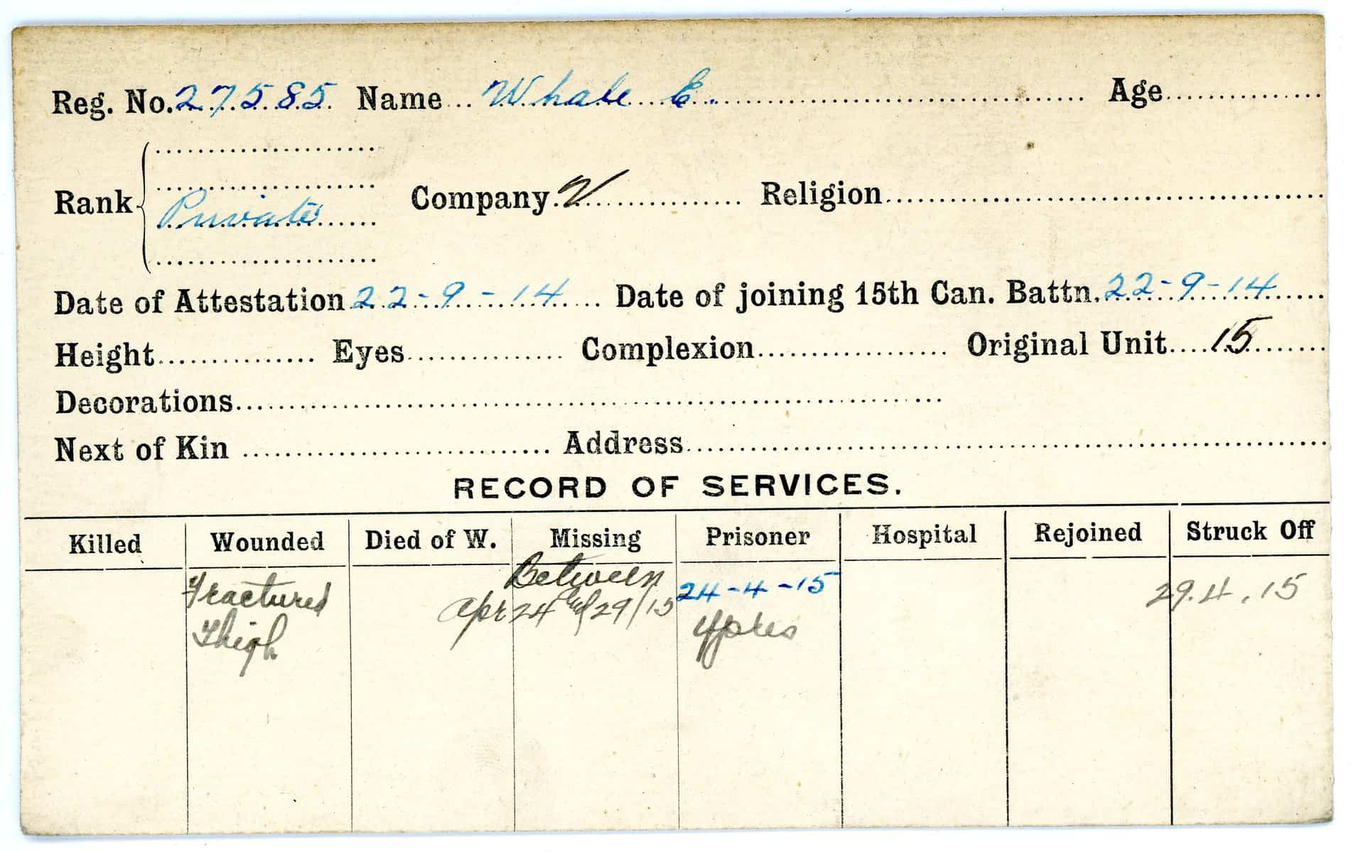 Record of Service Cards – W