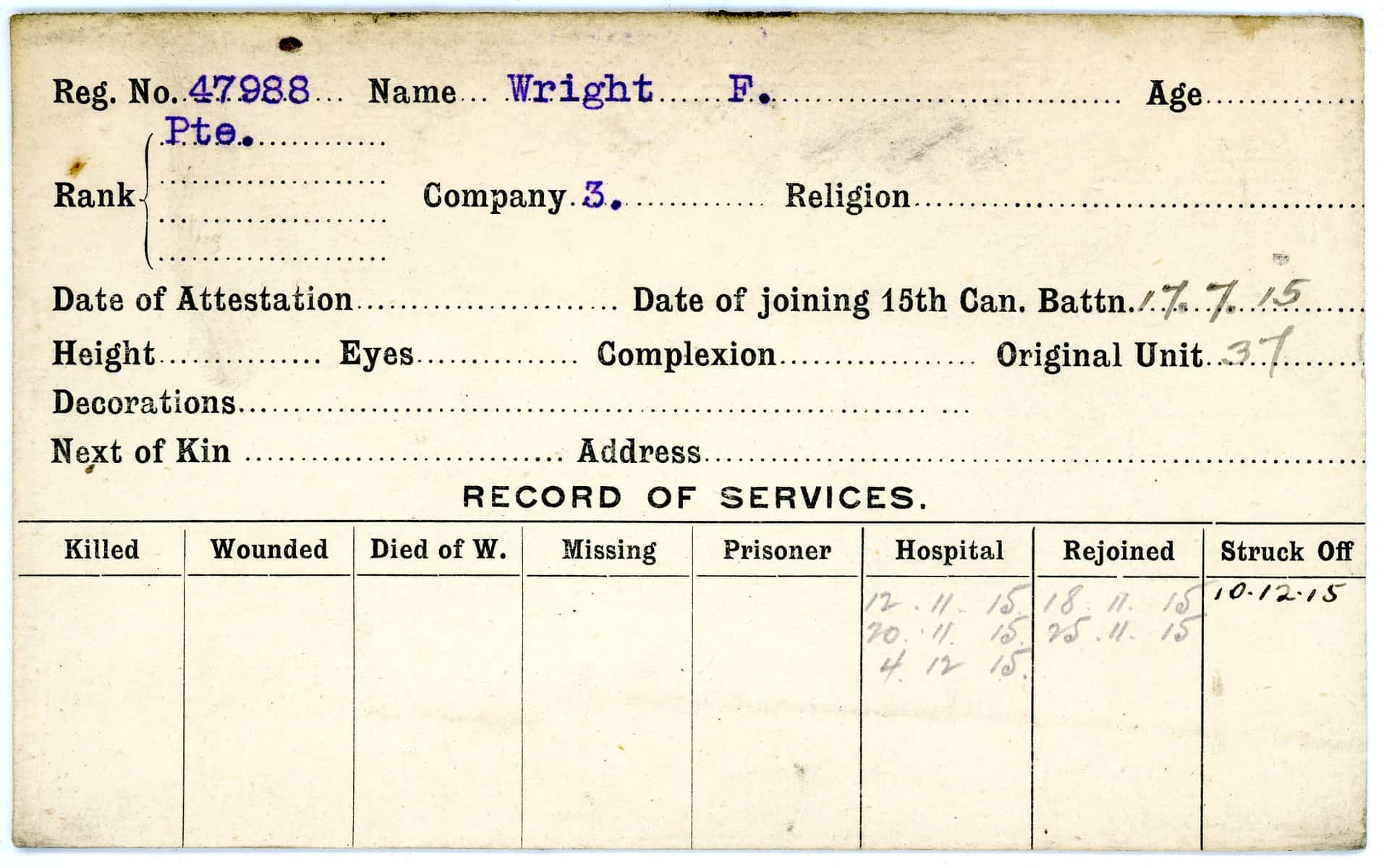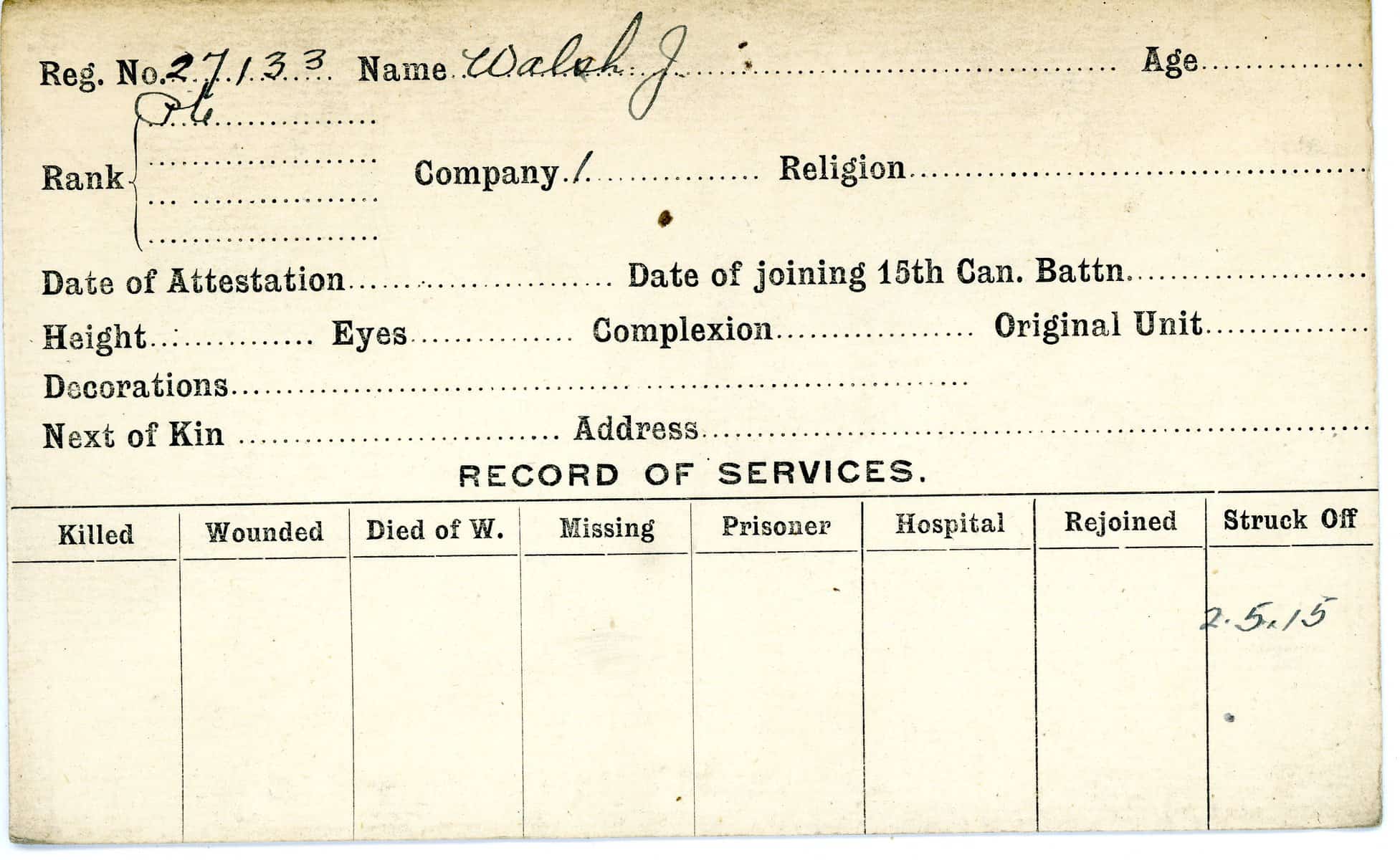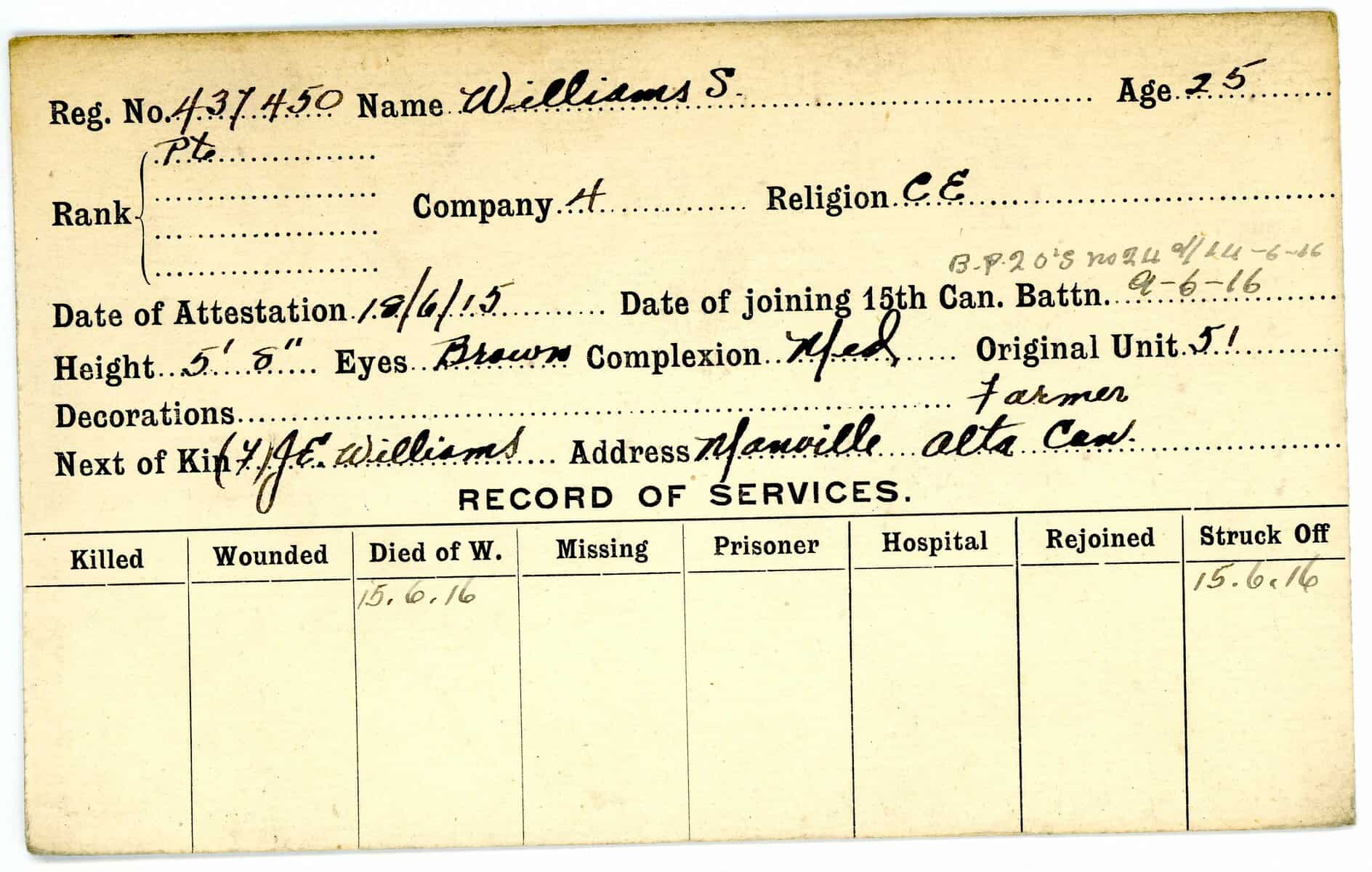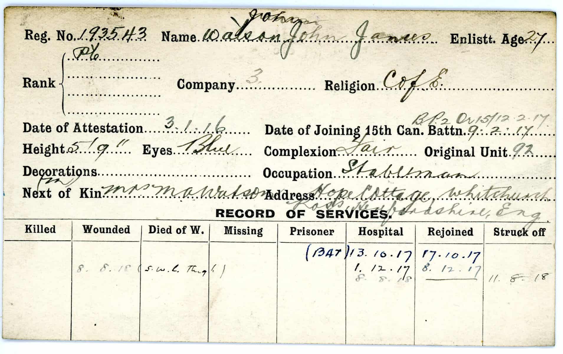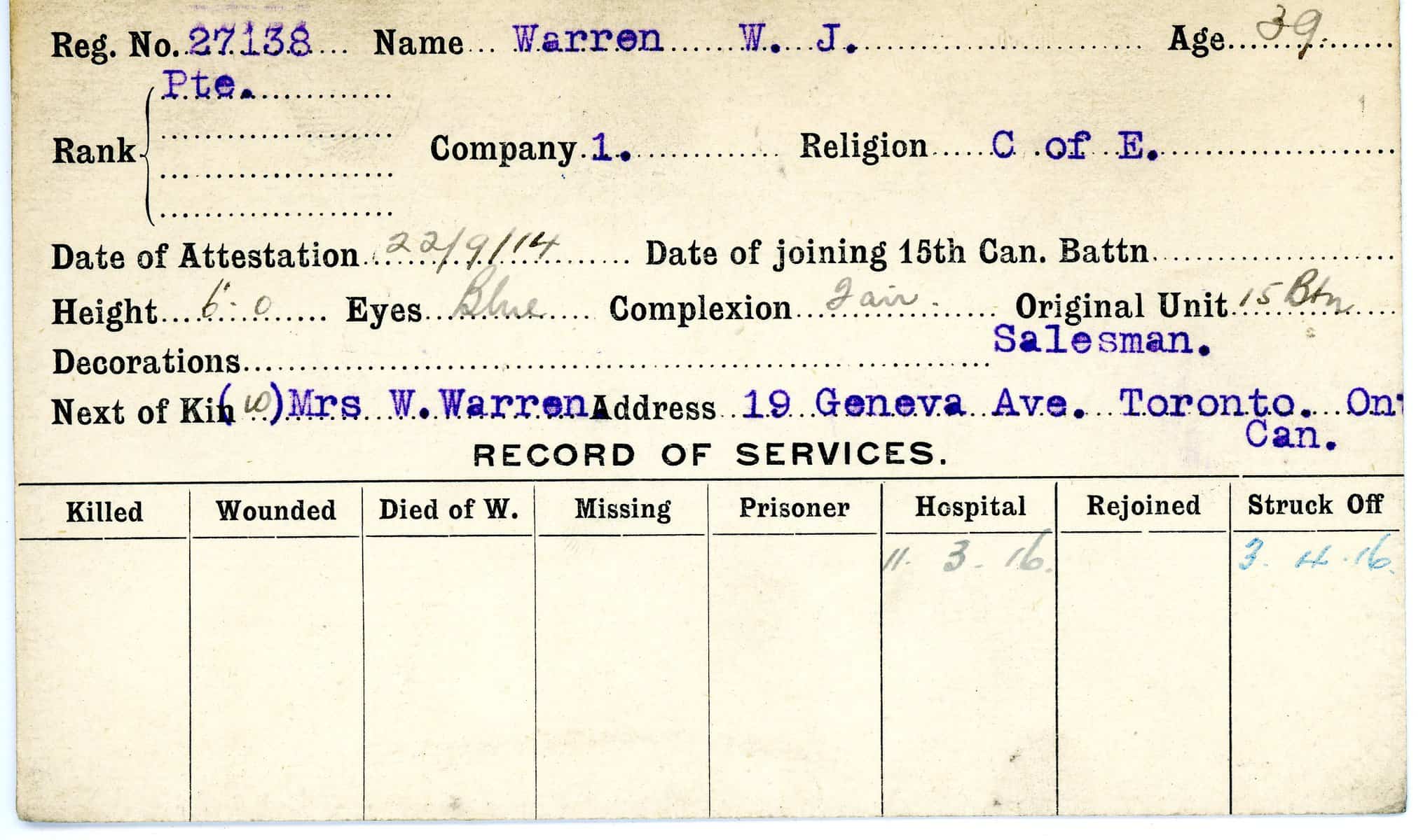 Record of Service Cards – W