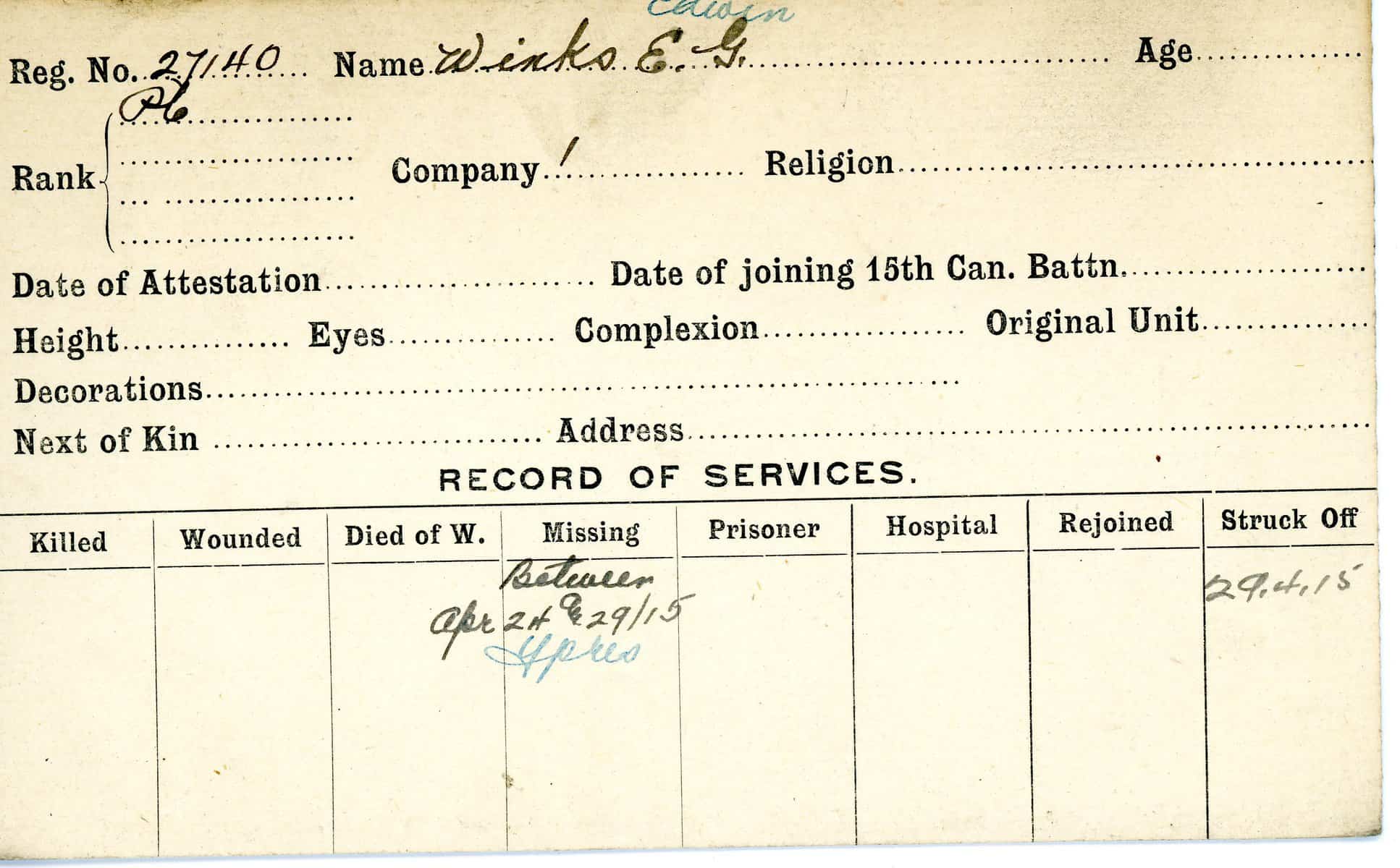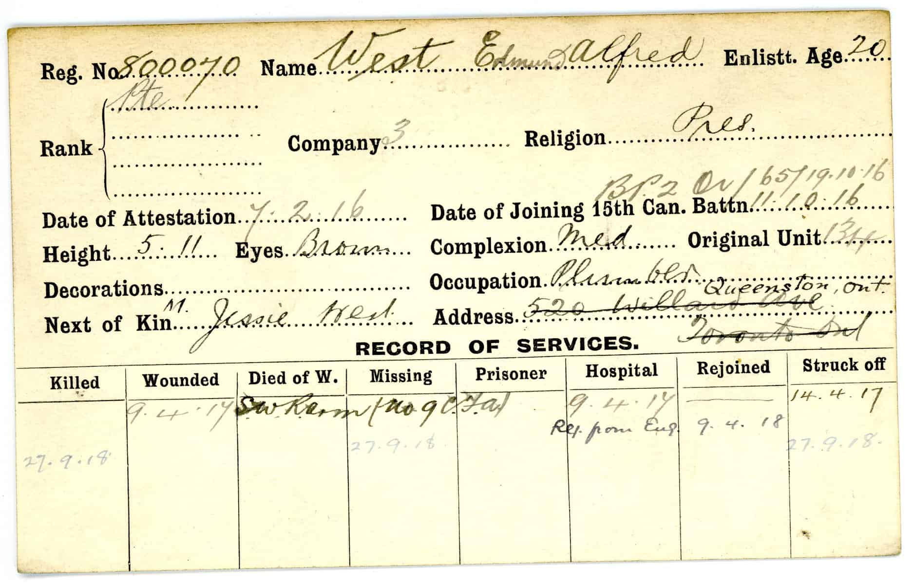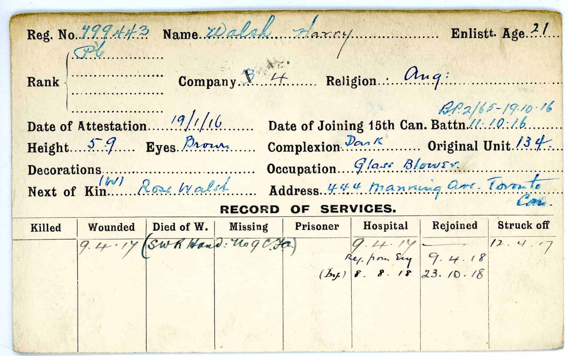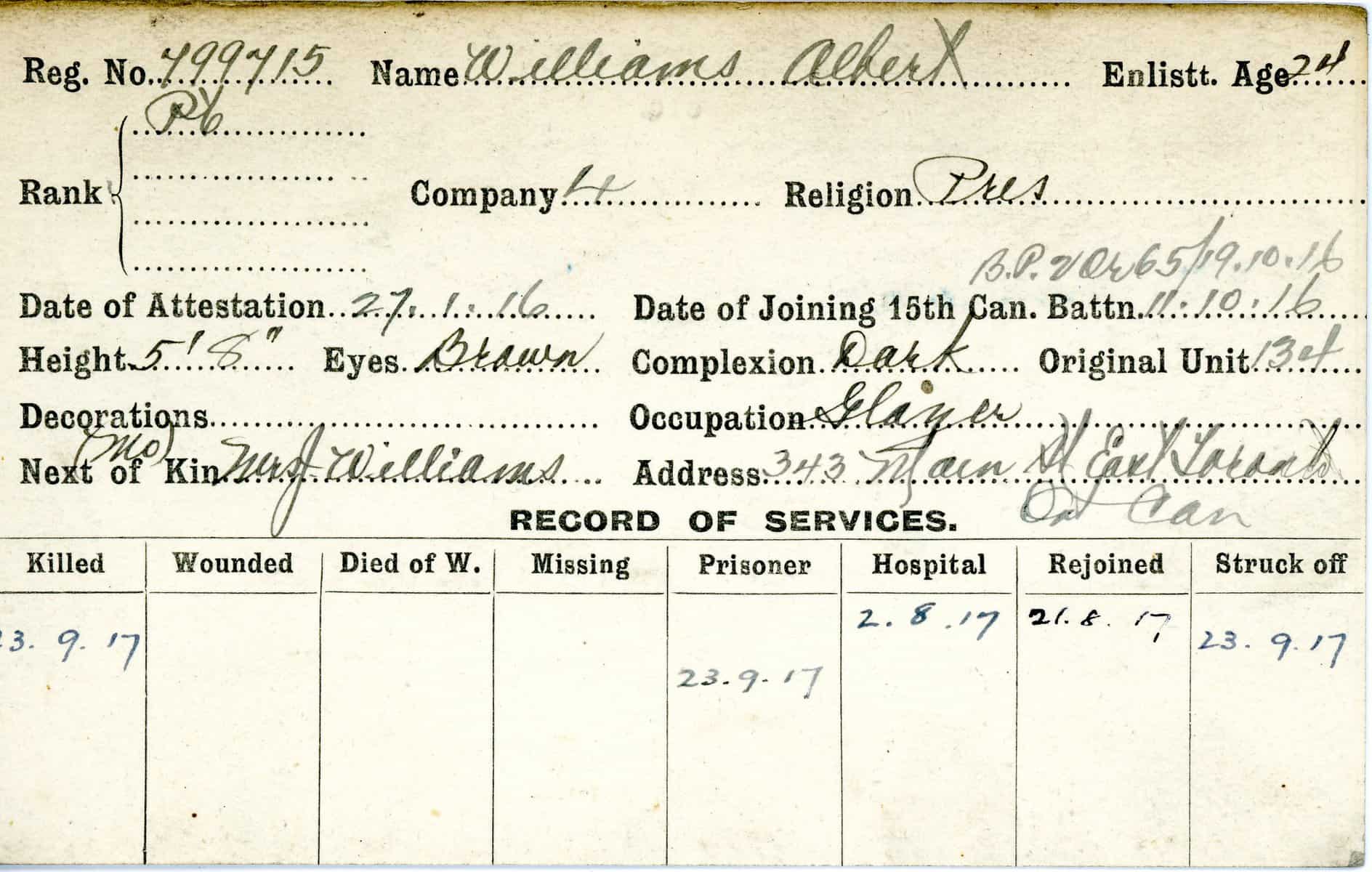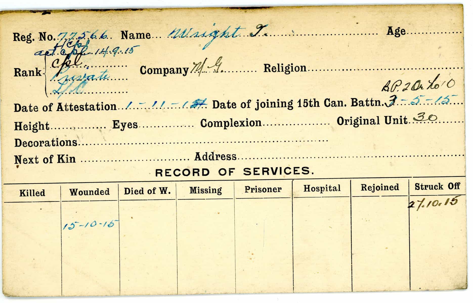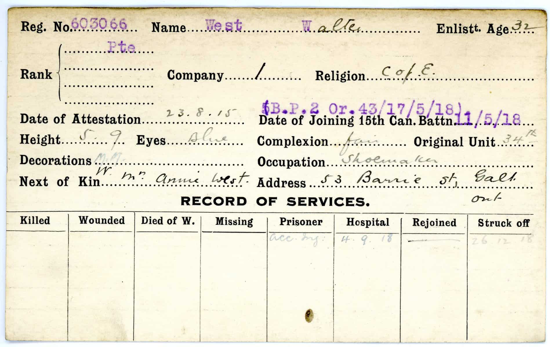 Record of Service Cards – W
