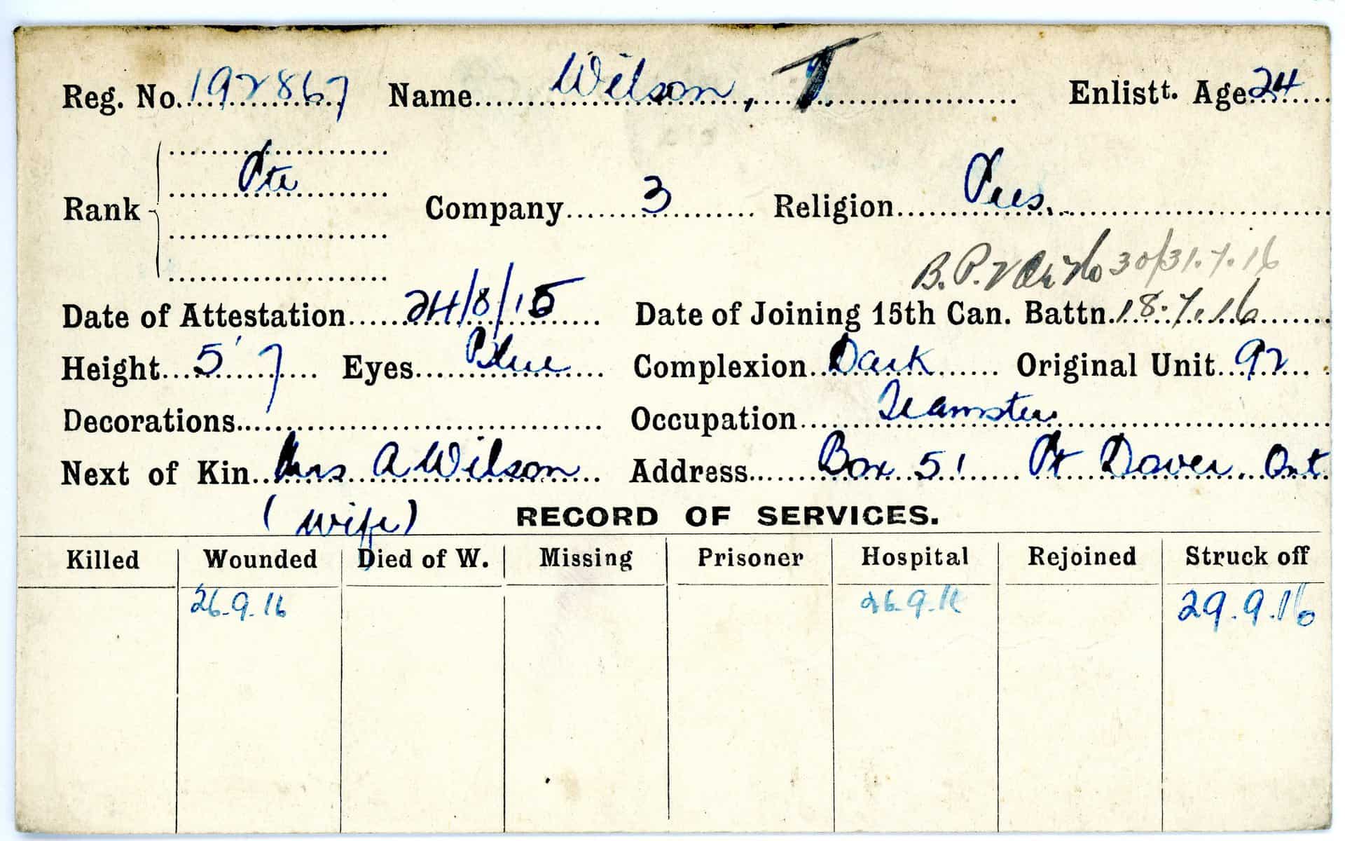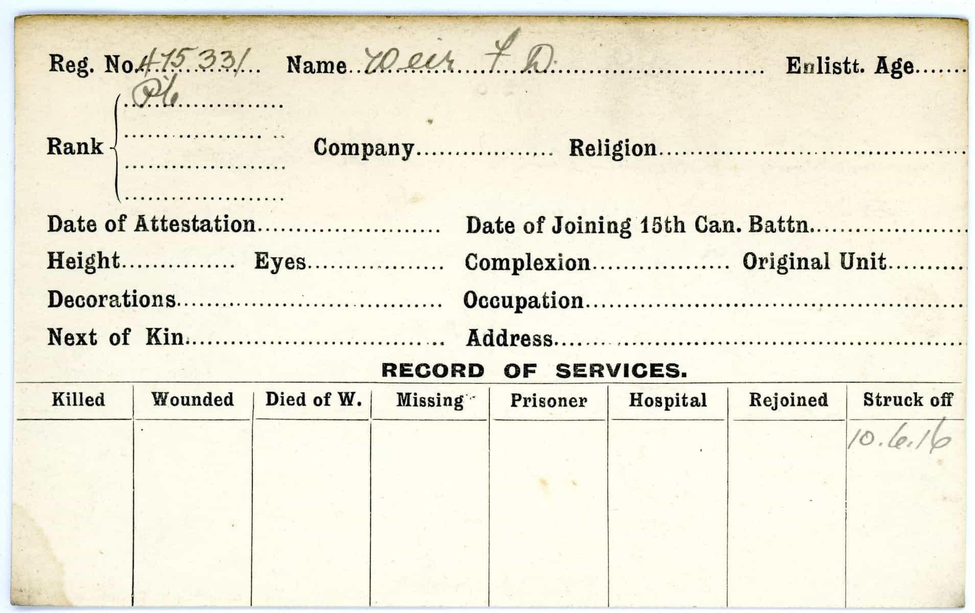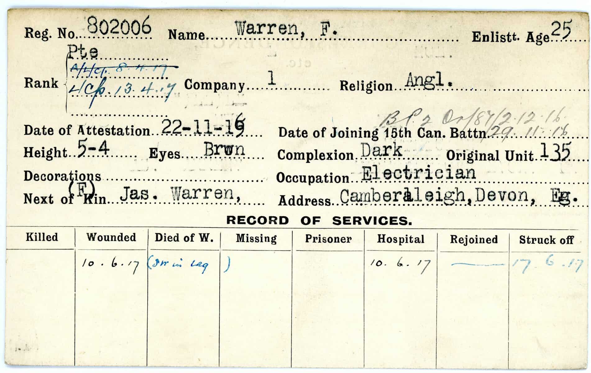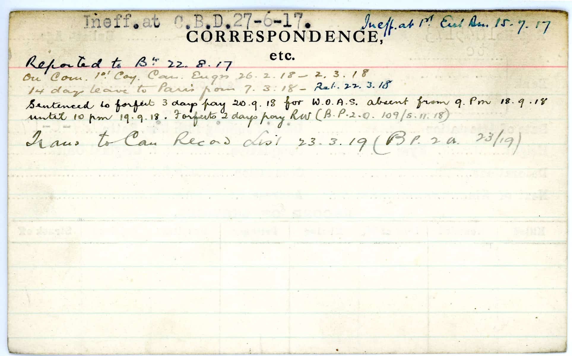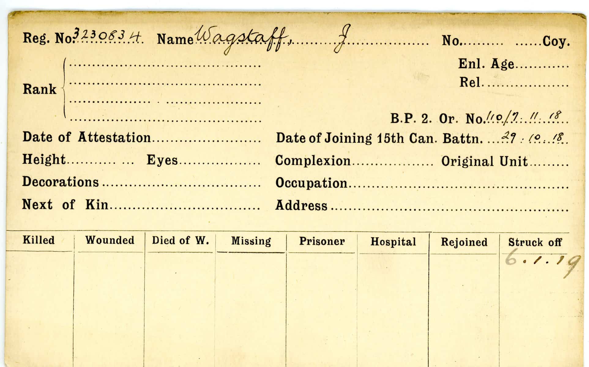 Record of Service Cards – W
