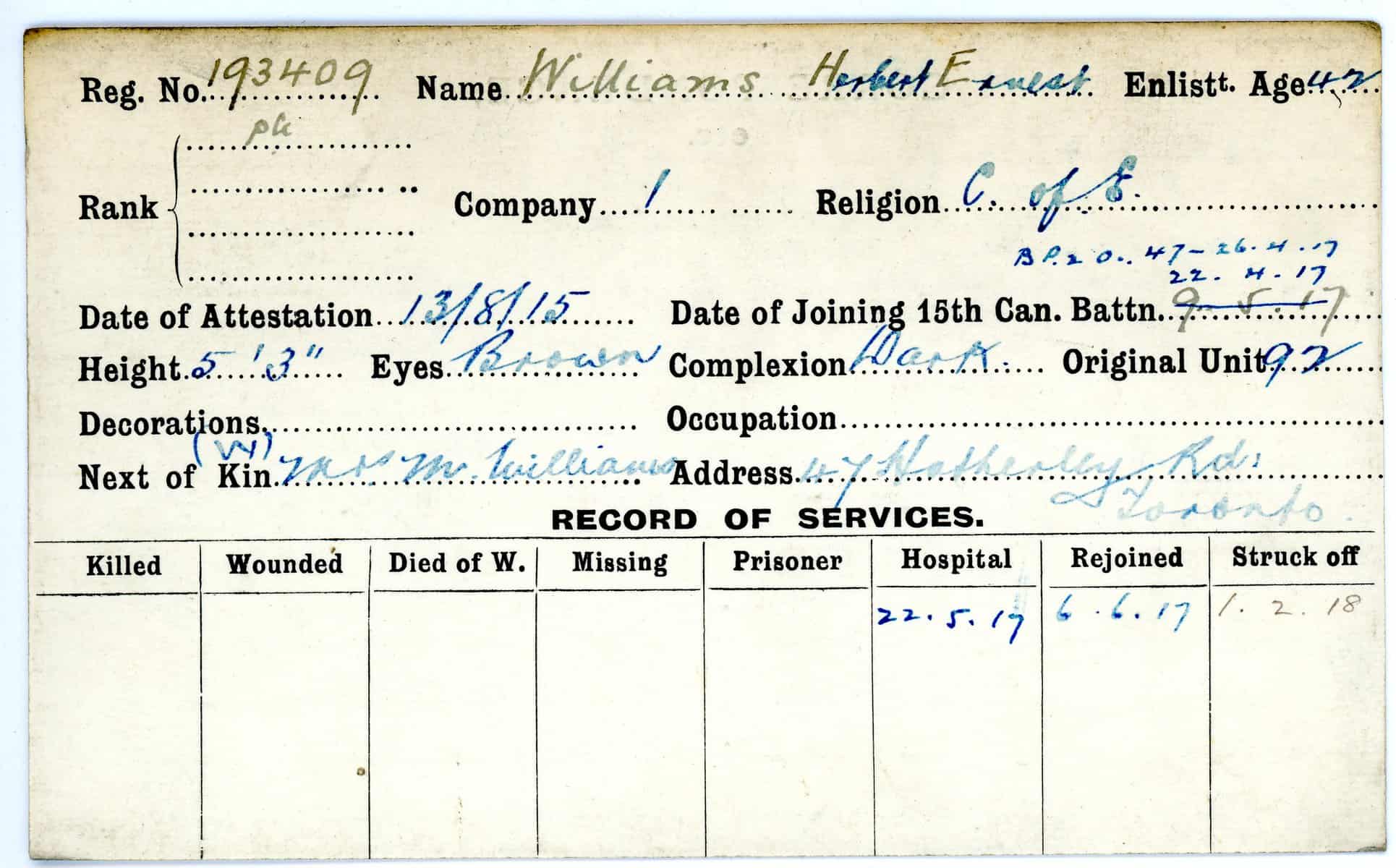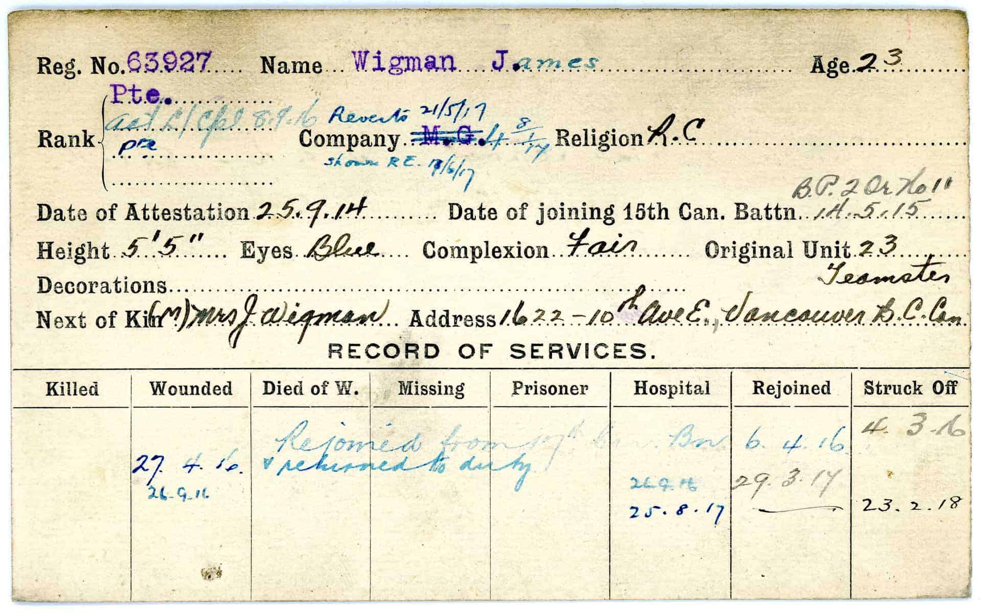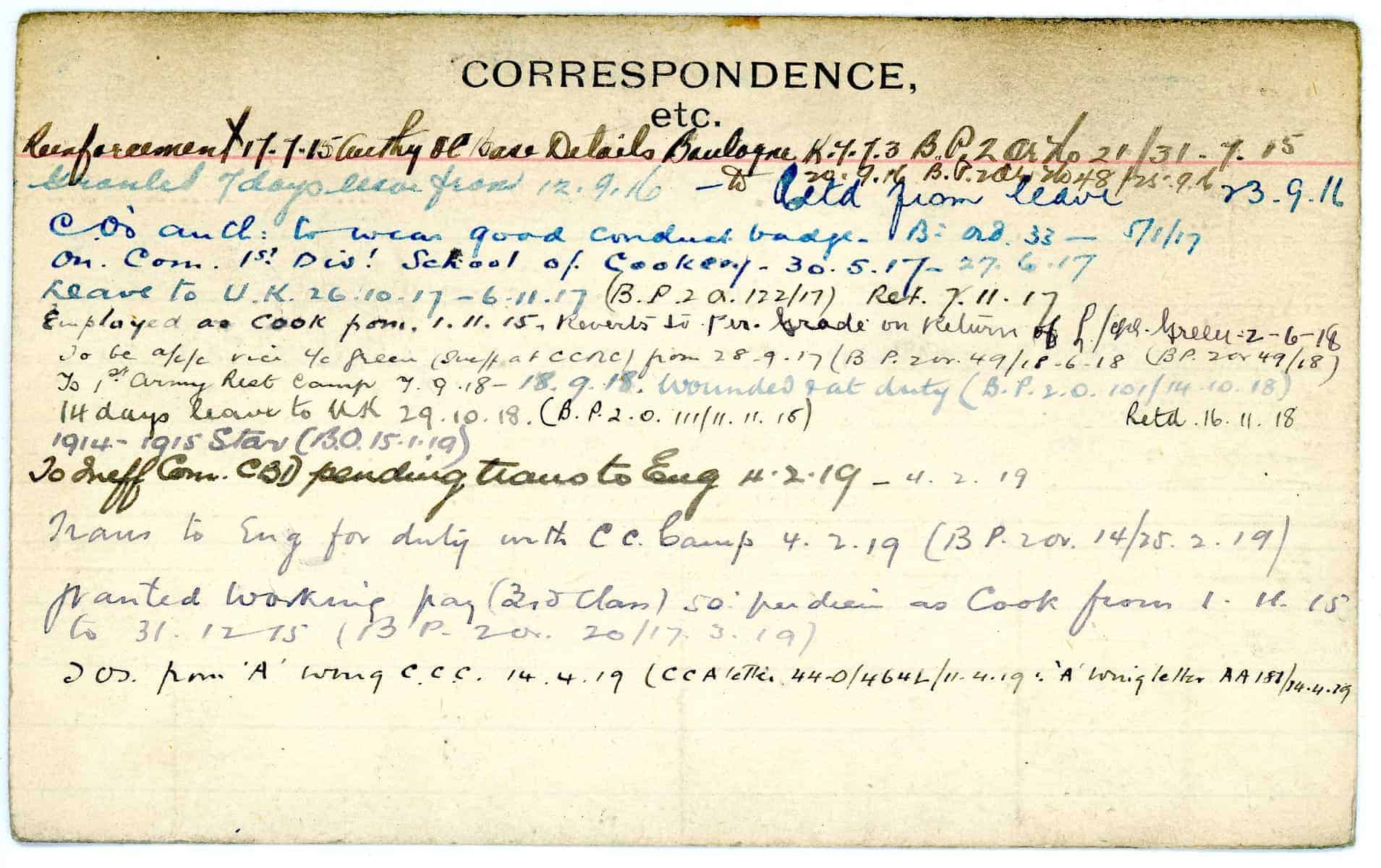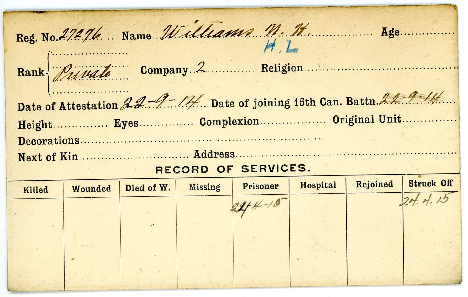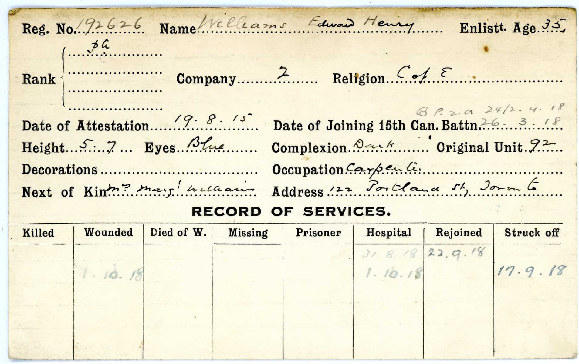 Record of Service Cards – W