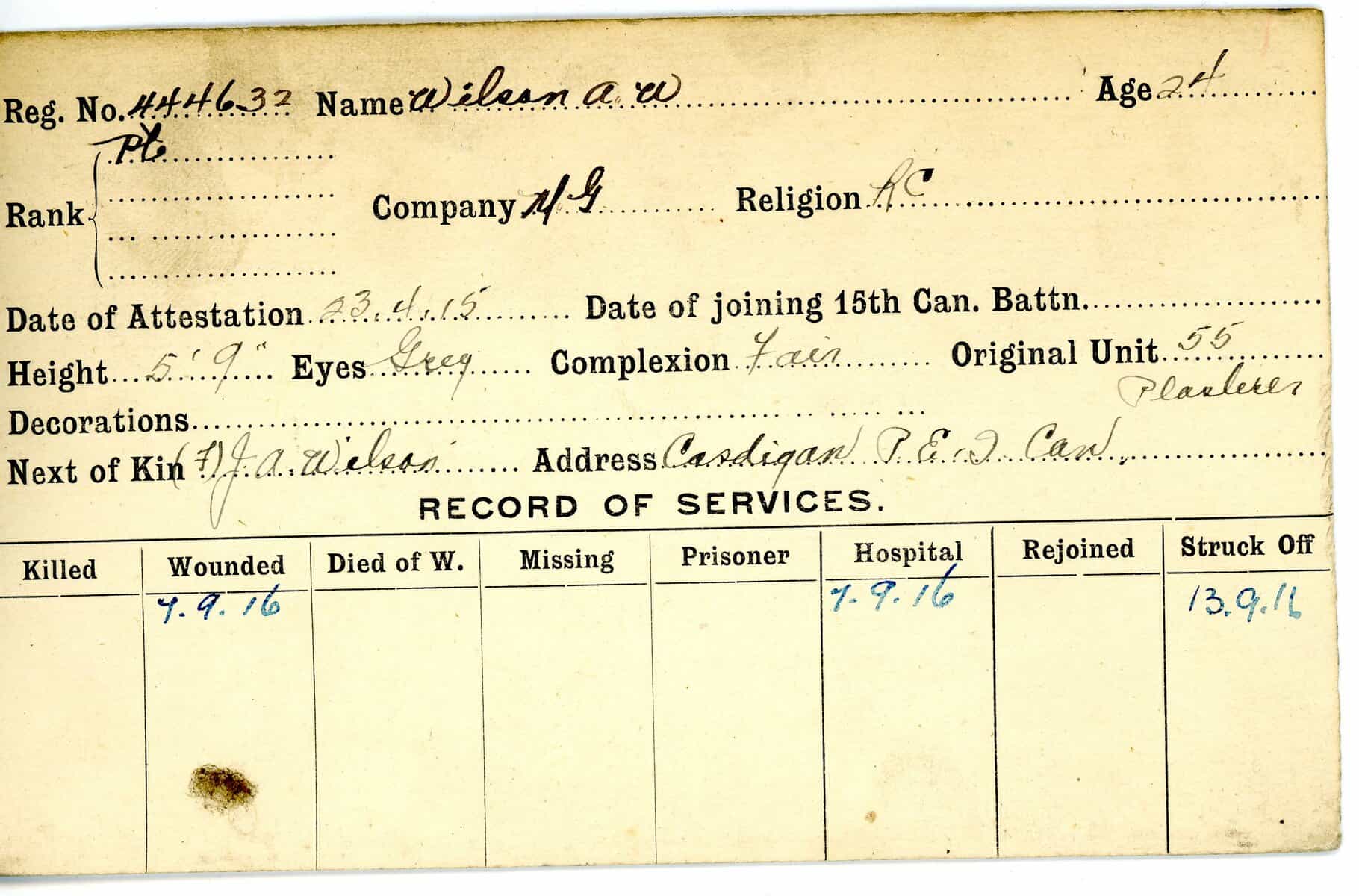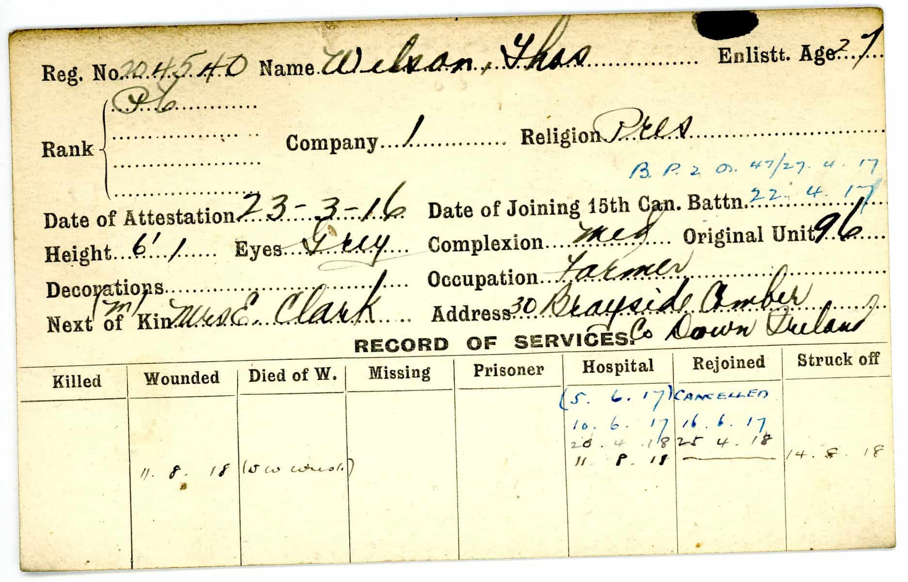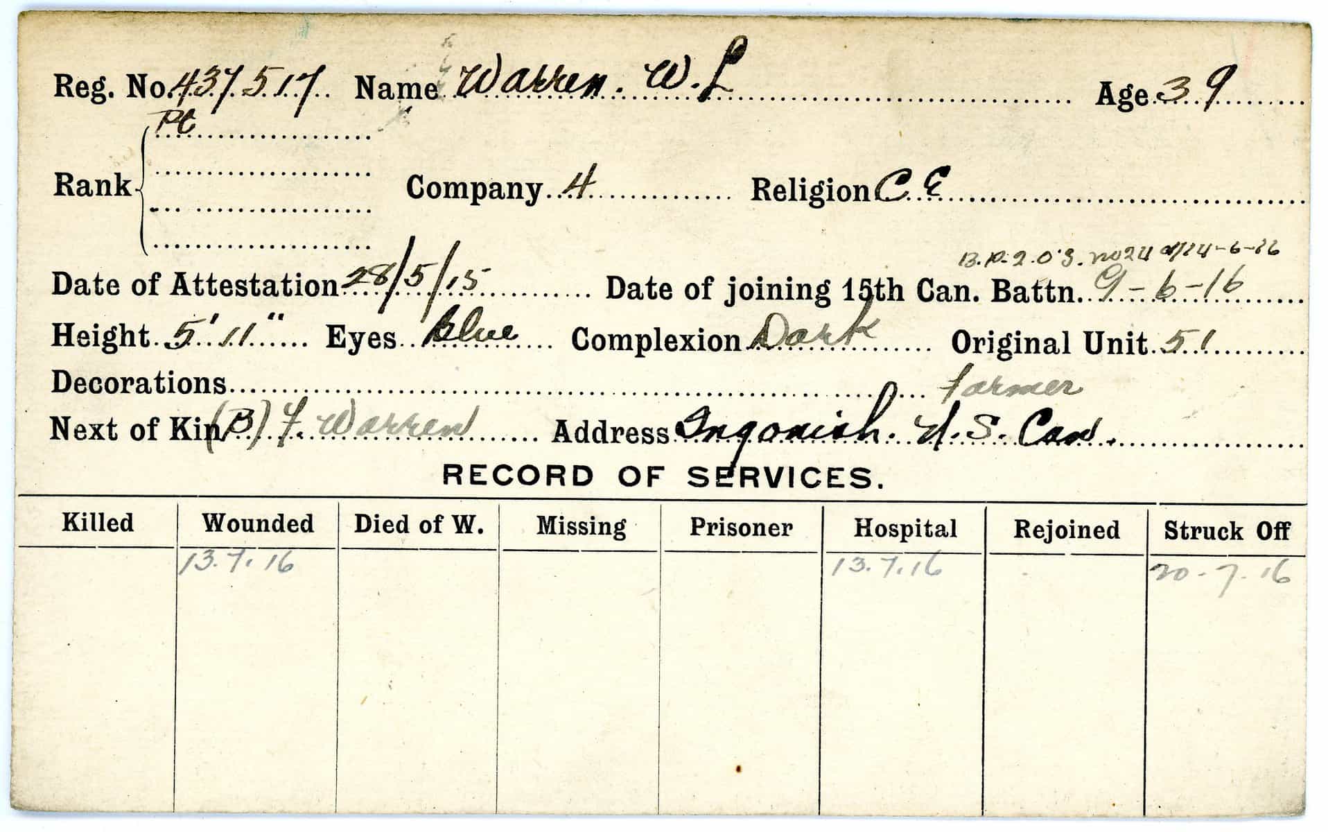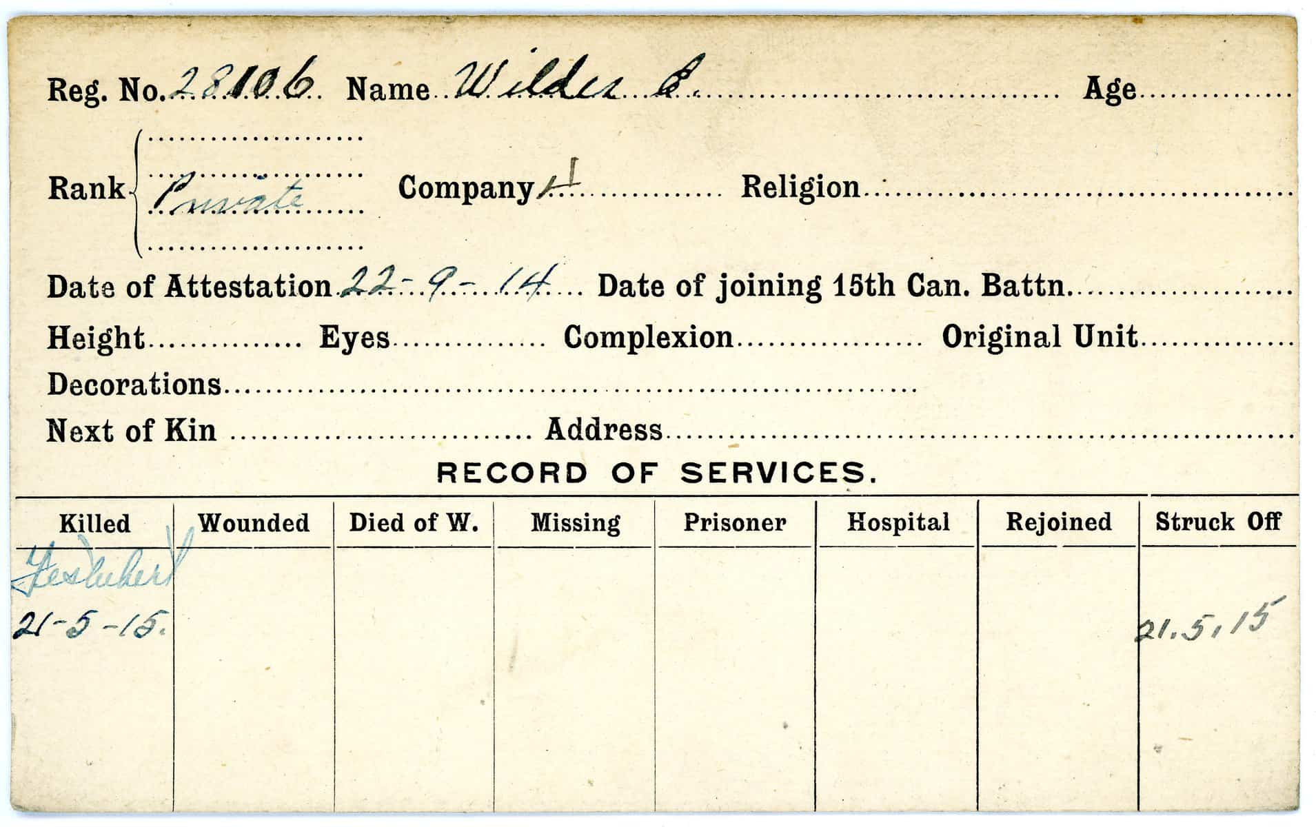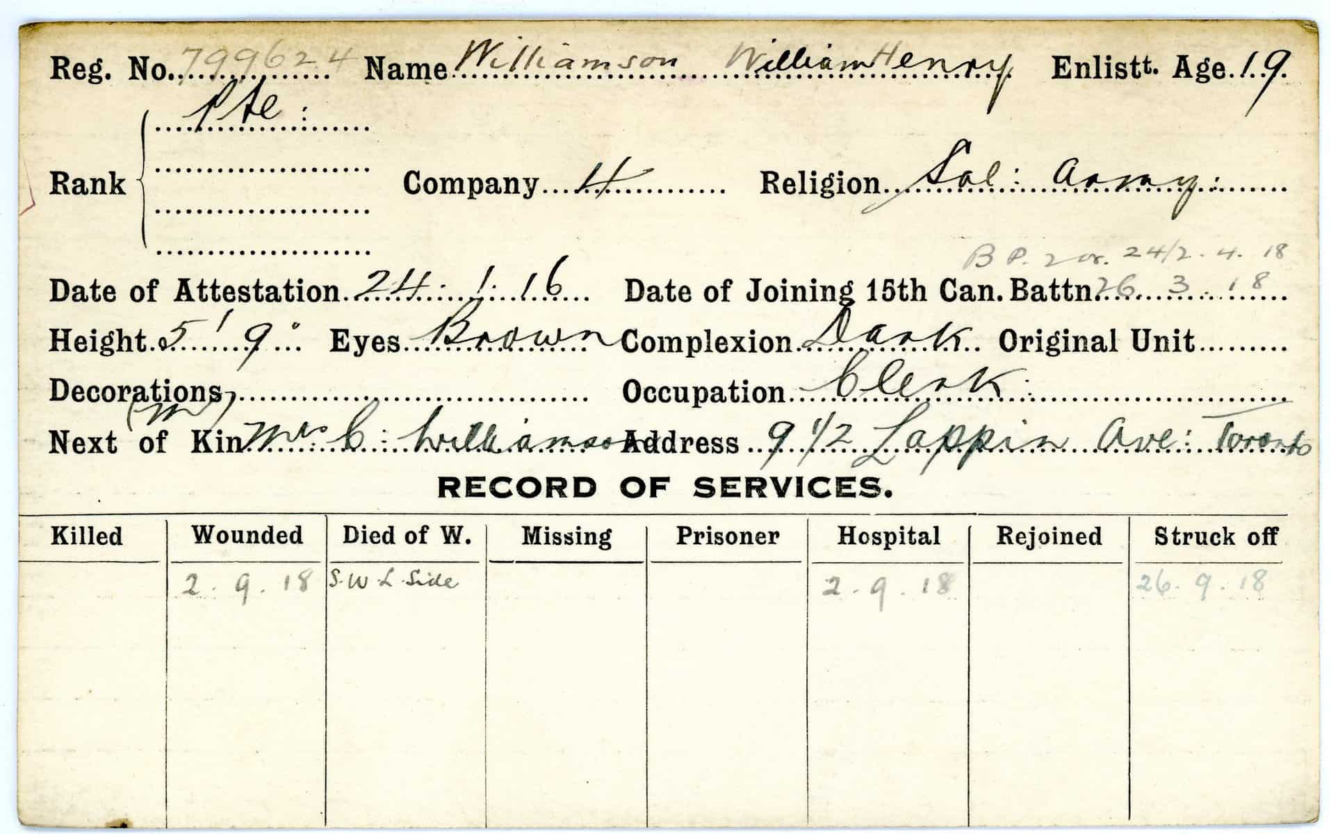 Record of Service Cards – W