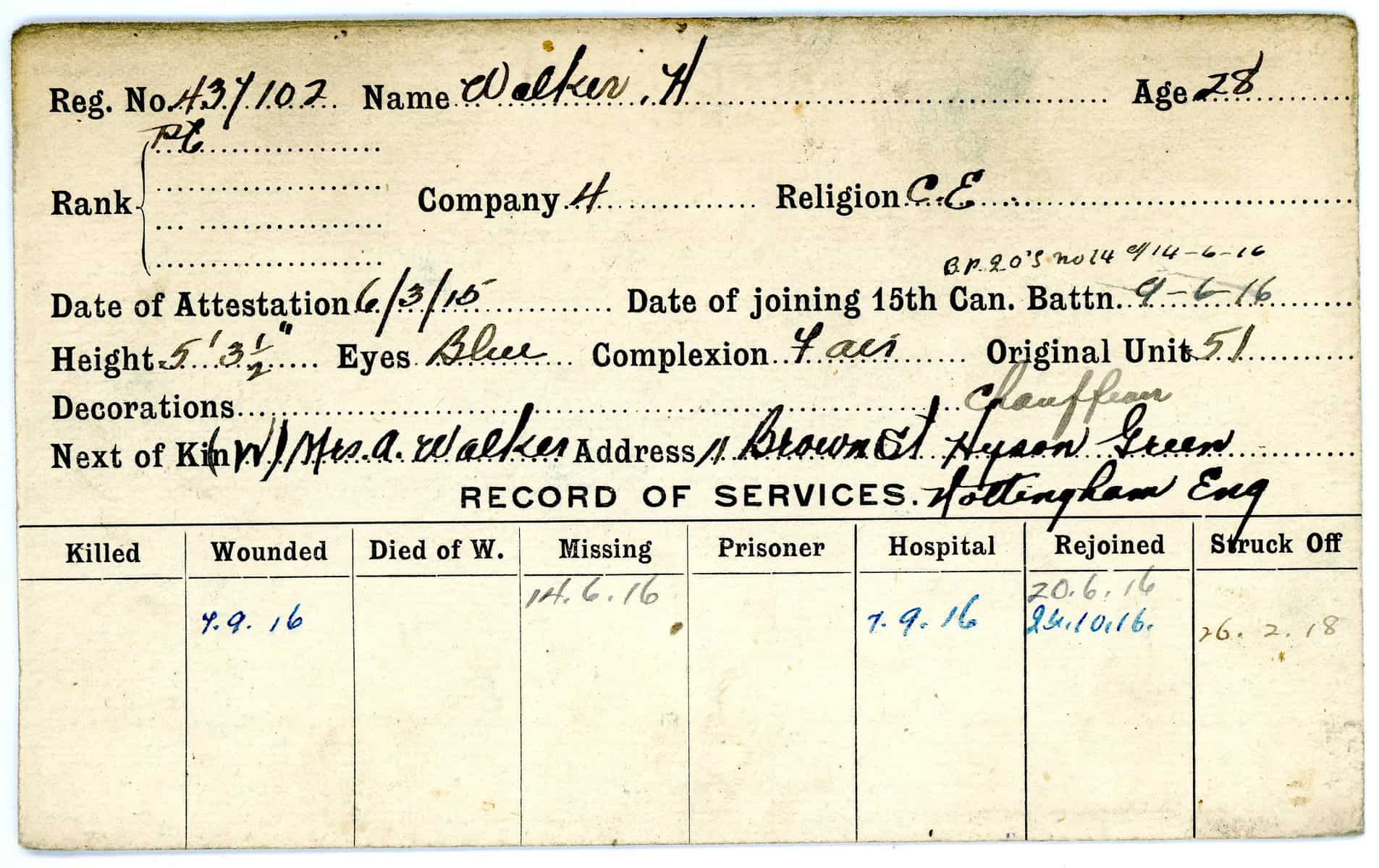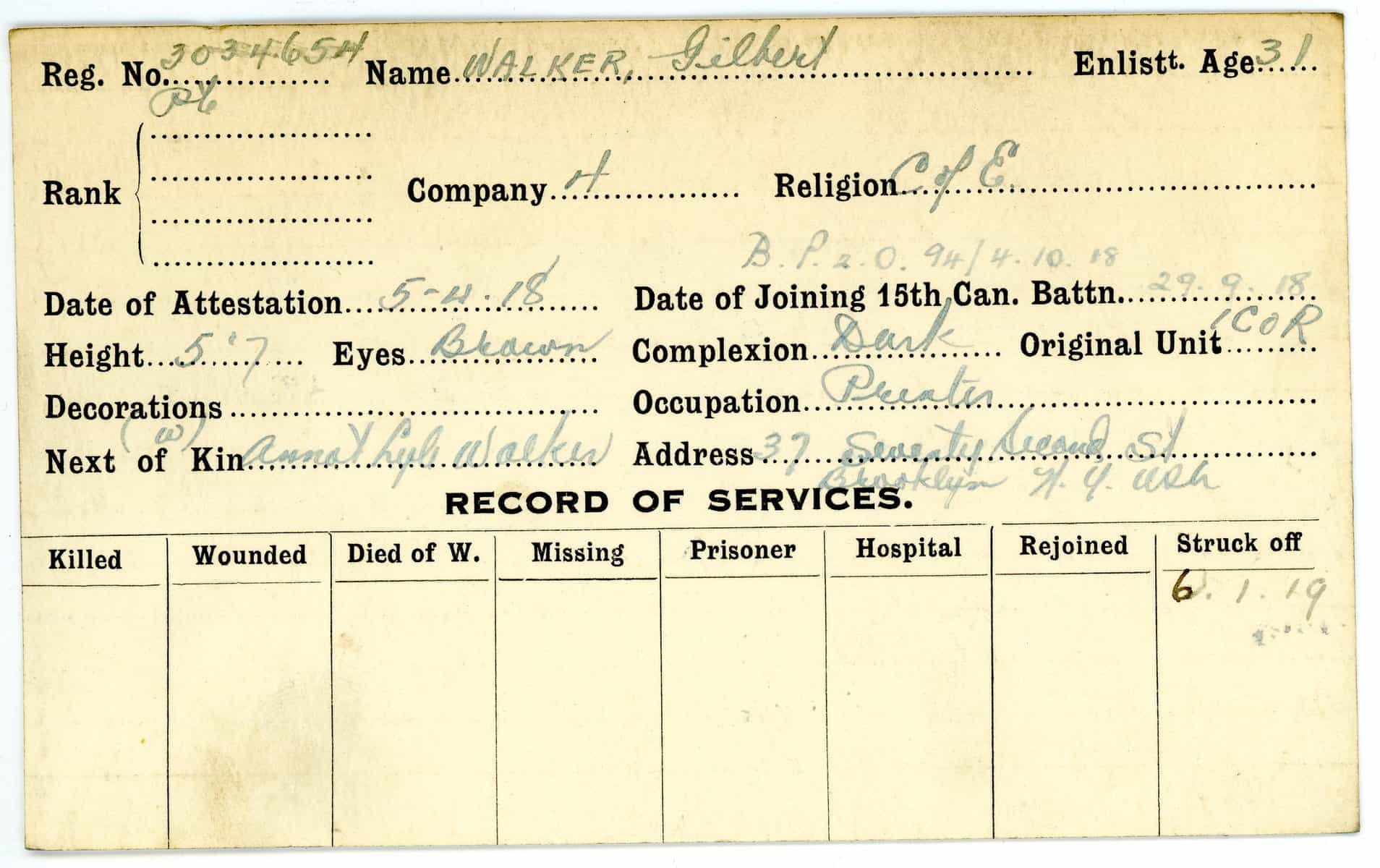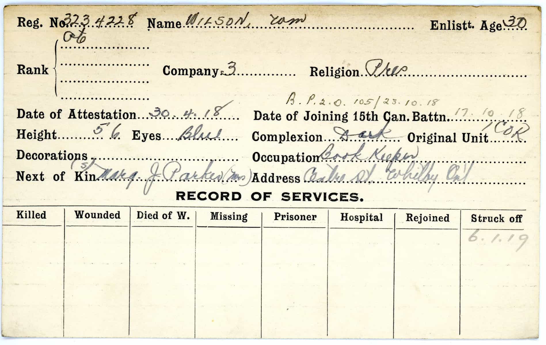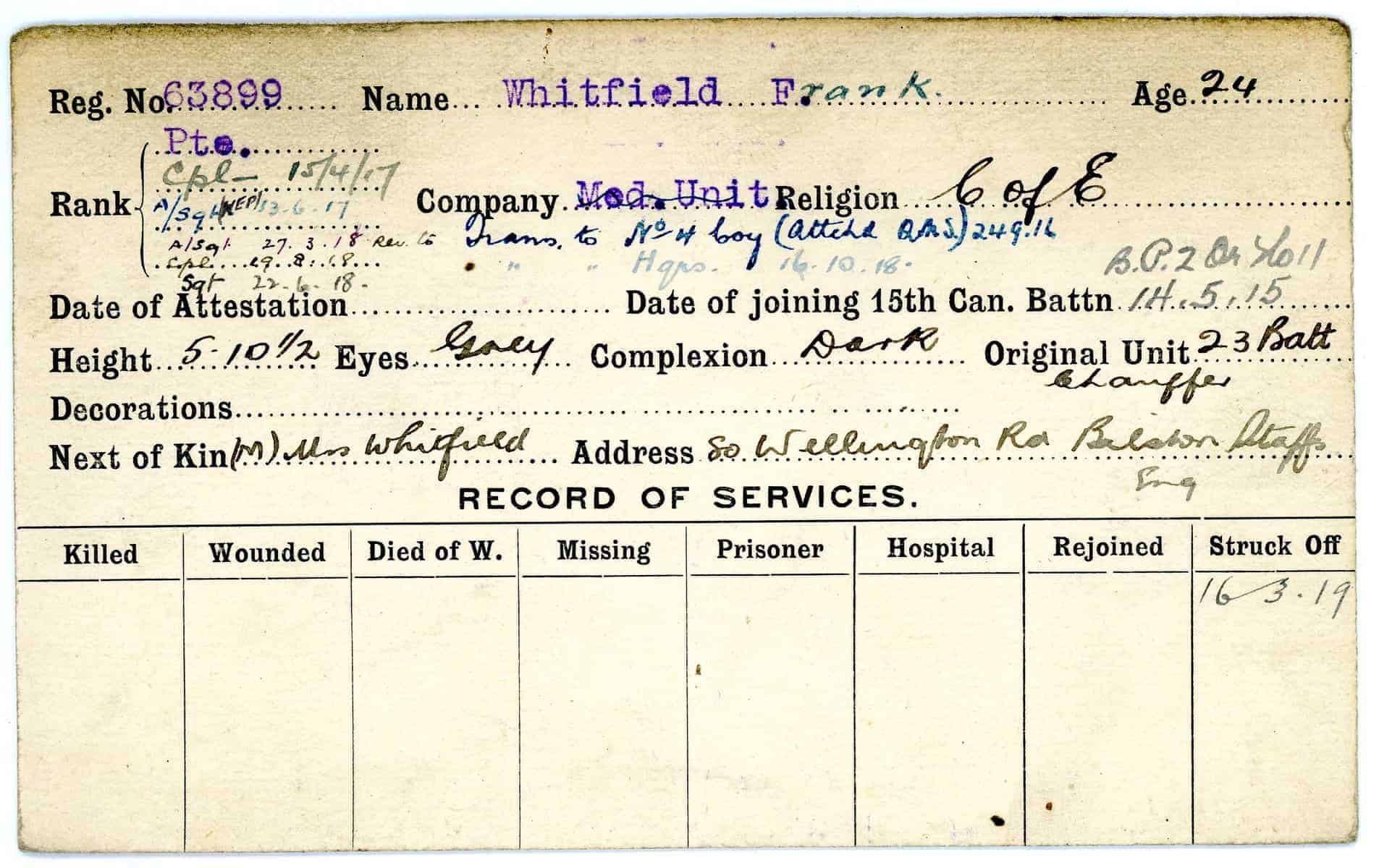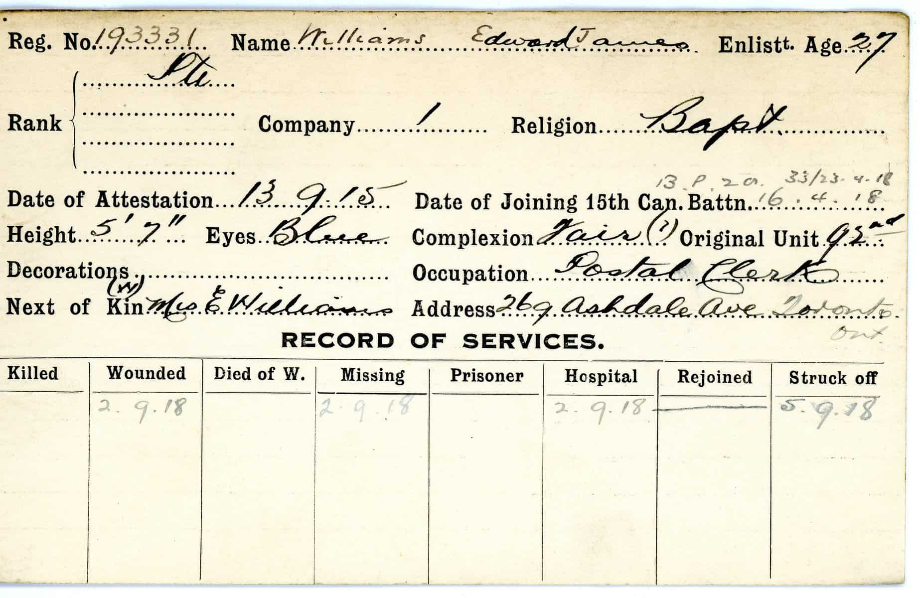 Record of Service Cards – W