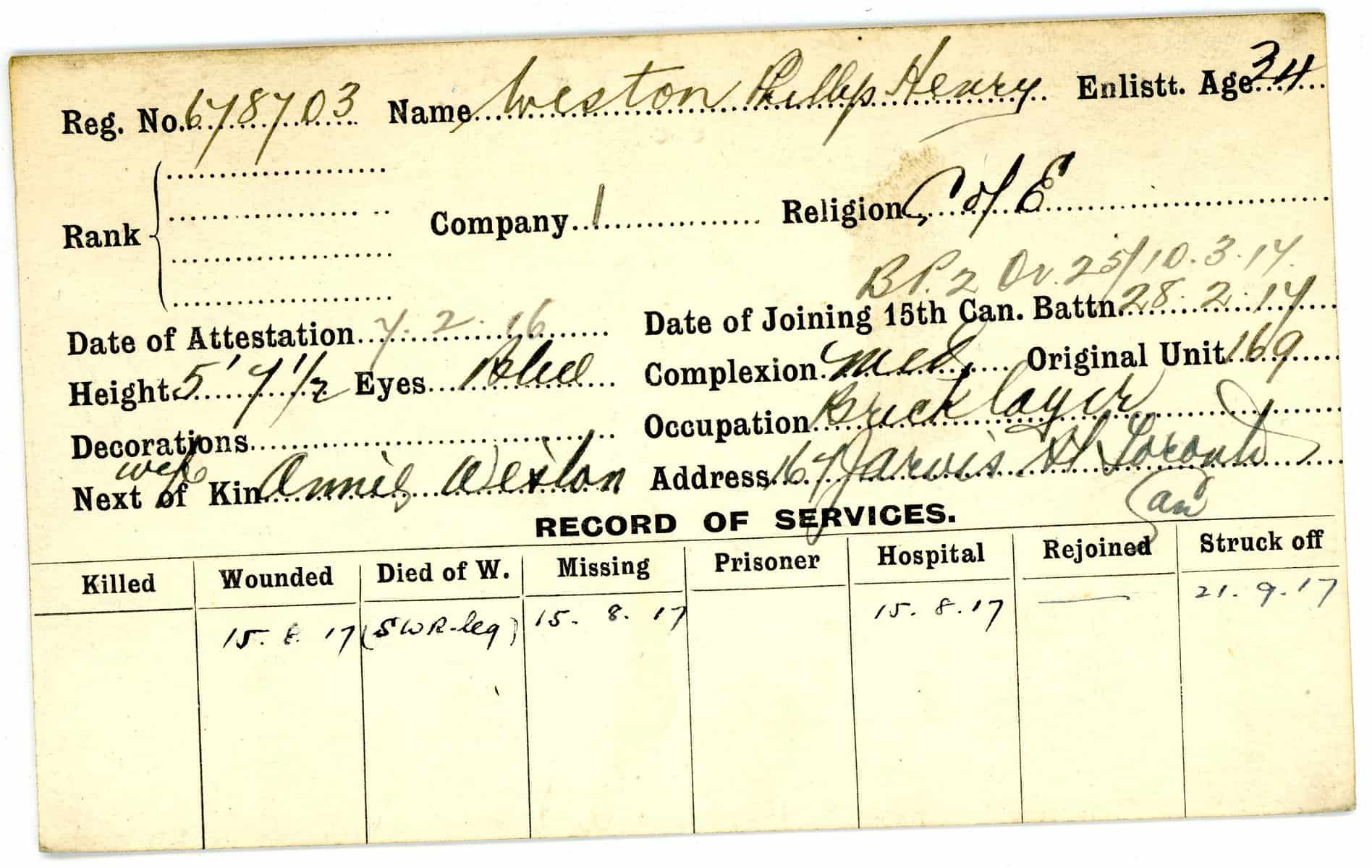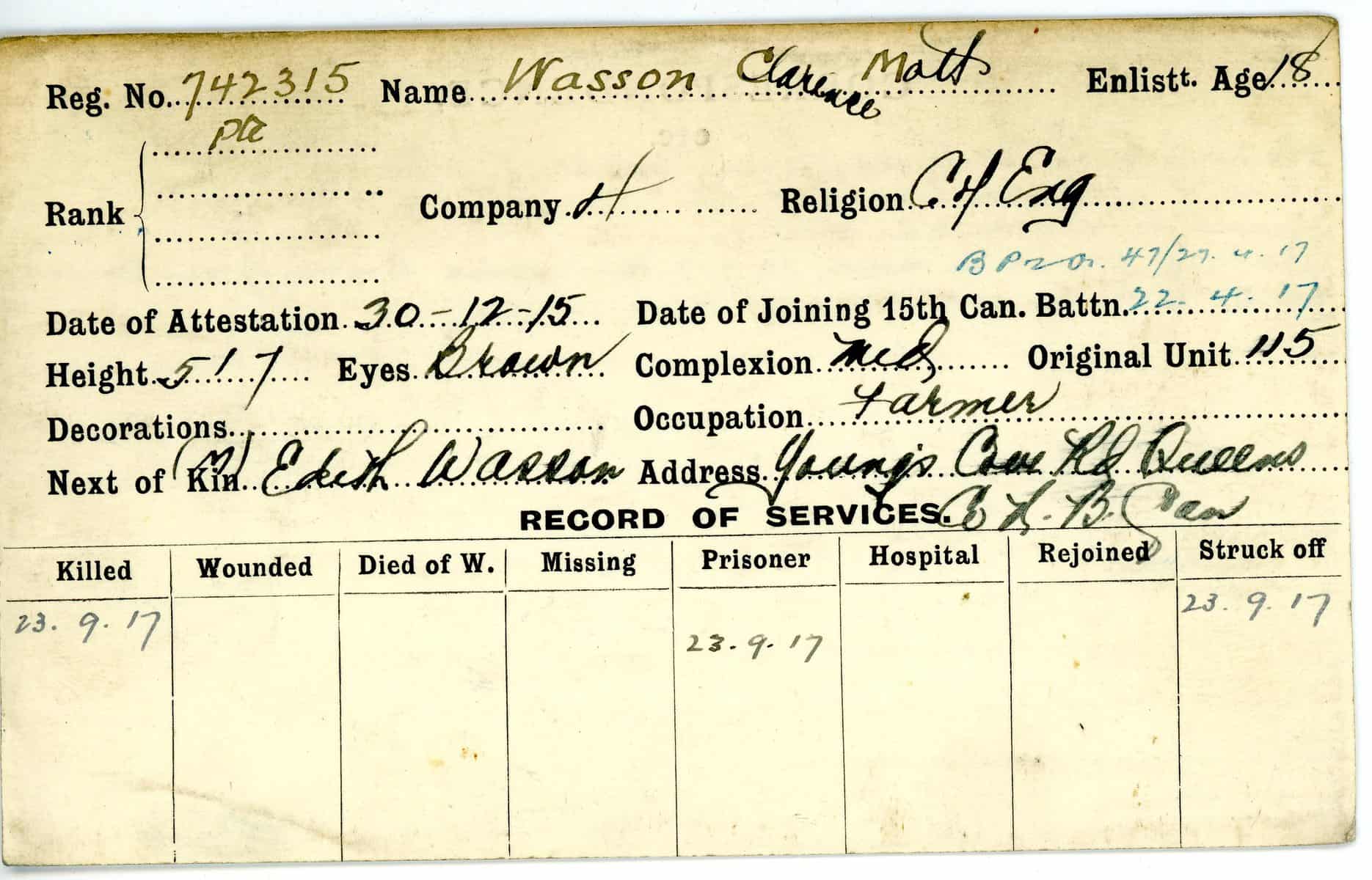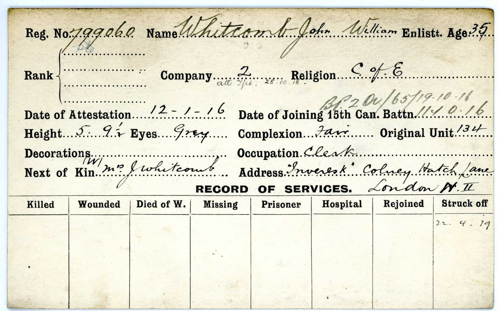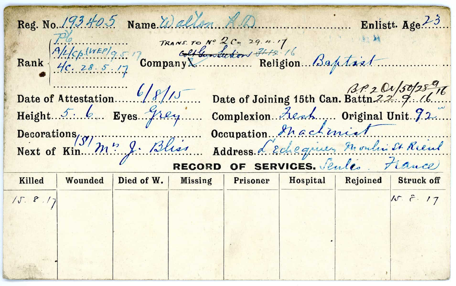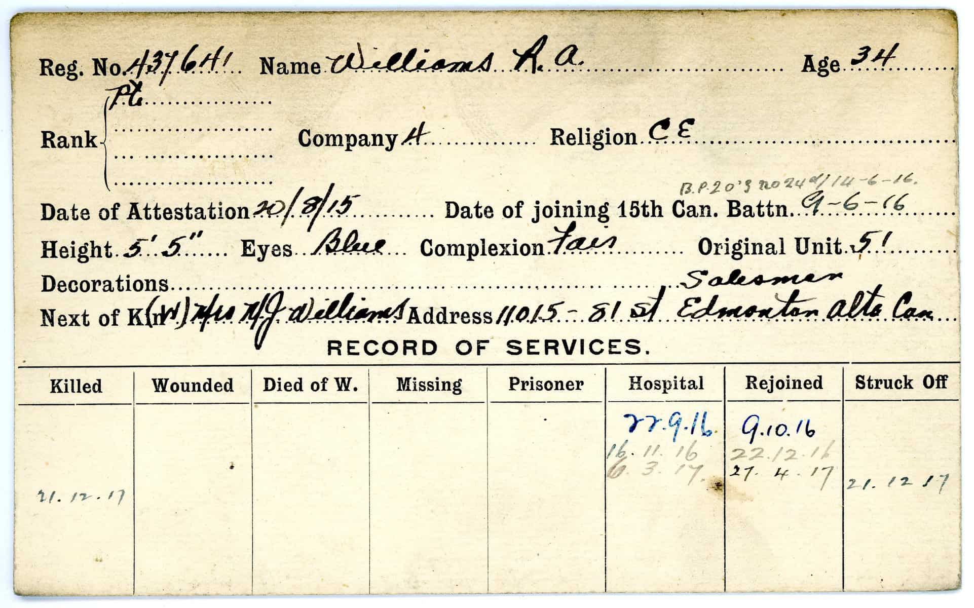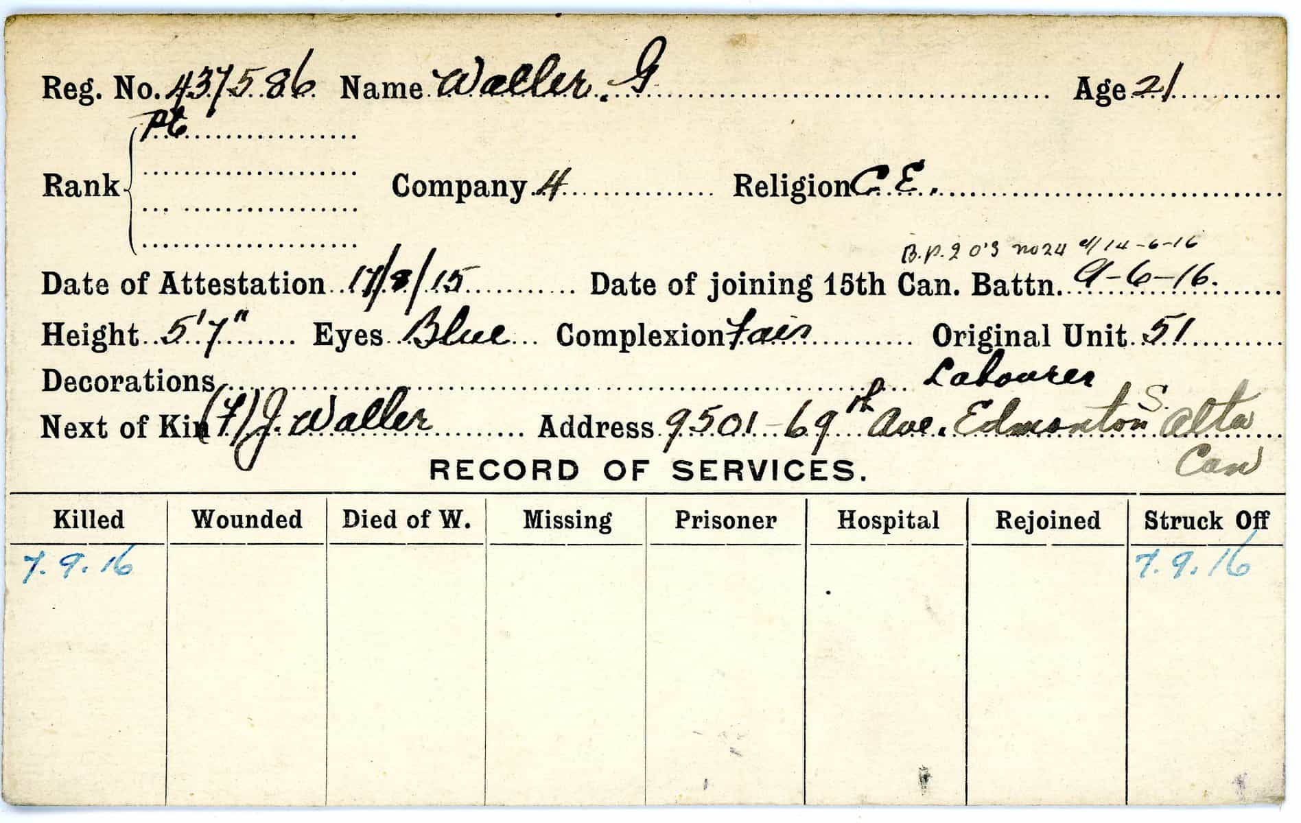 Record of Service Cards – W