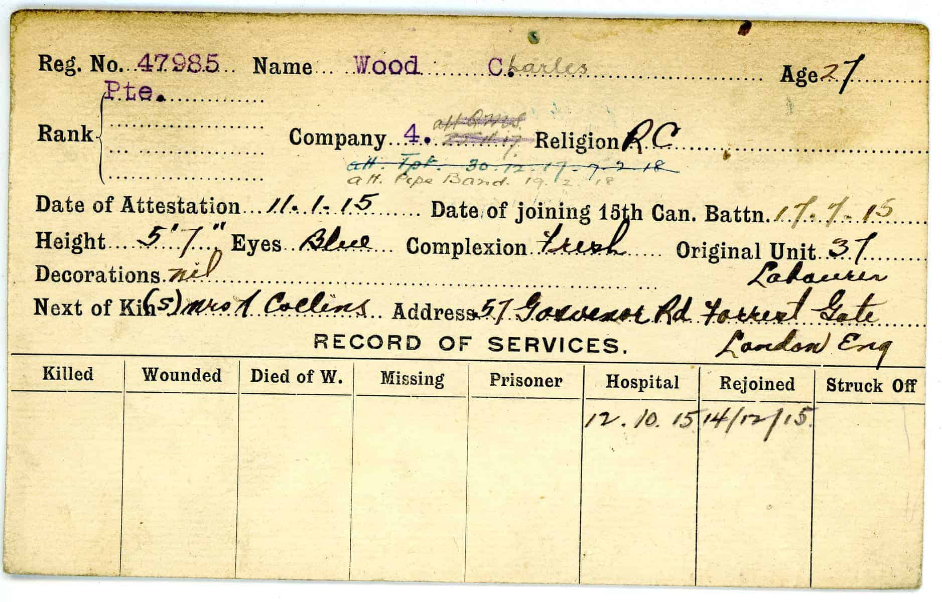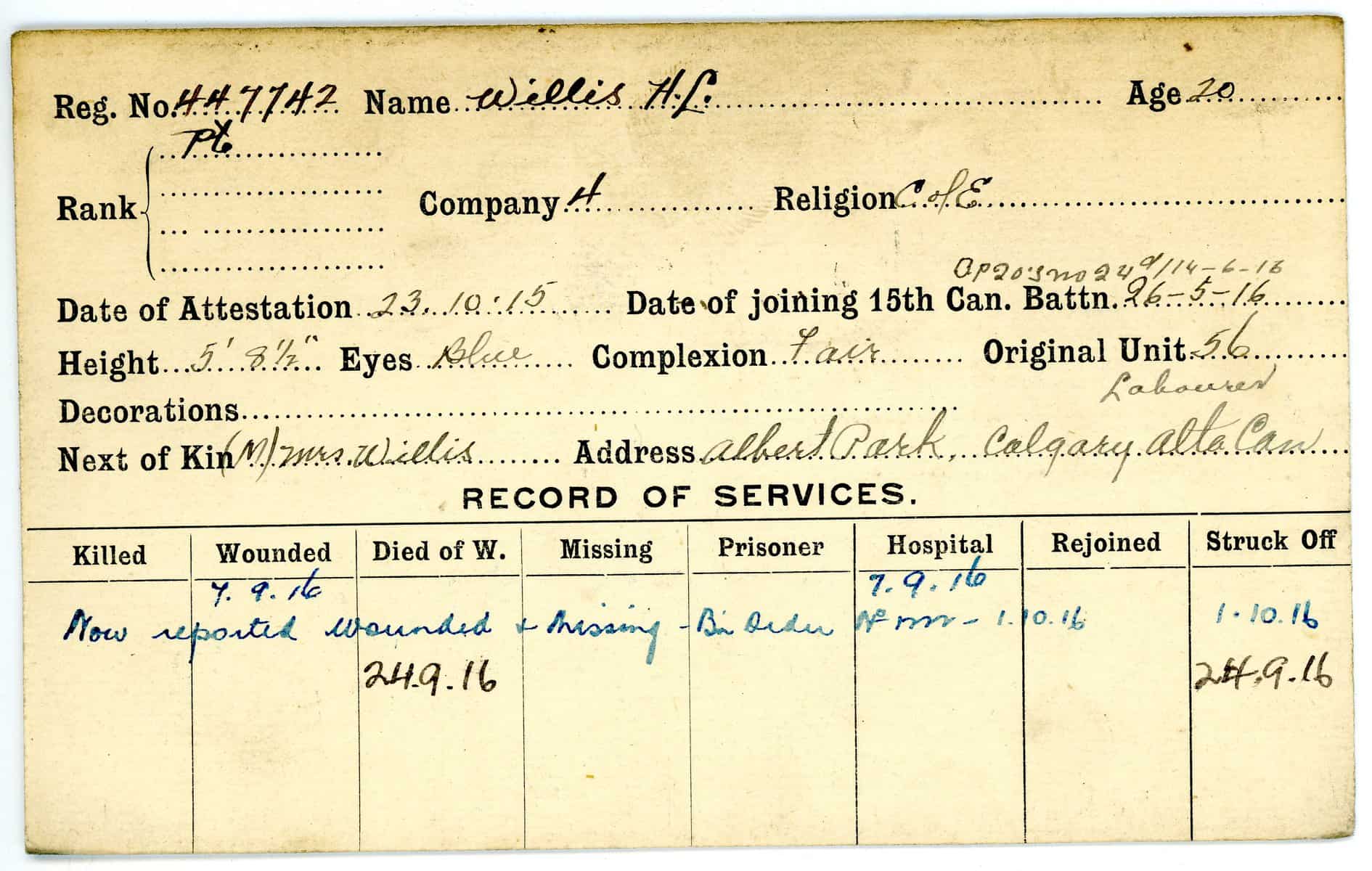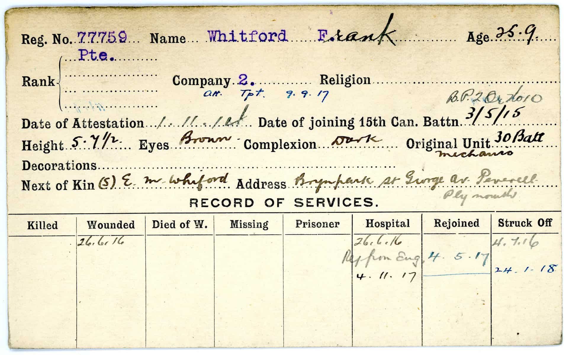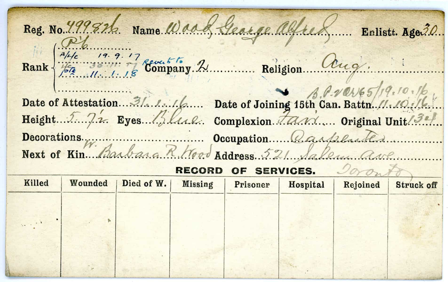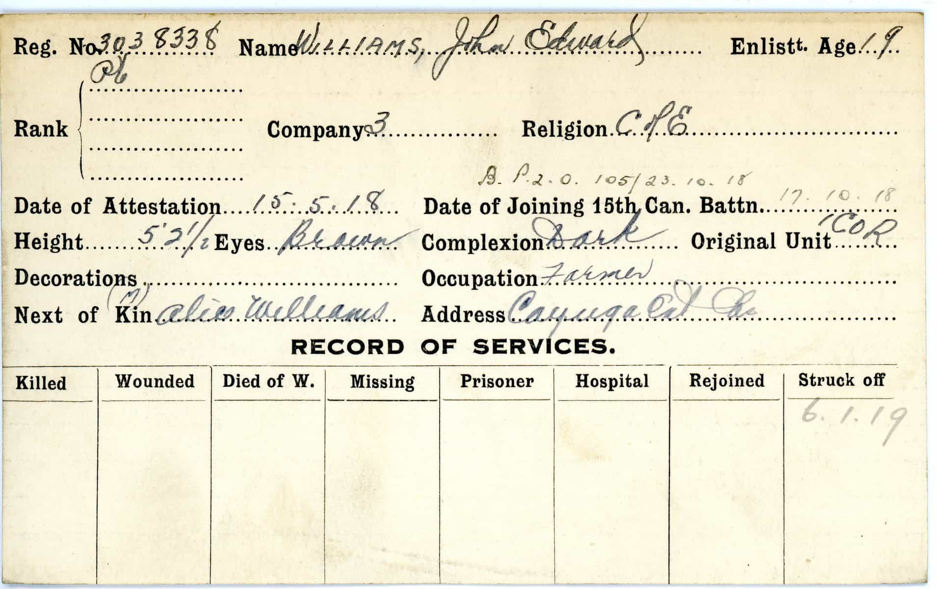 Record of Service Cards – W