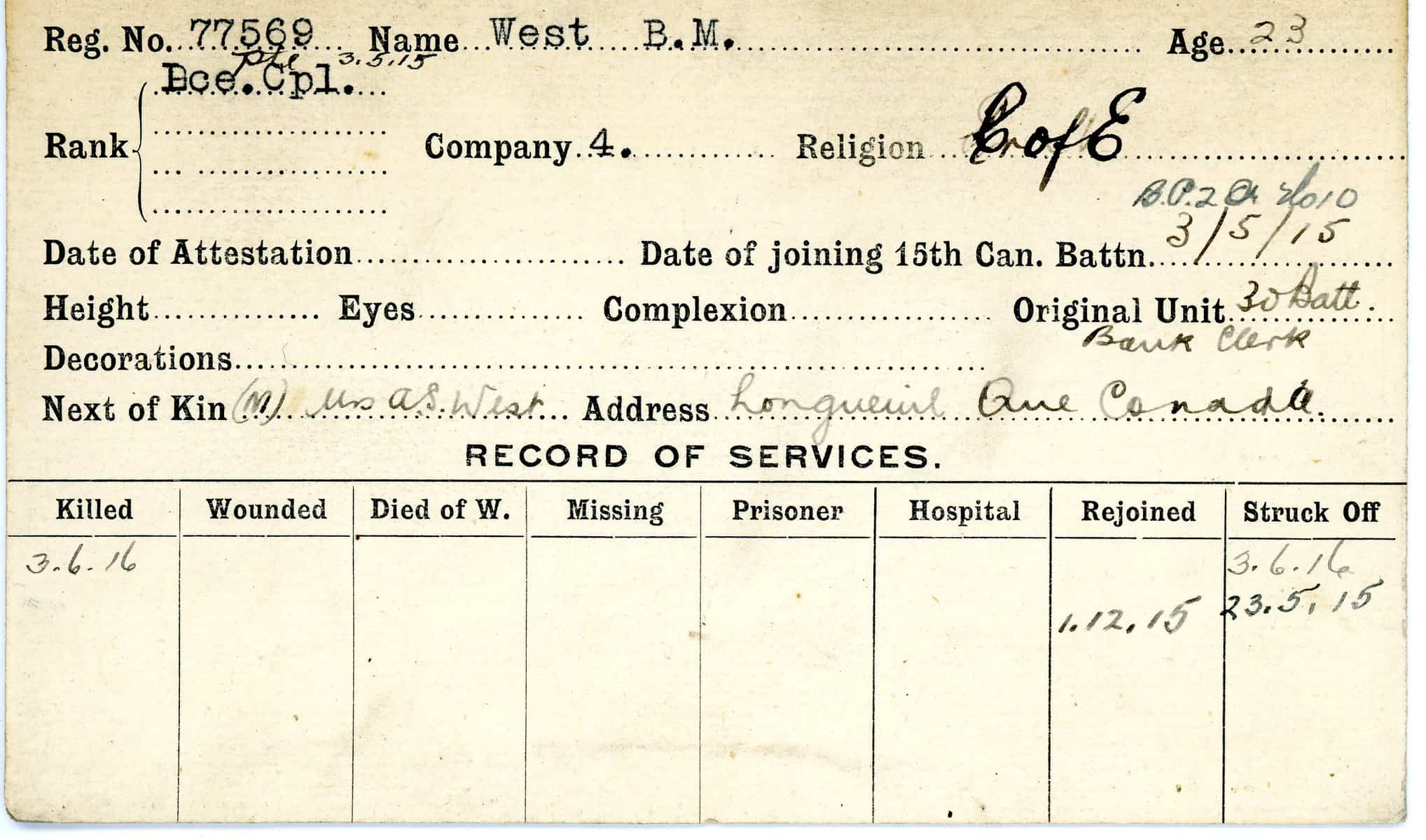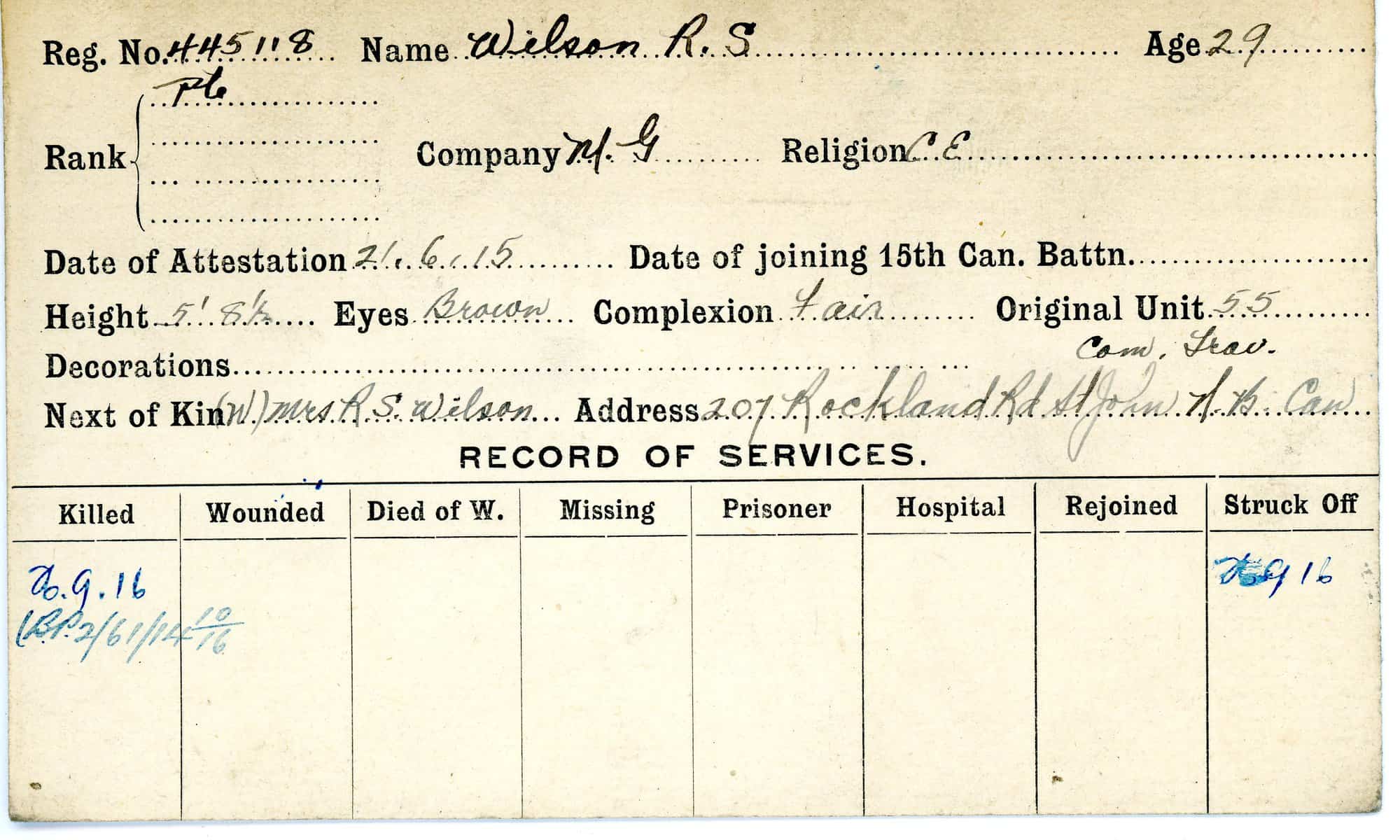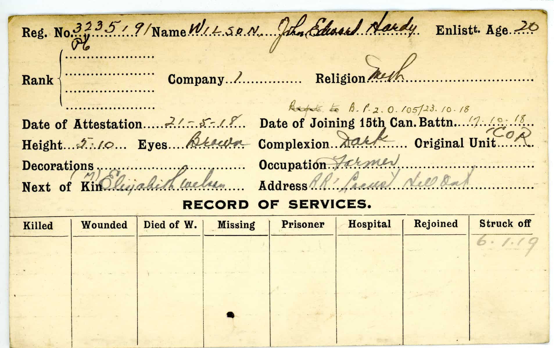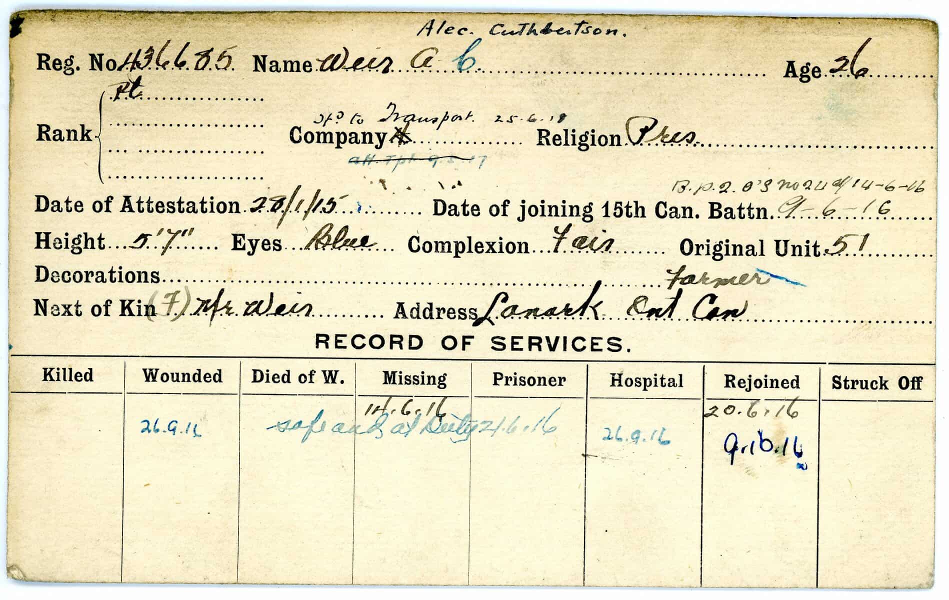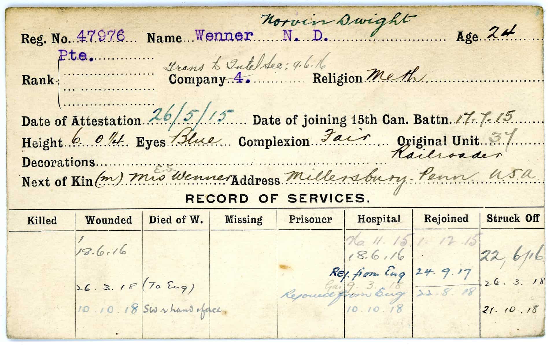 Record of Service Cards – W