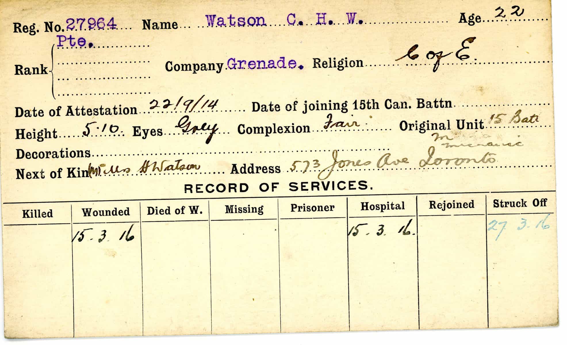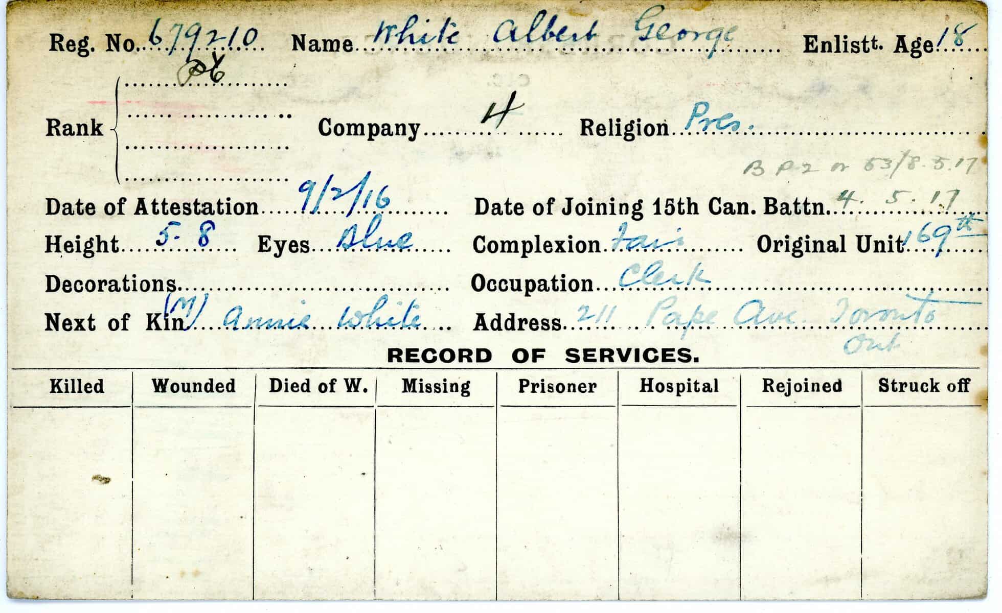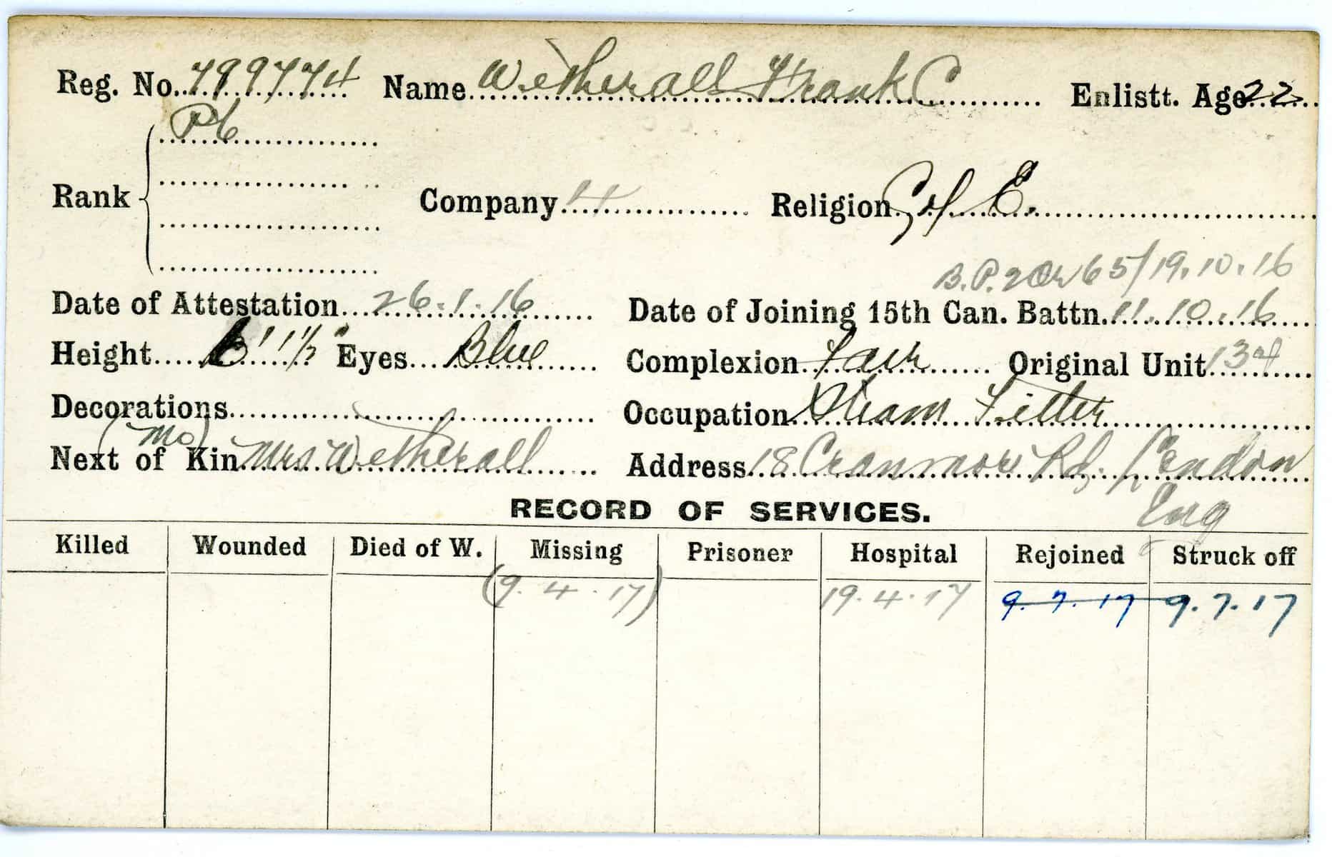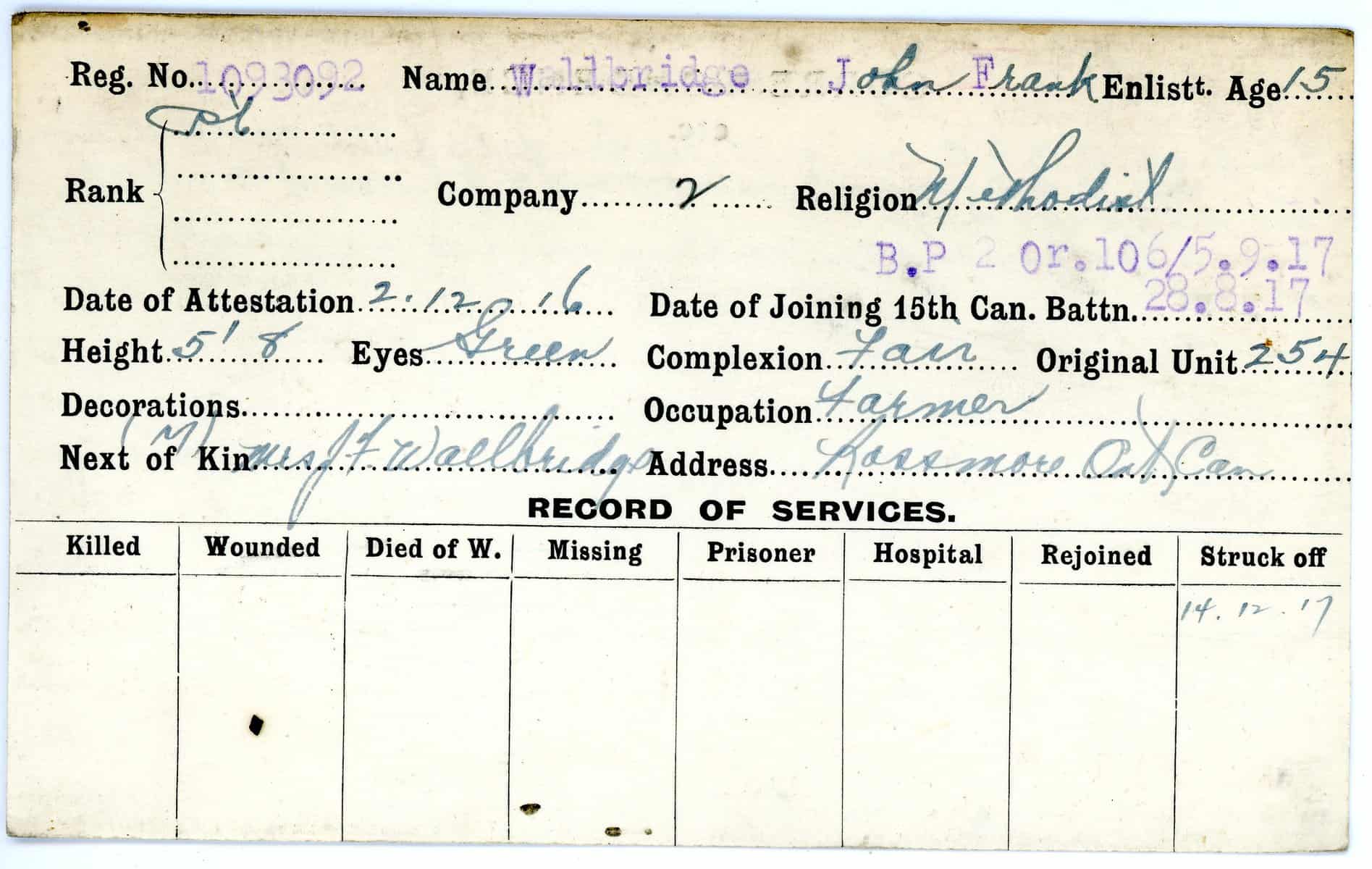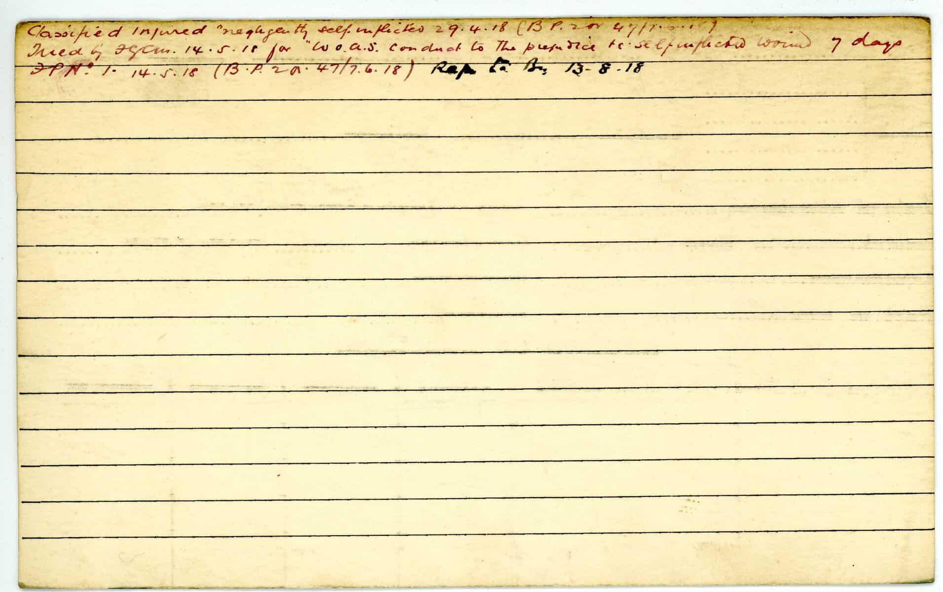 Record of Service Cards – W