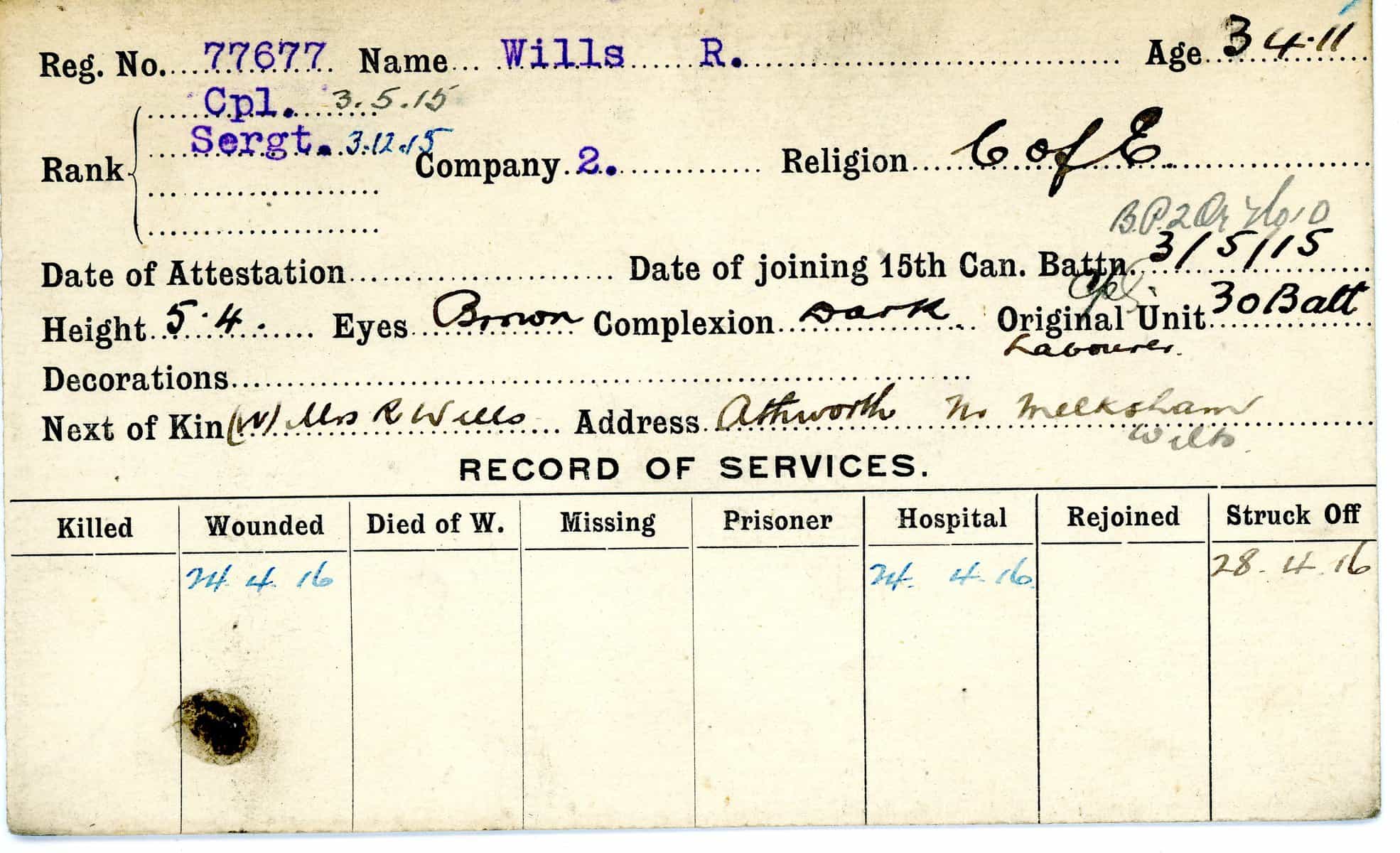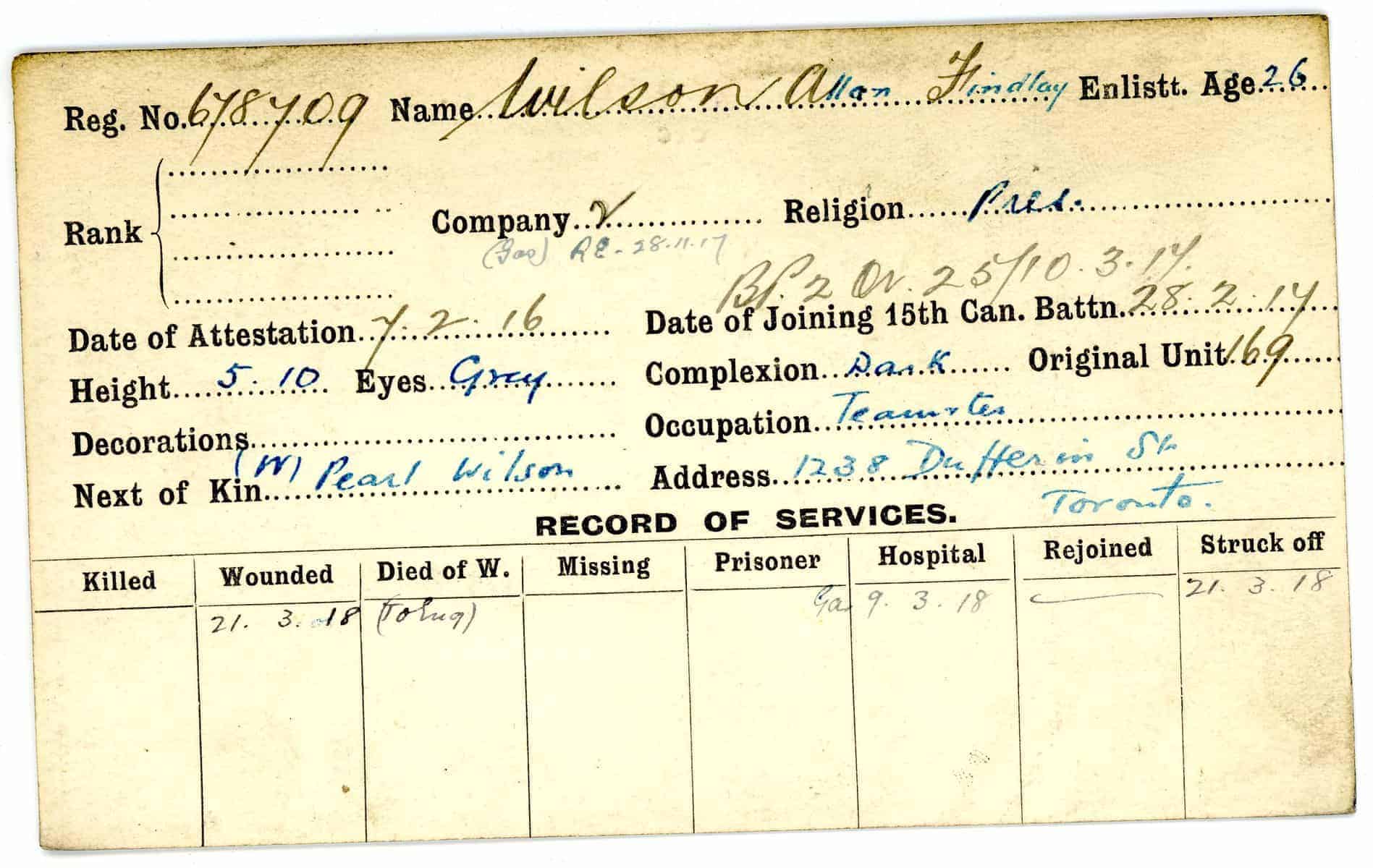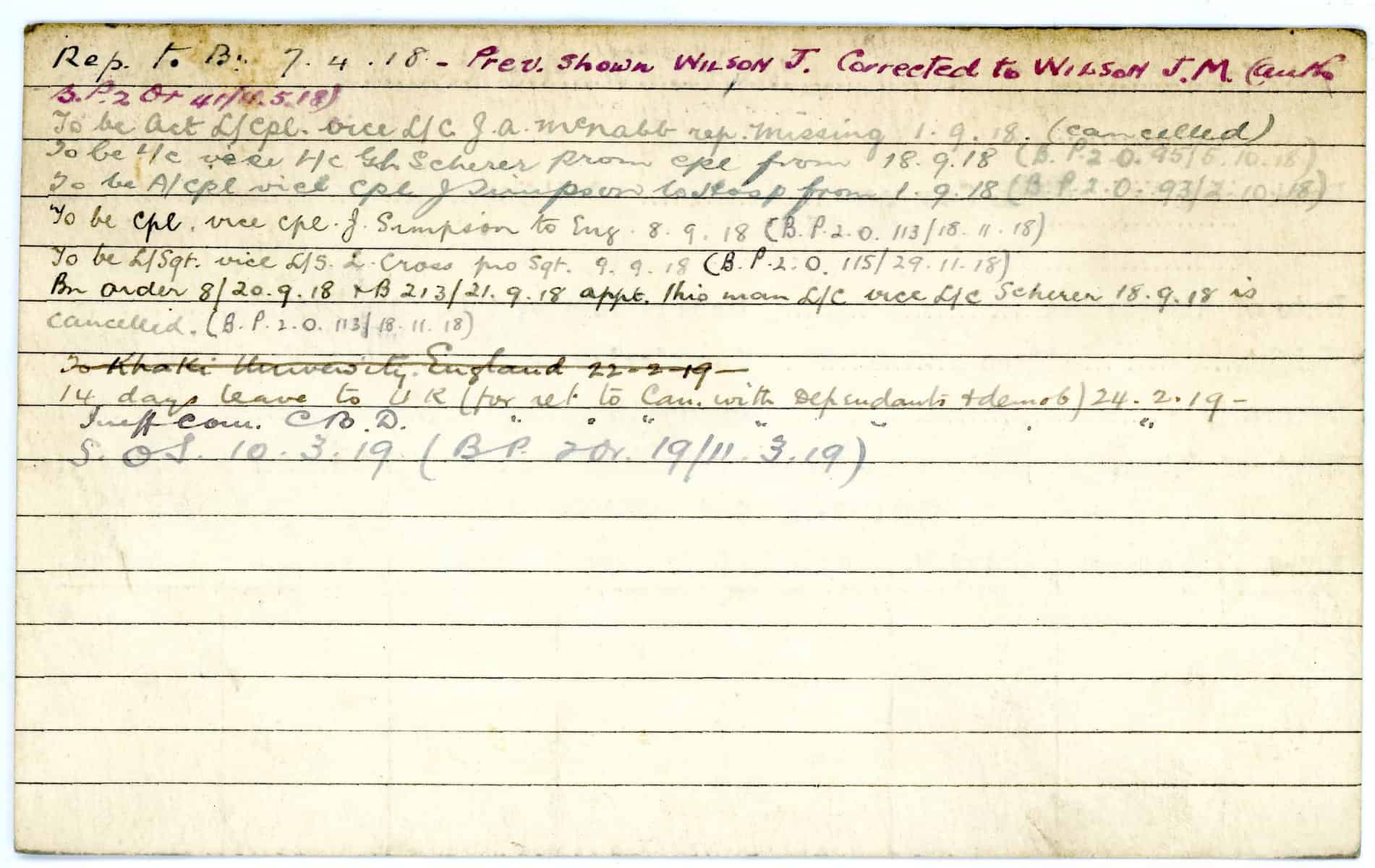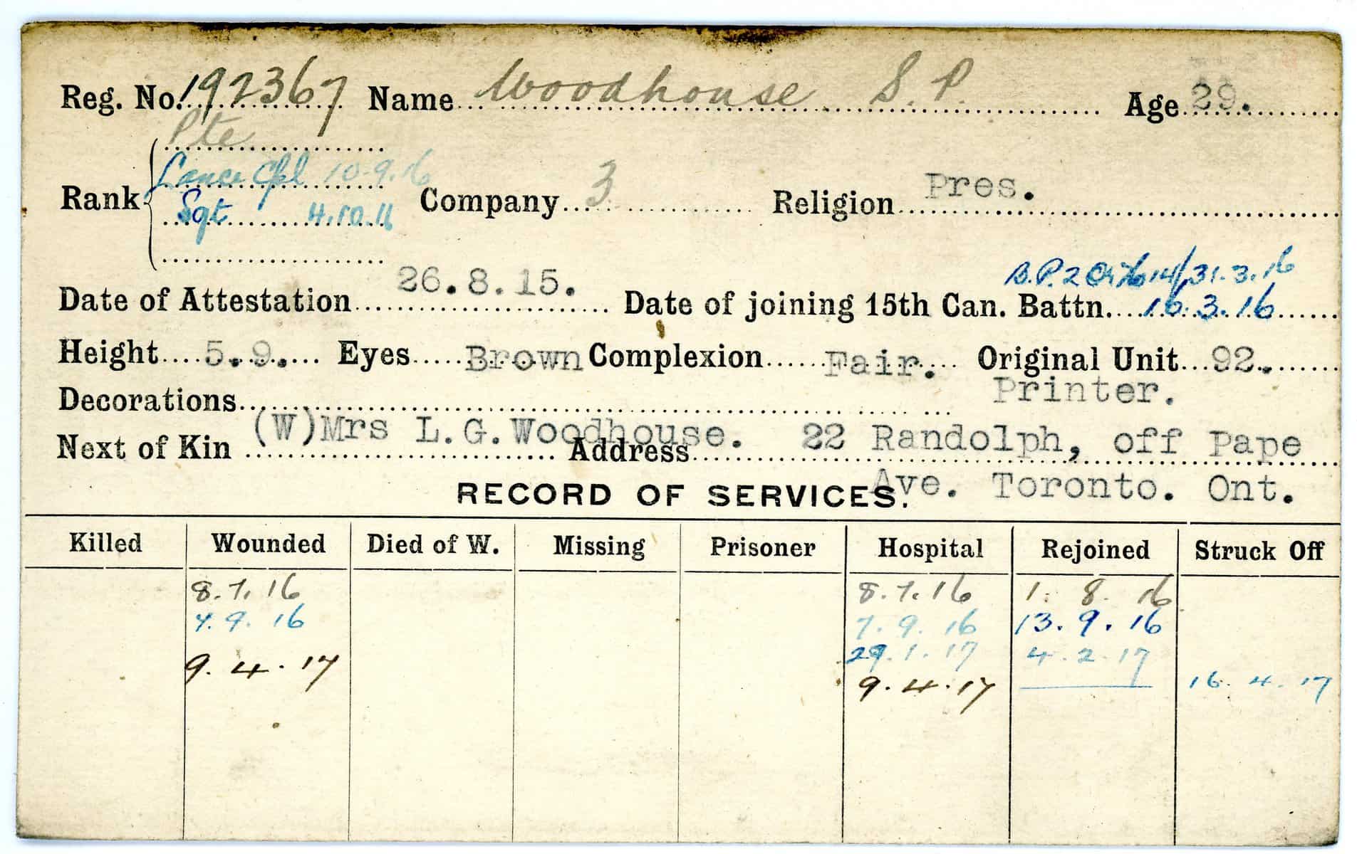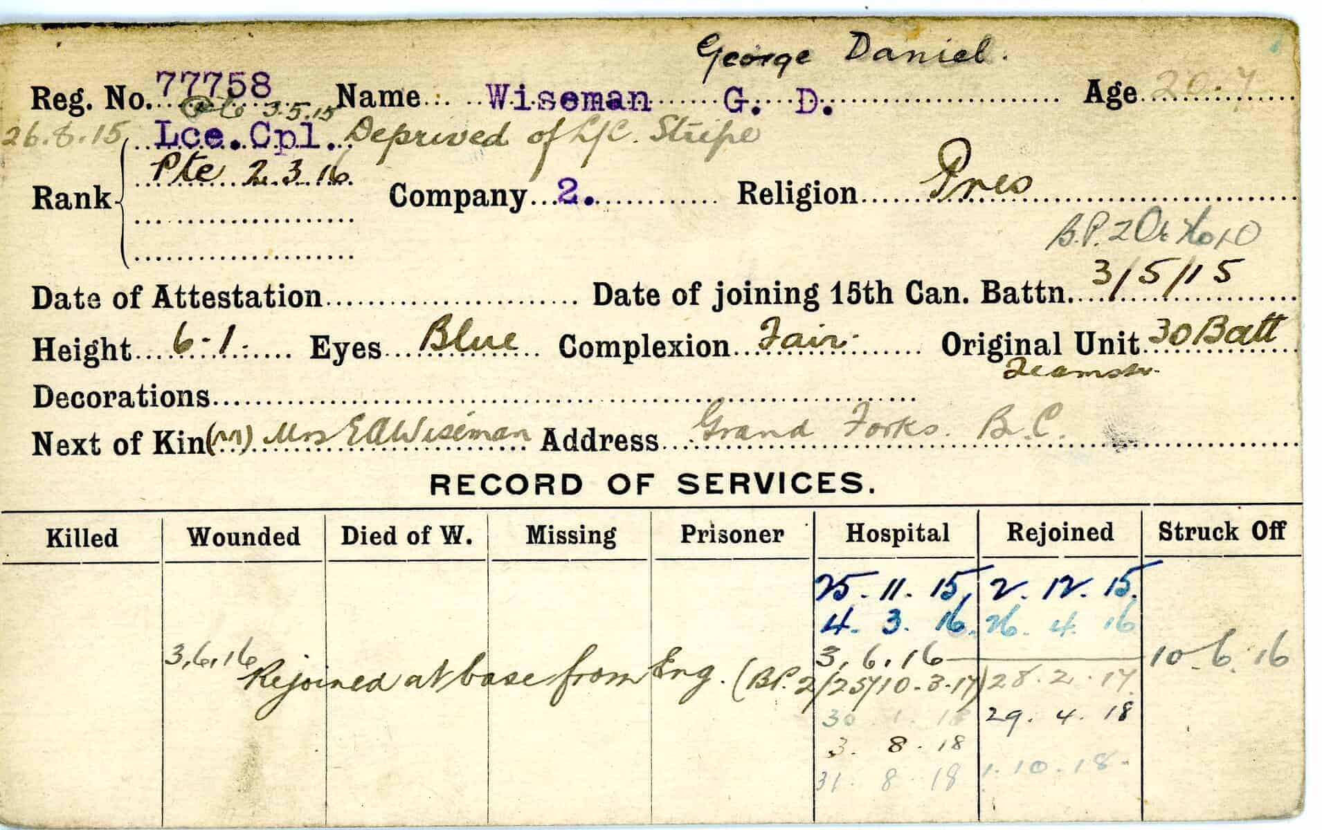 Record of Service Cards – W