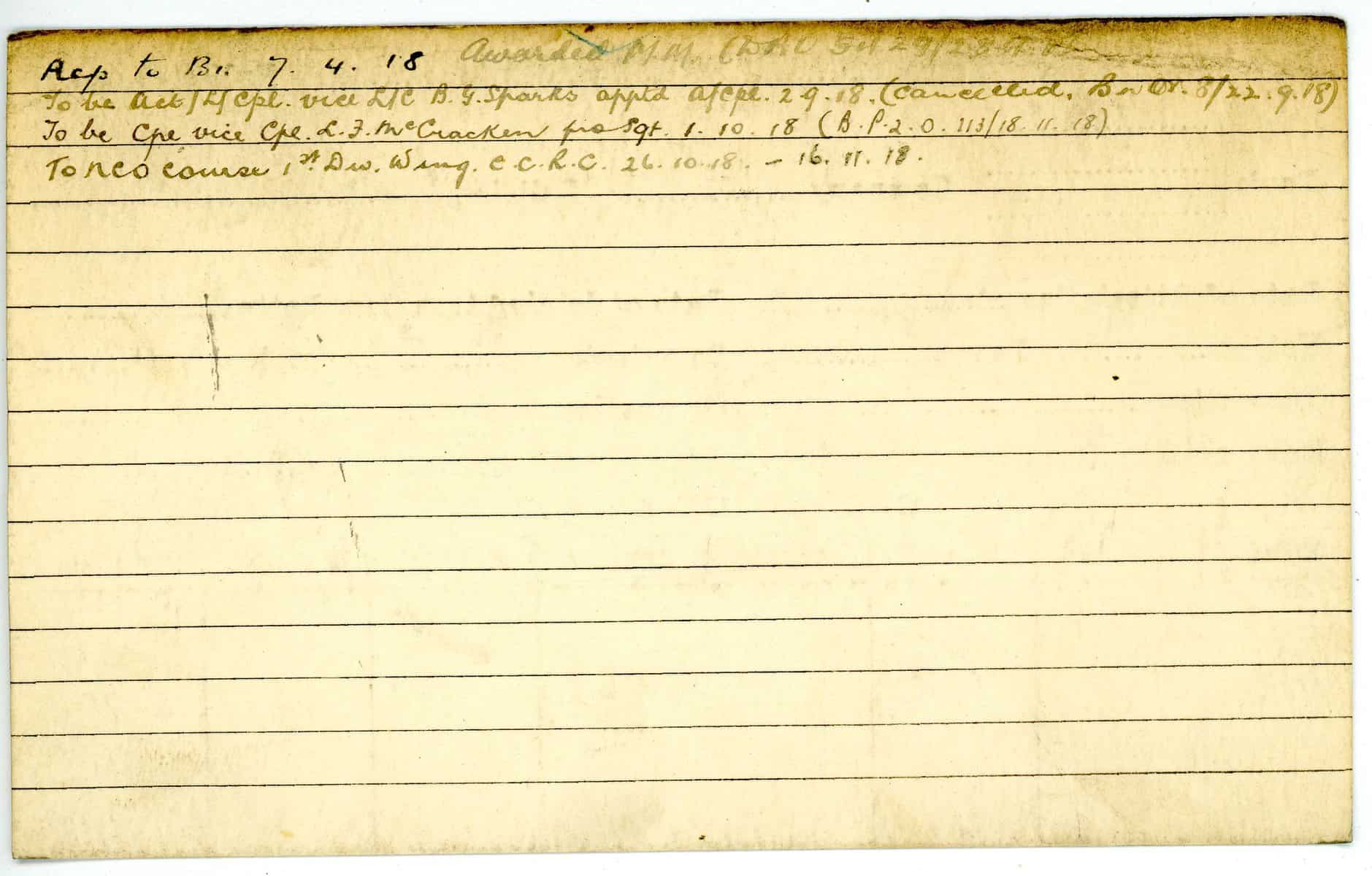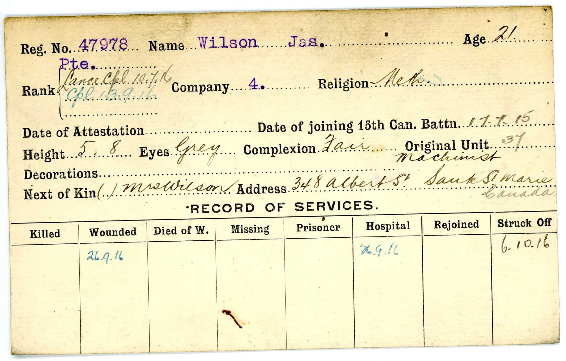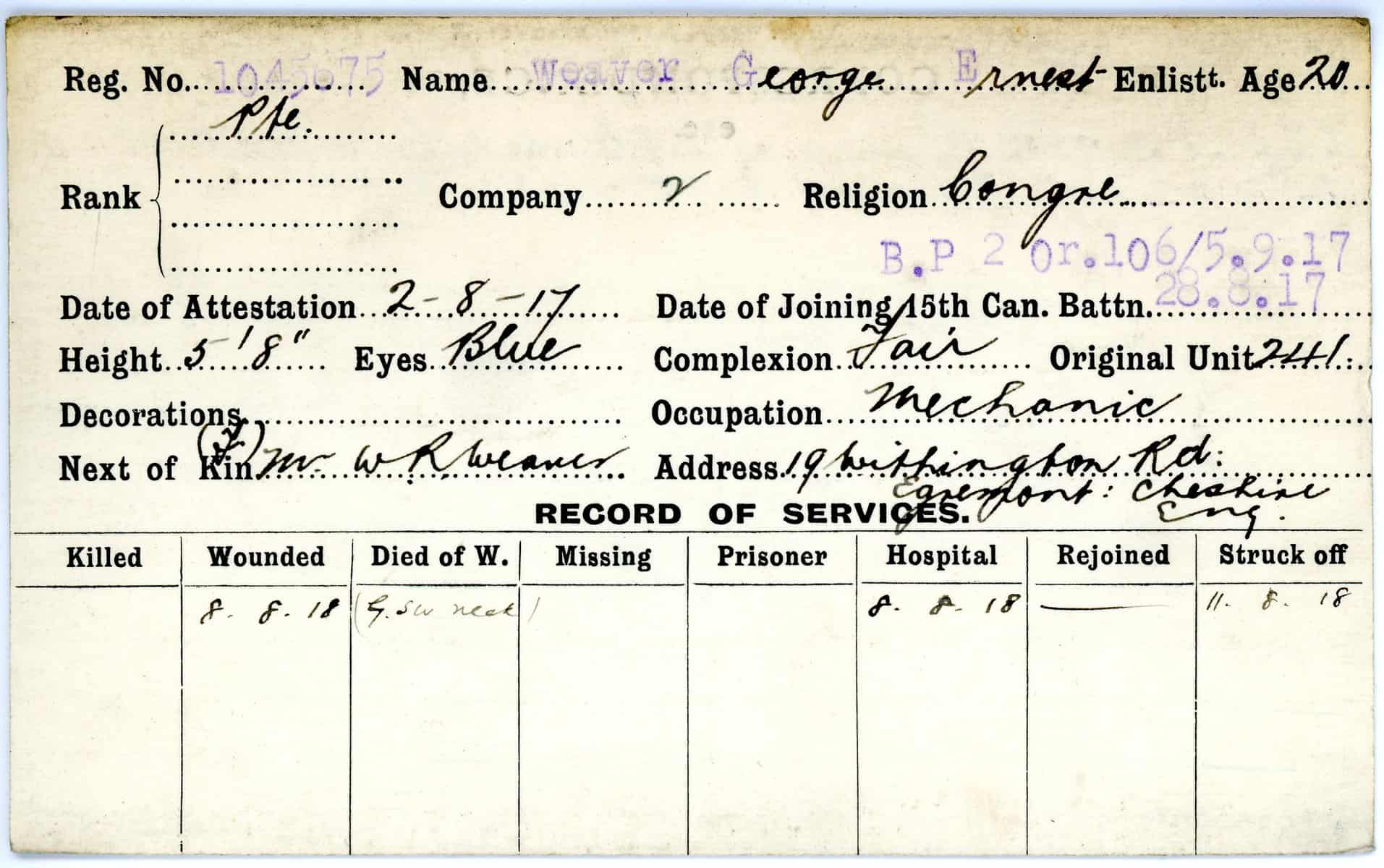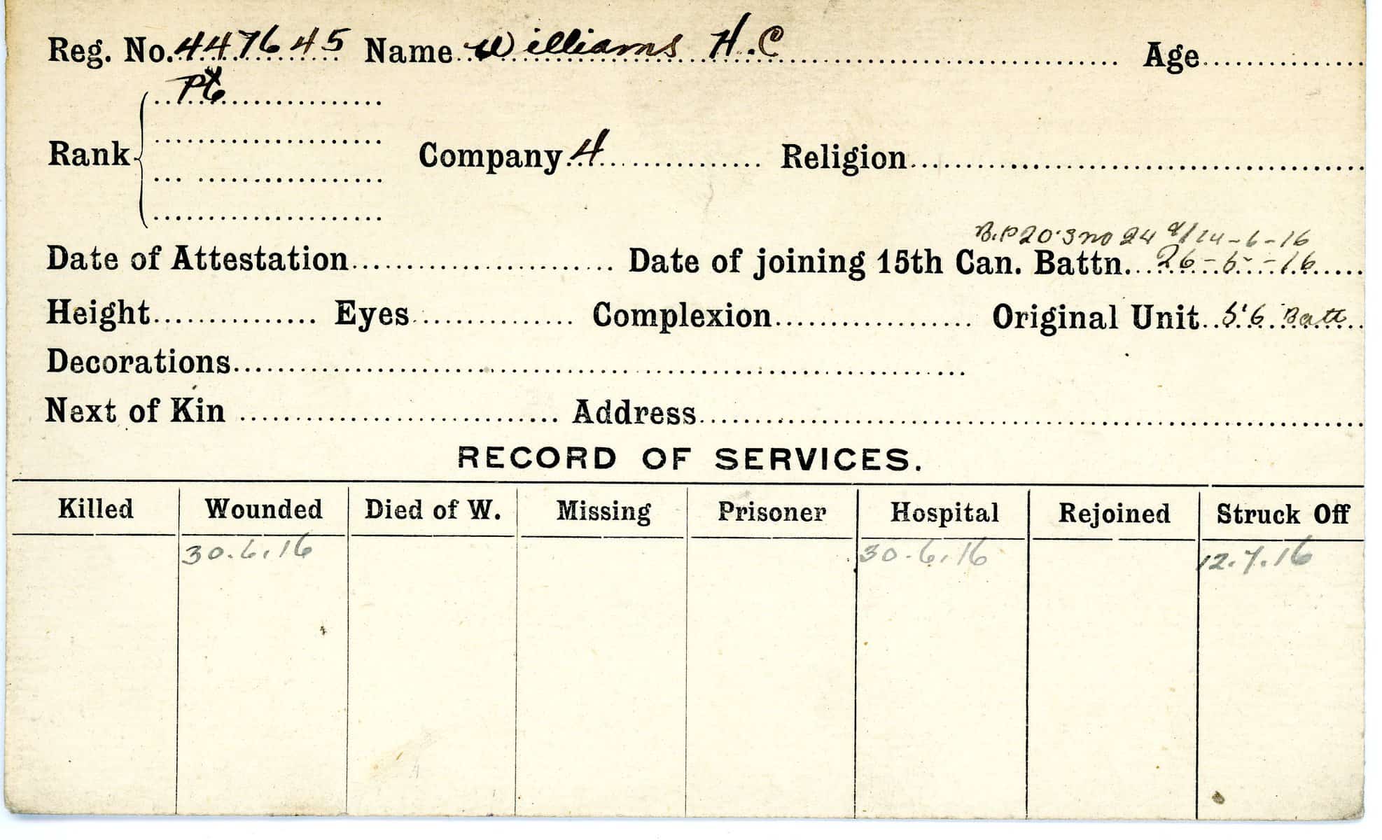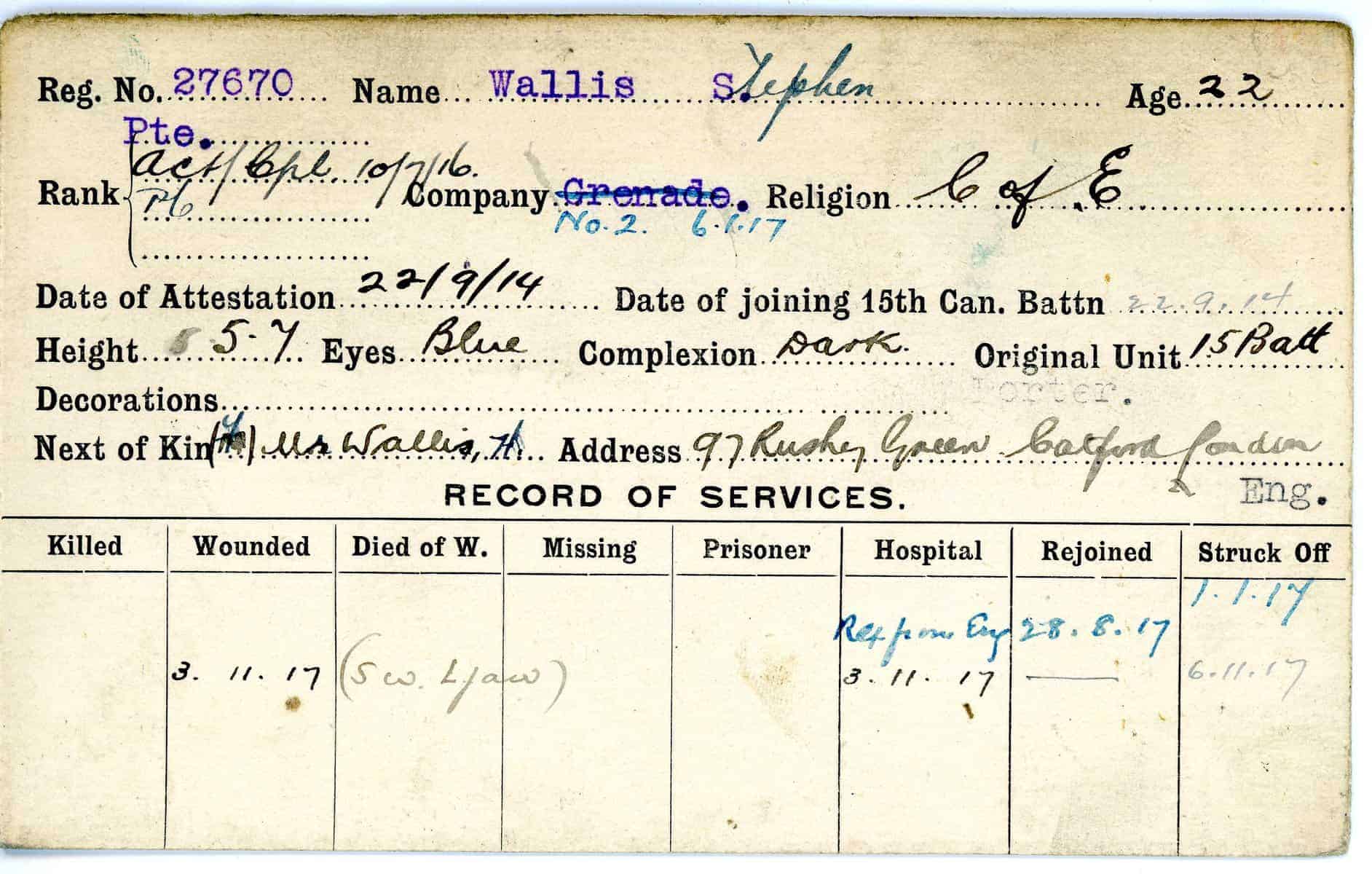 Record of Service Cards – W