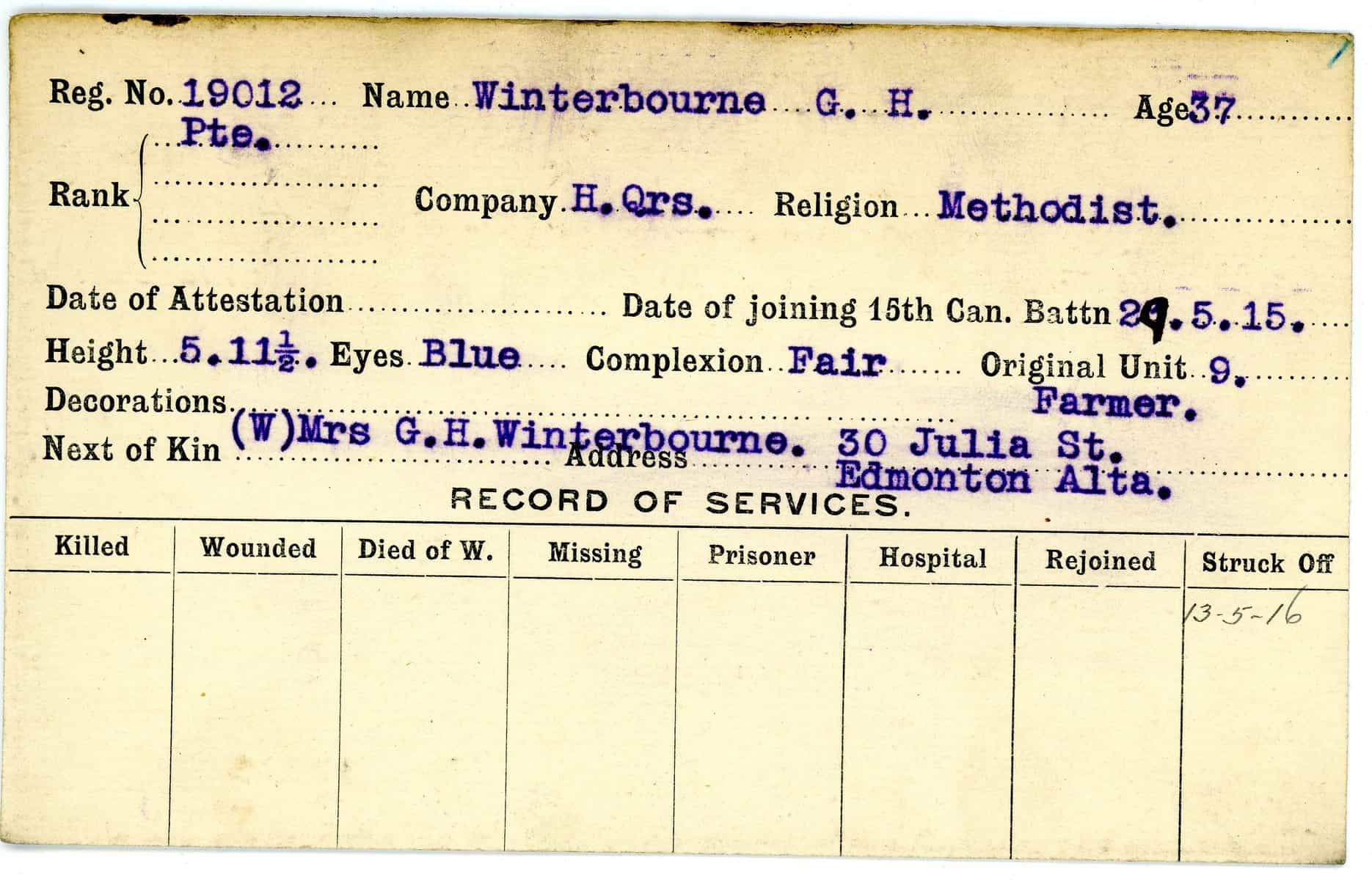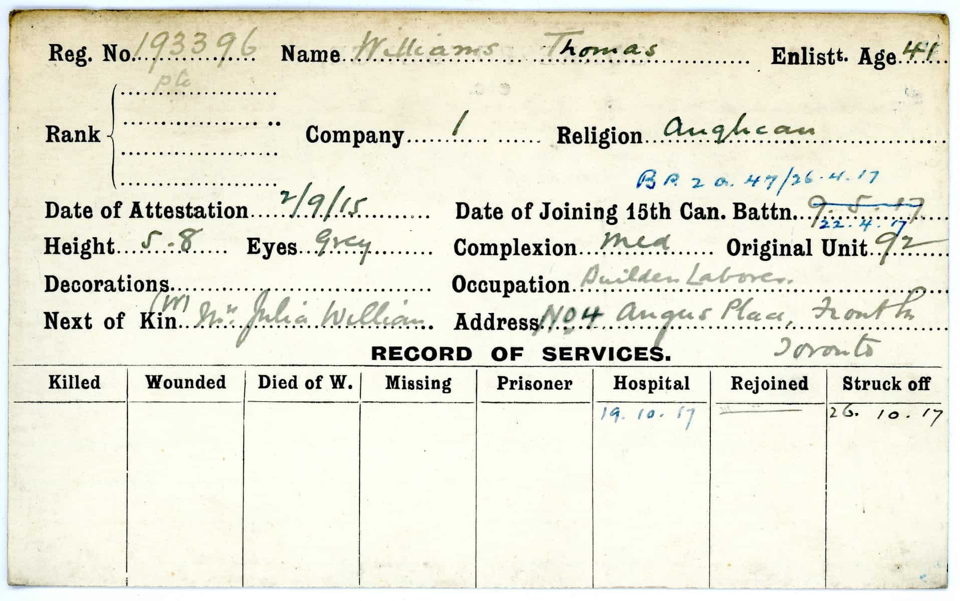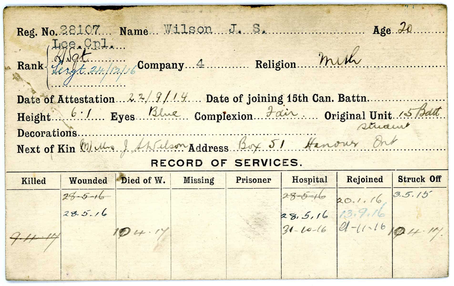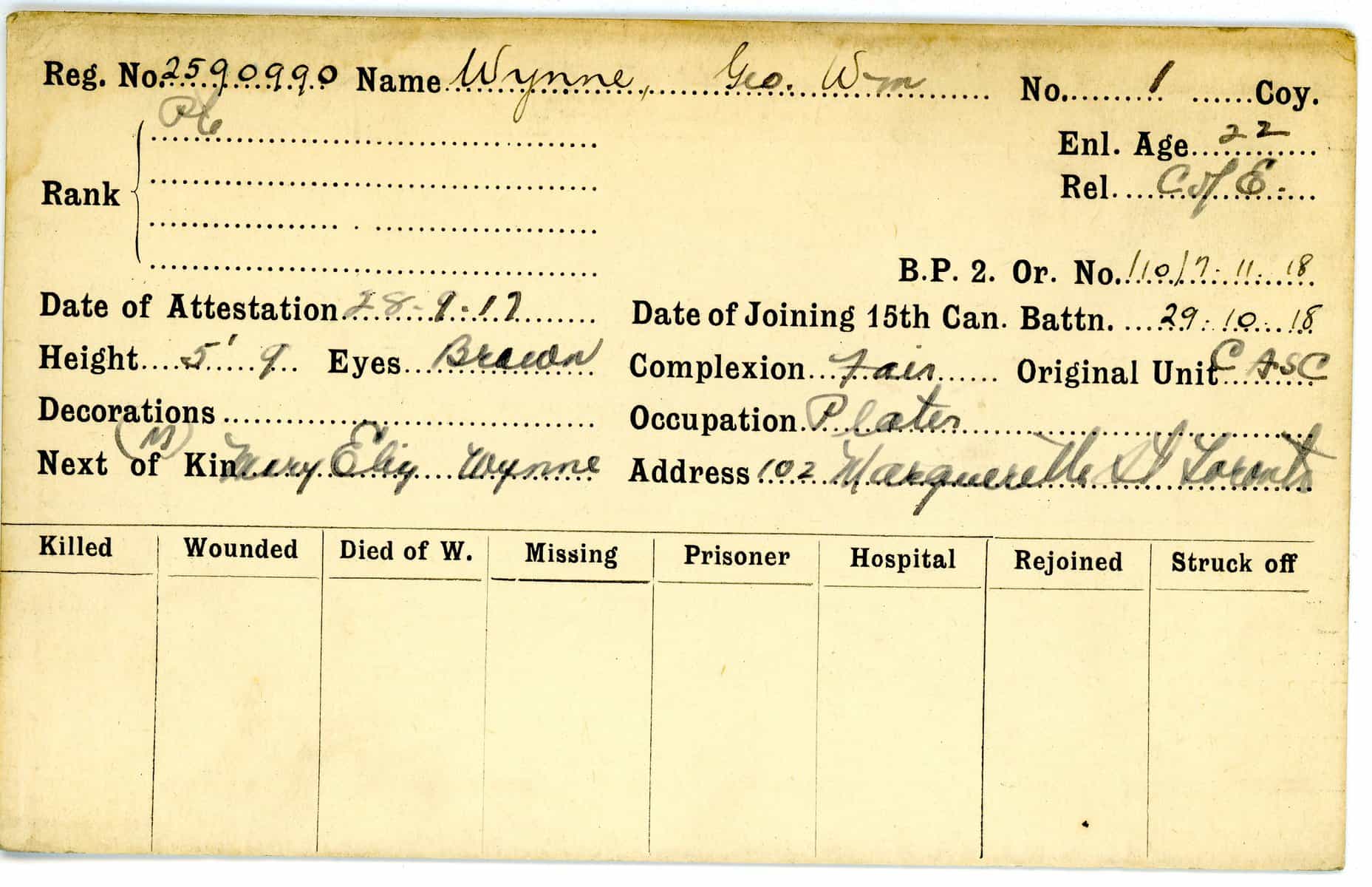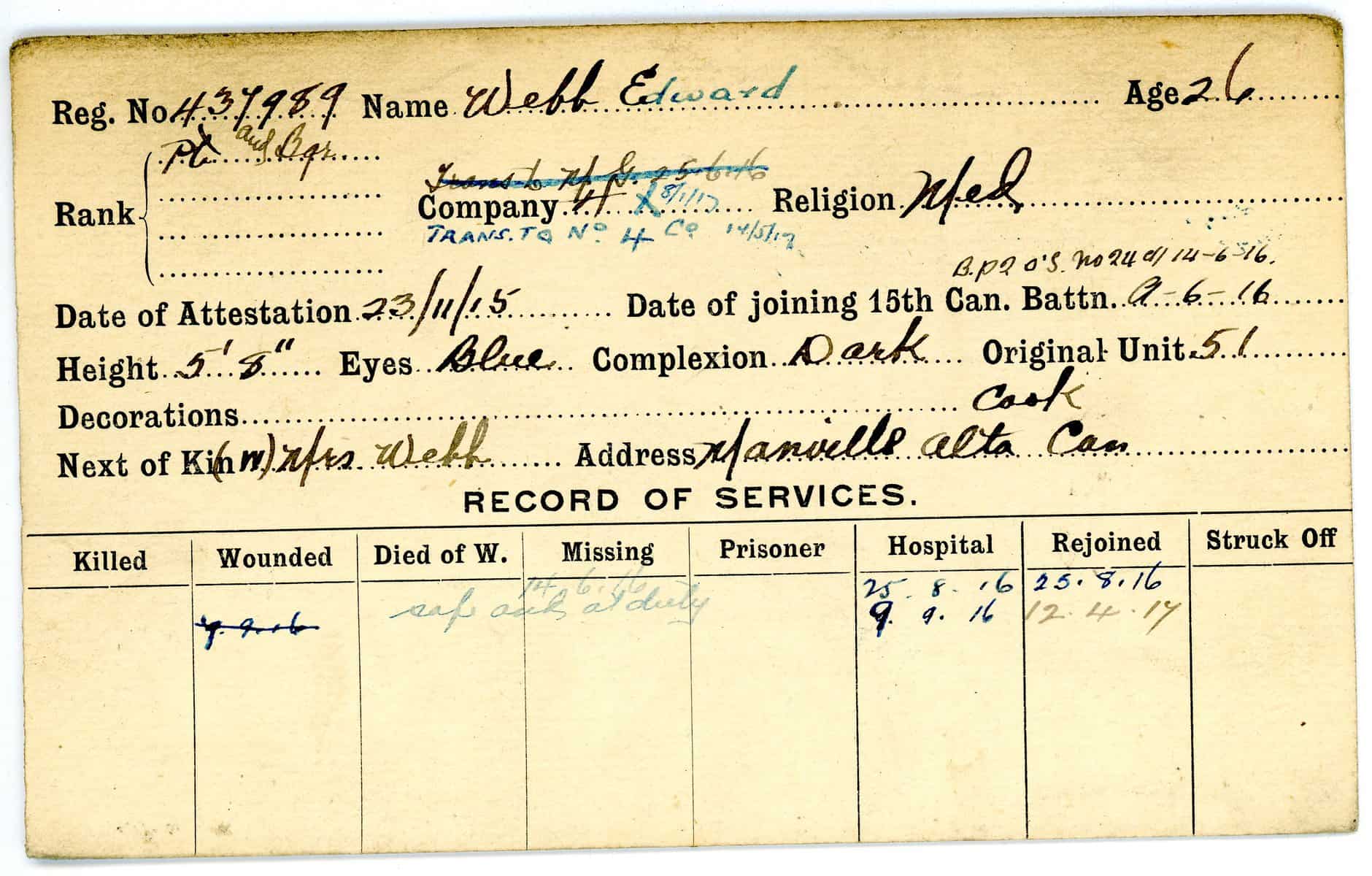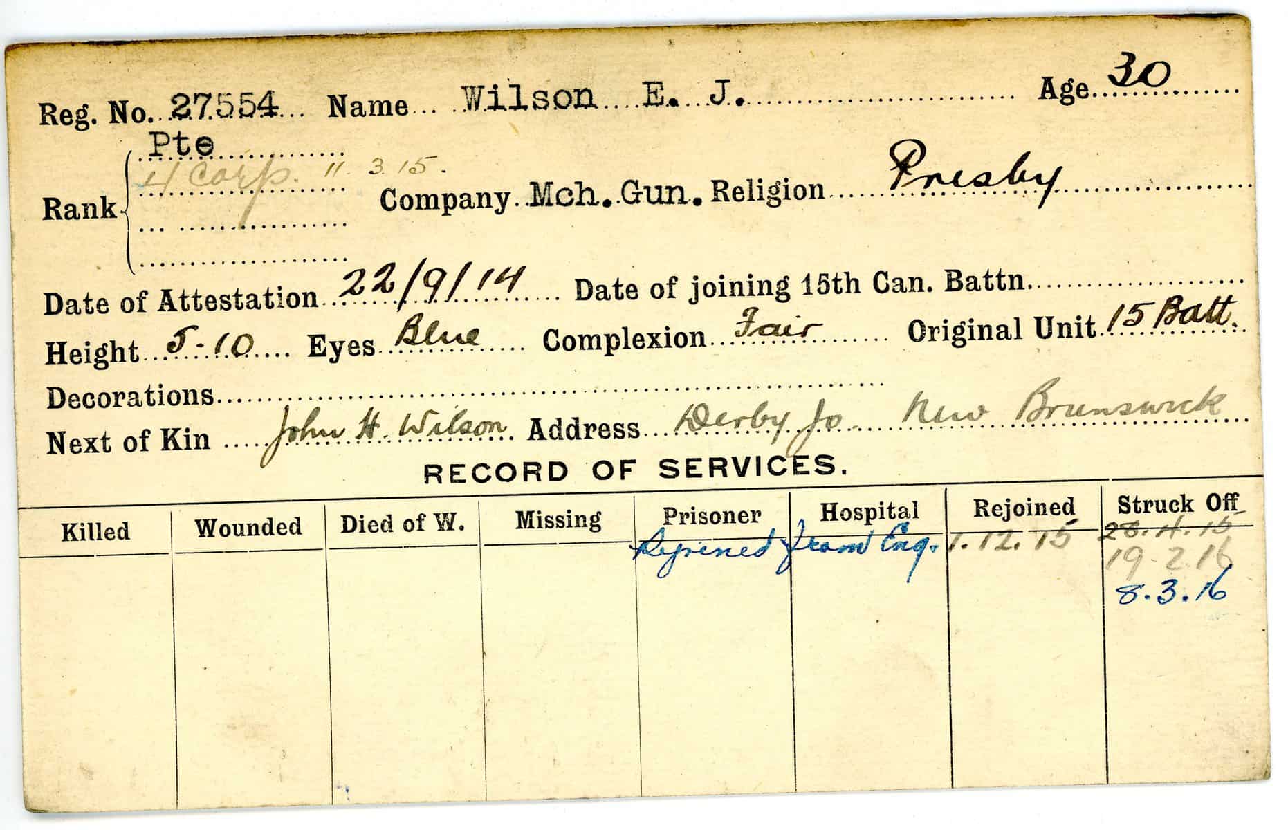 Record of Service Cards – W