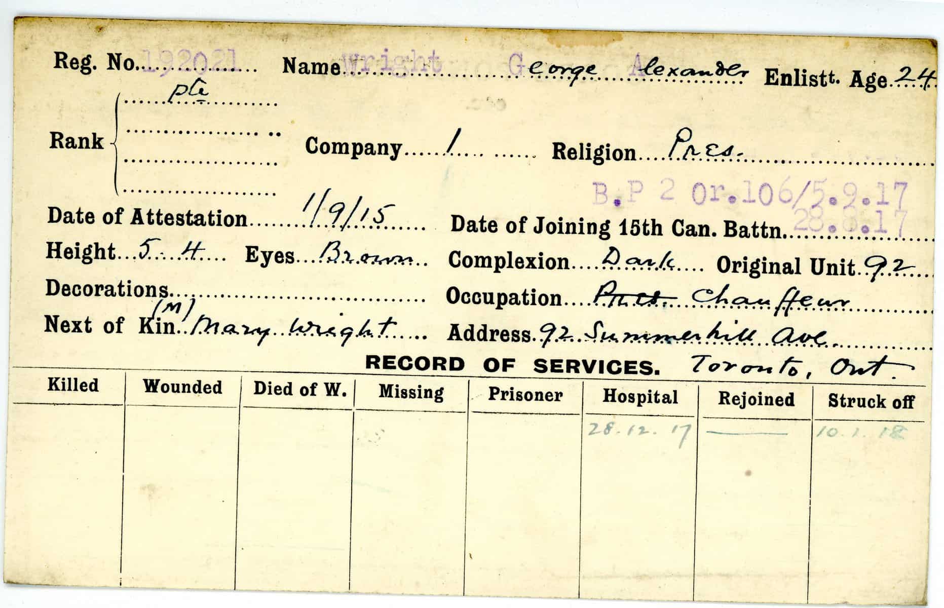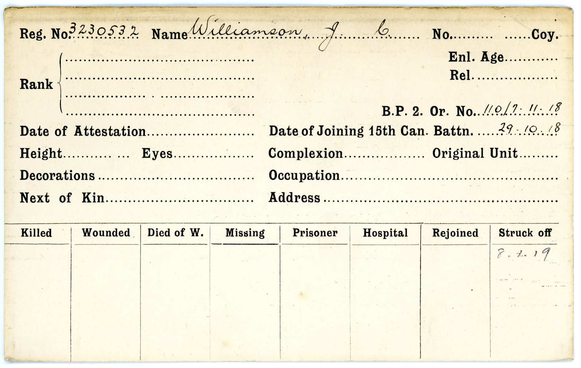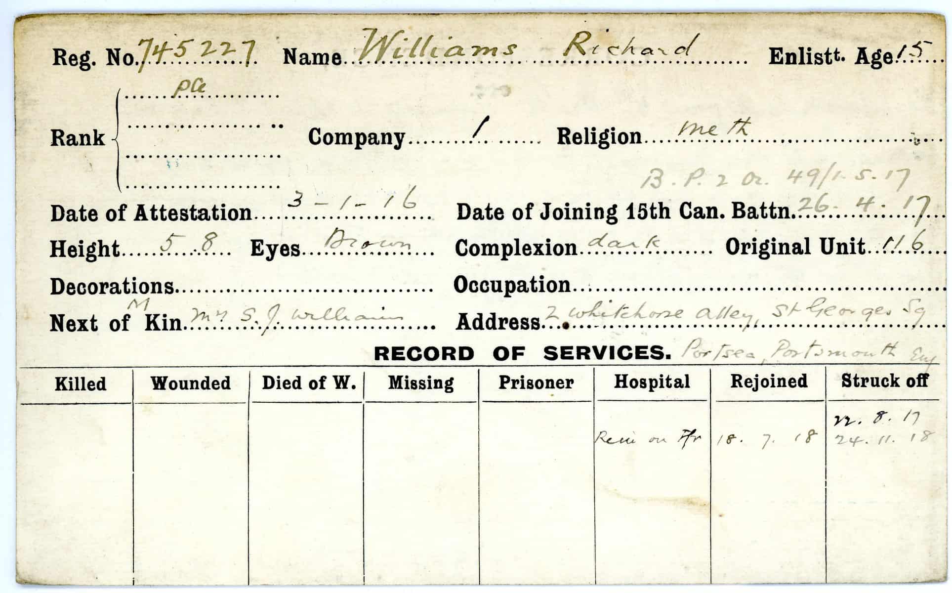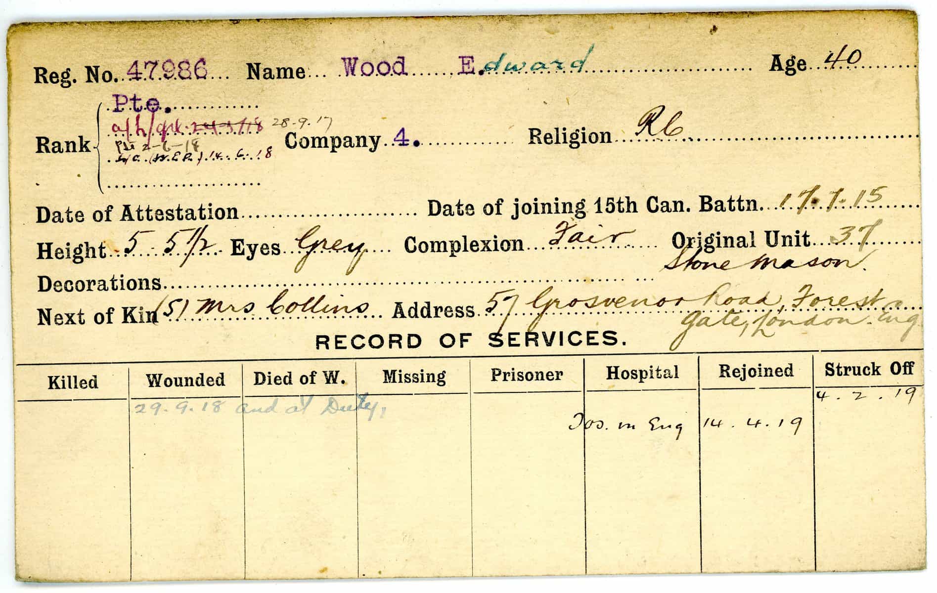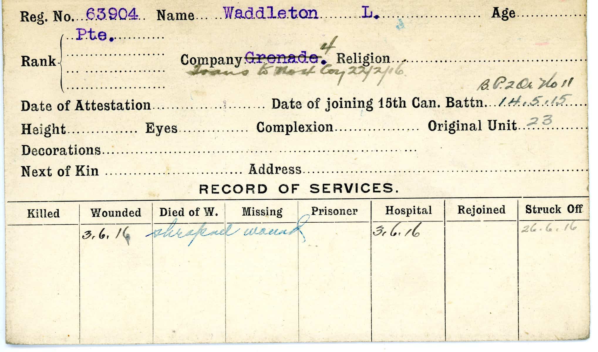 Record of Service Cards – W
