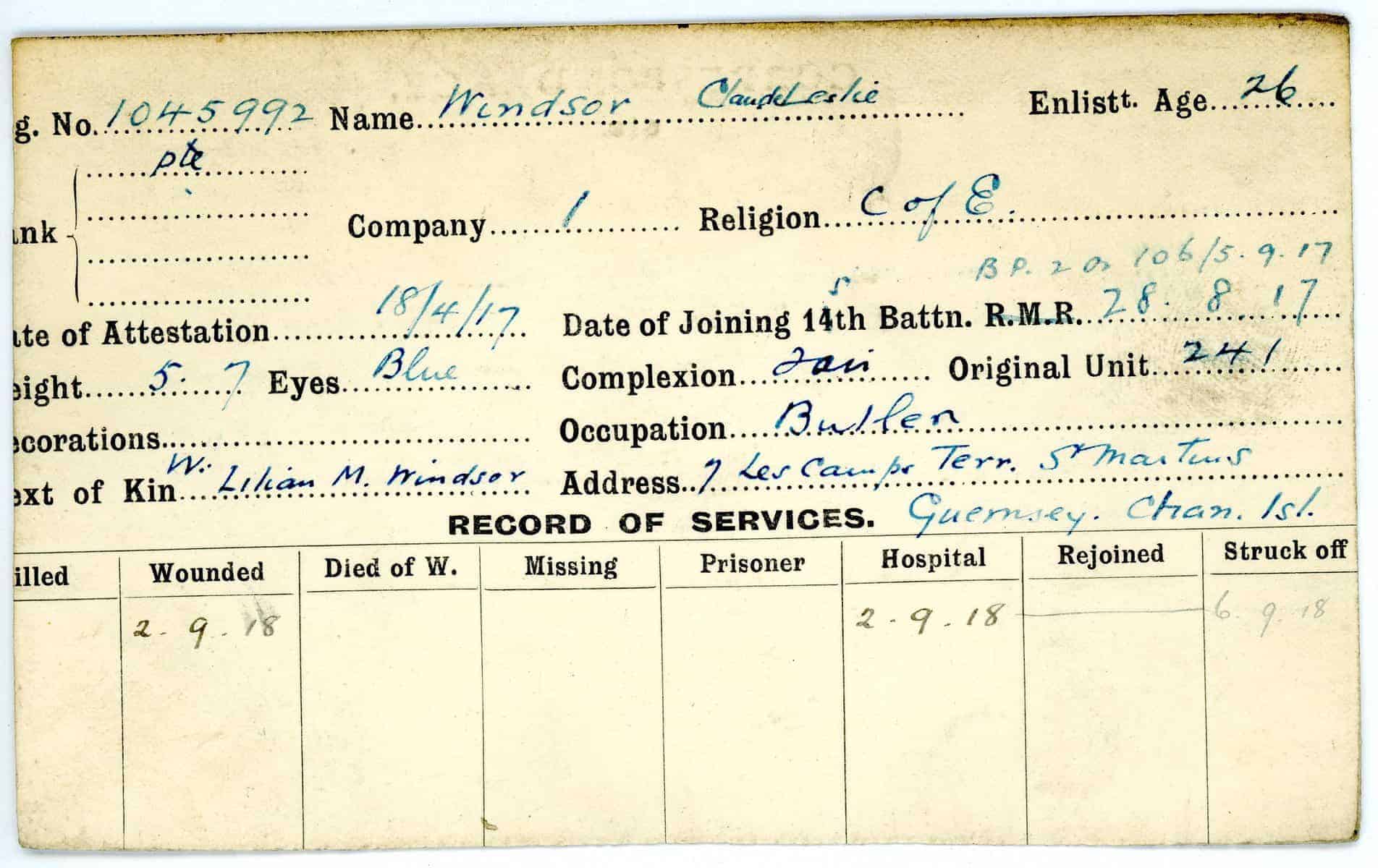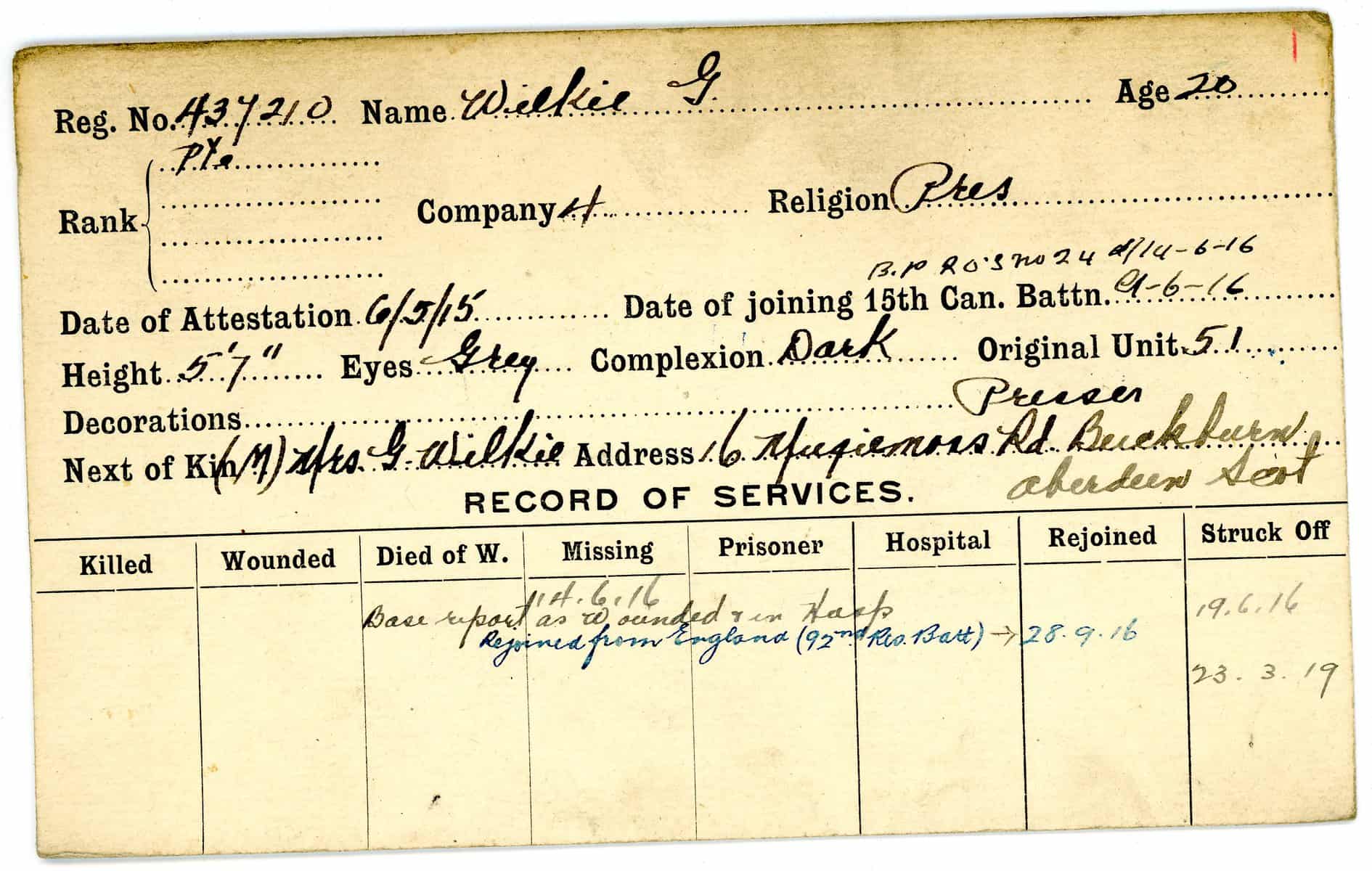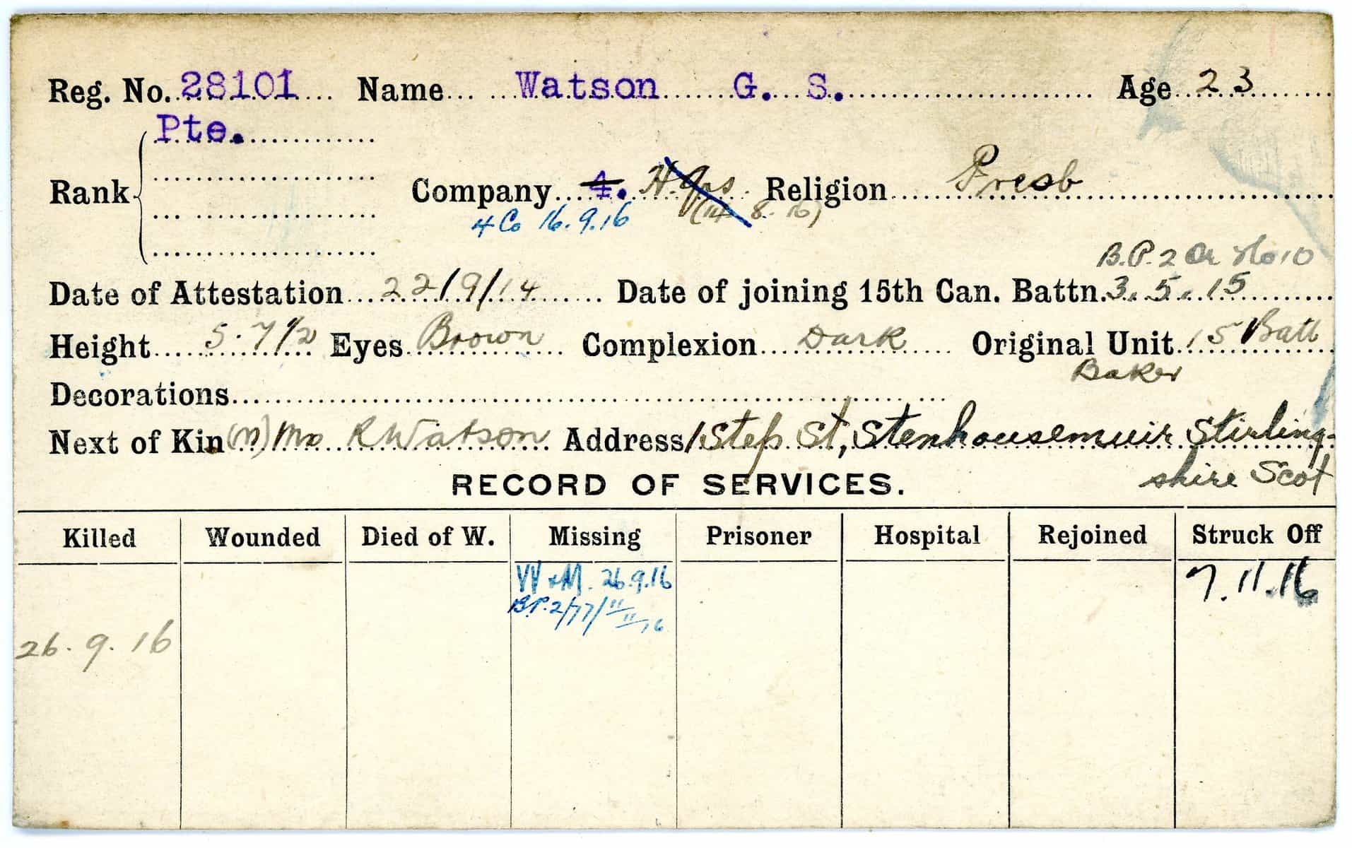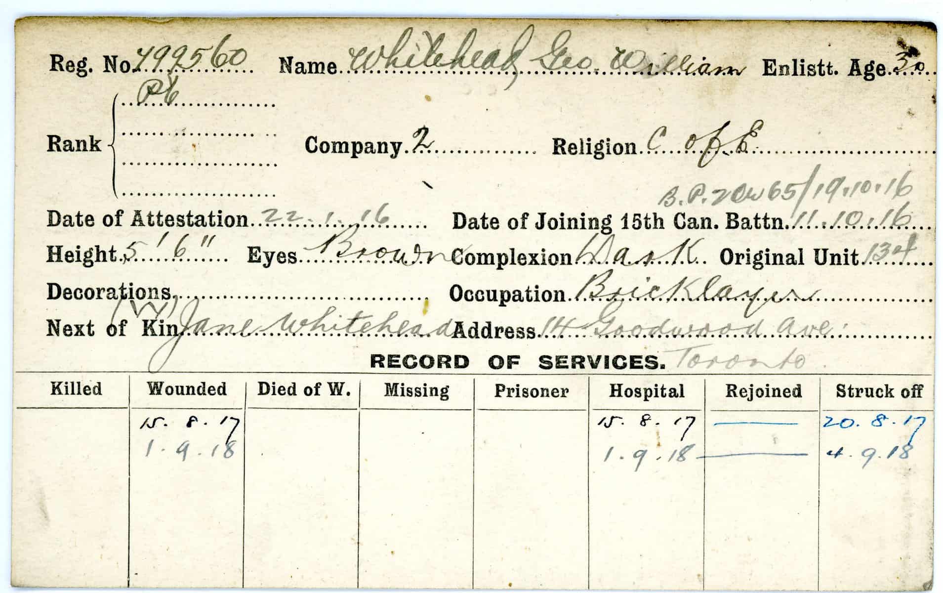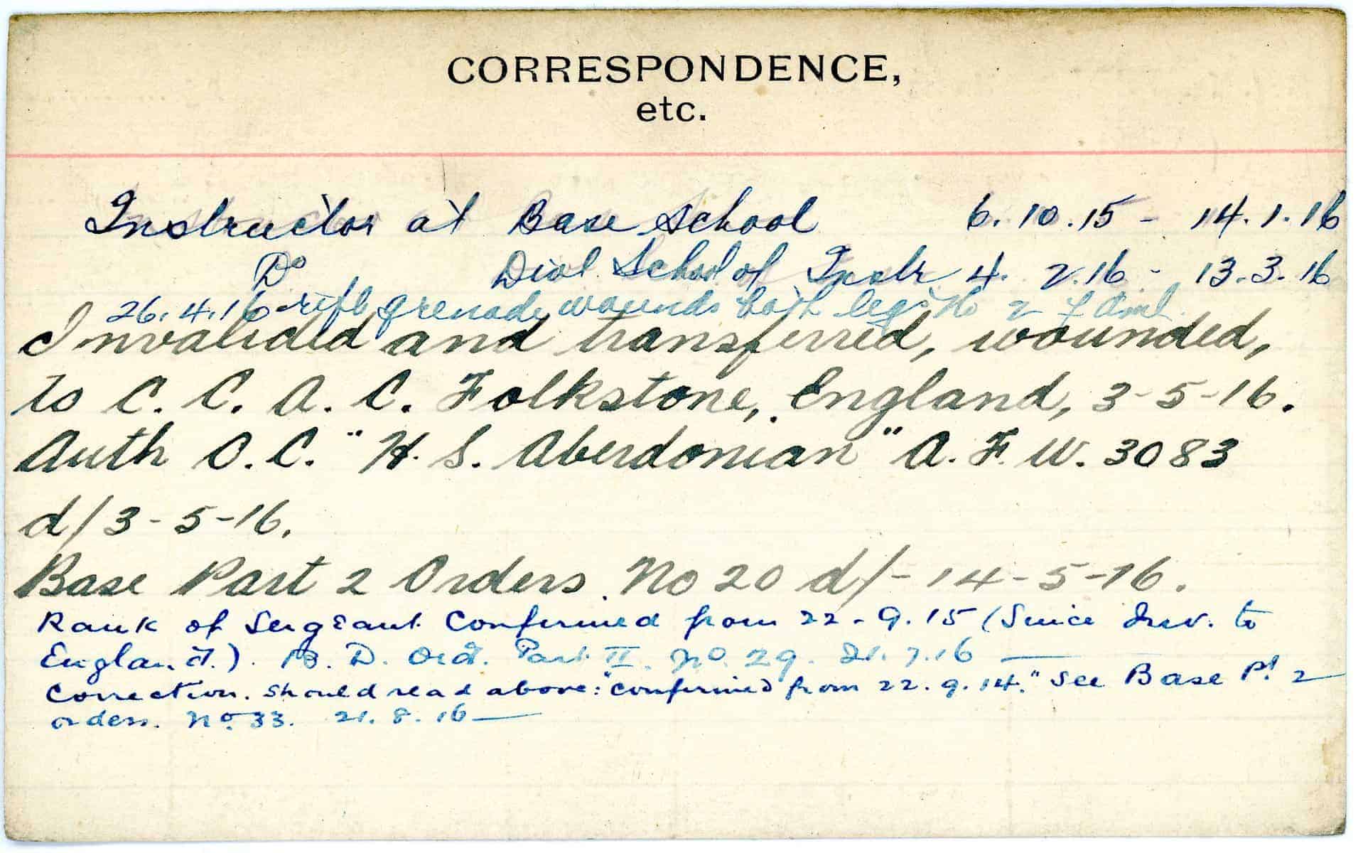 Record of Service Cards – W