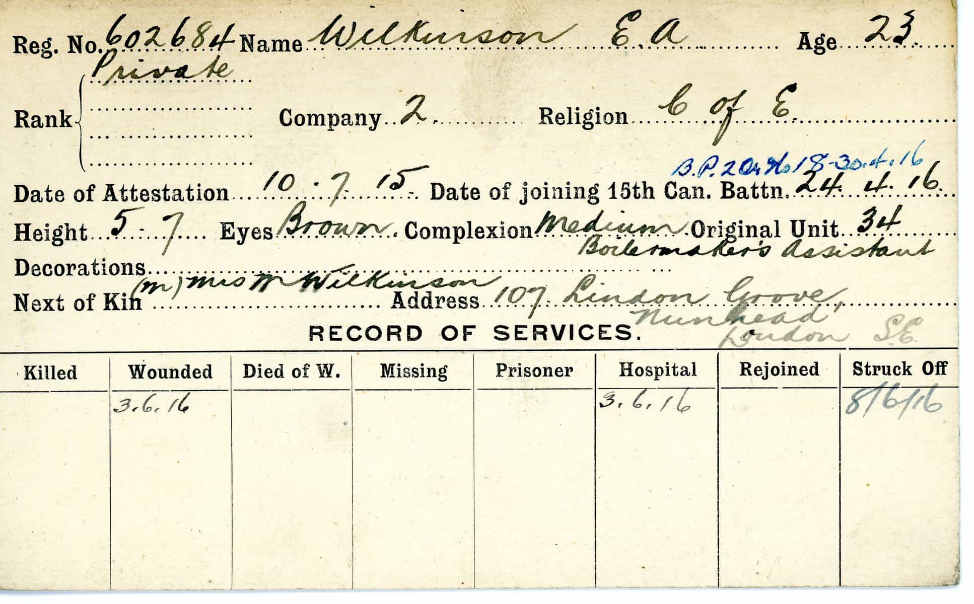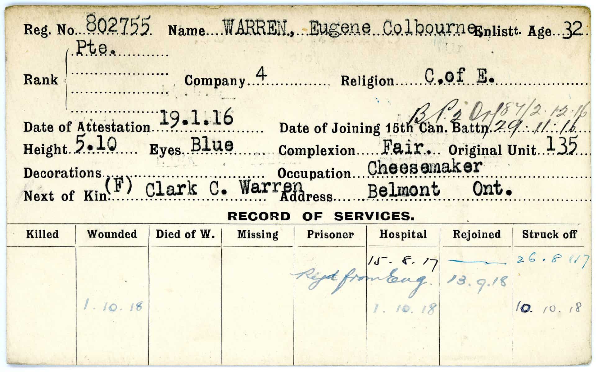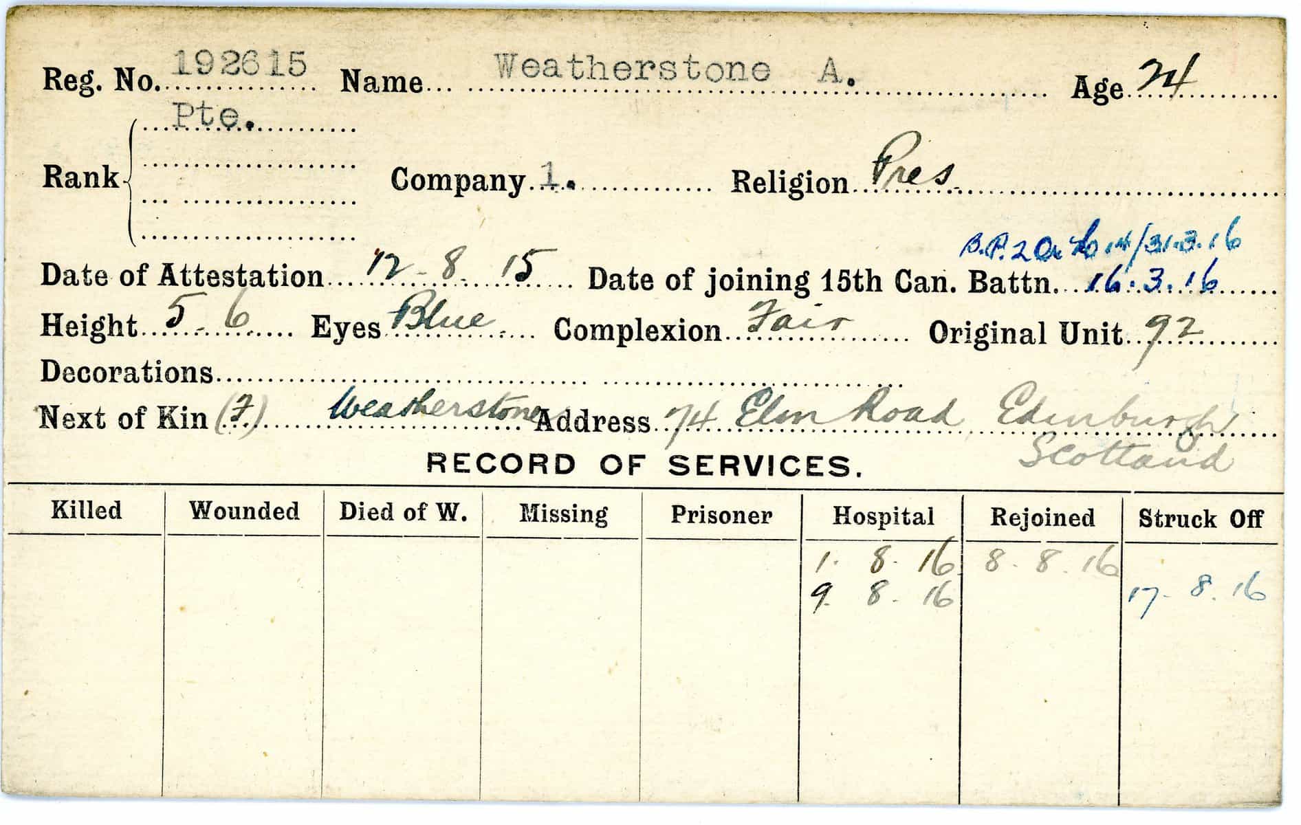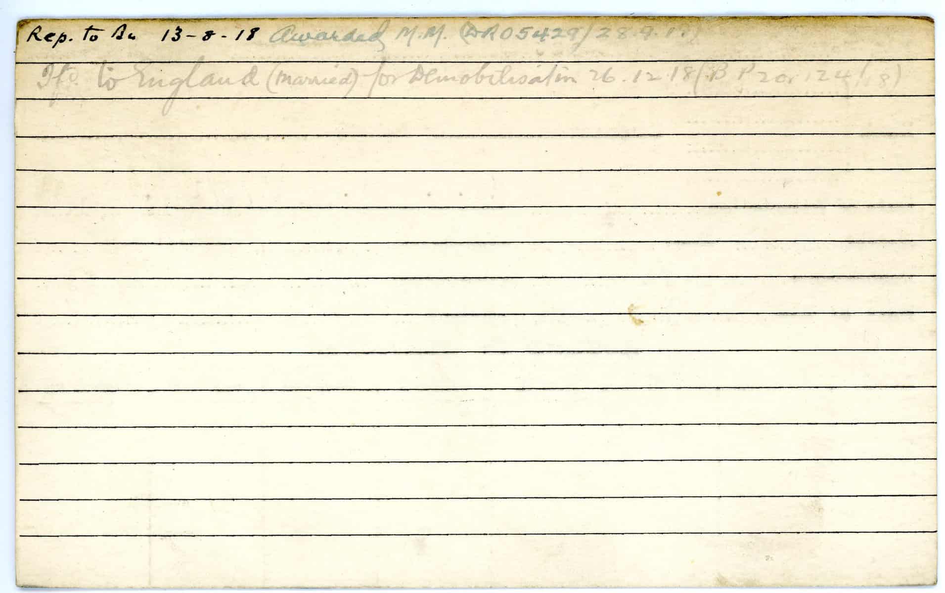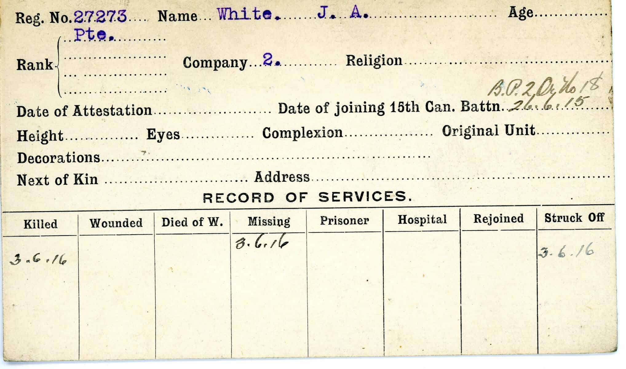 Record of Service Cards – W