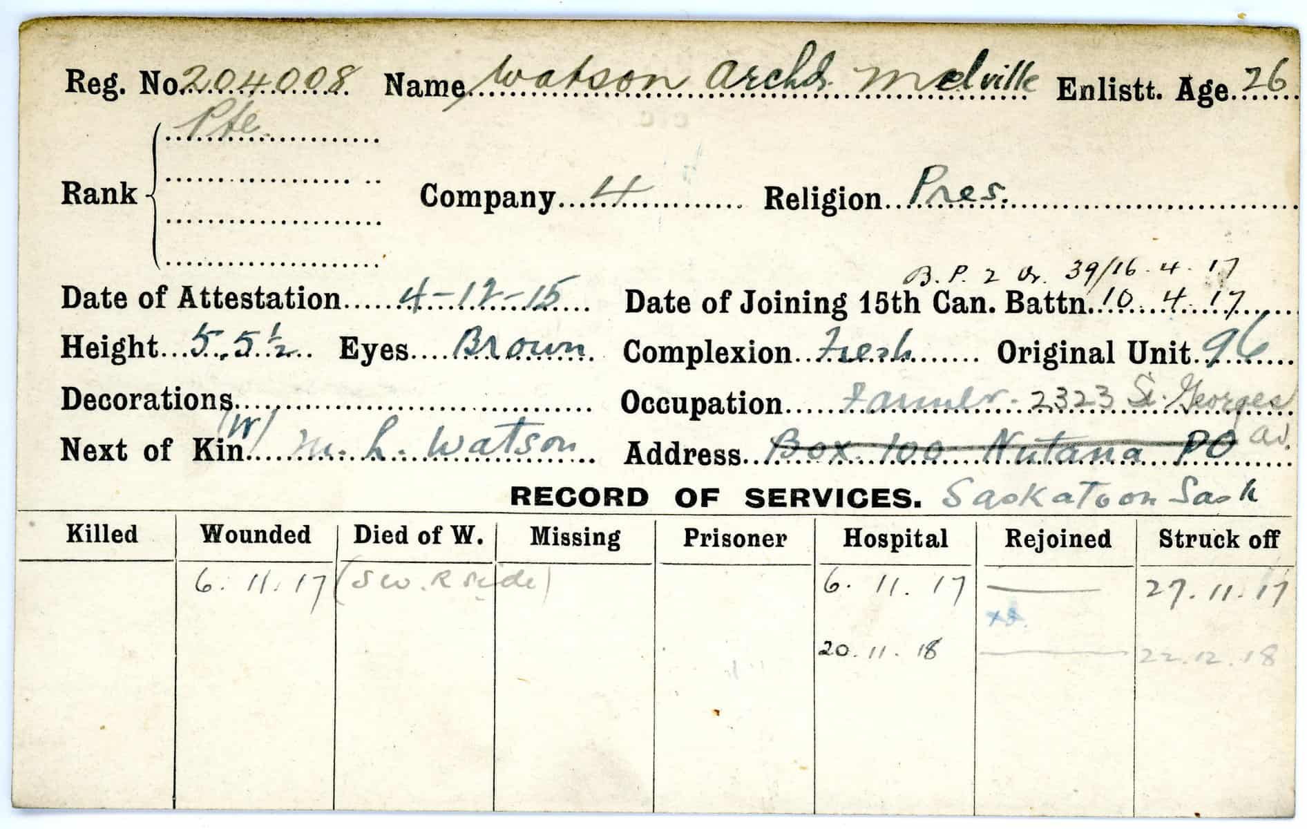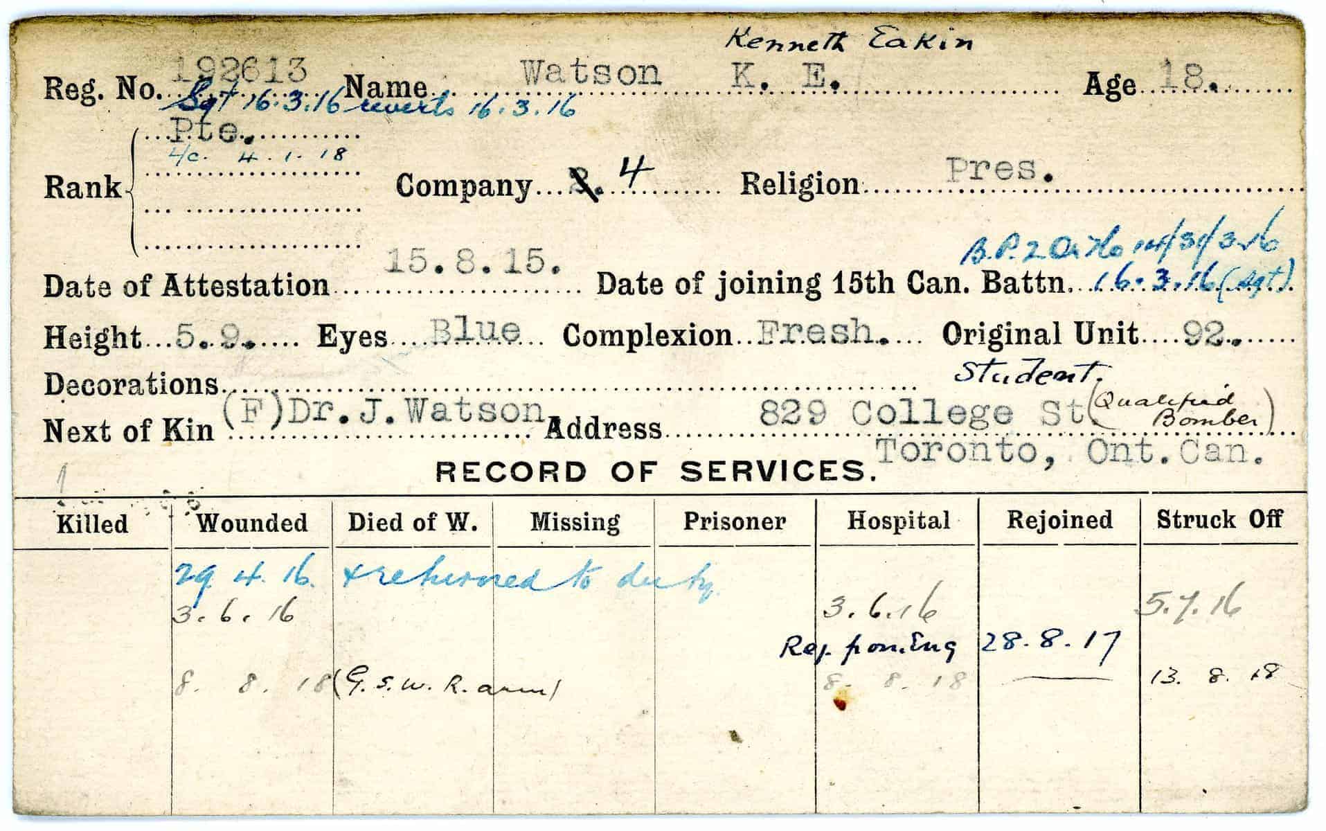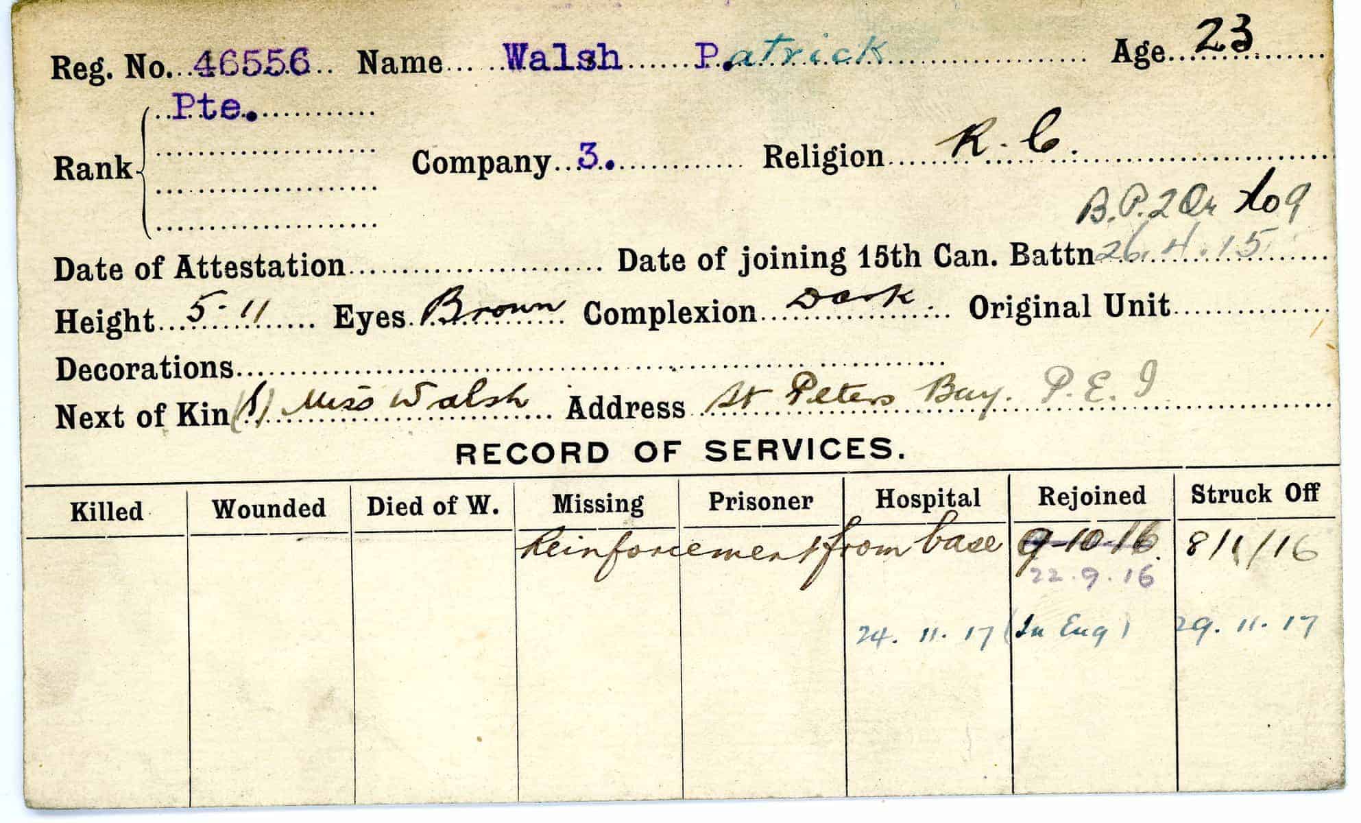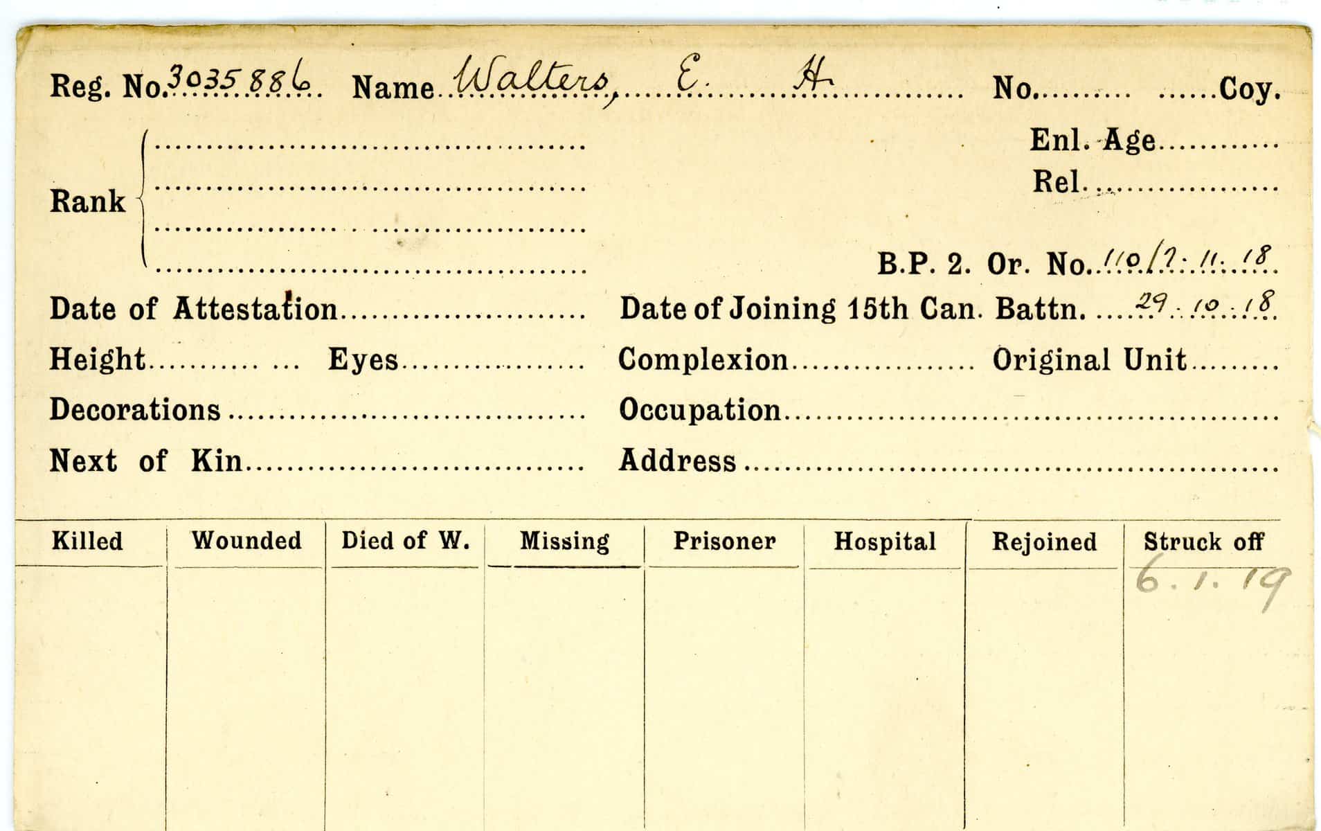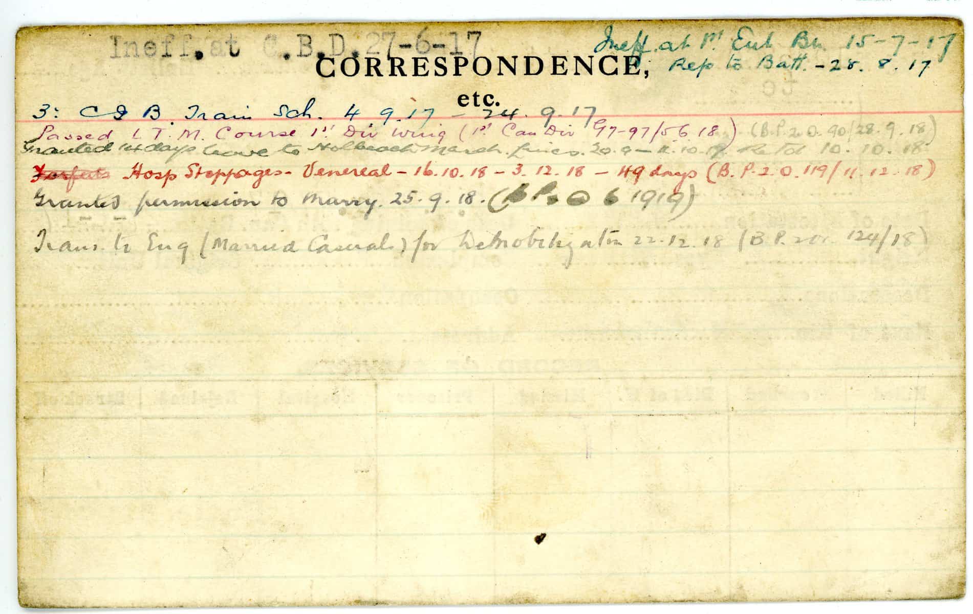 Record of Service Cards – W