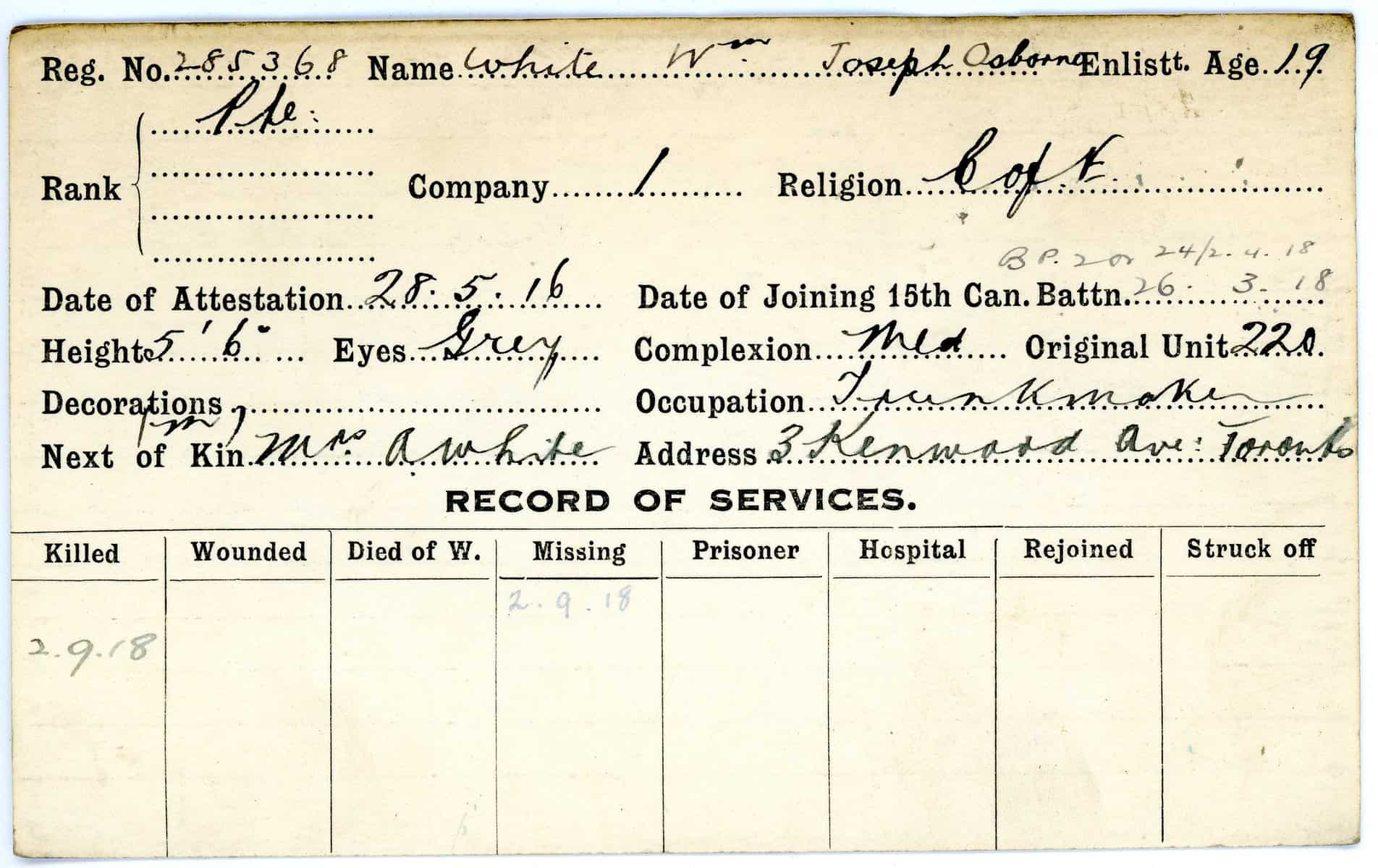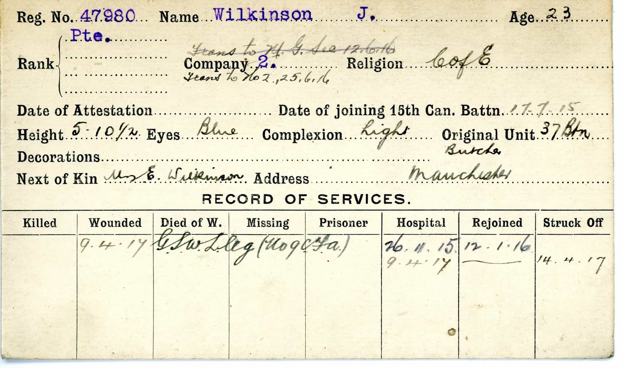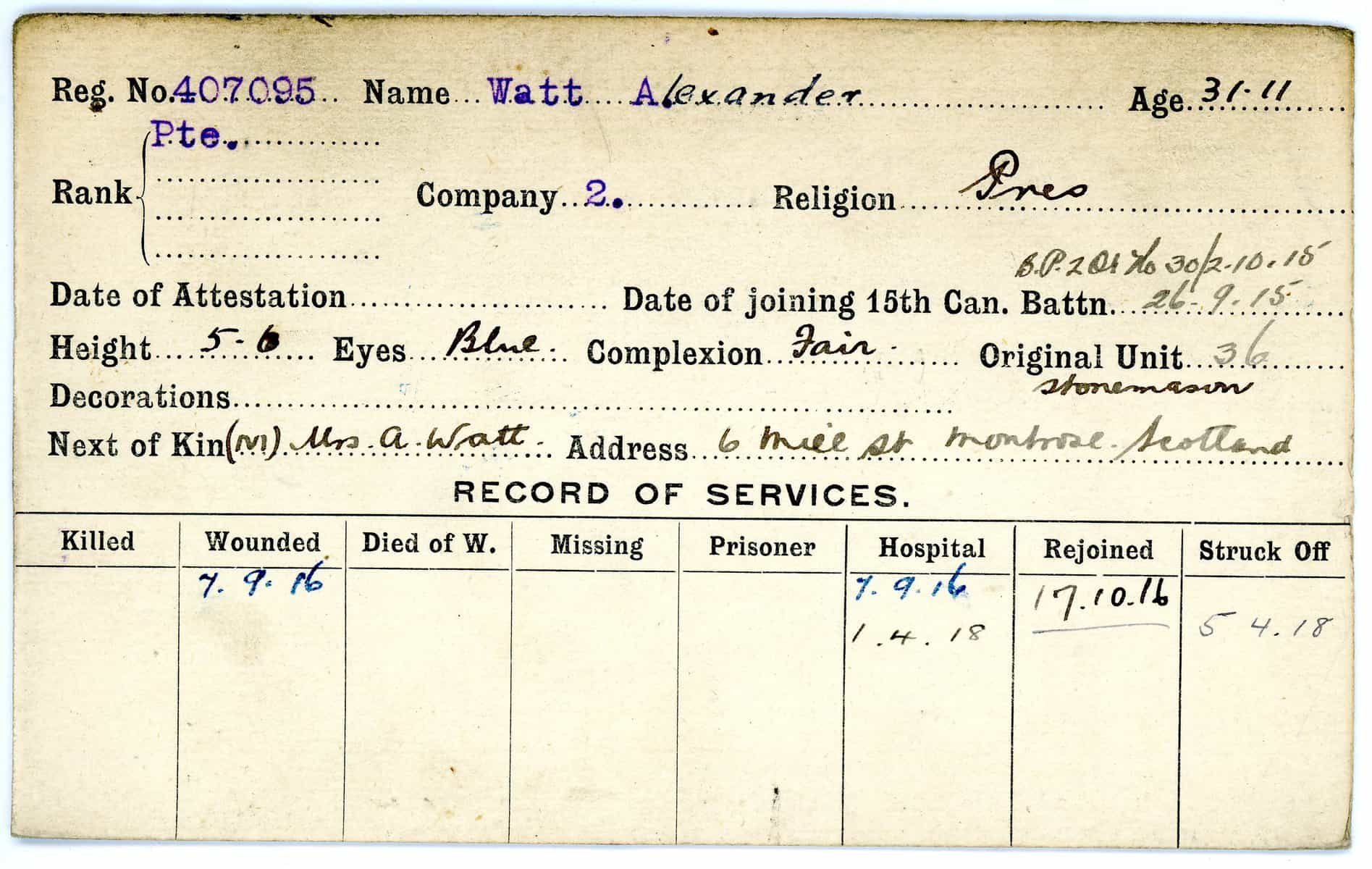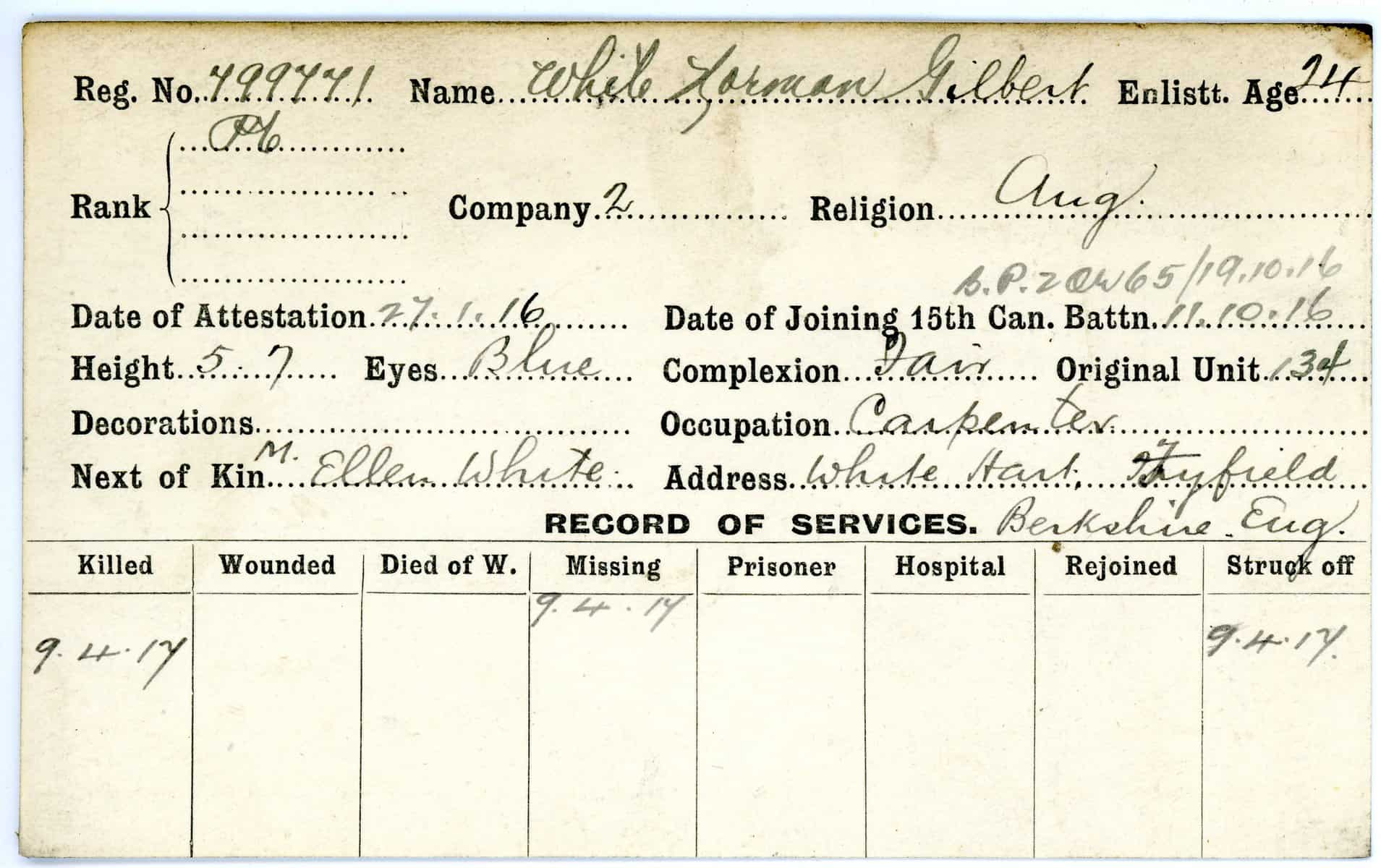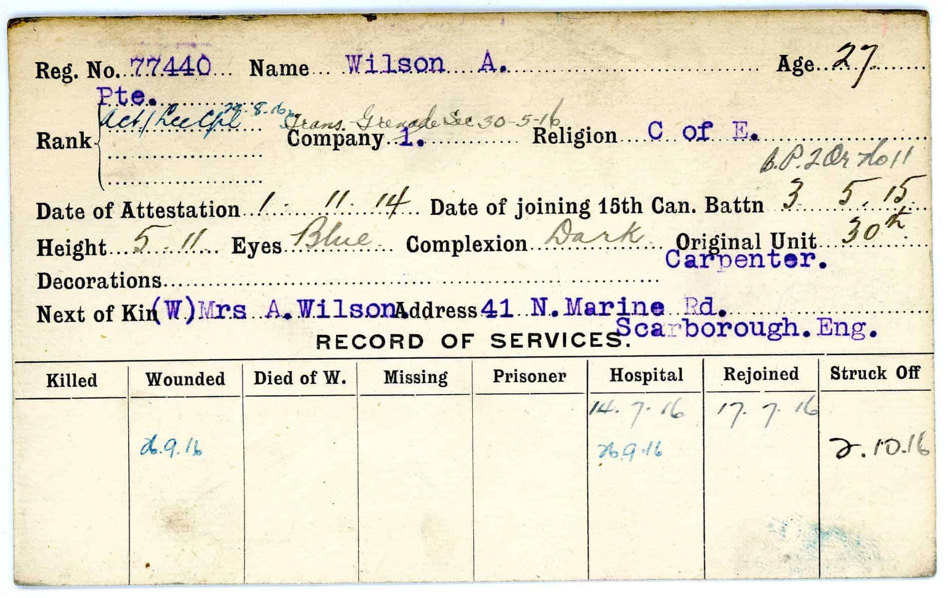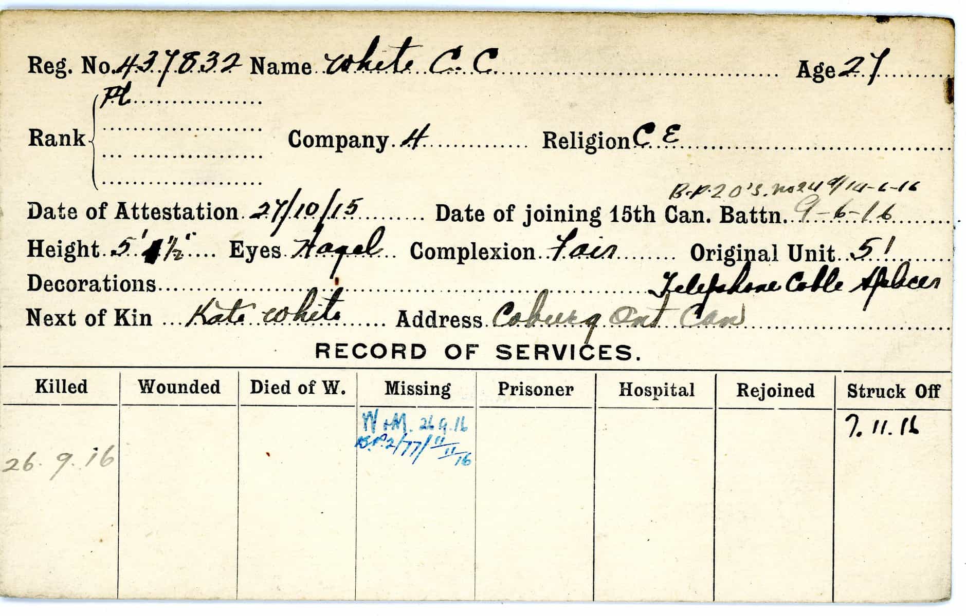 Record of Service Cards – W