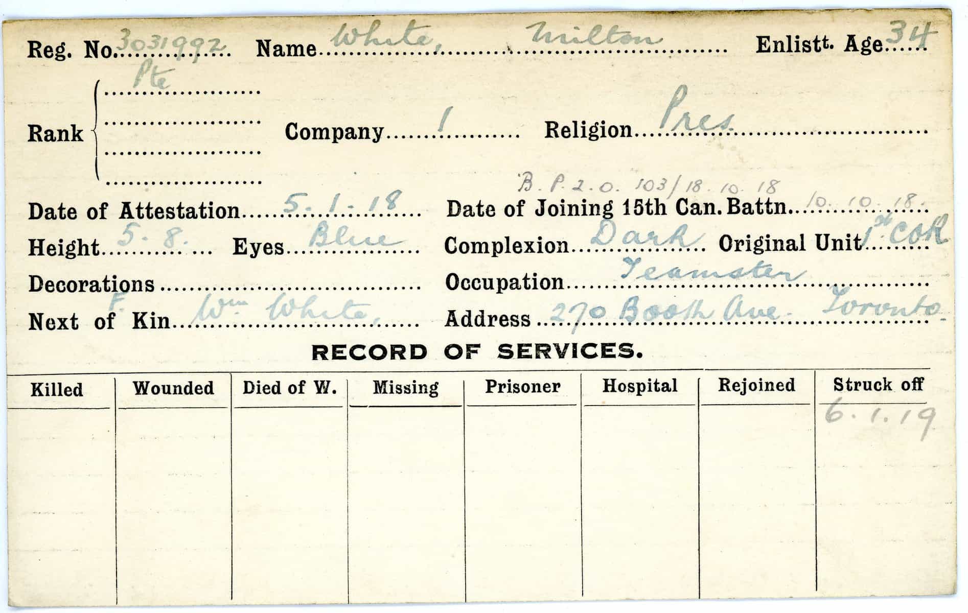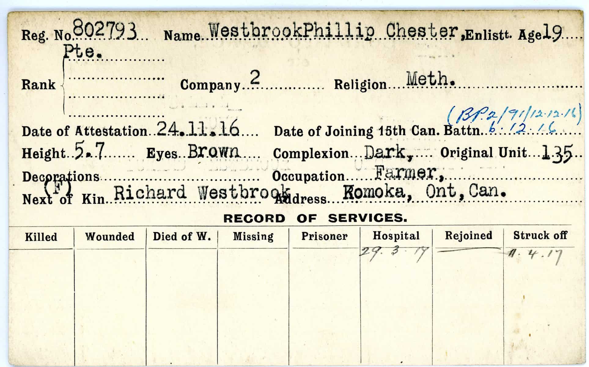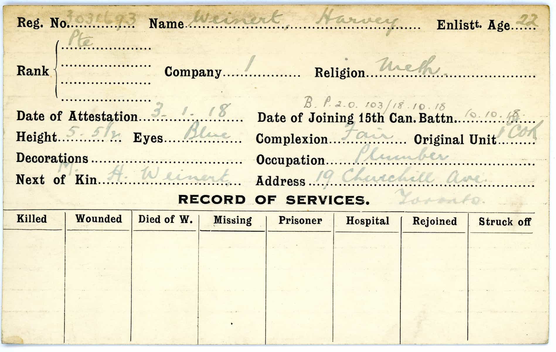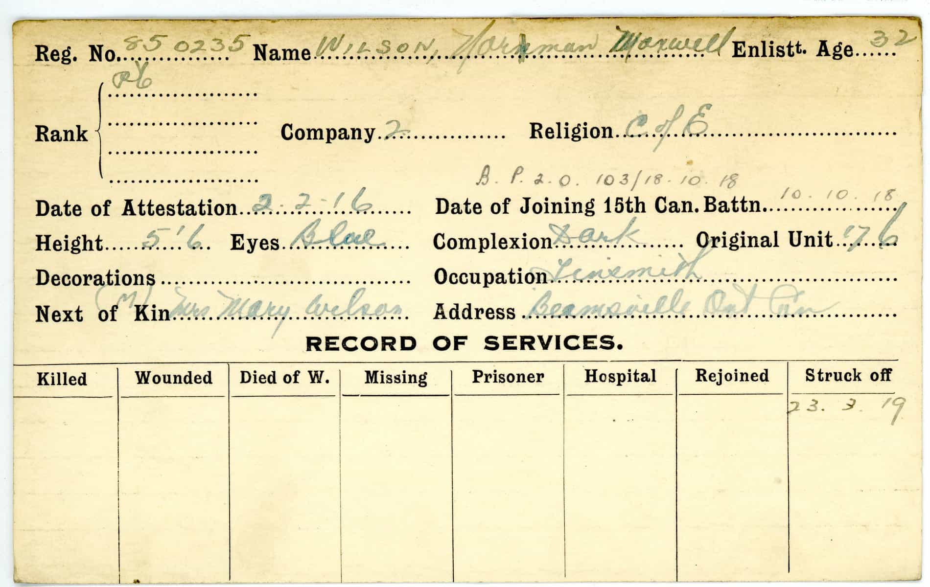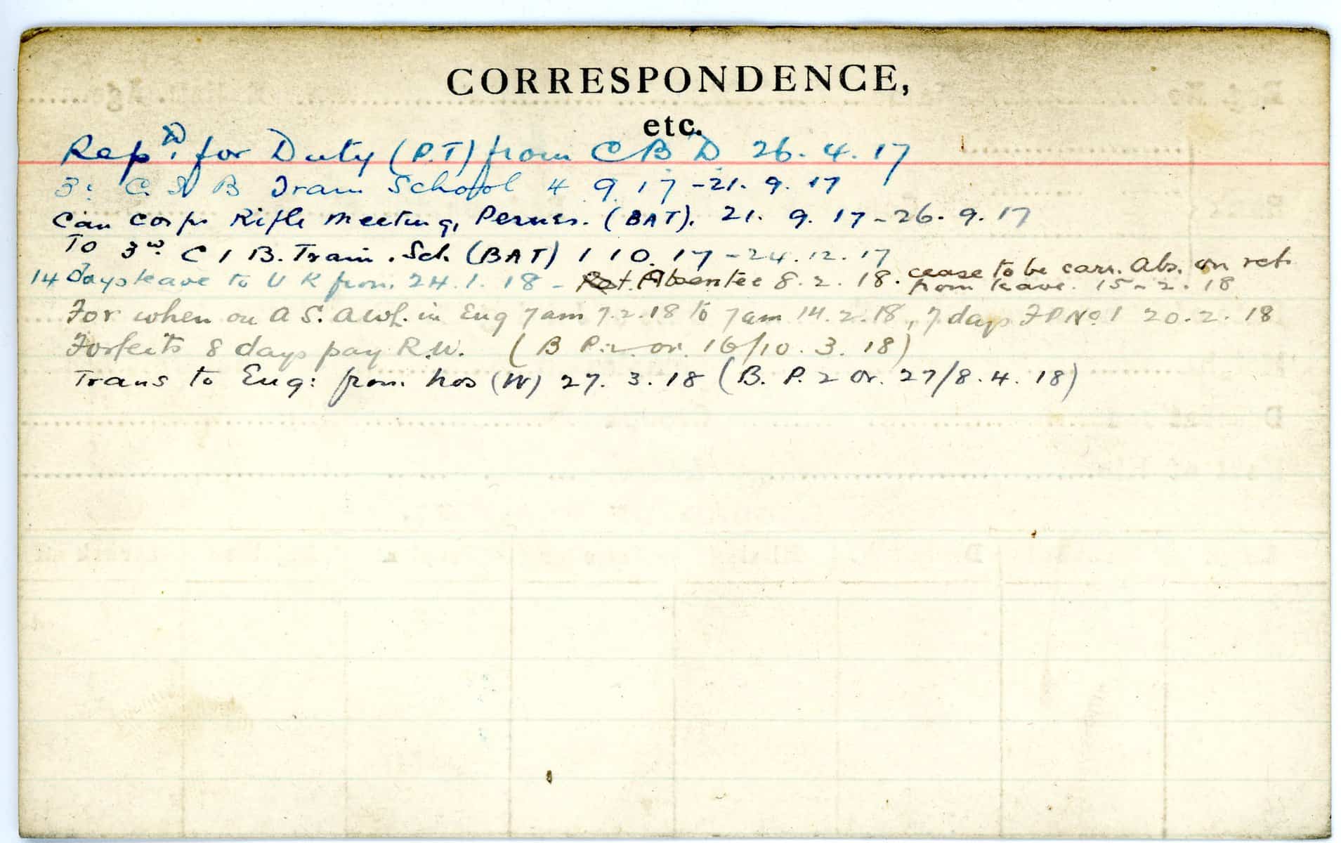 Record of Service Cards – W