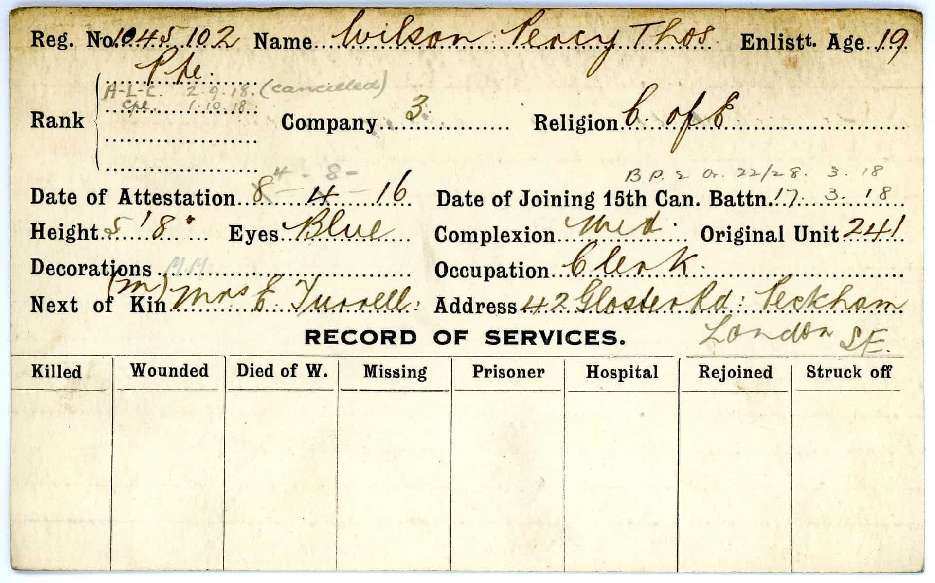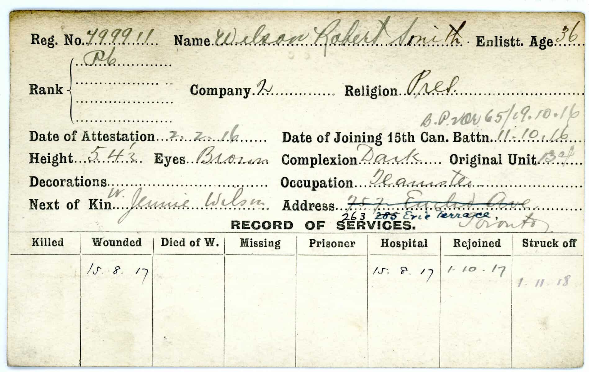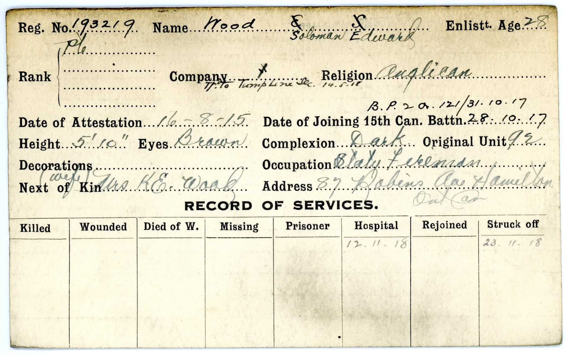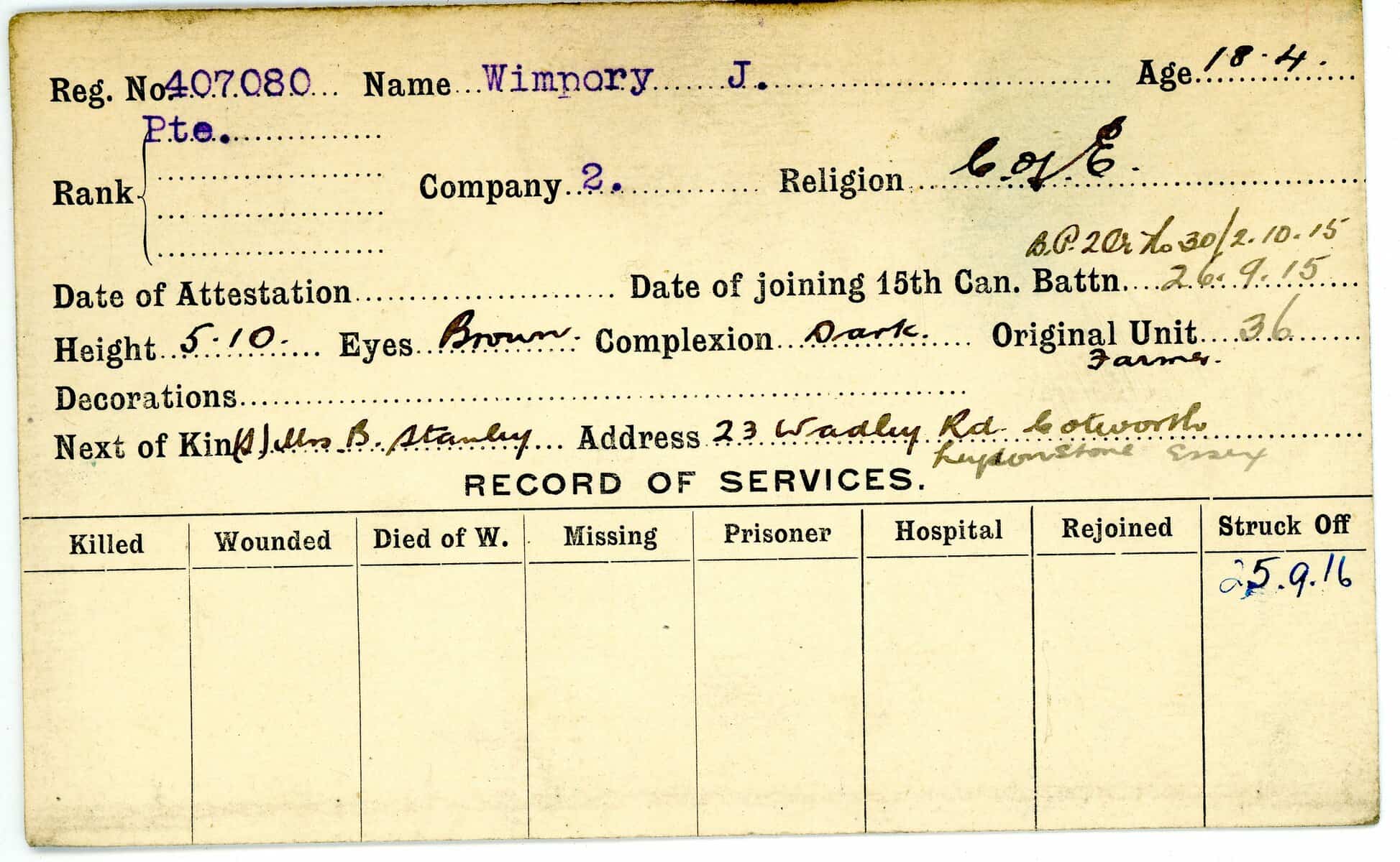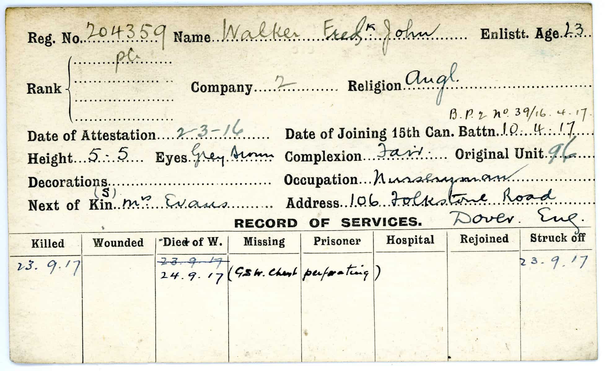 Record of Service Cards – W