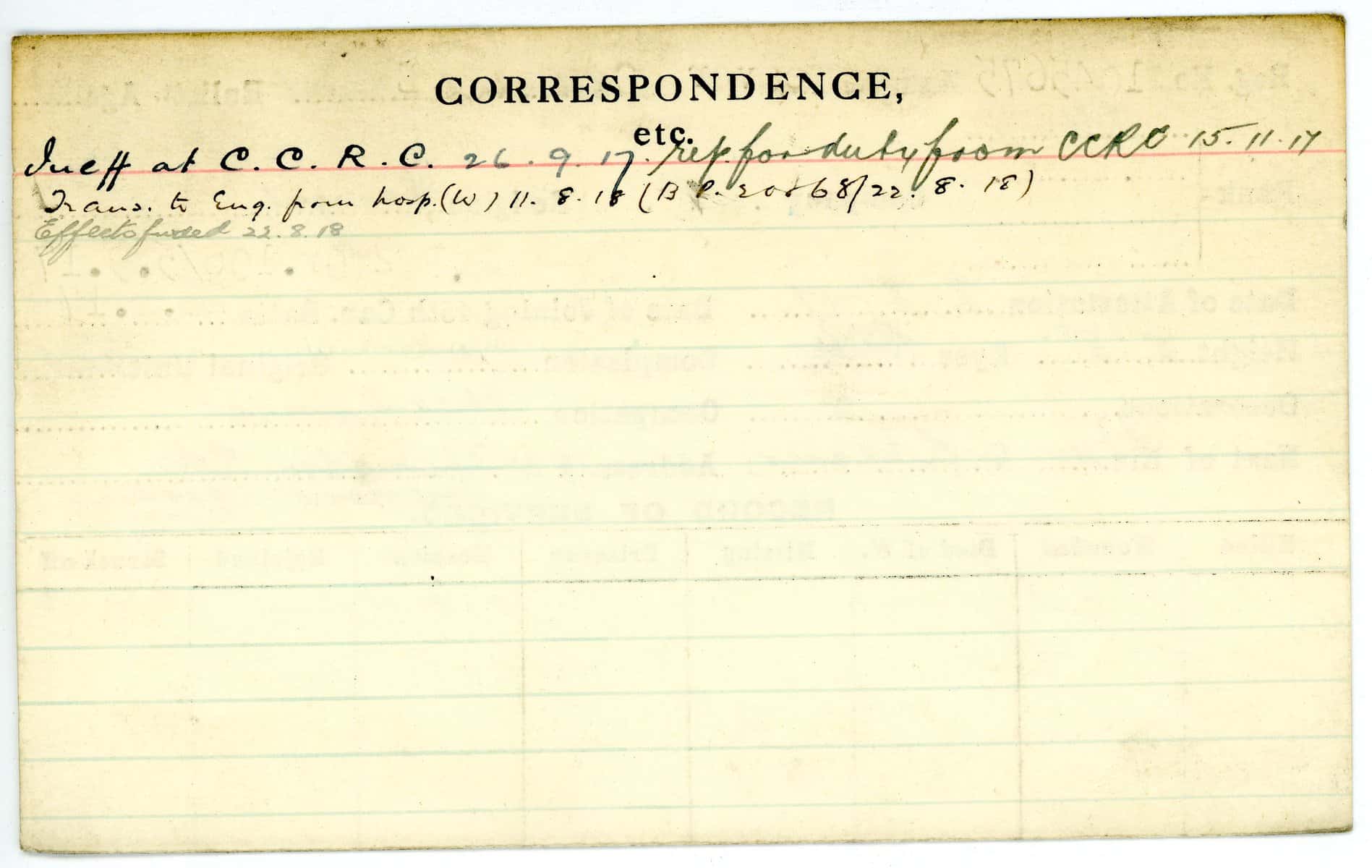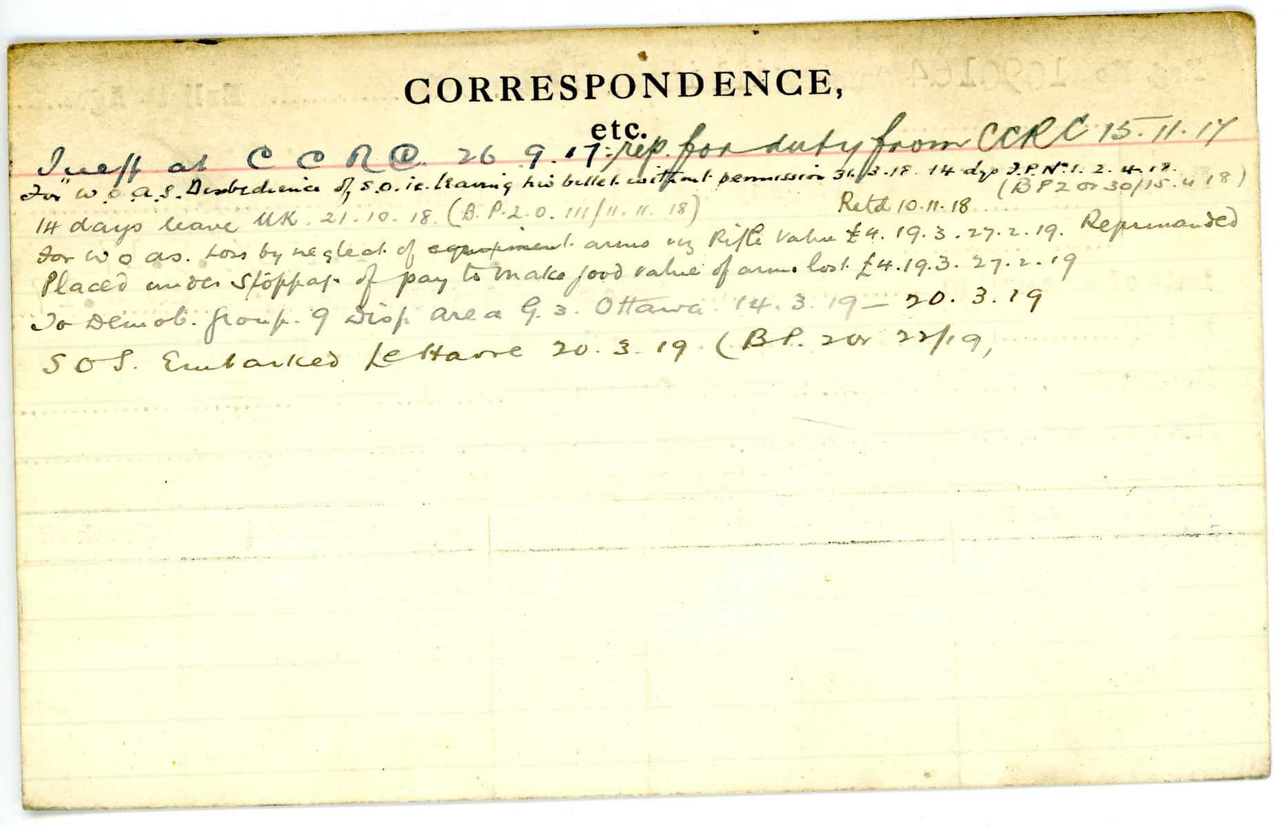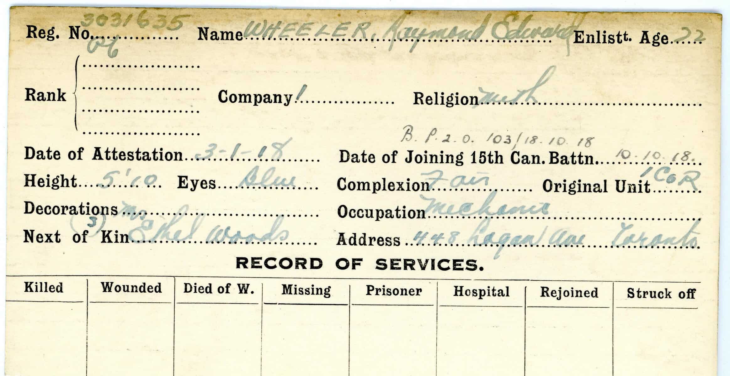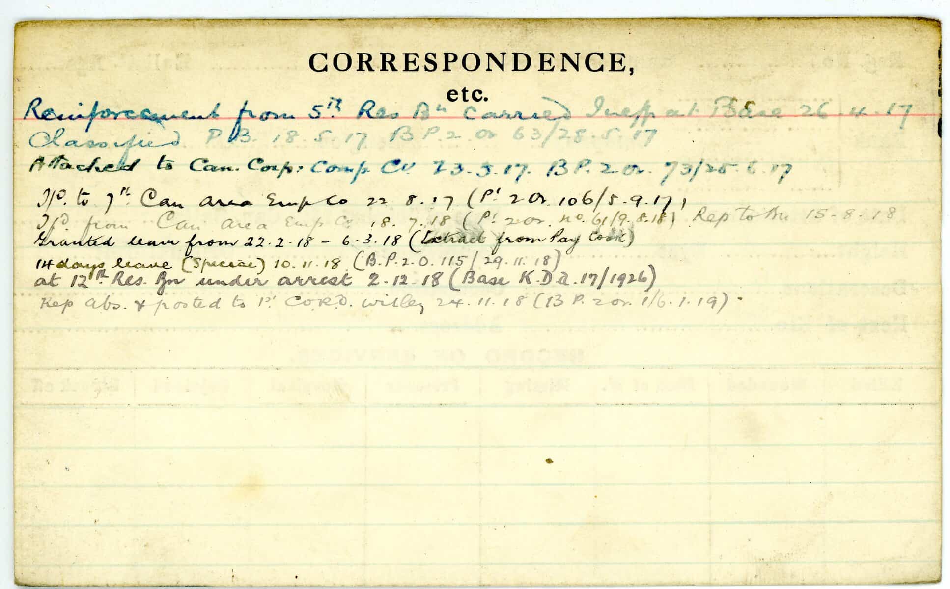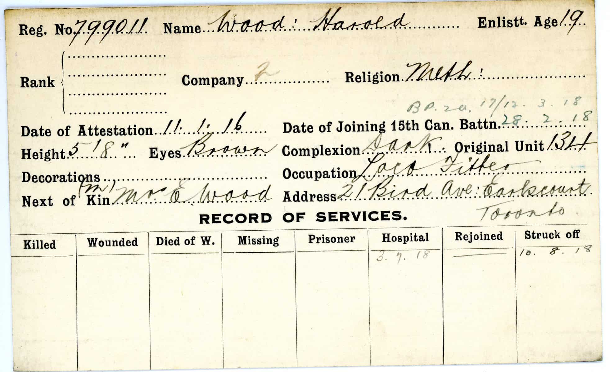 Record of Service Cards – W