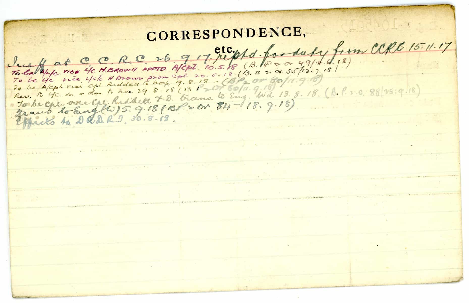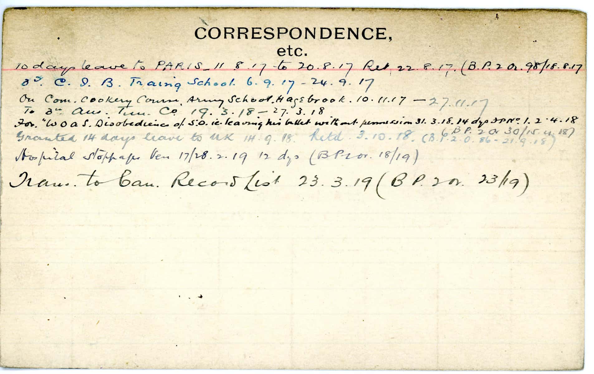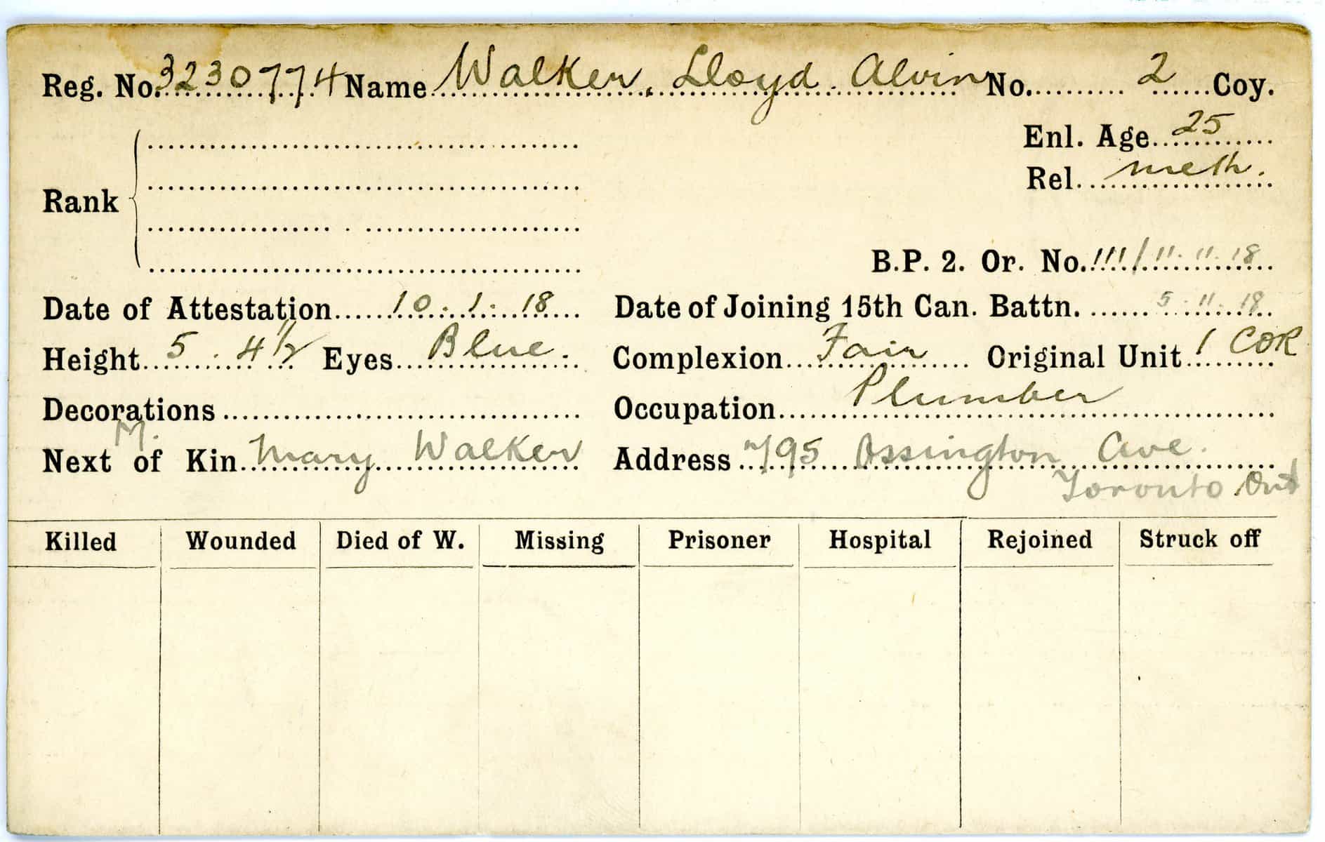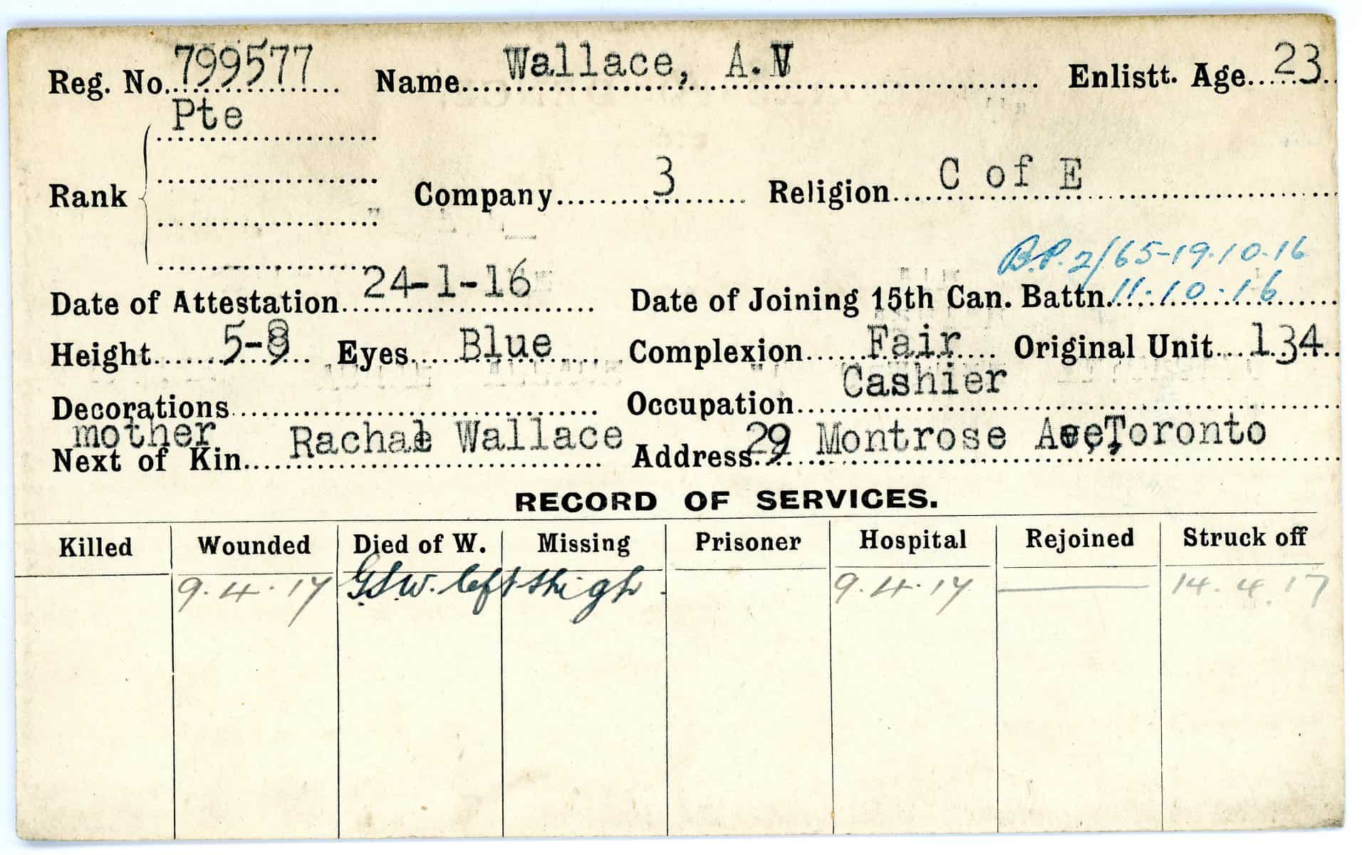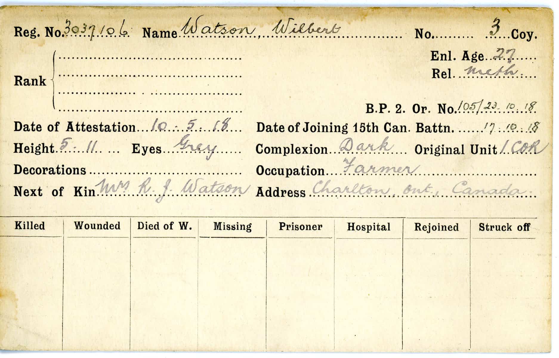 Record of Service Cards – W
